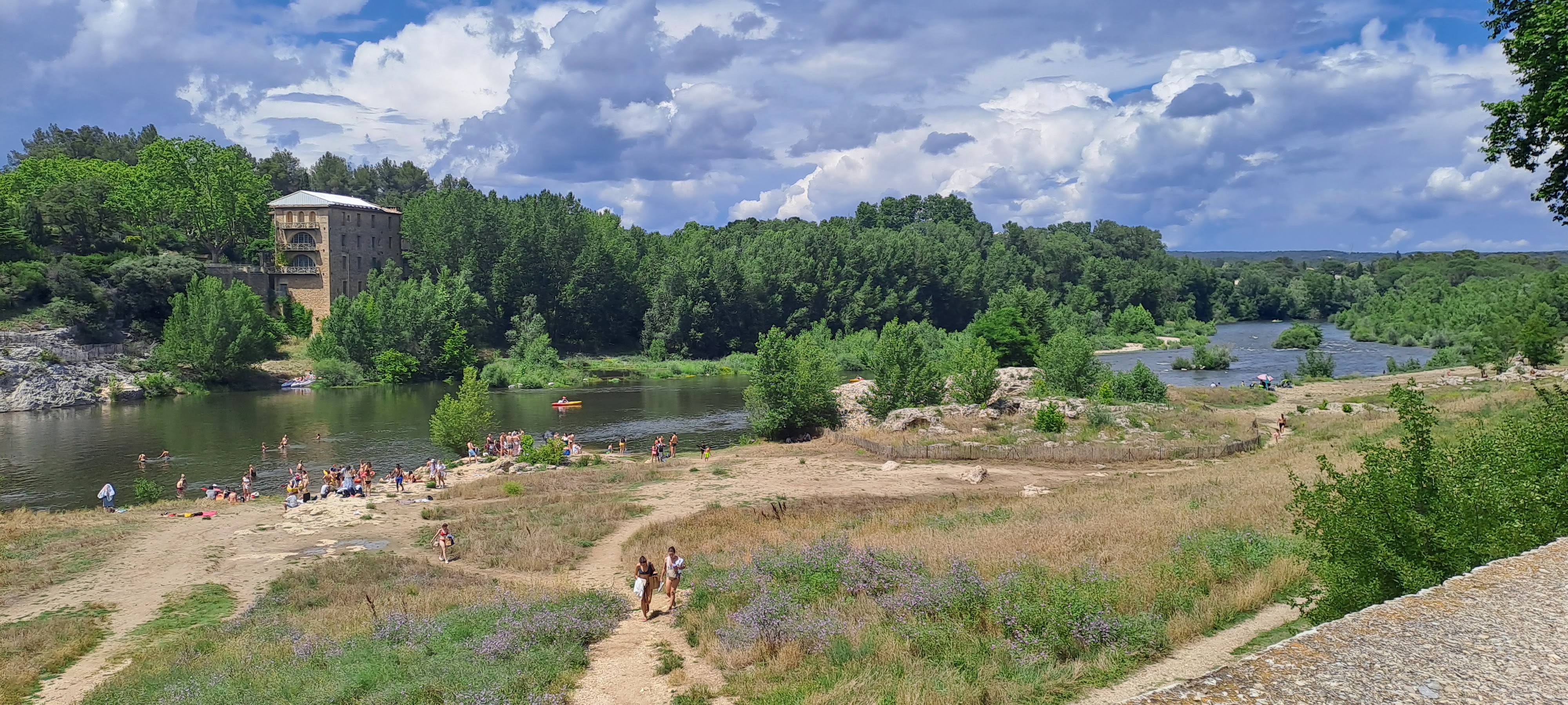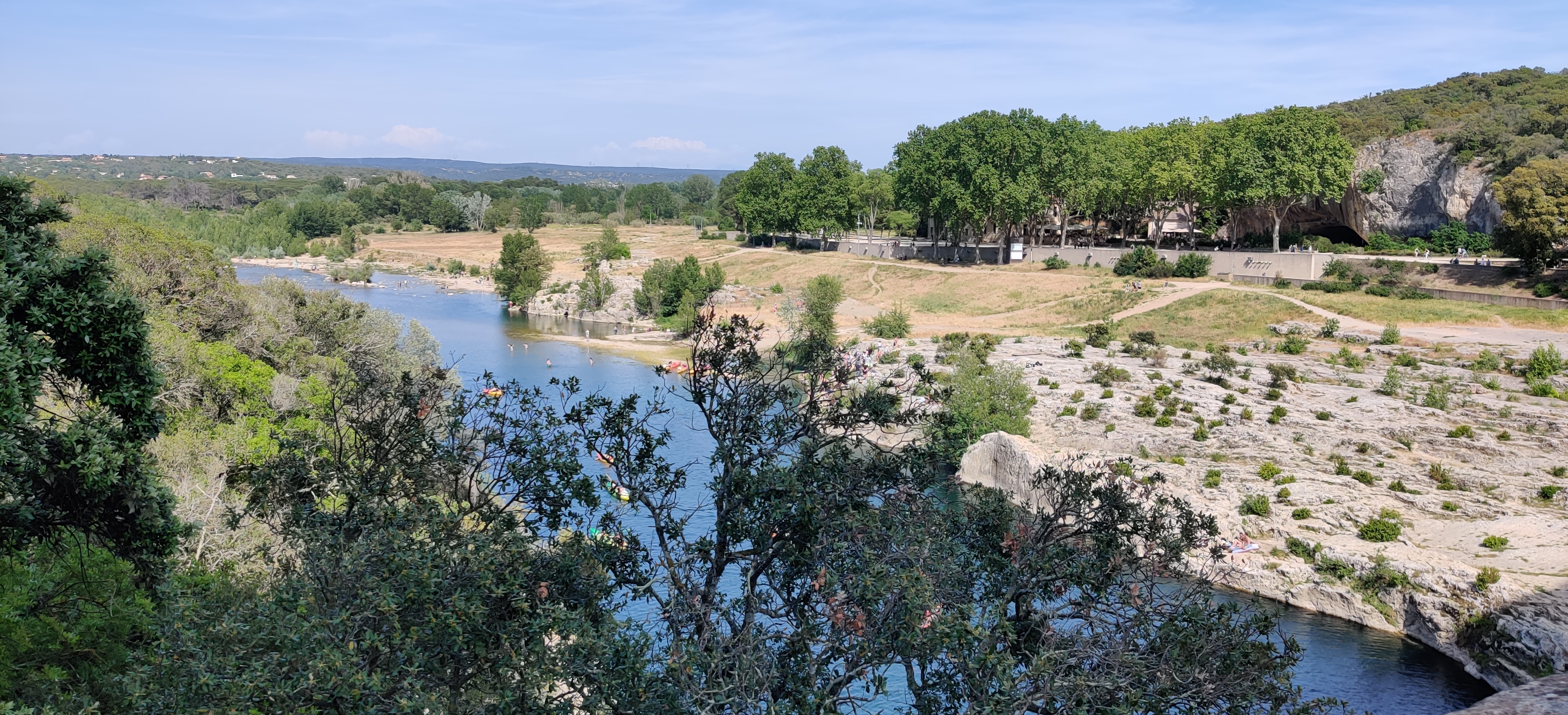 Je ne m'attendais pas à trouver un si joli site en arrivant !Tout est agréable, joli, bien fait pour que le site soit accessible à tous et passer un bon moment au bord de l'eau tout en admirant le Pont du Gard. Il y a beaucoup d'espace style plagette pour se réunir en famille au bord de l'eau. Des lieux peu profonds, ainsi que des endroits suffisamment profond pour plonger sans risque, et s'amuser dans l'eau. Attention à bien repérer les endroits pour remonter sur la berge. Le coup du parking pour une journée et de 9 € quel que soit le nombre de personnes dans le véhicule. Si par mégarde vous perdez le ticket, pas de panique à la borne de paiement, il y a une touche exprès. Pas d'accès payant pour les piétons. Mais prévoir une petite marche si on stationne son véhicule dans un lieu non payant. Nous y avons vu deux petites restaurations style foot truck. Avec les tables et les chaises donnant sur le pont du Gard. Il y a également le restaurant Les Terrasses pour une restauration plus restaurant.