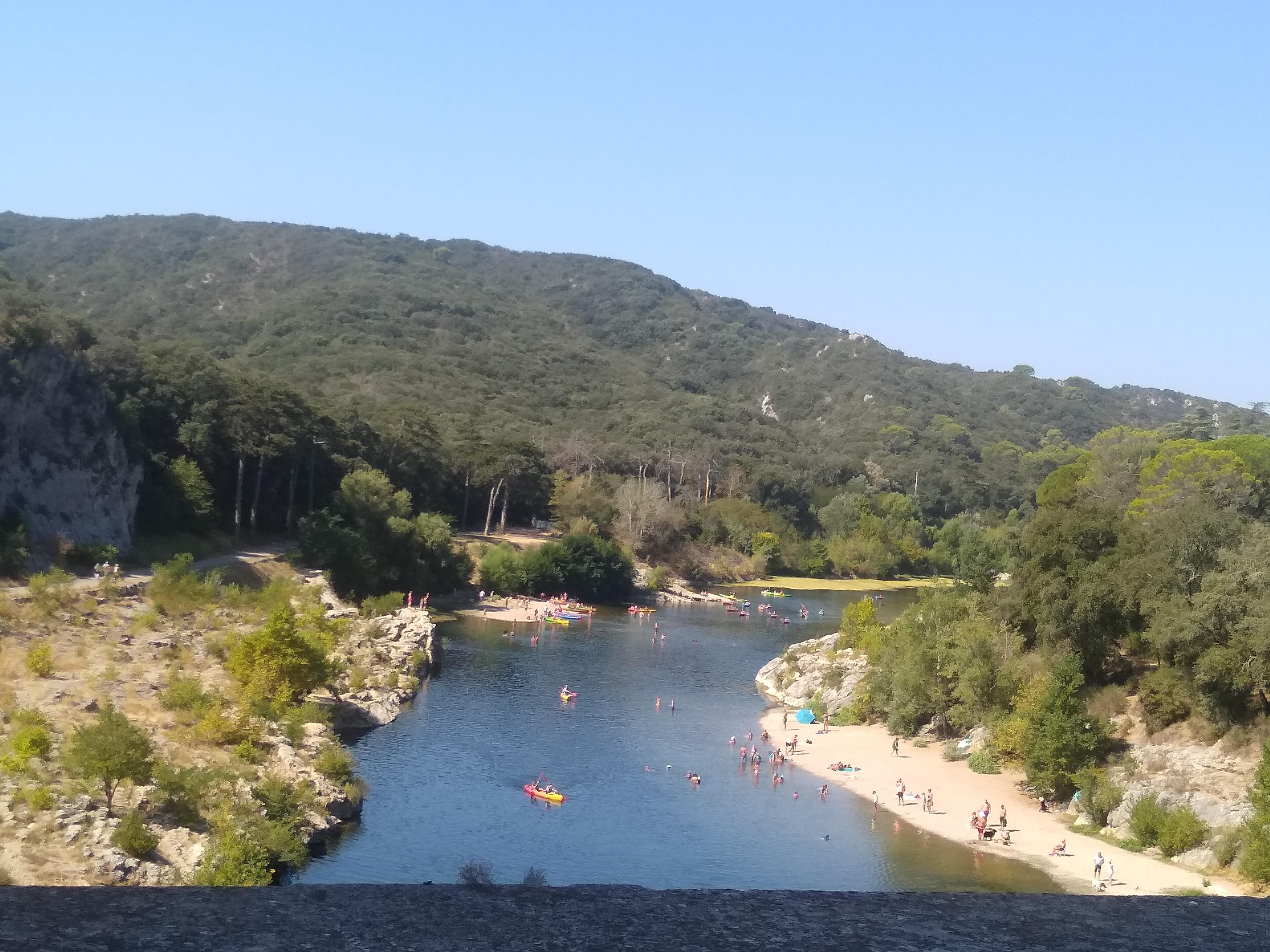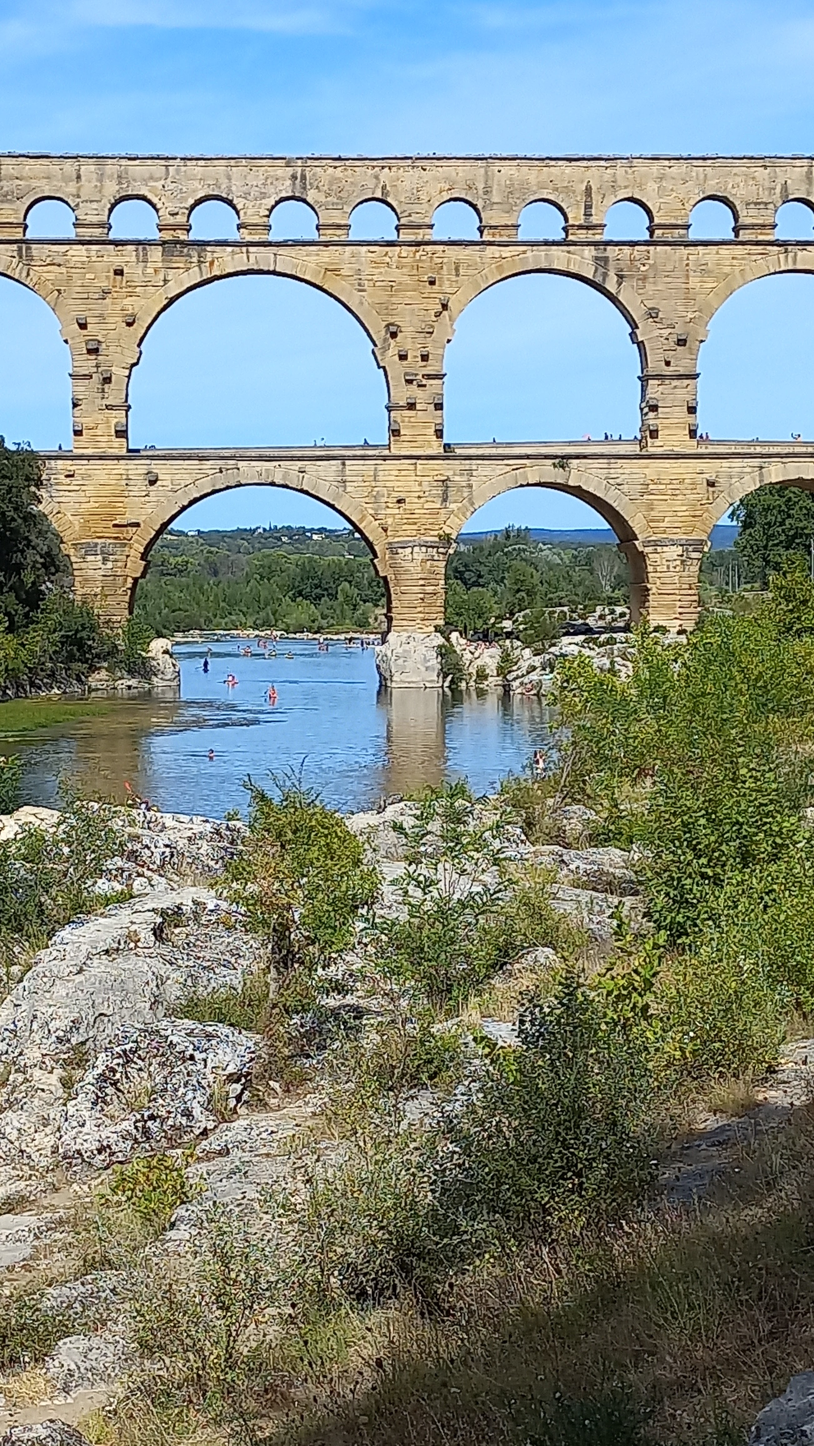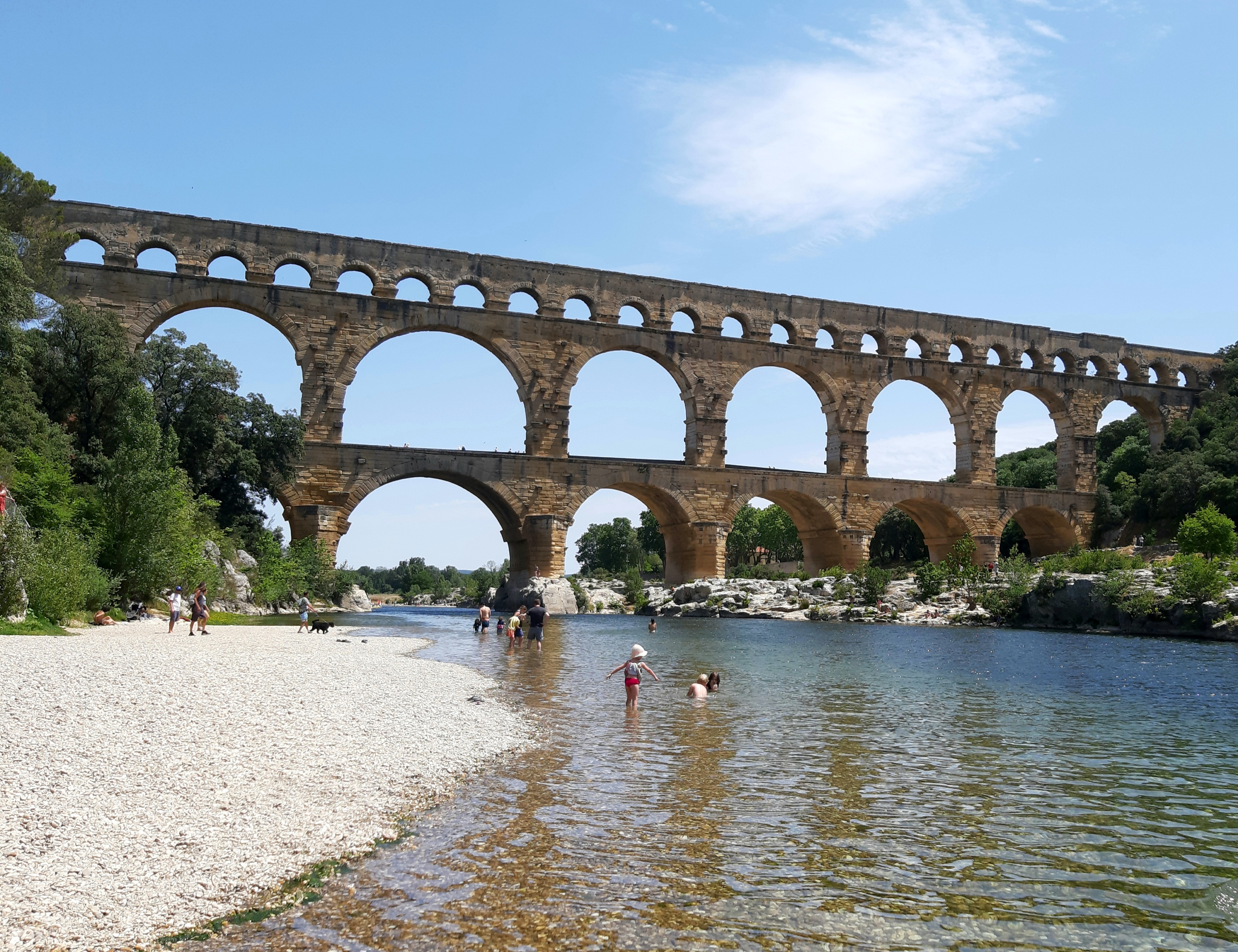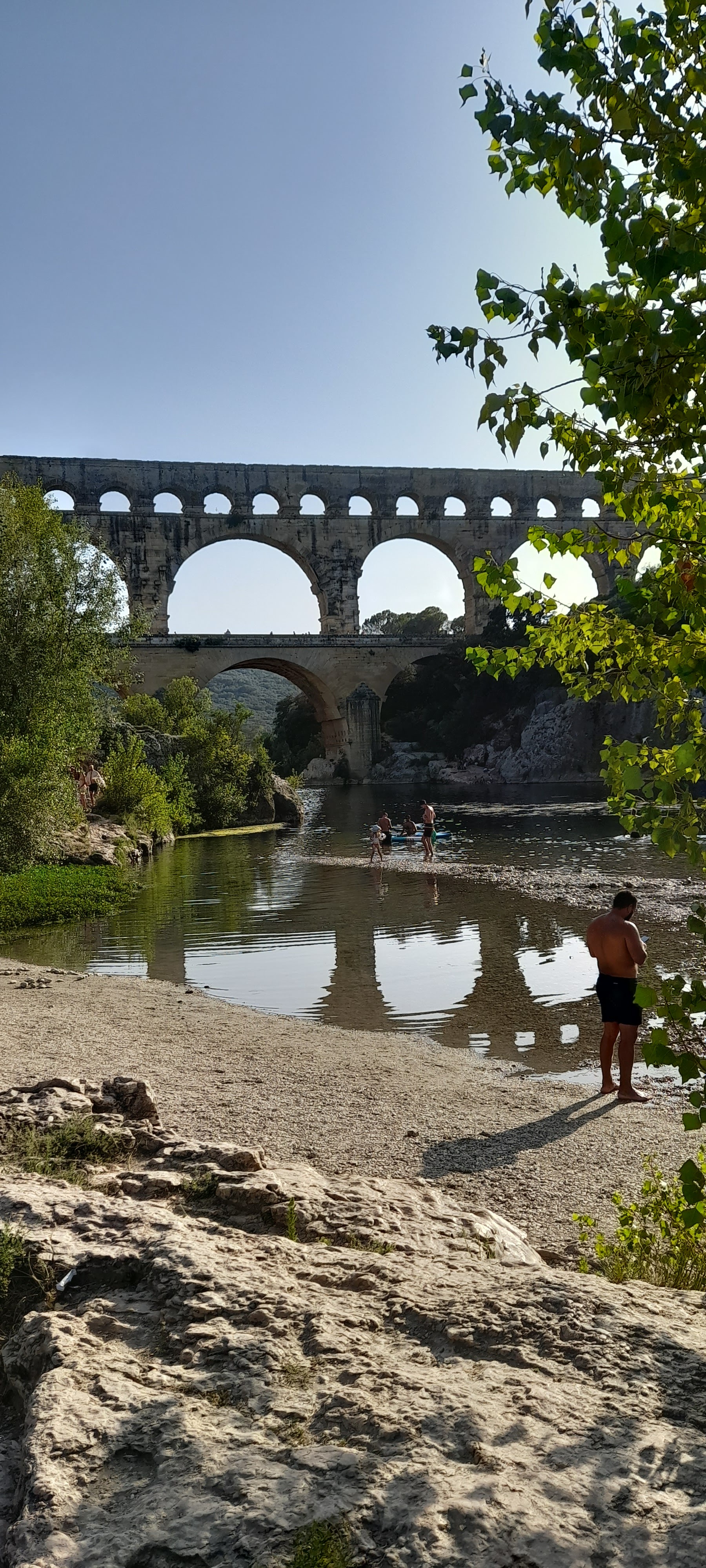 Magnifique 🤩 Nous nous sommes garés côté rive gauche (parking à 9€). Nous n’avons pas visité la partie du 3eme étage (payante) du pont. Nous sommes passés sur le pont adjacent du pont du Gard (niveau 2eme étage) la vue est superbe aussi Arrivés sur place (niveau du parking)nous nous sommes inquiétés de voir sur le plan, la plage sur rive droite mais il y a une plage sur la rive droite aussi (merci au point accueil pour les informations) qui est plus abritée par la végétation. Si vous êtes dans le coin, passez y et baignez vous (attention pour les frileux)