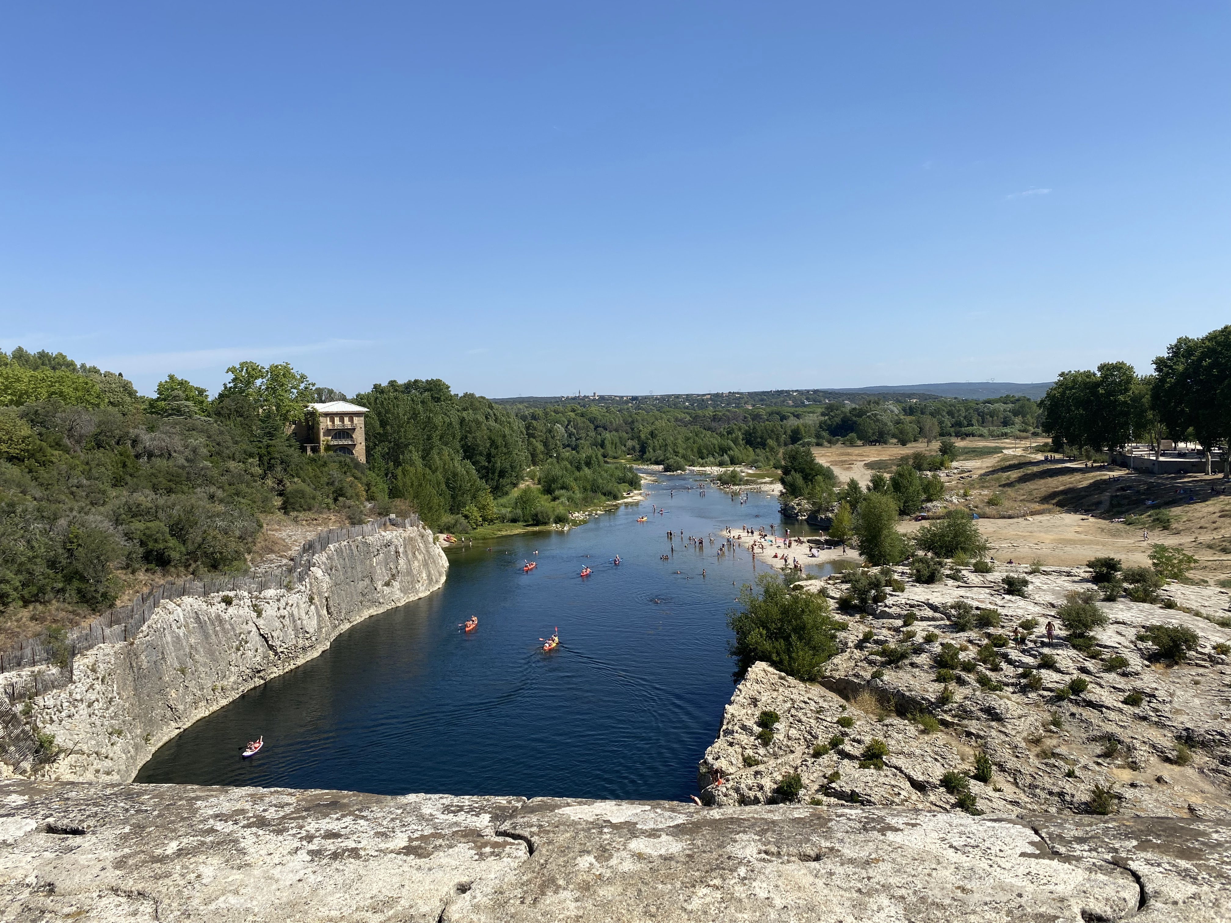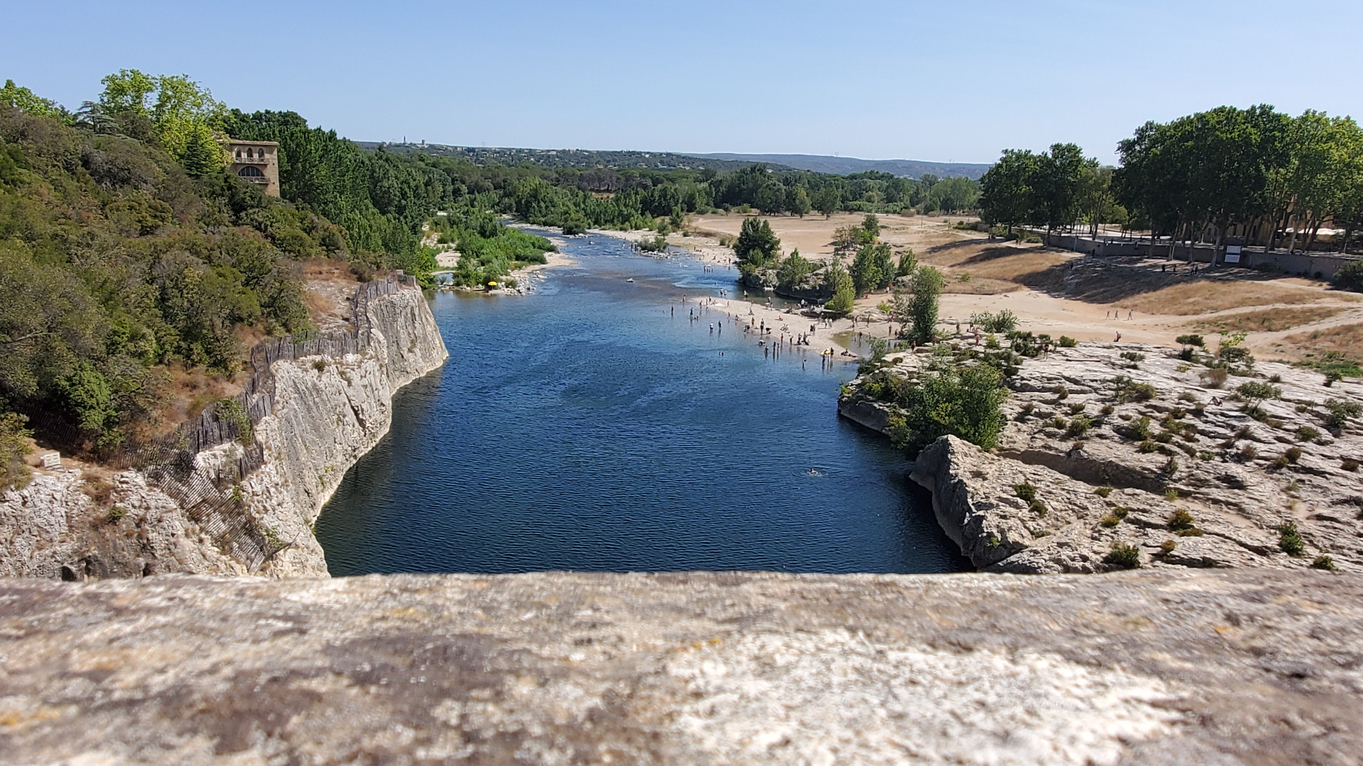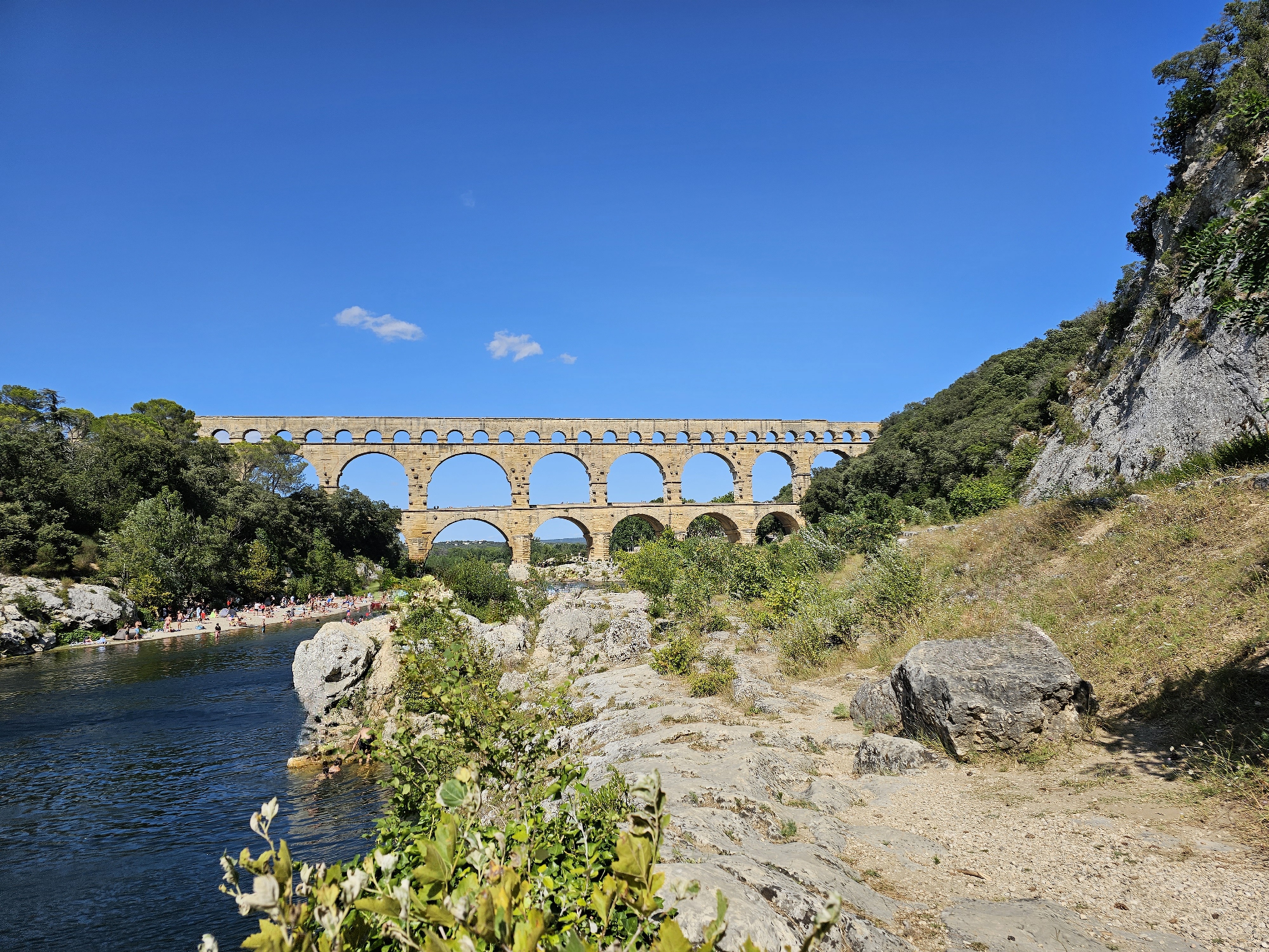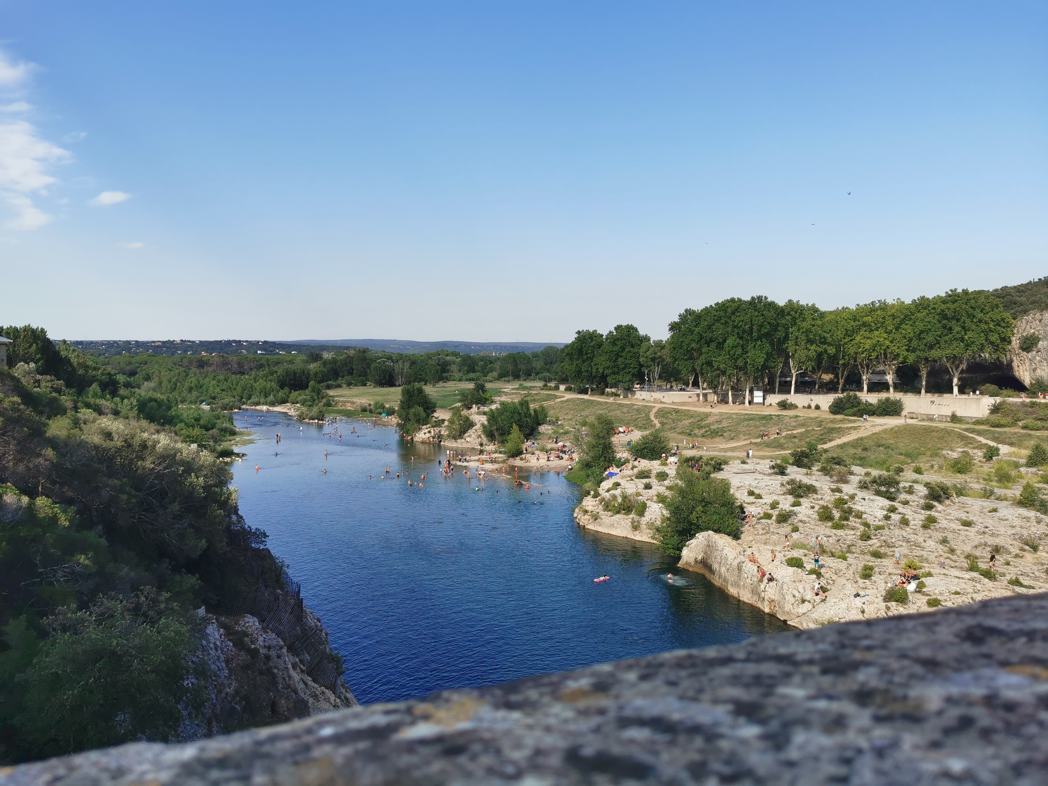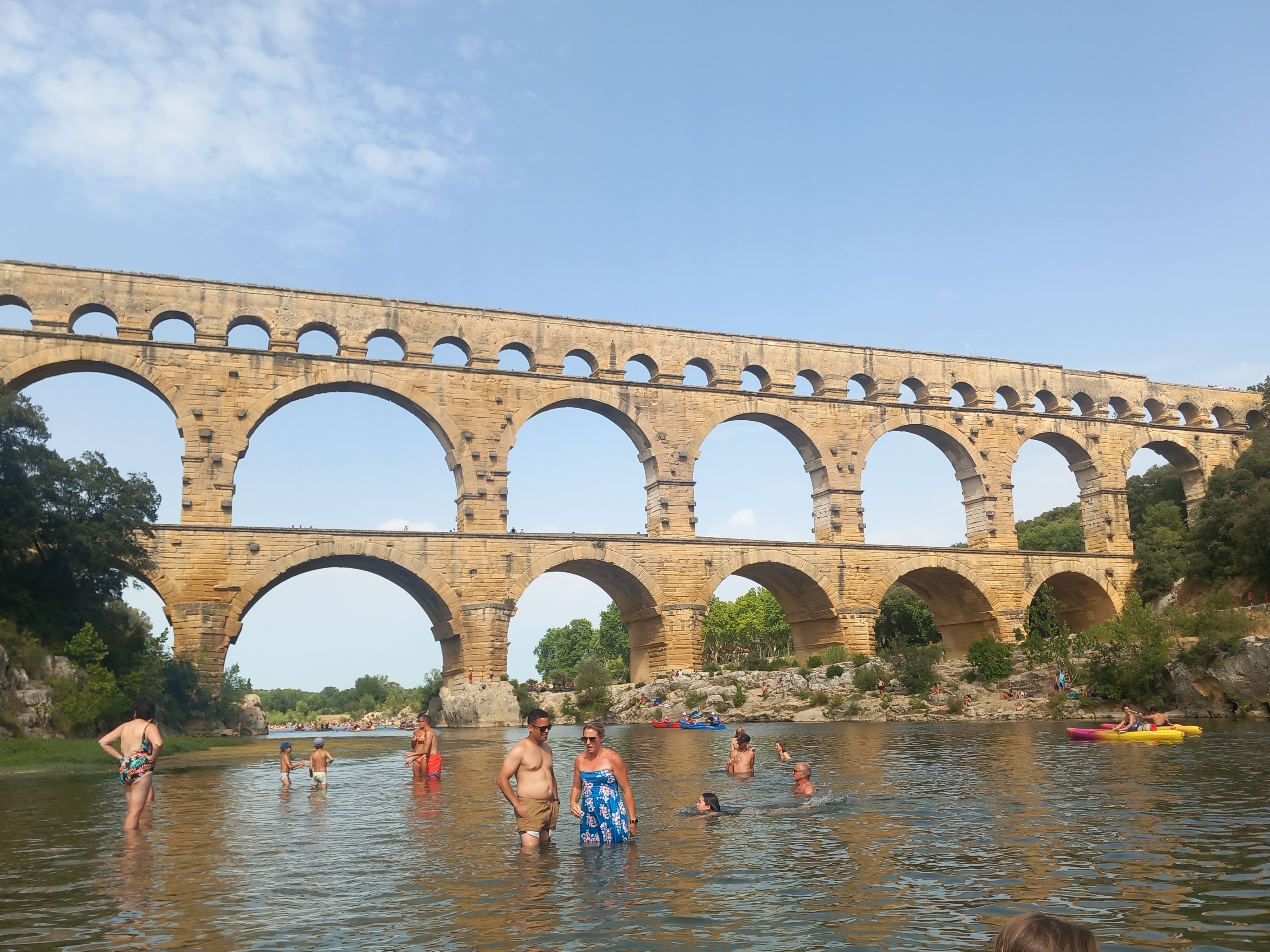 Magnifique 🤩 Nous nous sommes garés côté rive gauche (parking à 9€). Nous n’avons pas visité la partie du 3eme étage (payante) du pont. Nous sommes passés sur le pont adjacent du pont du Gard (niveau 2eme étage) la vue est superbe aussi Arrivés sur place (niveau du parking)nous nous sommes inquiétés de voir sur le plan, la plage sur rive droite mais il y a une plage sur la rive droite aussi (merci au point accueil pour les informations) qui est plus abritée par la végétation. Si vous êtes dans le coin, passez y et baignez vous (attention pour les frileux)