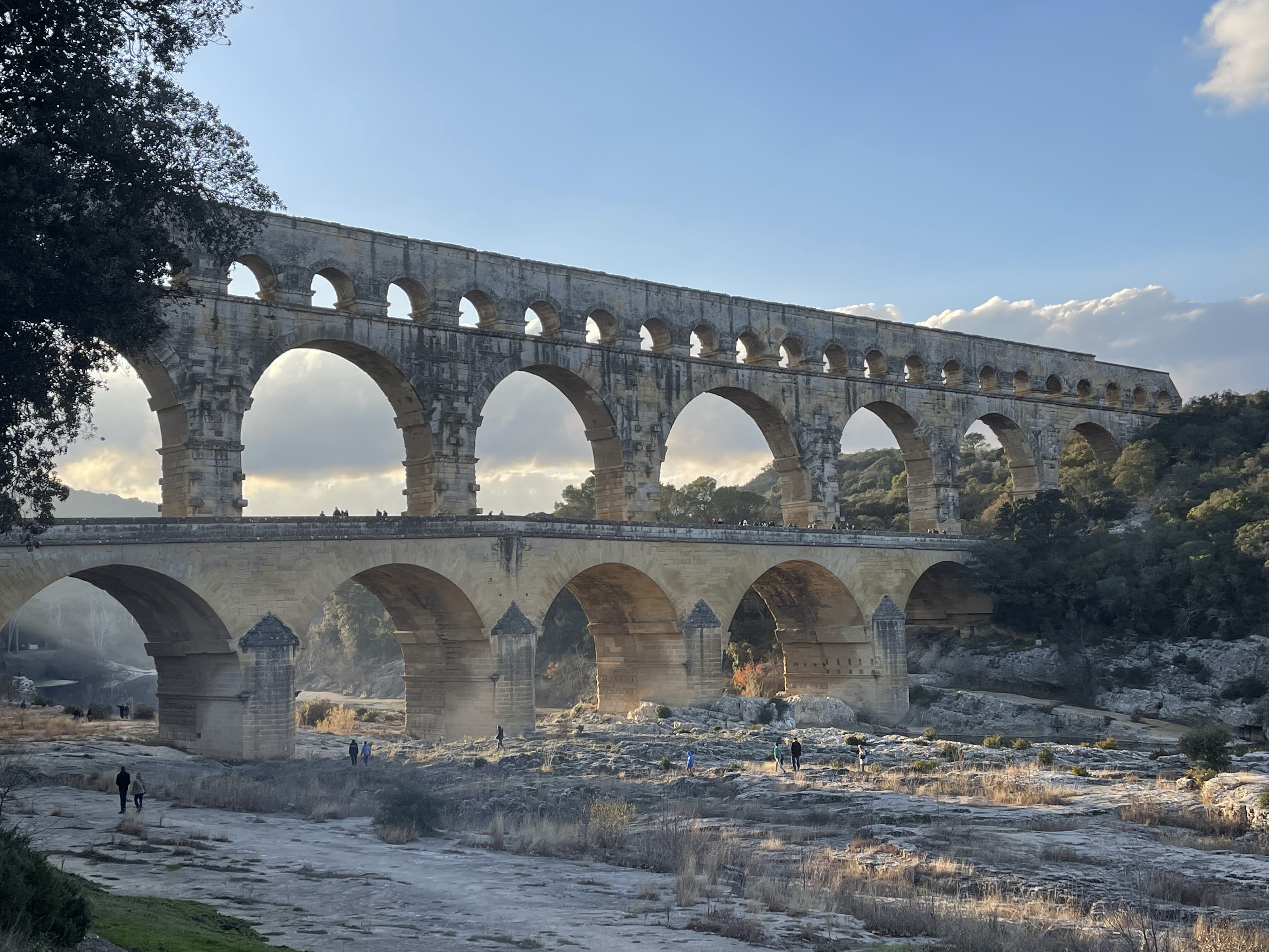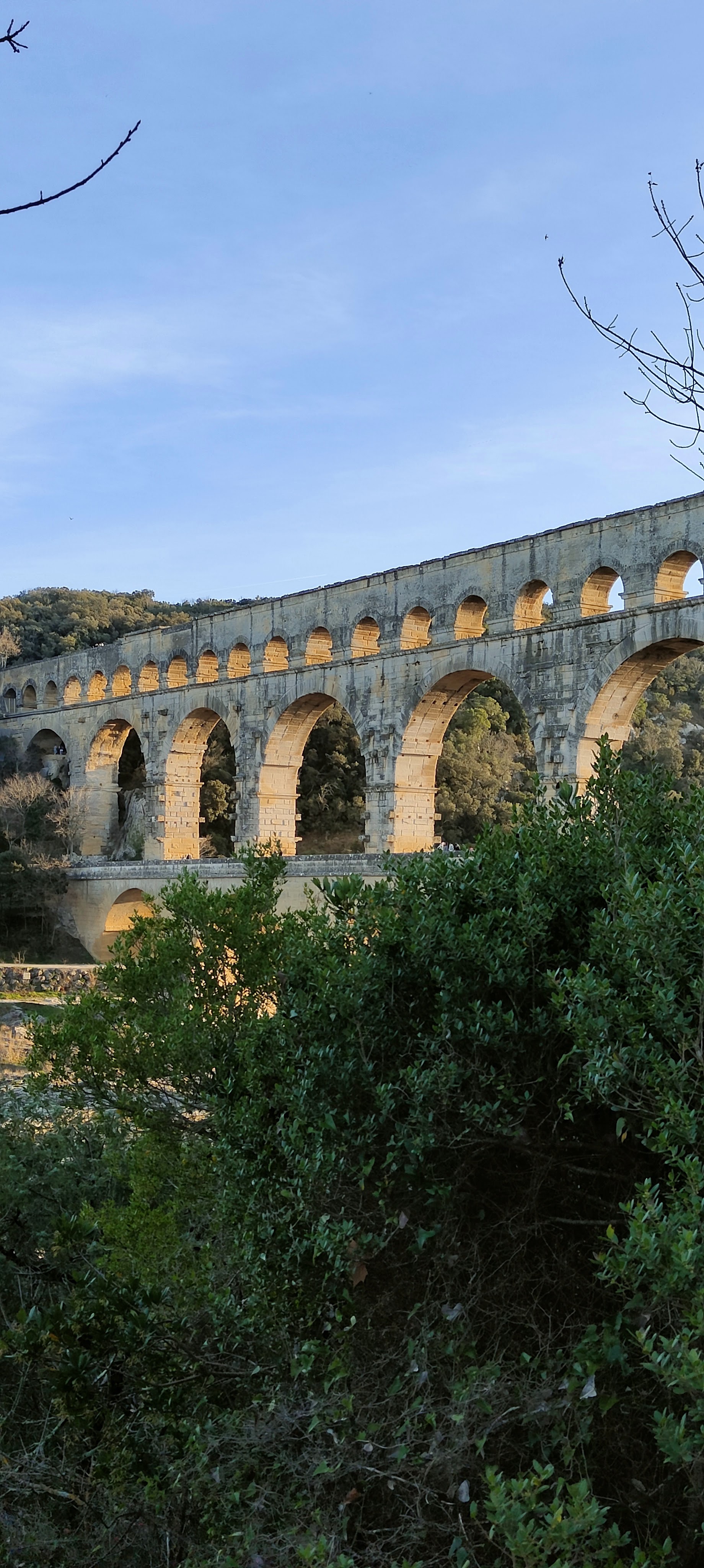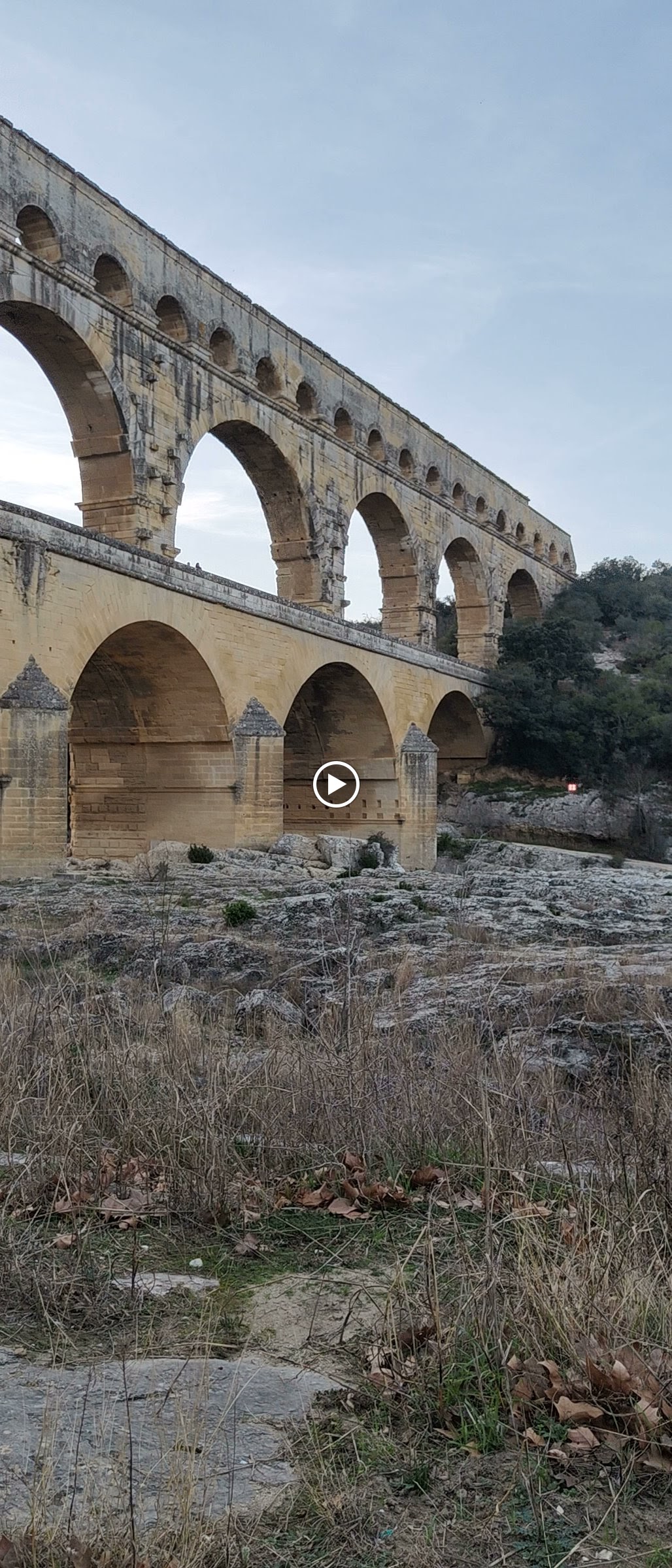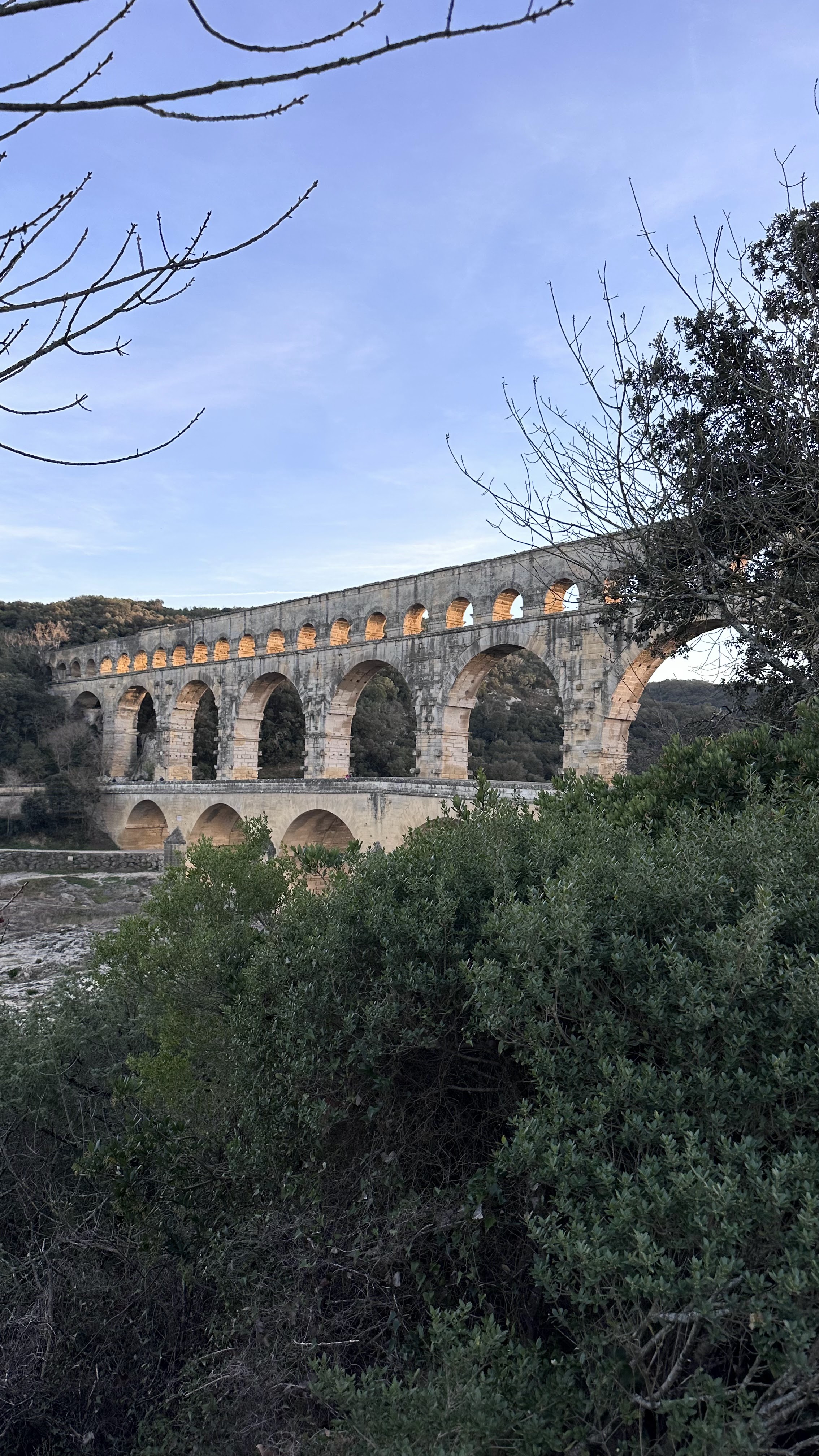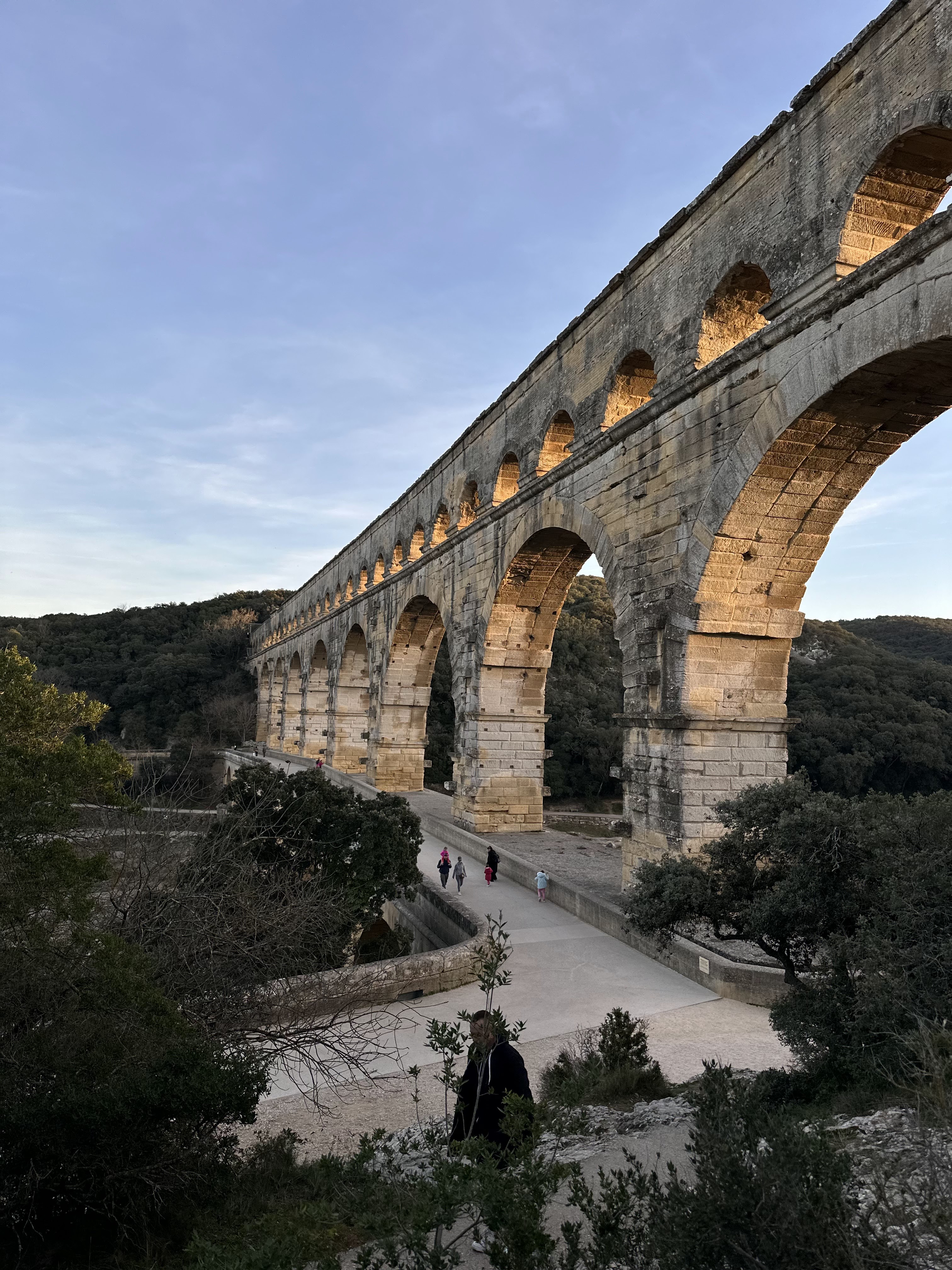 Un magnifique et majestueux aqueduc Romain à 3 niveaux, doublé sur sa partie basse d’un pont permettant d’enjamber le Gardon. L’aqueduc a probablement été construit dans la première moitié du 1 er siècle pour alimenter en eau la ville d’Augusta Nemausus (Nîmes). C’est au moyen âge que la partie basse de l’aqueduc a été échancrée pour réaliser le pont. Le site est somptueux et sera une étape indispensable lors de vos visites dans la région. N’hésitez pas à faire une petite grimpette vers les points de vue des rives droite et gauche (Le point de vue rive droite est le plus beau). Et aussi d’aller au plus près de l’eau pour voir le pont depuis le bas. A noter que le soir le pont est éclairé mais je n’ai pas vu d’horaire. Il manquerait sur tout le site quelques panneaux avec des explications détaillées. Sur la rive gauche vous avez un musée et un lieu d’information mais fermé lors de notre visite le premier janvier. Vous avez un parking sur chaque rive pour stationner pour un prix de 9€ forfaitaire à la journée, donc vous avez le temps de profiter des lieux. Après il faut marcher 10 à 15 minutes.