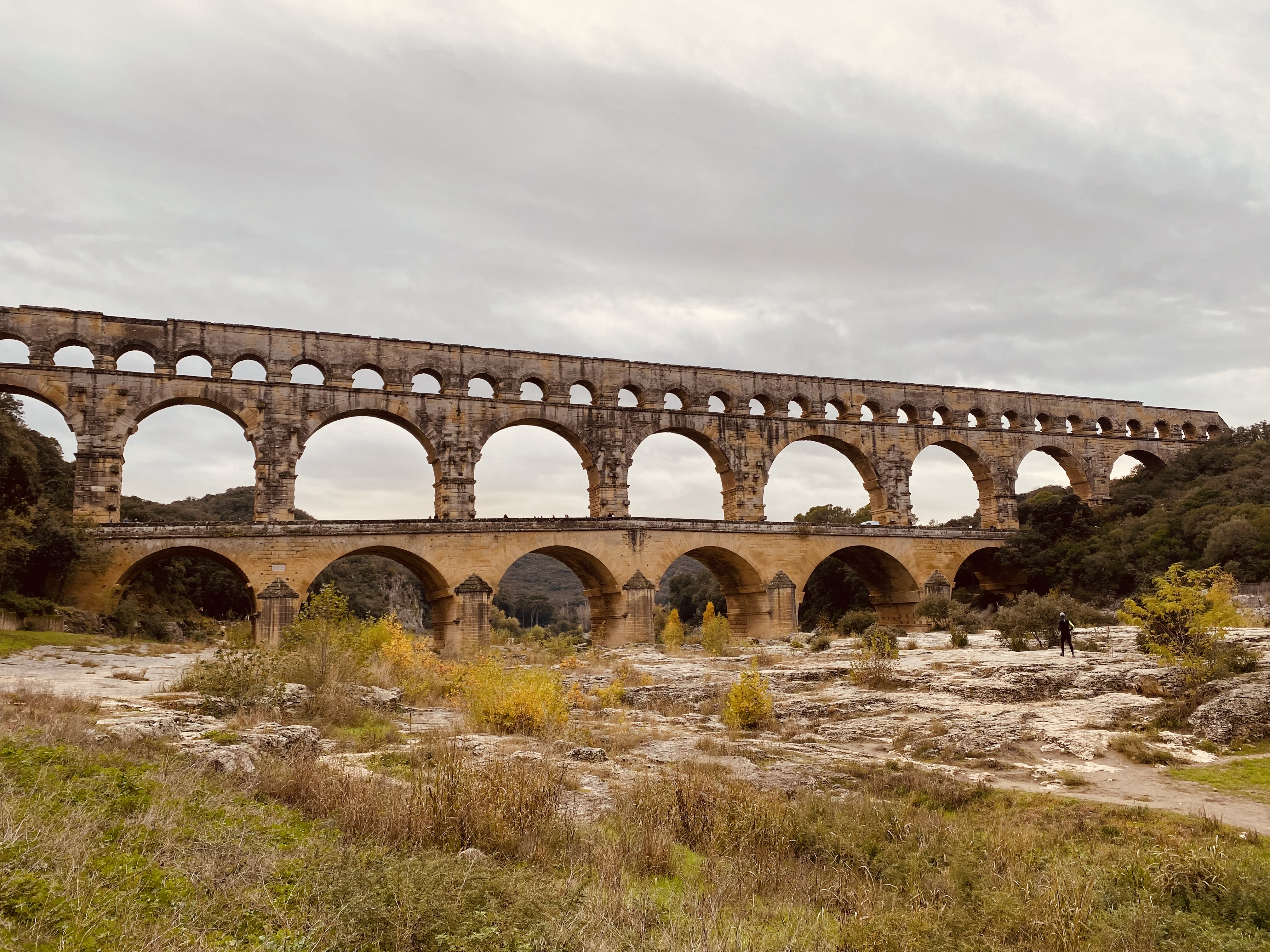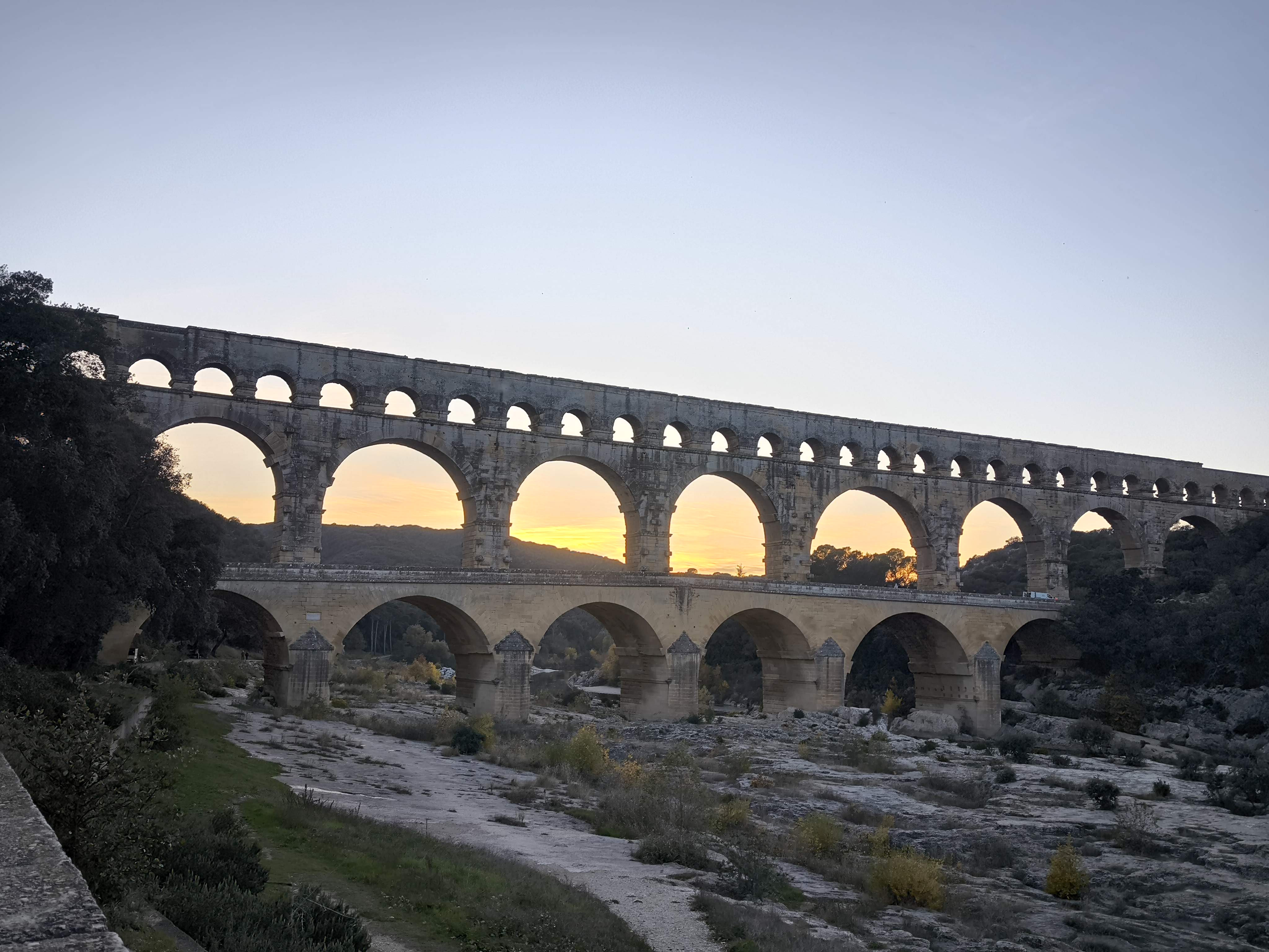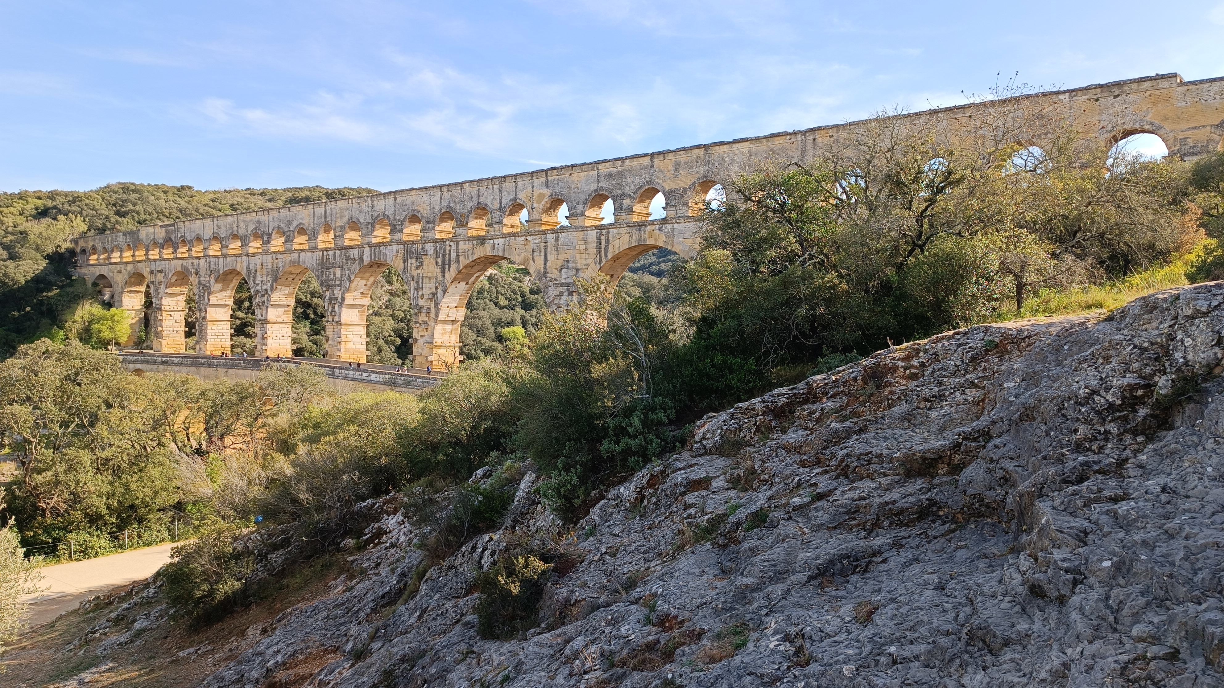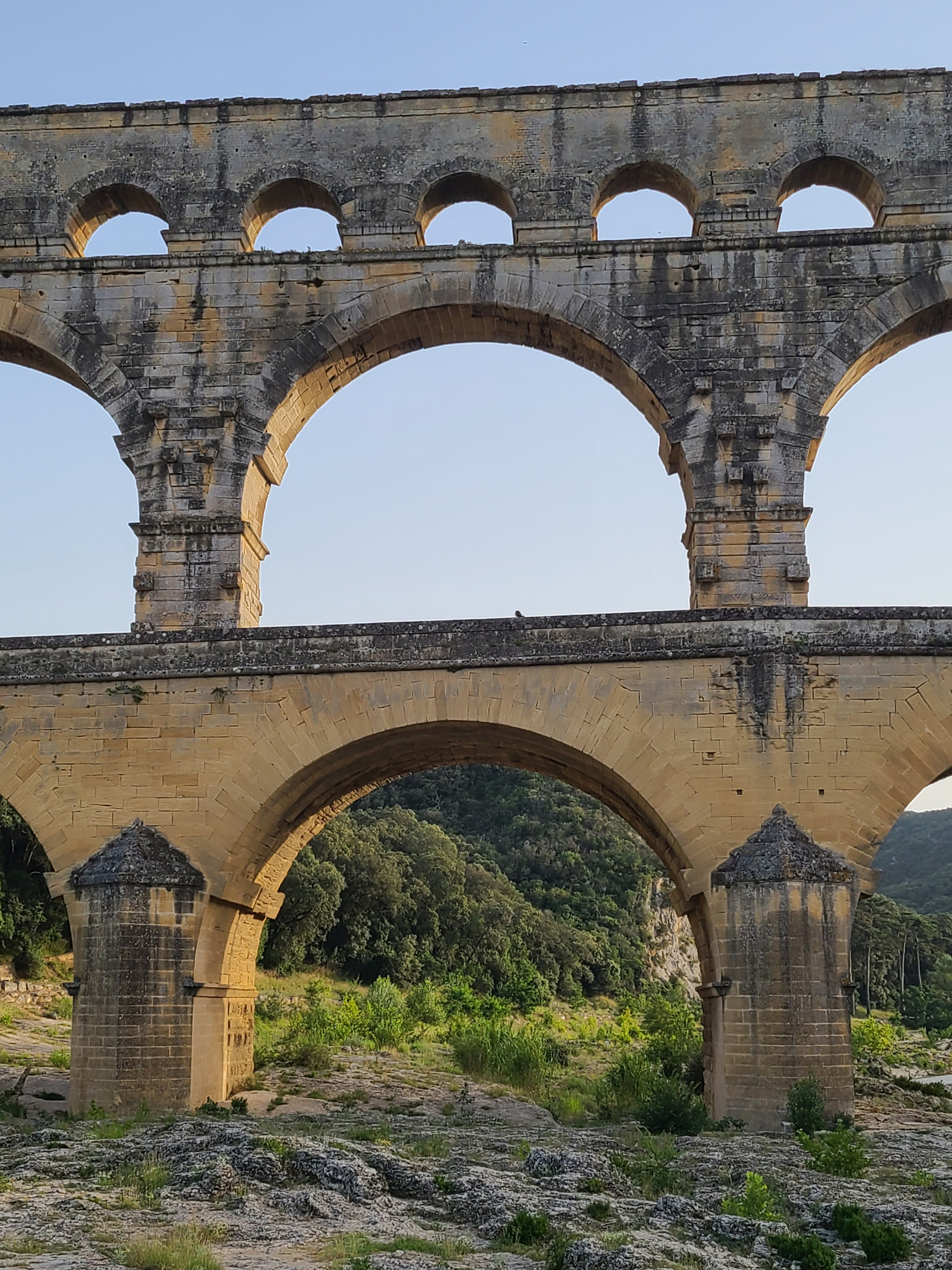 Un magnifique et majestueux aqueduc Romain à 3 niveaux, doublé sur sa partie basse d’un pont permettant d’enjamber le Gardon. L’aqueduc a probablement été construit dans la première moitié du 1 er siècle pour alimenter en eau la ville d’Augusta Nemausus (Nîmes). C’est au moyen âge que la partie basse de l’aqueduc a été échancrée pour réaliser le pont. Le site est somptueux et sera une étape indispensable lors de vos visites dans la région. N’hésitez pas à faire une petite grimpette vers les points de vue des rives droite et gauche (Le point de vue rive droite est le plus beau). Et aussi d’aller au plus près de l’eau pour voir le pont depuis le bas. A noter que le soir le pont est éclairé mais je n’ai pas vu d’horaire. Il manquerait sur tout le site quelques panneaux avec des explications détaillées. Sur la rive gauche vous avez un musée et un lieu d’information mais fermé lors de notre visite le premier janvier. Vous avez un parking sur chaque rive pour stationner pour un prix de 9€ forfaitaire à la journée, donc vous avez le temps de profiter des lieux. Après il faut marcher 10 à 15 minutes.