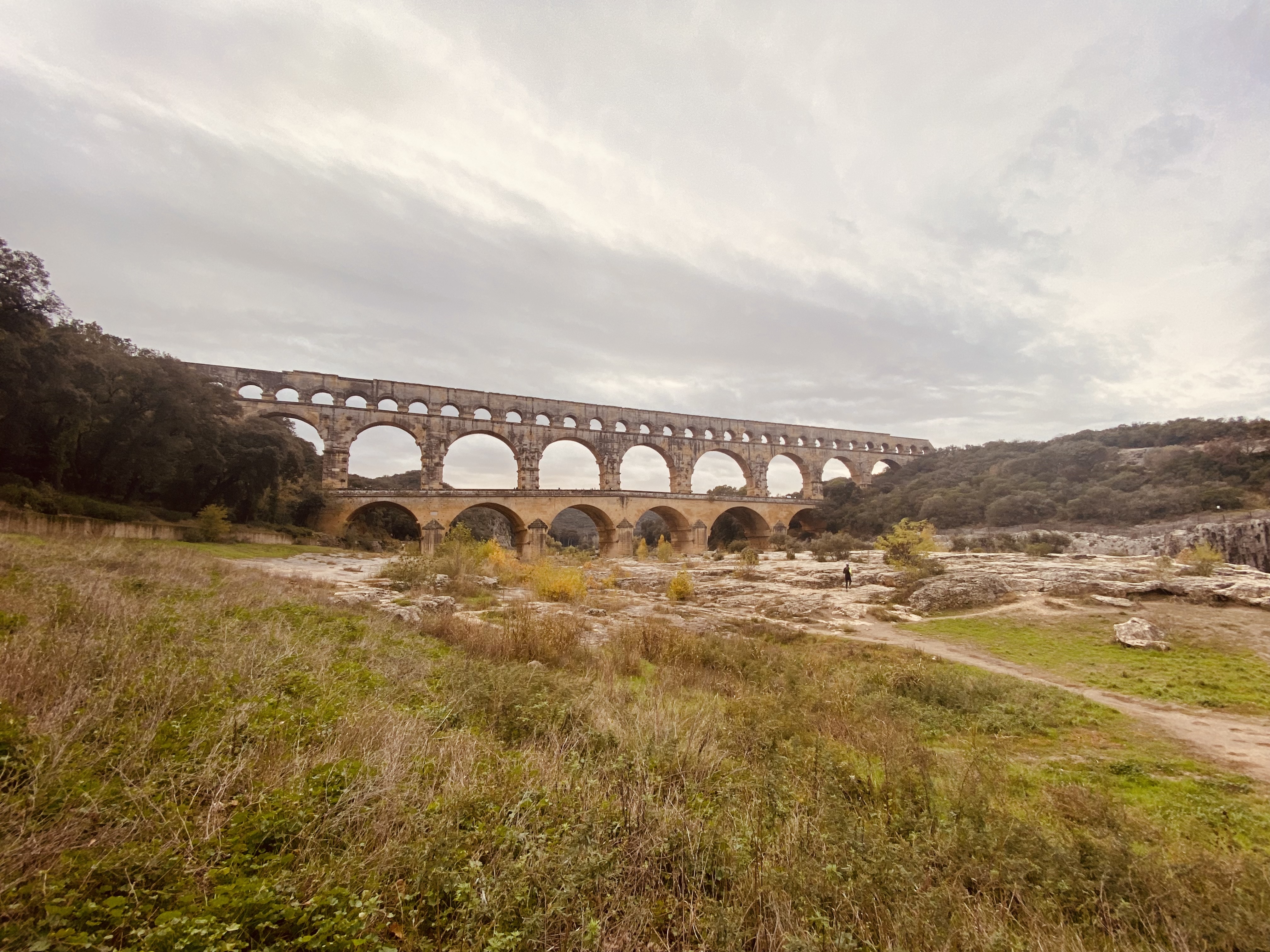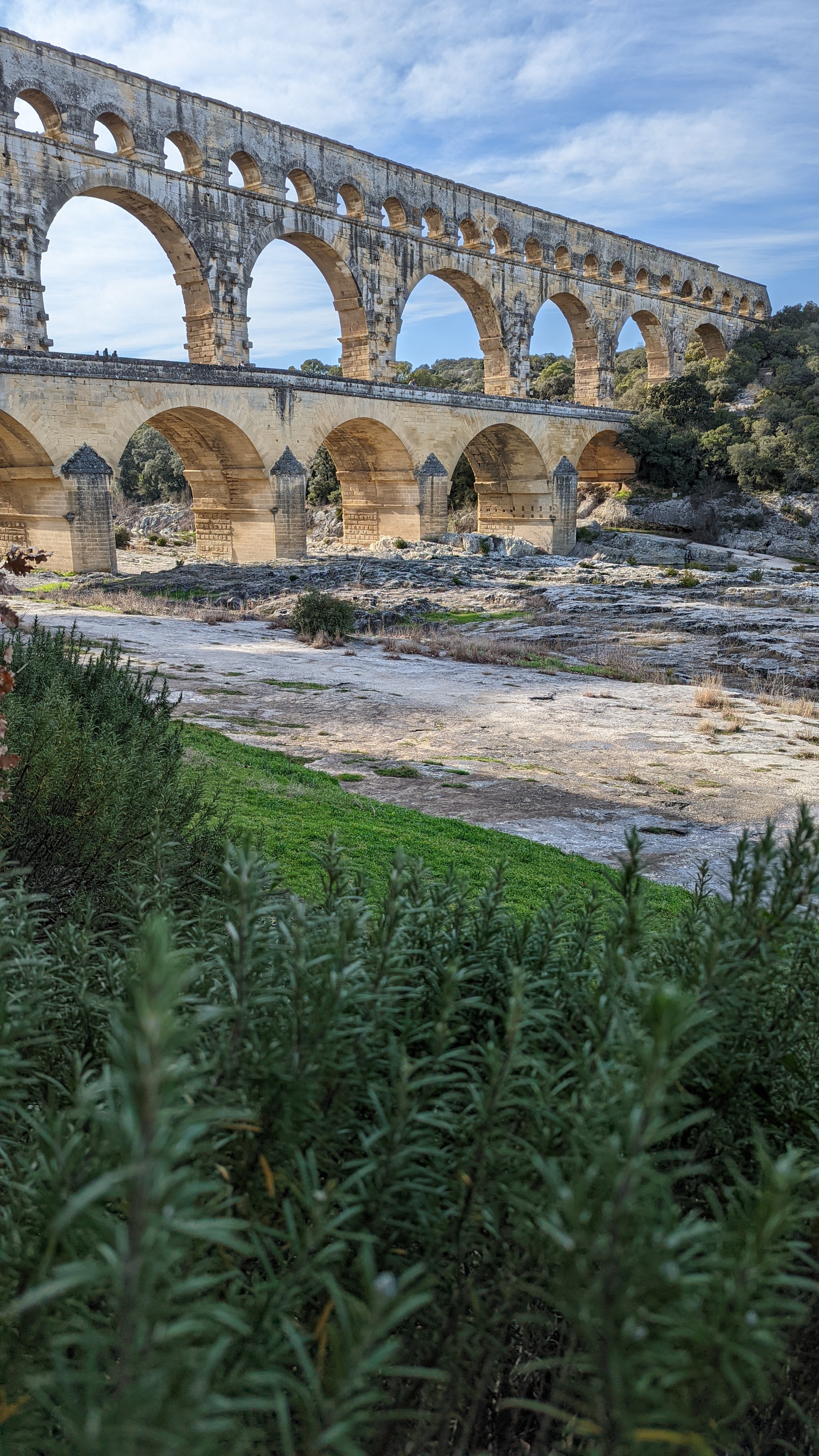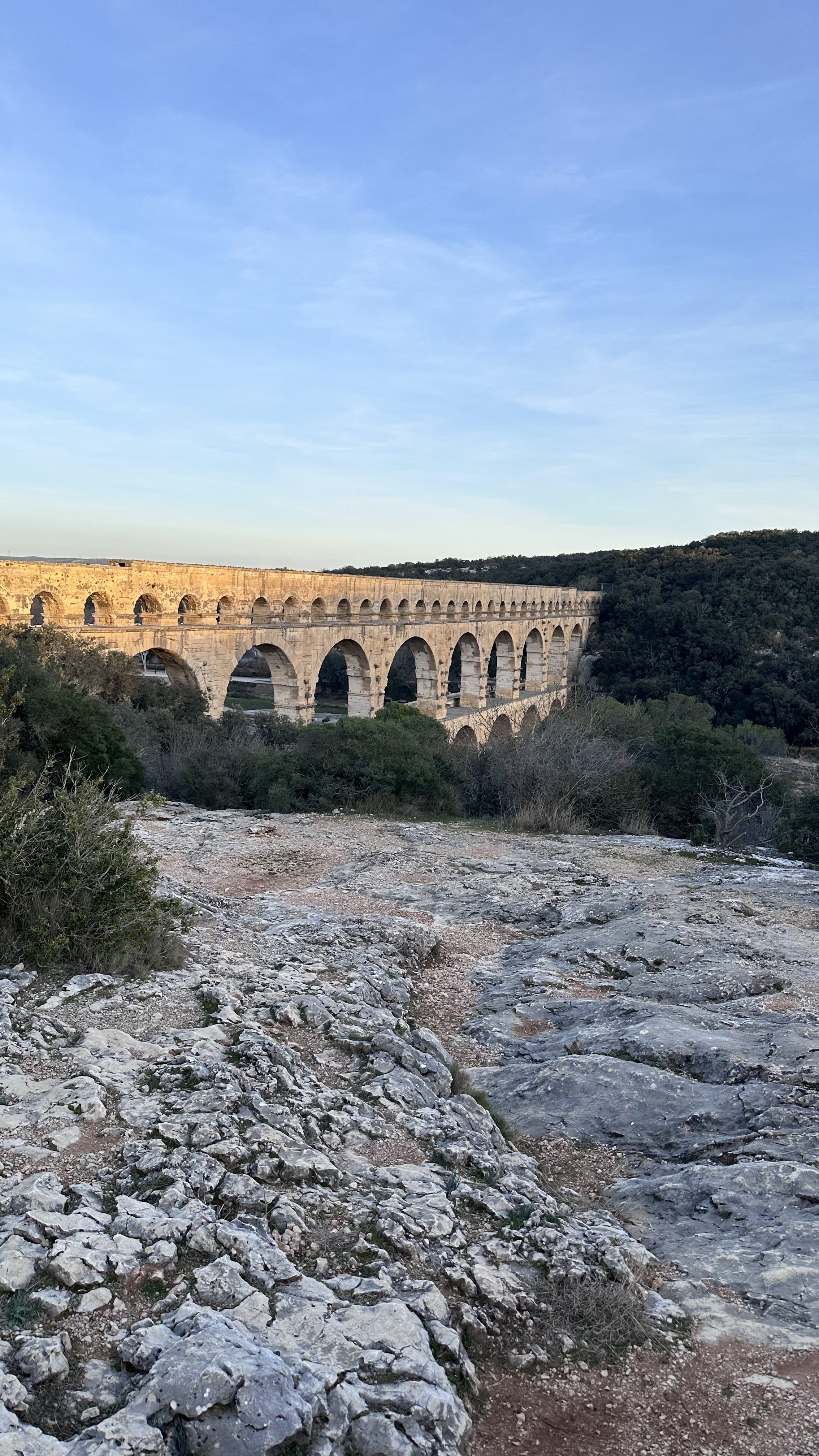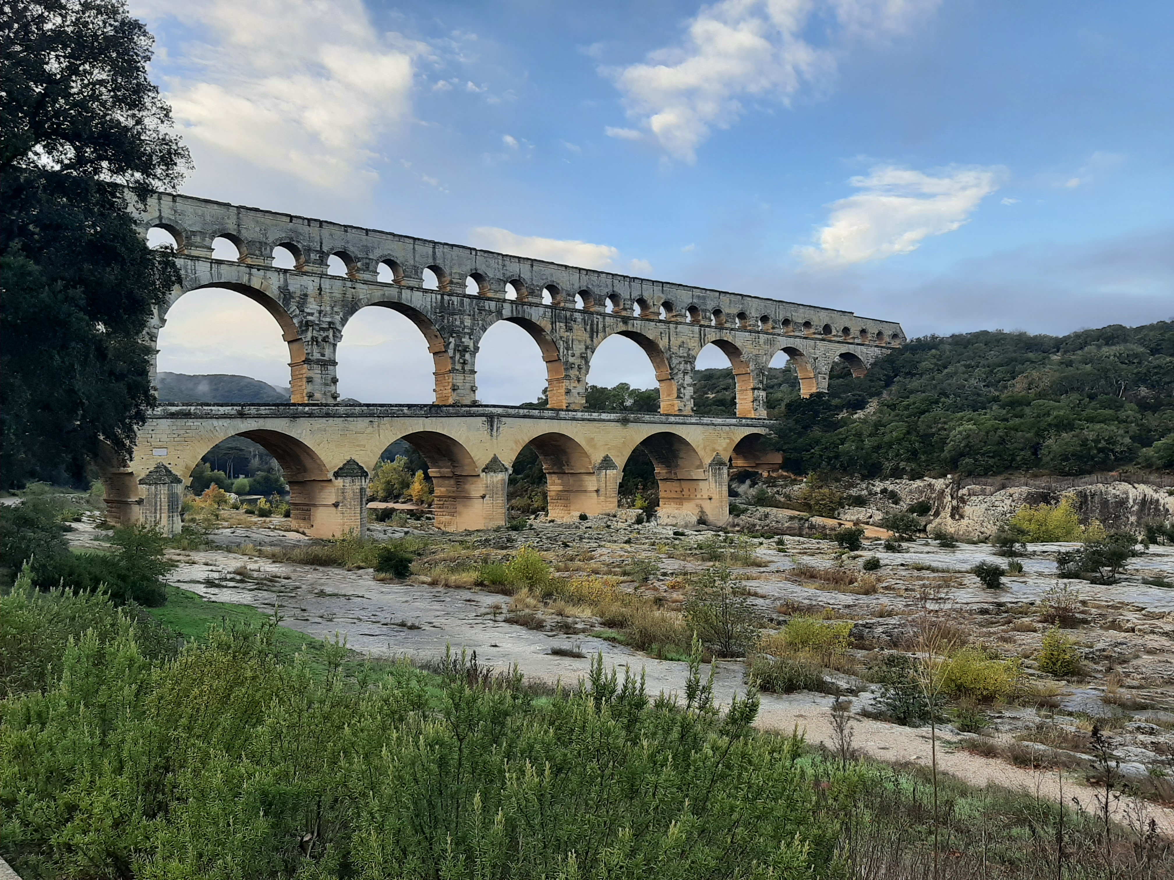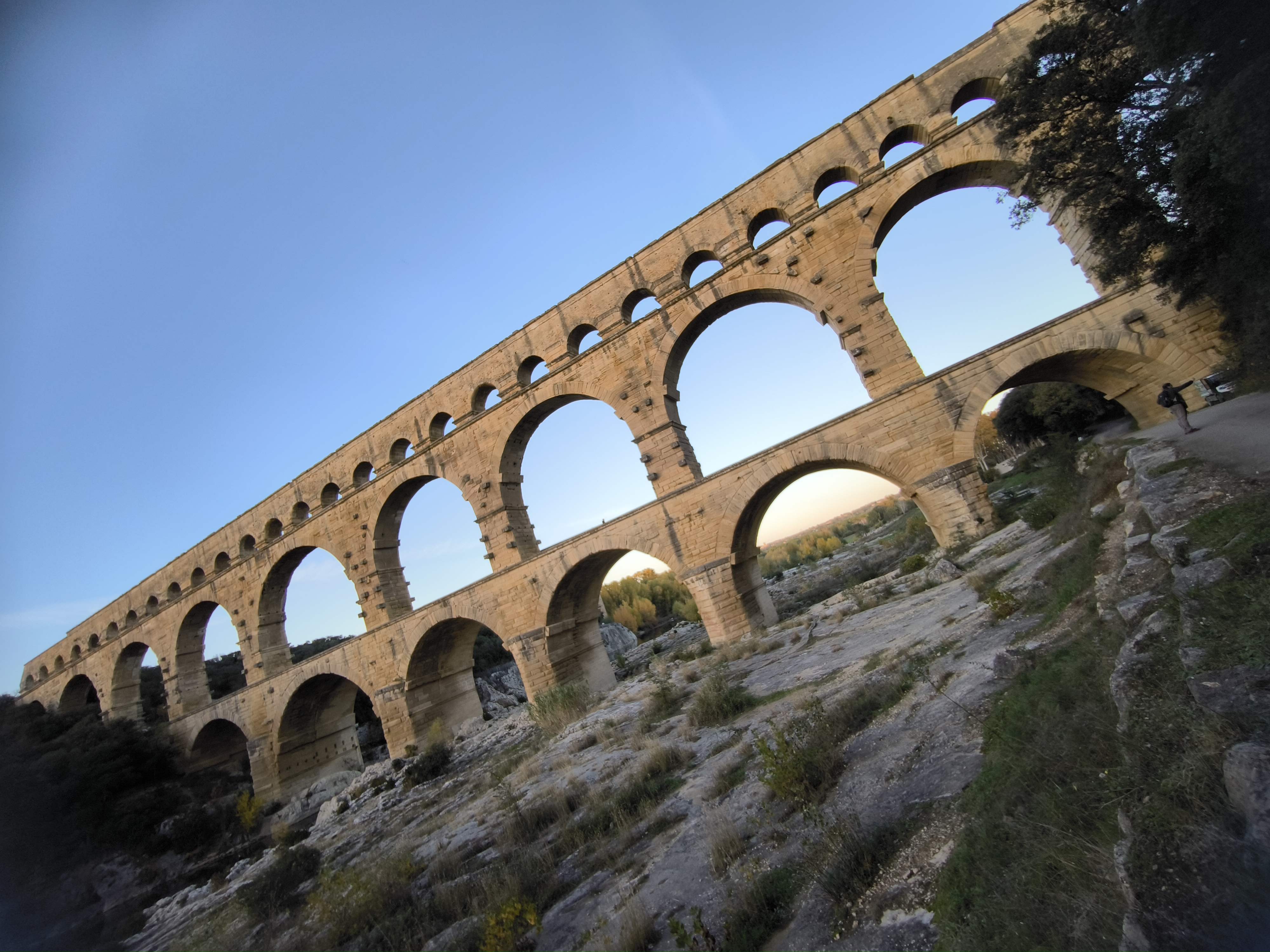 Un magnifique et majestueux aqueduc Romain à 3 niveaux, doublé sur sa partie basse d’un pont permettant d’enjamber le Gardon. L’aqueduc a probablement été construit dans la première moitié du 1 er siècle pour alimenter en eau la ville d’Augusta Nemausus (Nîmes). C’est au moyen âge que la partie basse de l’aqueduc a été échancrée pour réaliser le pont. Le site est somptueux et sera une étape indispensable lors de vos visites dans la région. N’hésitez pas à faire une petite grimpette vers les points de vue des rives droite et gauche (Le point de vue rive droite est le plus beau). Et aussi d’aller au plus près de l’eau pour voir le pont depuis le bas. A noter que le soir le pont est éclairé mais je n’ai pas vu d’horaire. Il manquerait sur tout le site quelques panneaux avec des explications détaillées. Sur la rive gauche vous avez un musée et un lieu d’information mais fermé lors de notre visite le premier janvier. Vous avez un parking sur chaque rive pour stationner pour un prix de 9€ forfaitaire à la journée, donc vous avez le temps de profiter des lieux. Après il faut marcher 10 à 15 minutes.