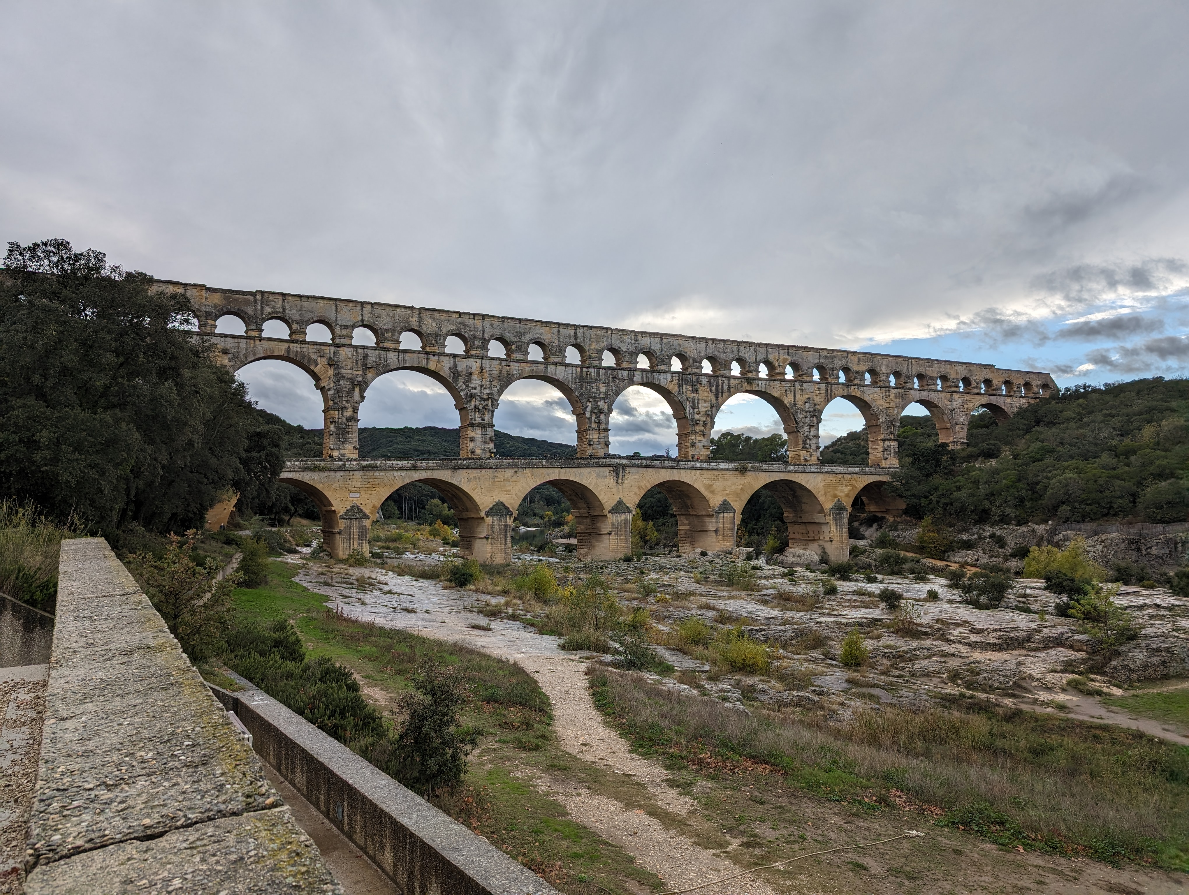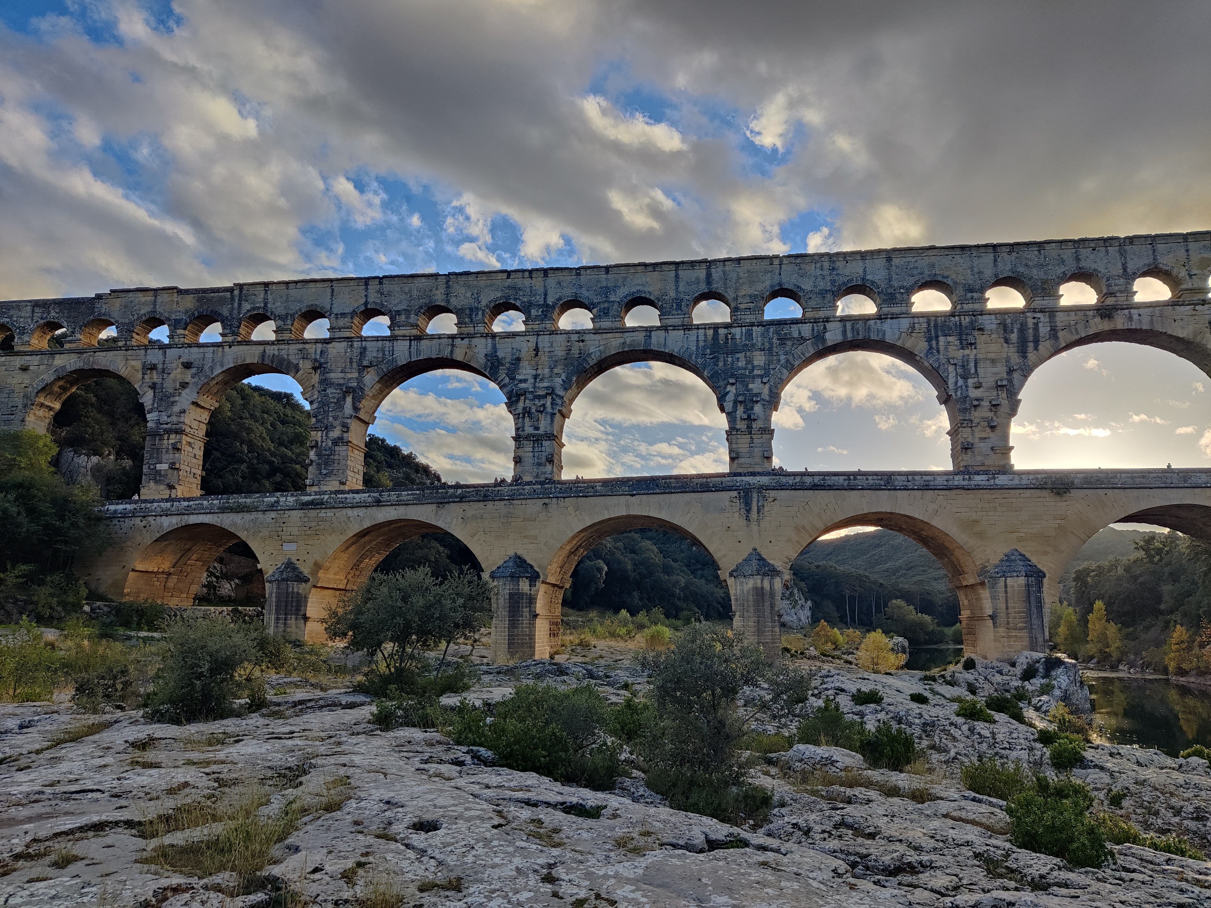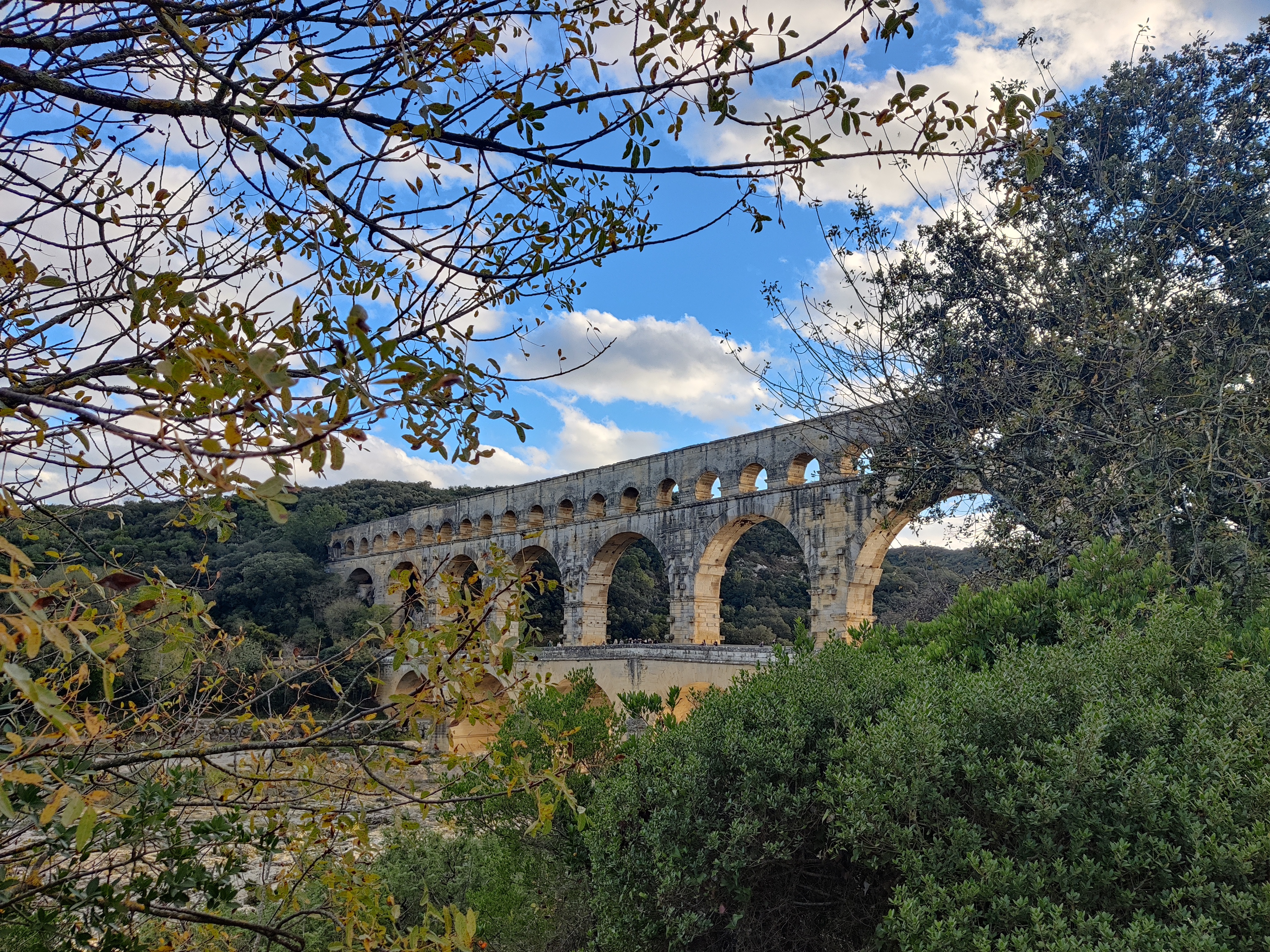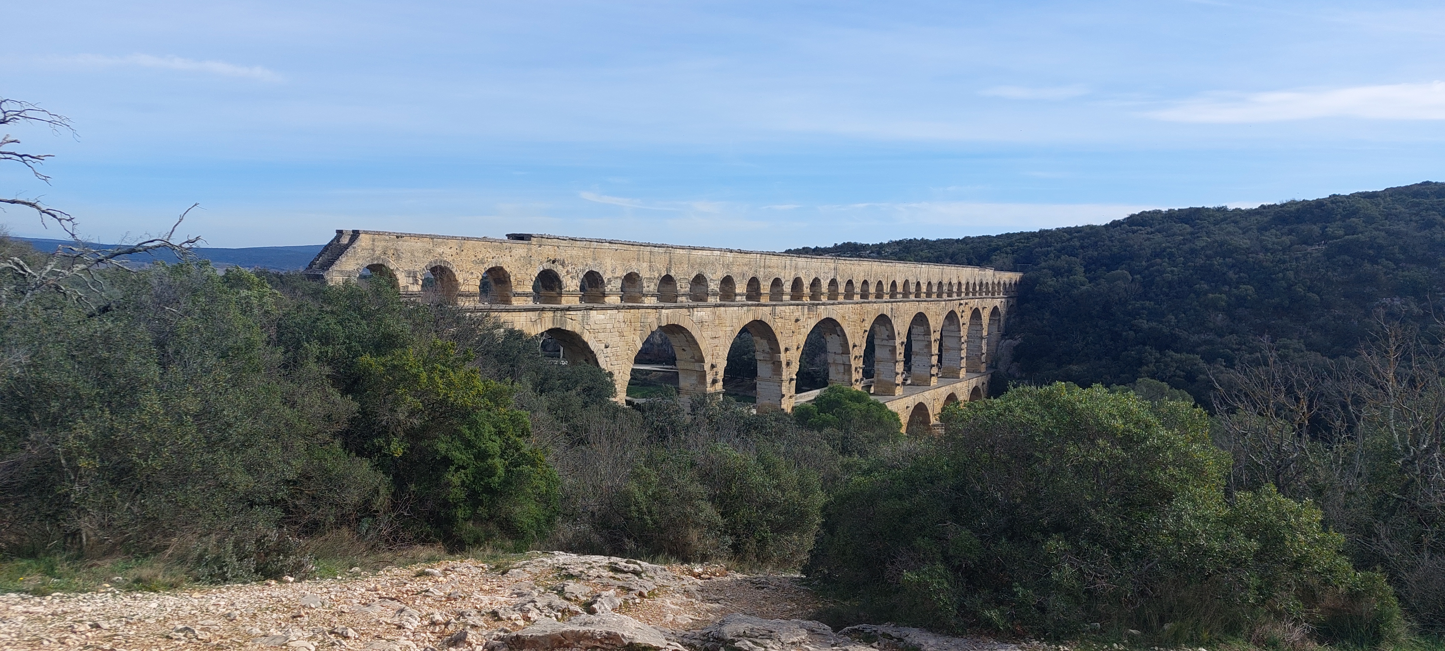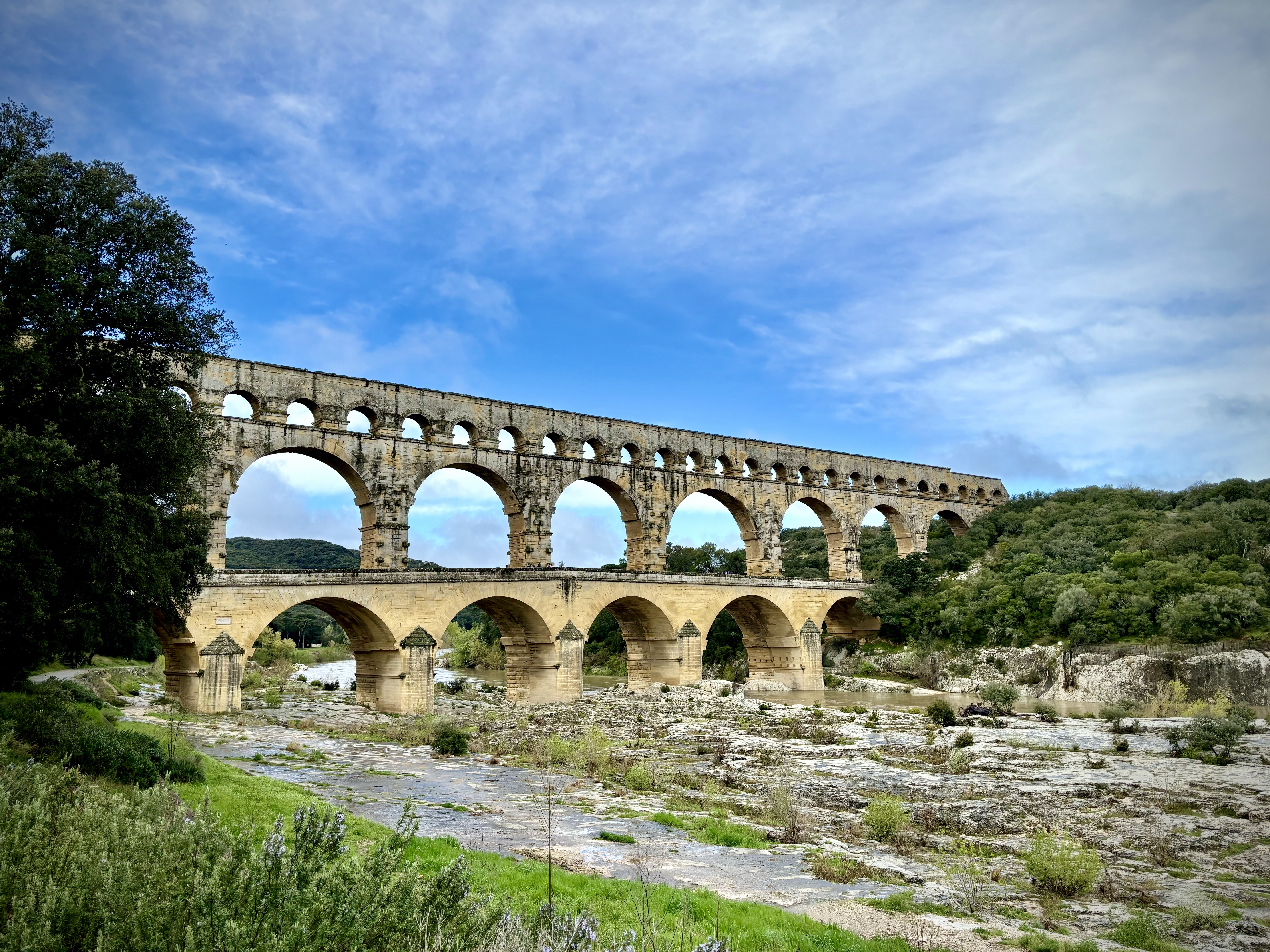Un magnifique et majestueux aqueduc Romain à 3 niveaux, doublé sur sa partie basse d’un pont permettant d’enjamber le Gardon. L’aqueduc a probablement été construit dans la première moitié du 1 er siècle pour alimenter en eau la ville d’Augusta Nemausus (Nîmes). C’est au moyen âge que la partie basse de l’aqueduc a été échancrée pour réaliser le pont. Le site est somptueux et sera une étape indispensable lors de vos visites dans la région. N’hésitez pas à faire une petite grimpette vers les points de vue des rives droite et gauche (Le point de vue rive droite est le plus beau). Et aussi d’aller au plus près de l’eau pour voir le pont depuis le bas. A noter que le soir le pont est éclairé mais je n’ai pas vu d’horaire. Il manquerait sur tout le site quelques panneaux avec des explications détaillées. Sur la rive gauche vous avez un musée et un lieu d’information mais fermé lors de notre visite le premier janvier. Vous avez un parking sur chaque rive pour stationner pour un prix de 9€ forfaitaire à la journée, donc vous avez le temps de profiter des lieux. Après il faut marcher 10 à 15 minutes.