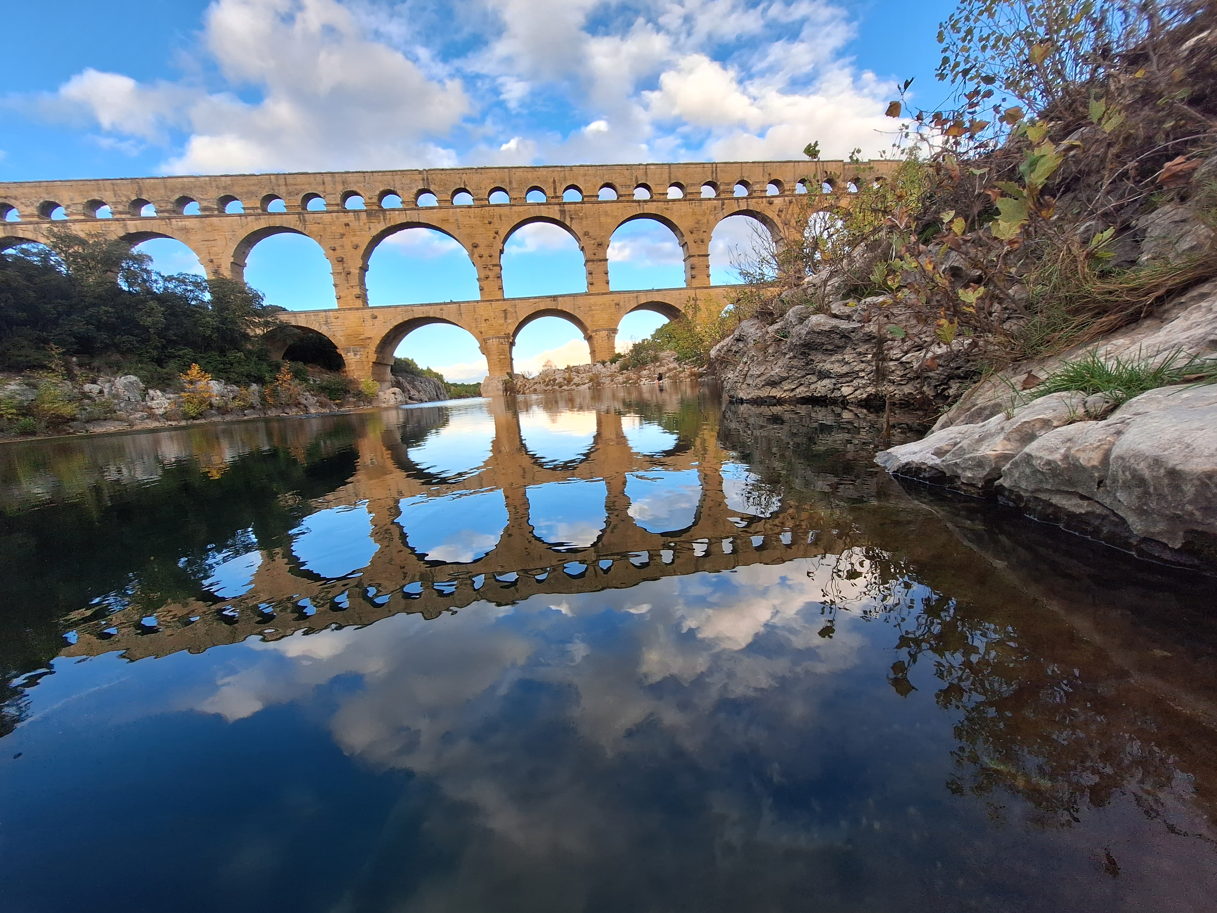 Mythique, le génie romain a fait merveille, endroit bien préservé et aménagé. Sur le chemin vous aurez la chance de voir des oliviers millénaires, extraordinaire. S’y rendre tôt en plein saison (8h30/9h) afin d’avoir de la place sur la parking, et surtout d’avoir les meilleurs spots pour se baigner au calme. Baignade possible à proximité de l’ouvrage offrant une magnifique vue.