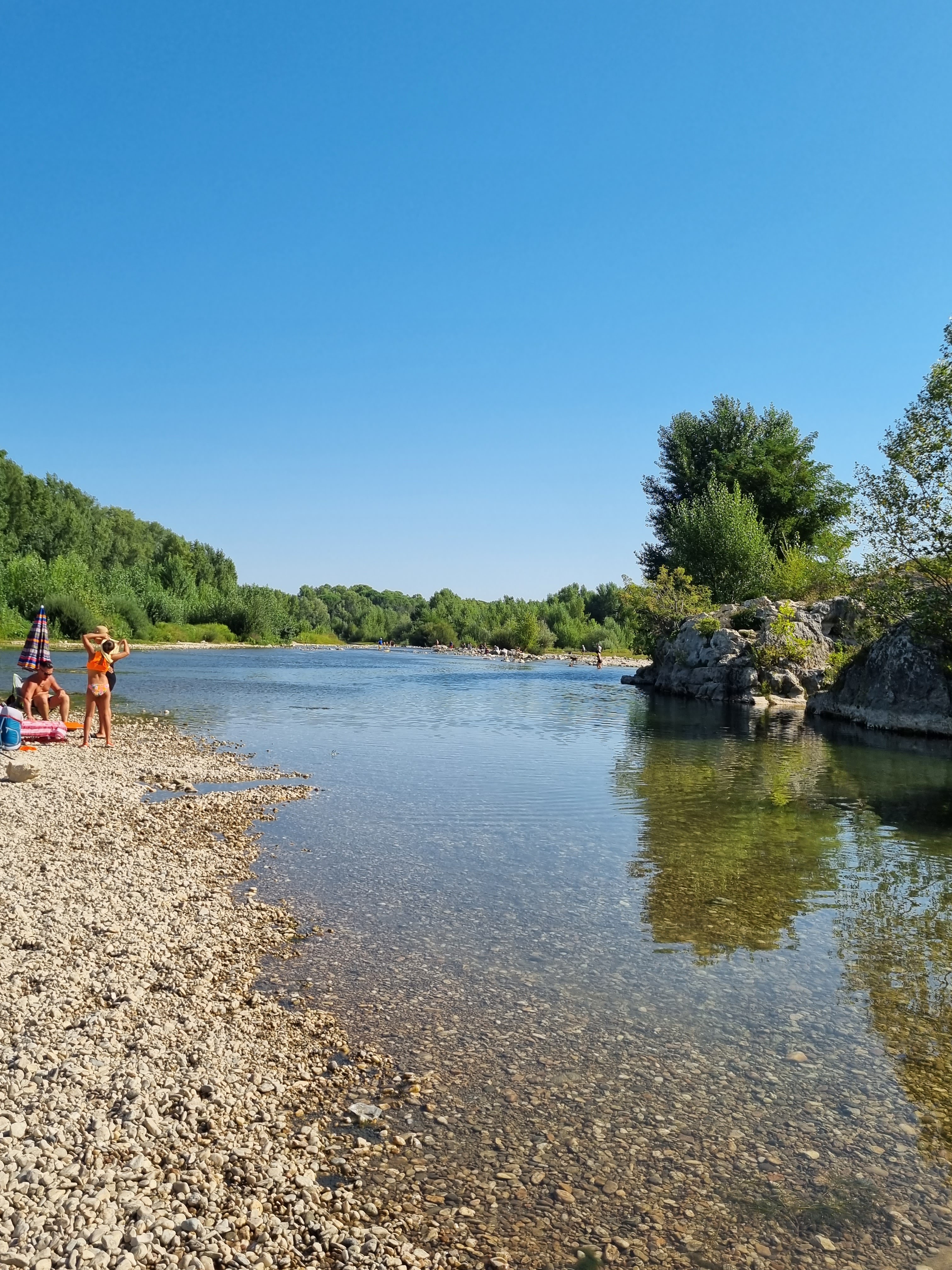 Endroit magique, bien adapté à tous. Avoir, comme décor de baignade, le Pont du Gard, c'est quand même incroyable! Merci. Petit bémol: dommage que le vrai Son et Lumière ne commence pas avant 22h30, en août. La nuit était tombée depuis plus de 30 mn et nos vacanciers étaient trop fatigués pour tenir jusque là. Mais ce n'est qu'un détail, sachant que c'est gratuit et que le spectacle a été projeté chaque soir de l'été.