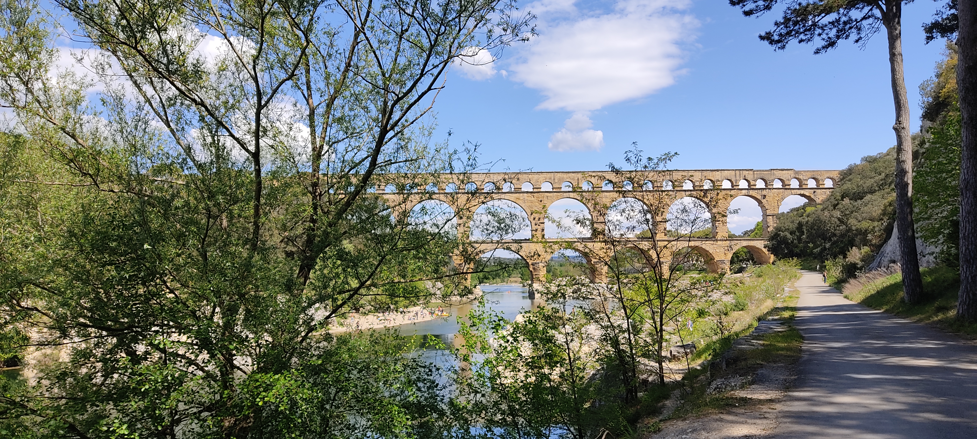 Nous avons emprunté le chemin de randonnée partant de Remoulins. Le sentier était désert, très agréable pour promener. A la fin, nous sommes arrivé sur un très beau panorama du pont du Gard. Le site est très sympathique, on peut se baigner, faire du canoë ... (même s'il y avait beaucoup de monde). Balade très sympa 👍
