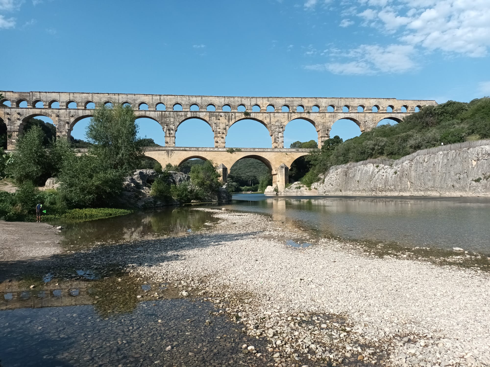 J'ai adoré visiter cet antique édifice romain. On peut même s s'y promener au premier étage. Les étages supérieurs sont interdits à la visite car trop dangereux. Ne désirant pas payer les 9 € de parking ni visiter le musée, je me suis garé sur la rive gauche du côté du village de Vers et j ai marché 30 mn jusqu'au pont. Le pont est libre d accès, c est gratuit. Apres la visite du pont, je me suis baigner. Il y a deux grandes plages de galets sur la rive gauche. L eau y est plutôt profonde car au milieu du Gard, je n n'y avais pas pied ! Ne pas oublier de prendre au moins une bouteille d'un litre par personne et un chapeau car il y fait très chaud et on ne s'en rend pas compte car il y a toujours un peu d'air dans la vallée. A l allée ou bien au retour vers Vers, vous pouvez visiter les ruines de l'acqueduc. Elles sont faciles d'accès et très intéressantes. La commune a bien debrousaillé et les maçons ont récemment bien consolidé les ruines qui ont quand même 2000 ans. Il paraît que le musée est tres instructif sur la façon dont les romains construisaient ces ouvrages. J'irais peut-être une autre fois ! Je joins quelques photographies en annexe. Si possible mettre un like ou utile sous l'avis sous les photos pour m'encourager dans ma démarche. Cela fait toujours très plaisir d'avoir des retours sympathiques. Merci d'avance. Bonne ballade. Eric de FEY F-57 Metz (Moselle).
