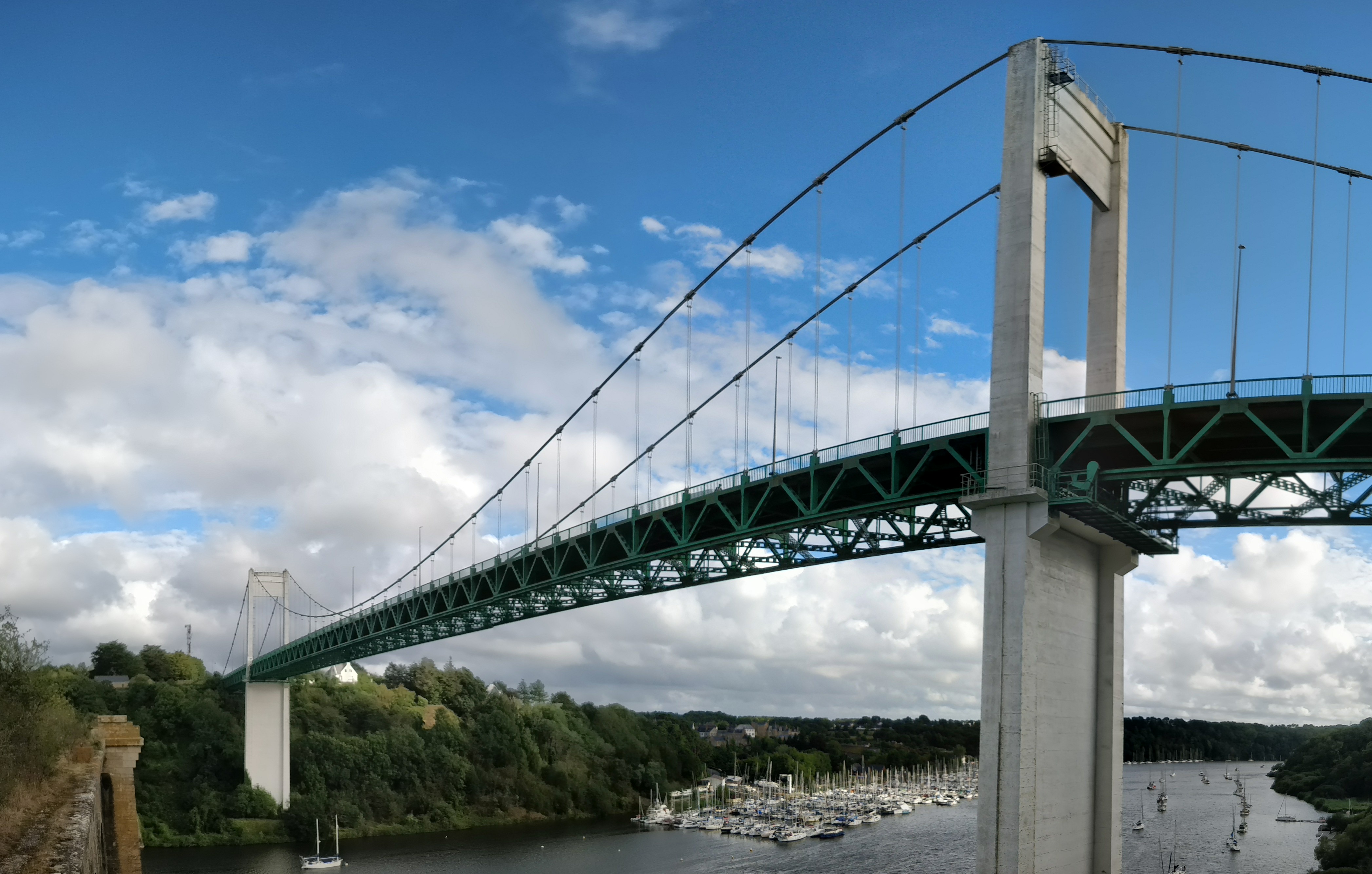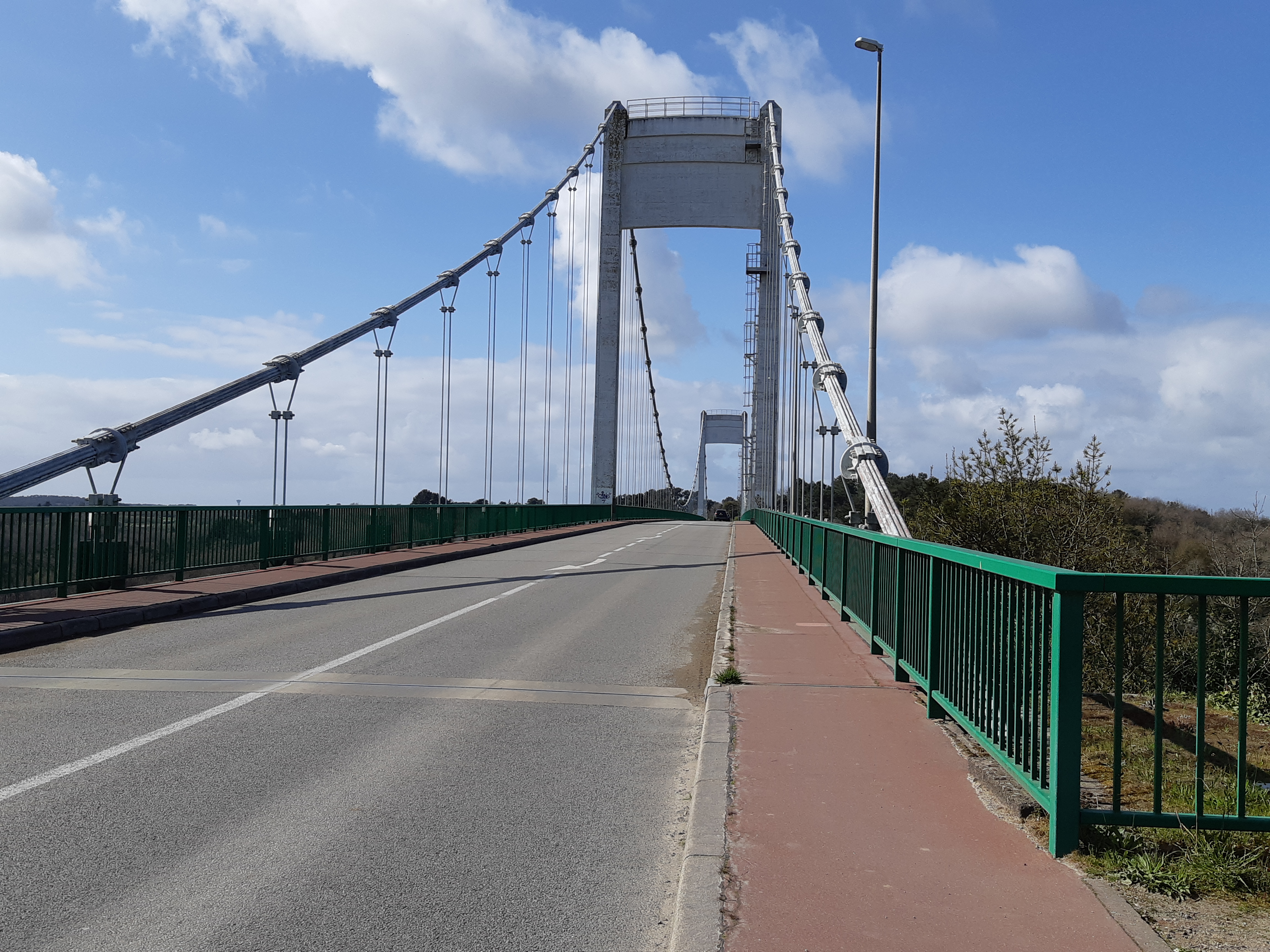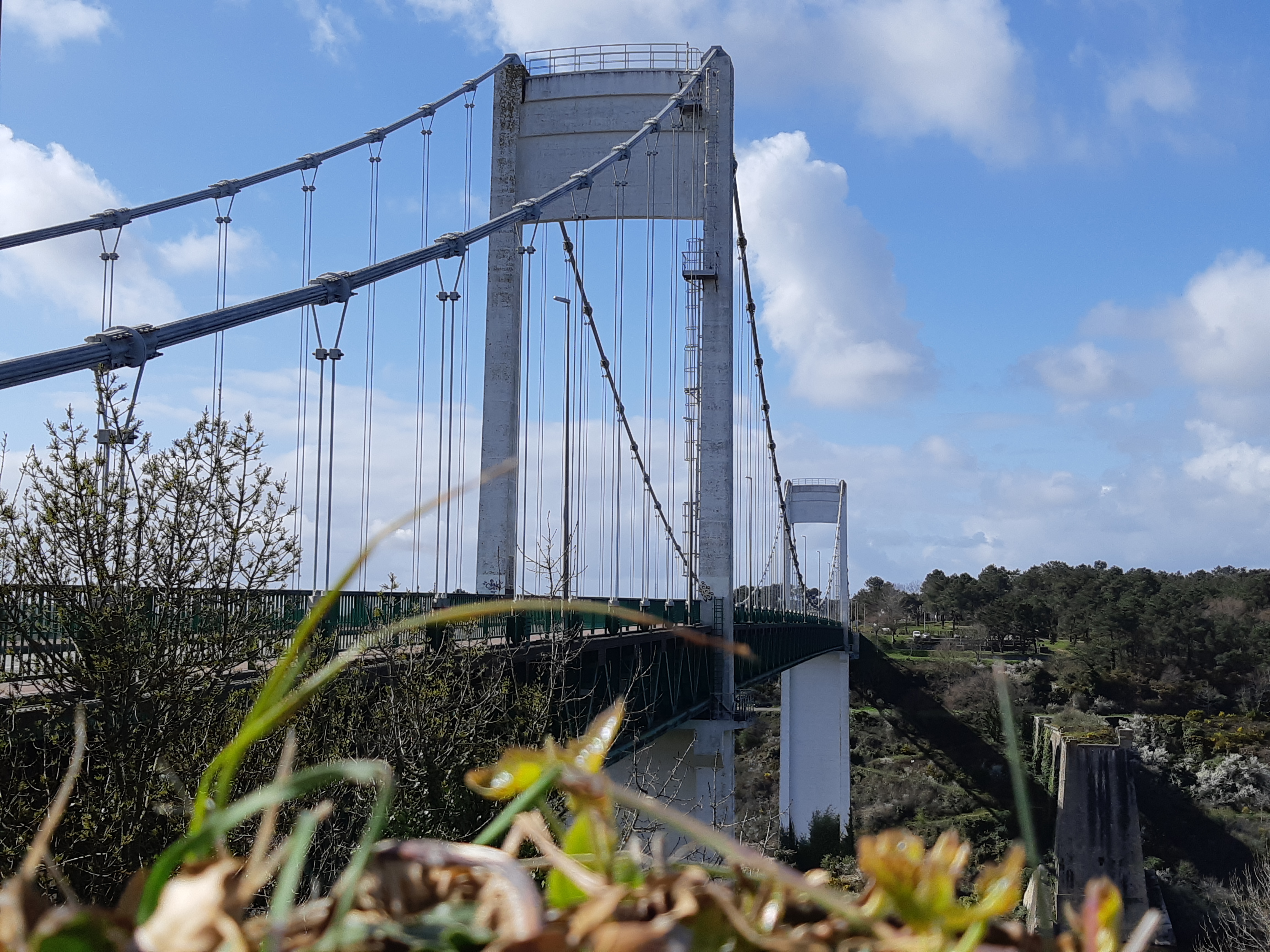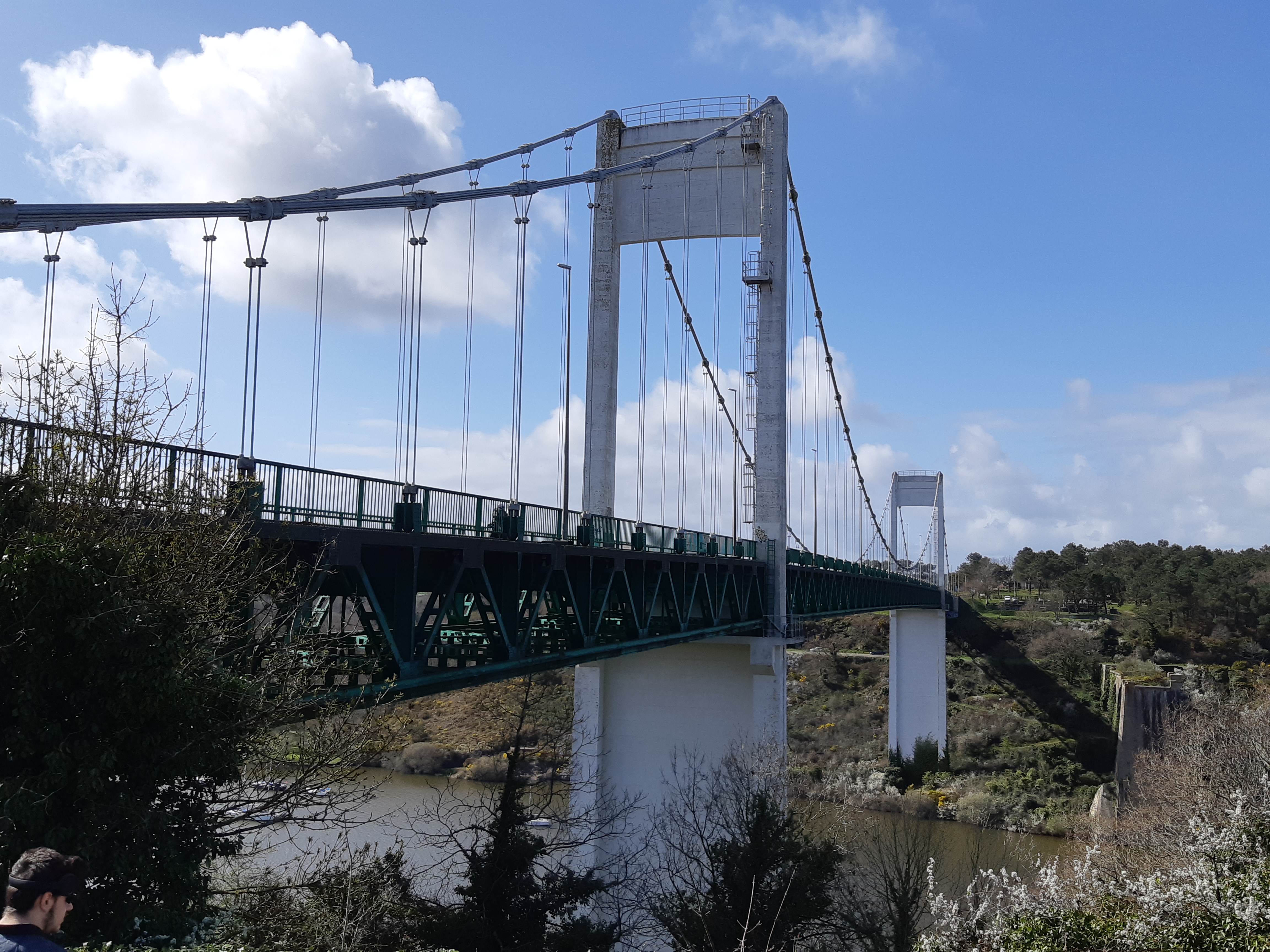 Dure l'histoire des ponts à La Roche Bernard. Plusieurs fois construits, plusieurs fois détruits, il faudra attendre la deuxième moitié du XXème siècle pour sécuriser les voies de communication entre Bretagne Nord et Sud. Le pont suspendu offre une vue magnifique sur la Vilaine et le bourg de La Roche Bernard.