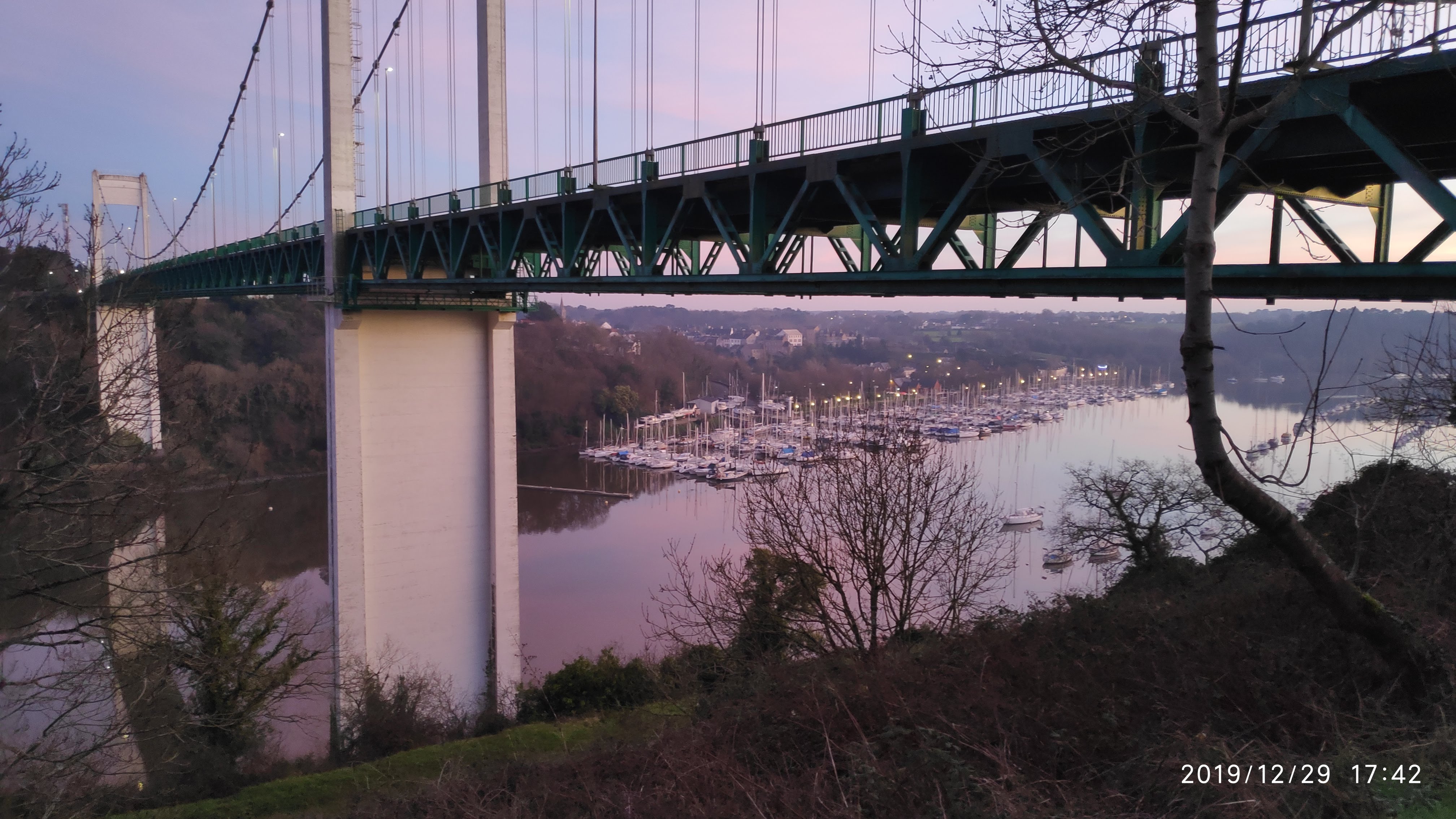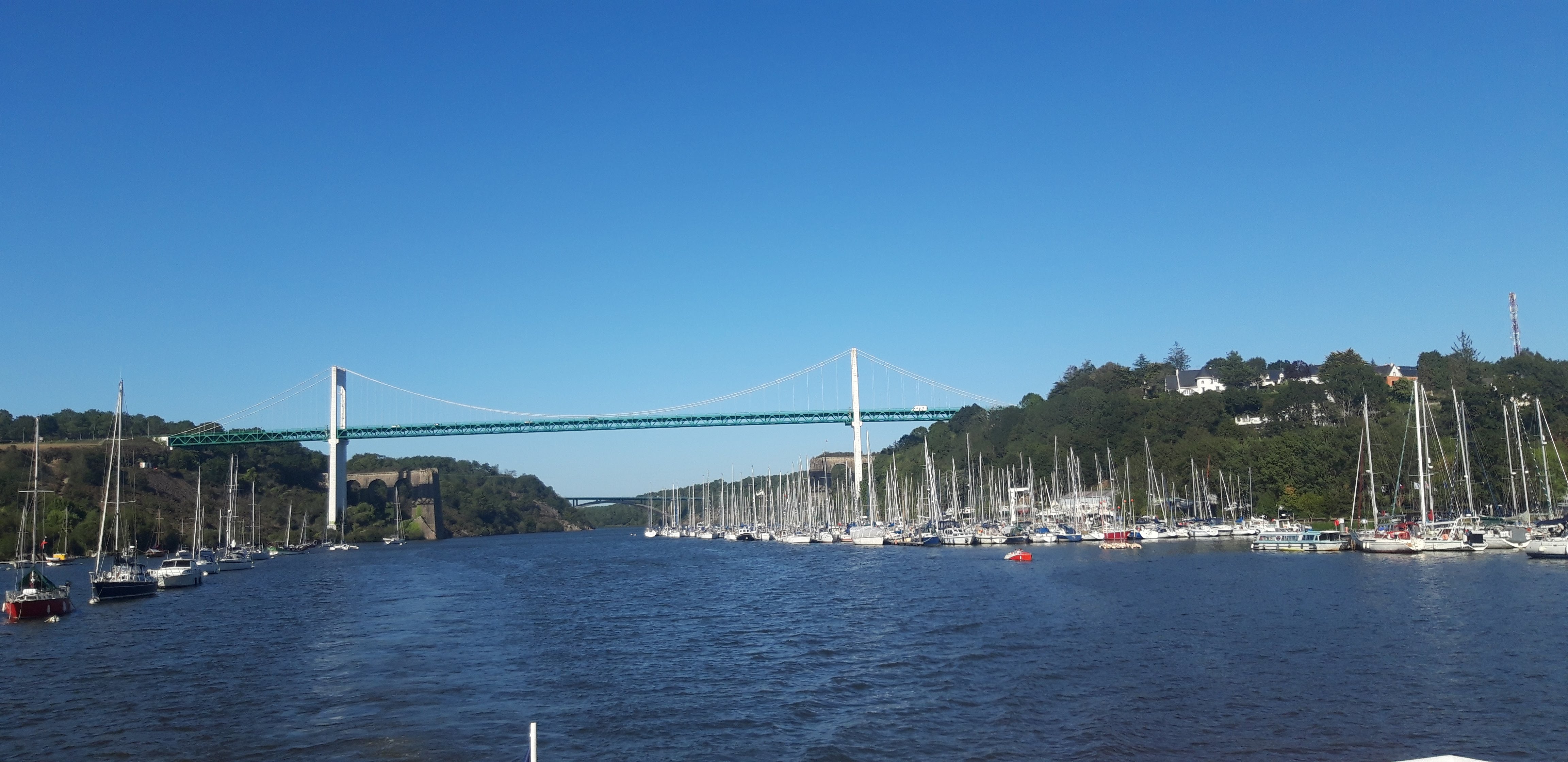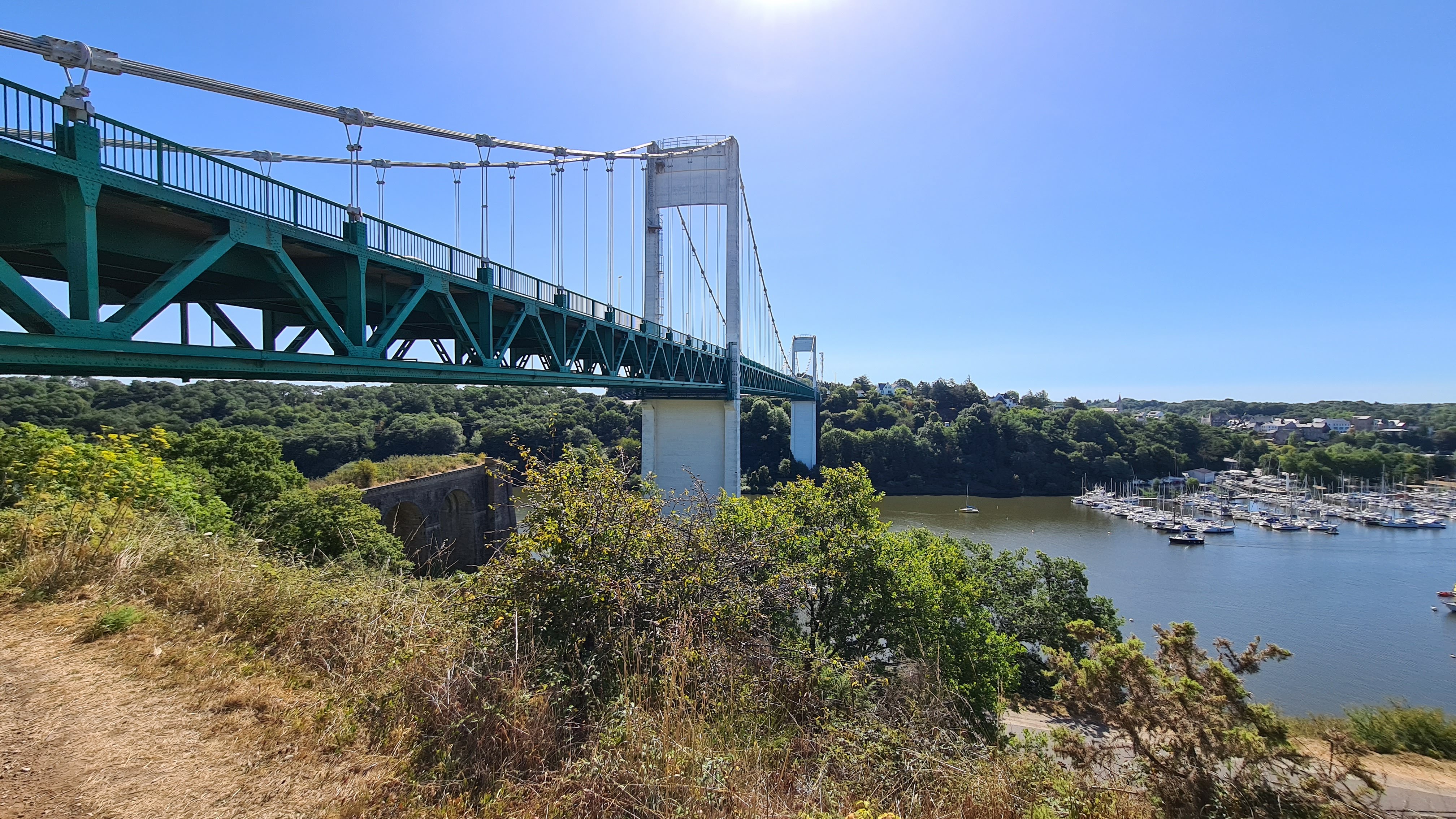 Faire un stop avant de passer ce pont pour profiter de la vue plongeante sur le port et le village de la Roche Bernard. Photographes : préparez vos appareils.