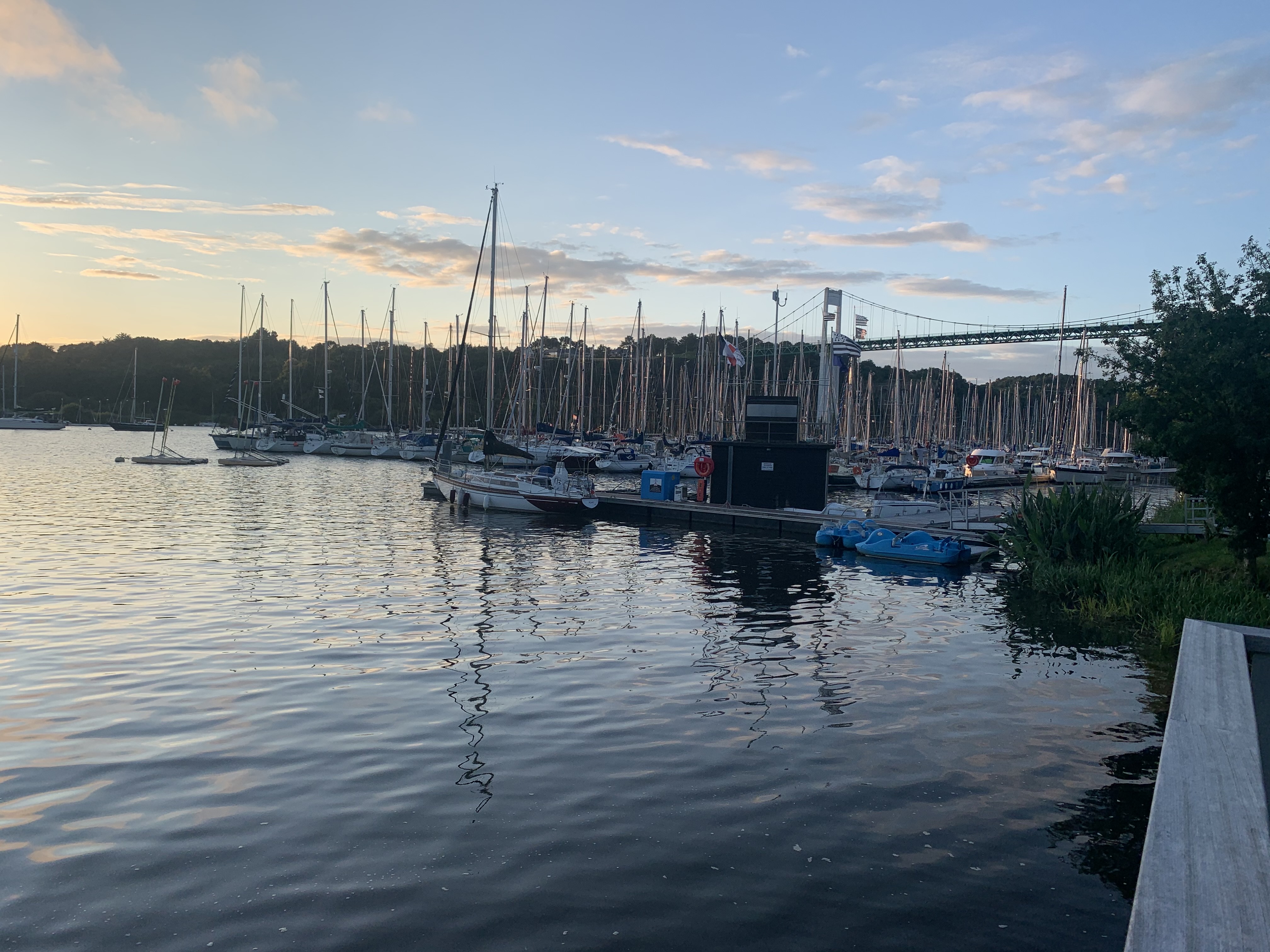 Arrivé d'une petite rando entre les deux pont sur la vilaine, et jolie vue sur le port neuf et la roche plus loin qui donne l'accès au port vieux.