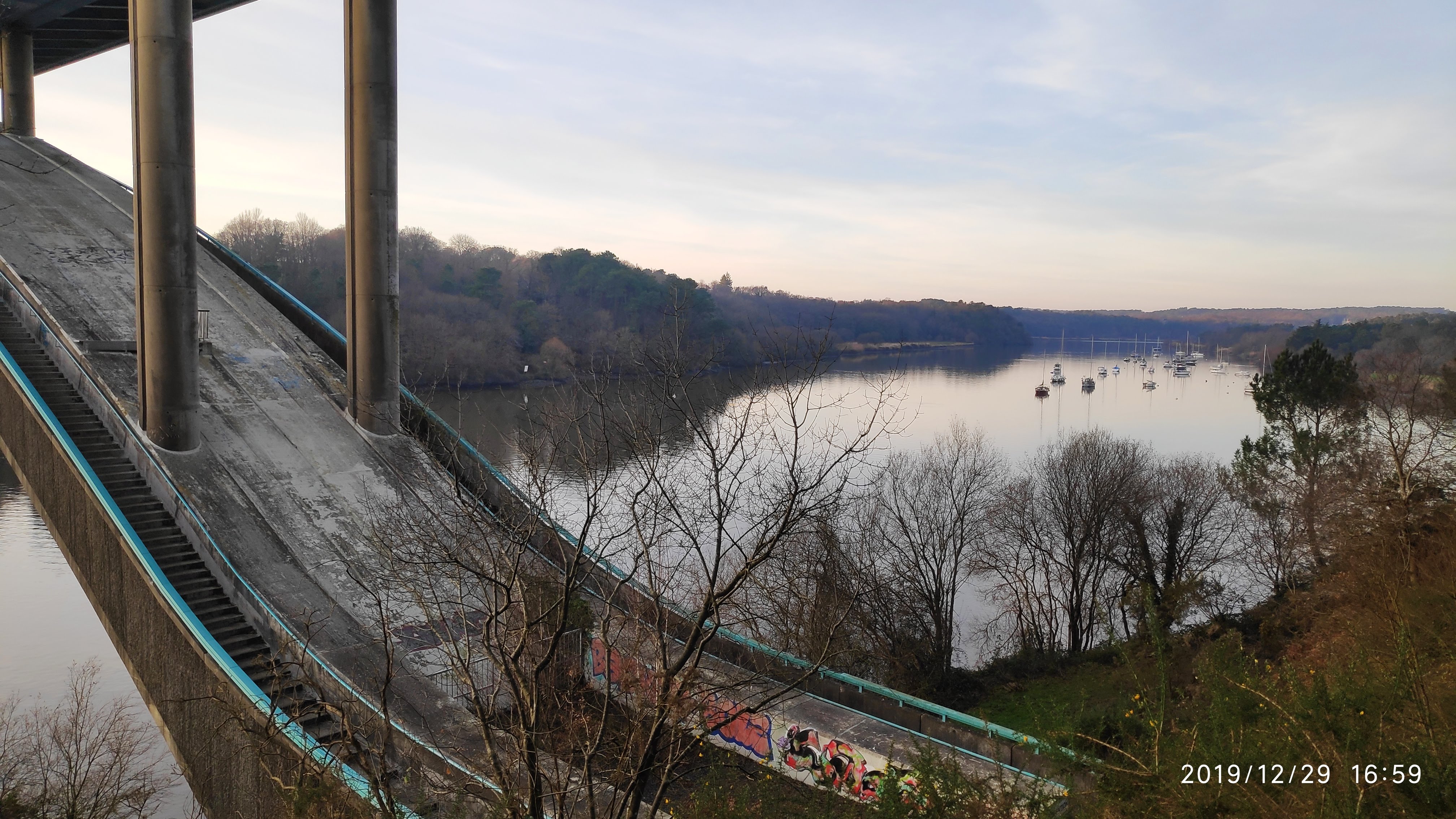 Très bel ouvrage d'art franchissant la vilaine en contournant La Roche Bernard. On y accède à pieds par l'aire de Marzan via un sentier randonnée VTT. Quelques infos sur l'ouvrage sont affichées et il y a un voussoir déposé au pied c'est intéressant d'en voir la structure. Le pont comporte deux voies piétonnes sous le tablier pour traverser (attention bonne condition physique indispensable).