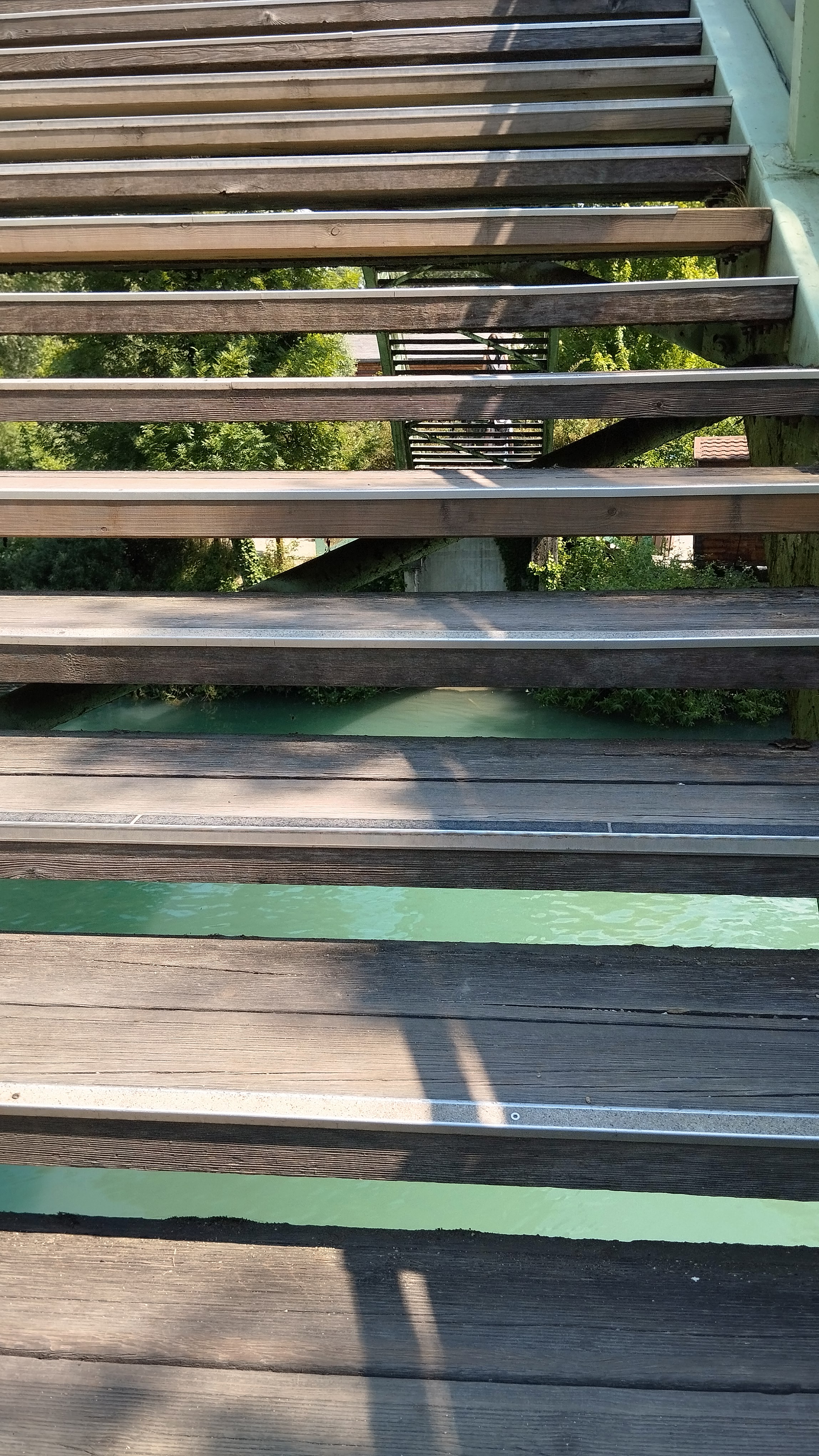 Un passerelle qui surprend, on se demande comment on va grimper. Mais l'accès se fait bien, les marchés sont larges et pas trop pentu. On a au sommet accès à une belle vue sur la rivière et chanaz, un vue belle qui offre de beaux clichés. A ne pas manquer.