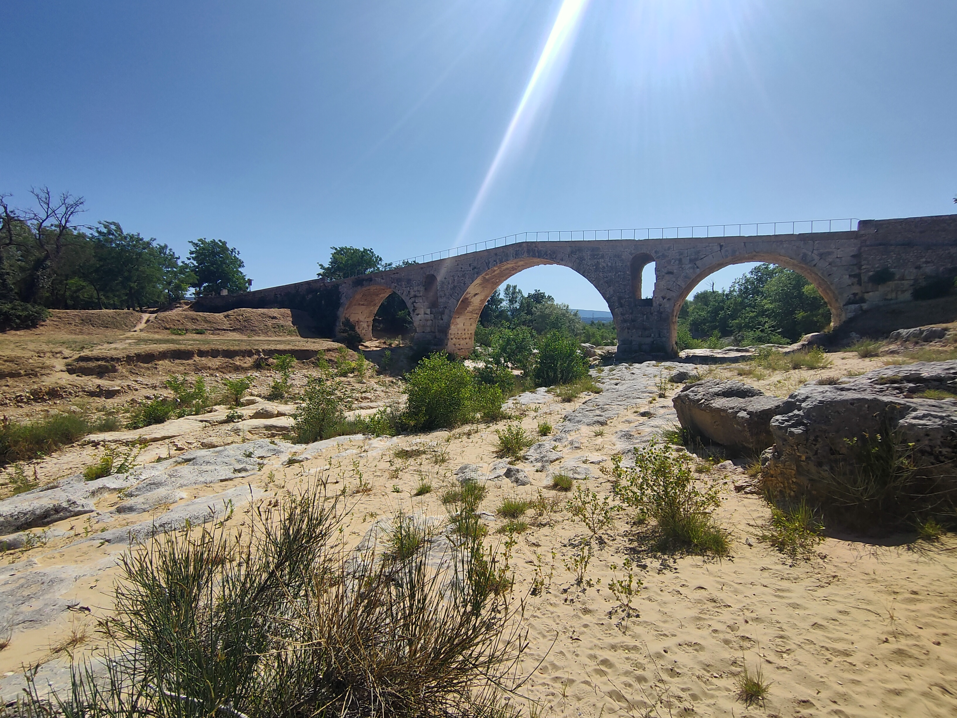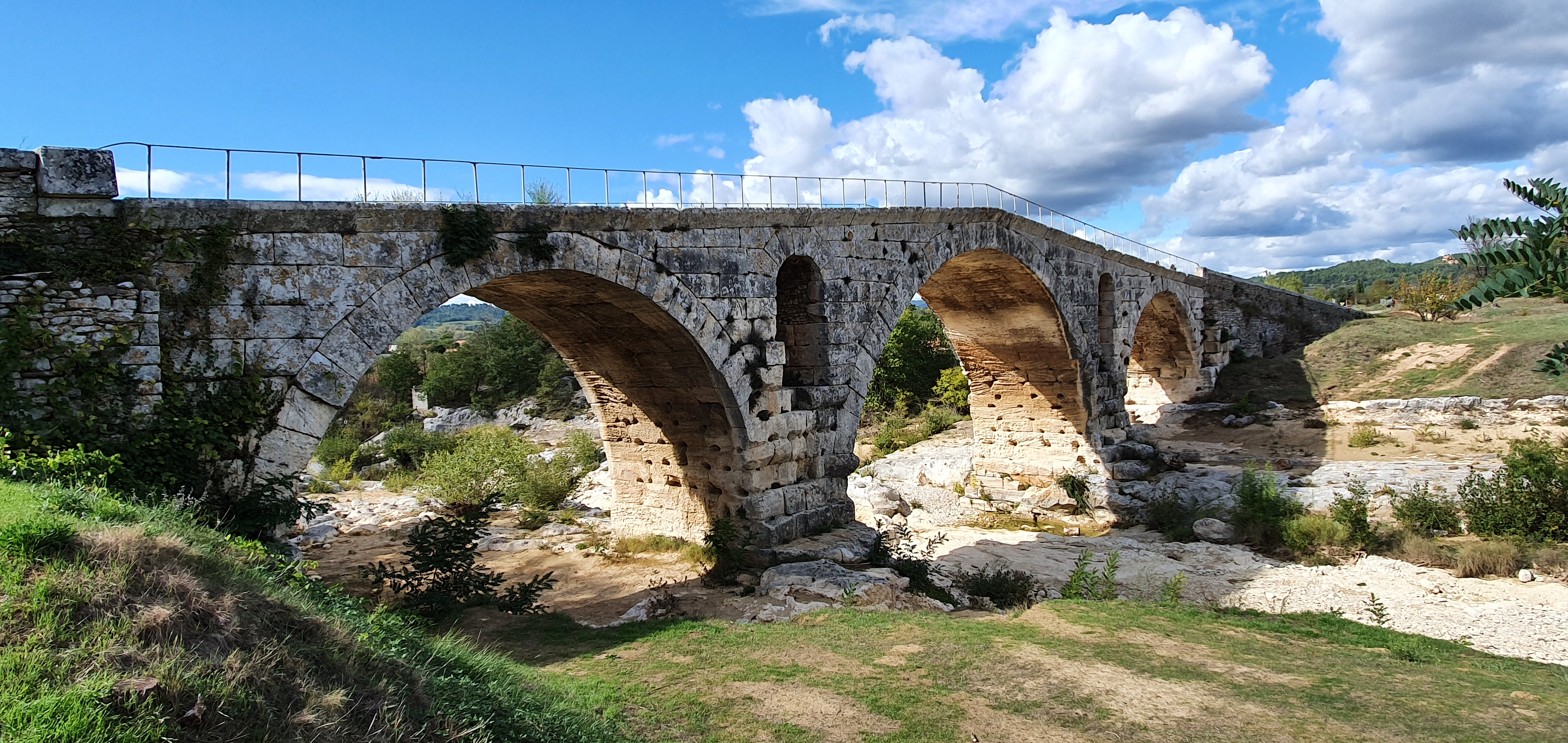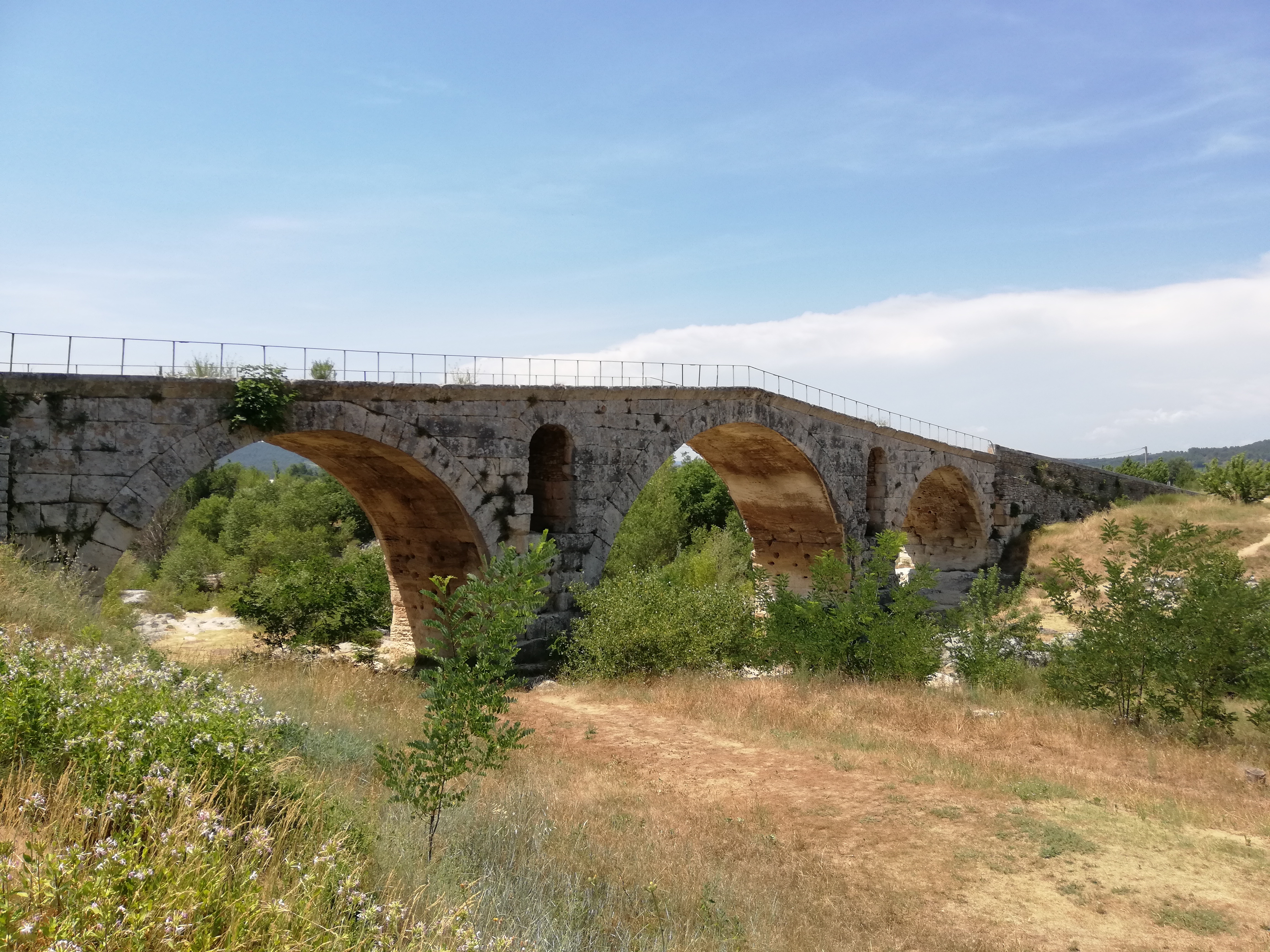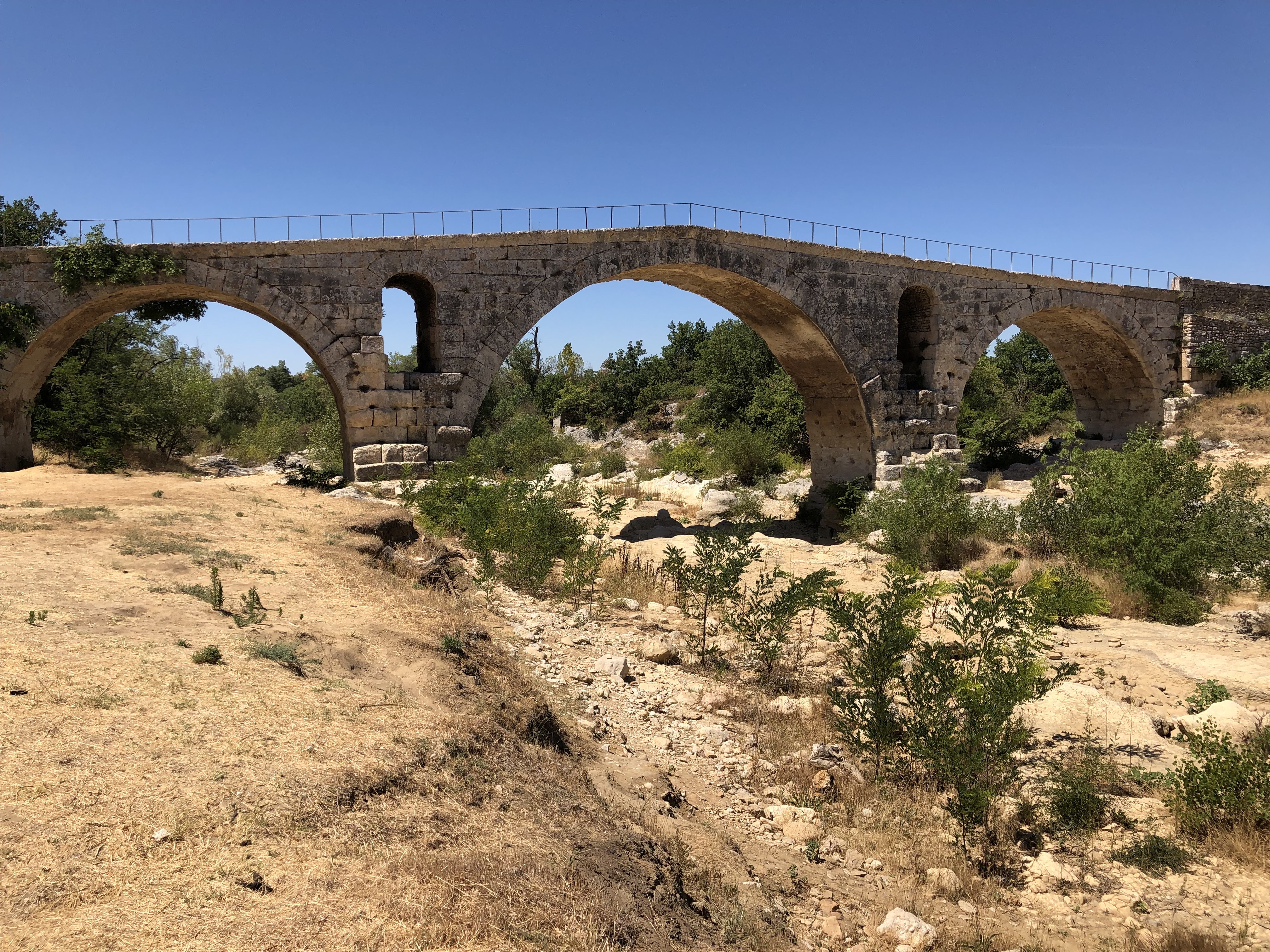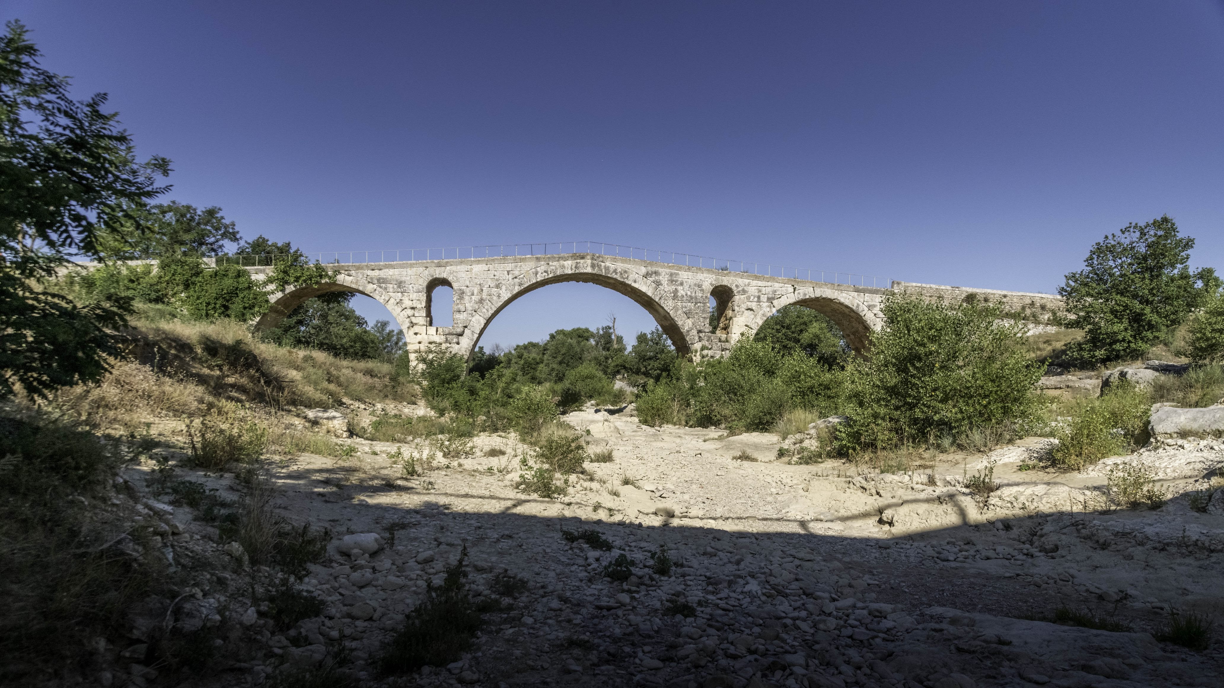Incroyable de ce dire que ce pont a résisté aux crues... Qu'il est là depuis 3 années avant JC... Pas sous cette forme mais tout de même. Par contre on perçoit bien le manque d'eau.