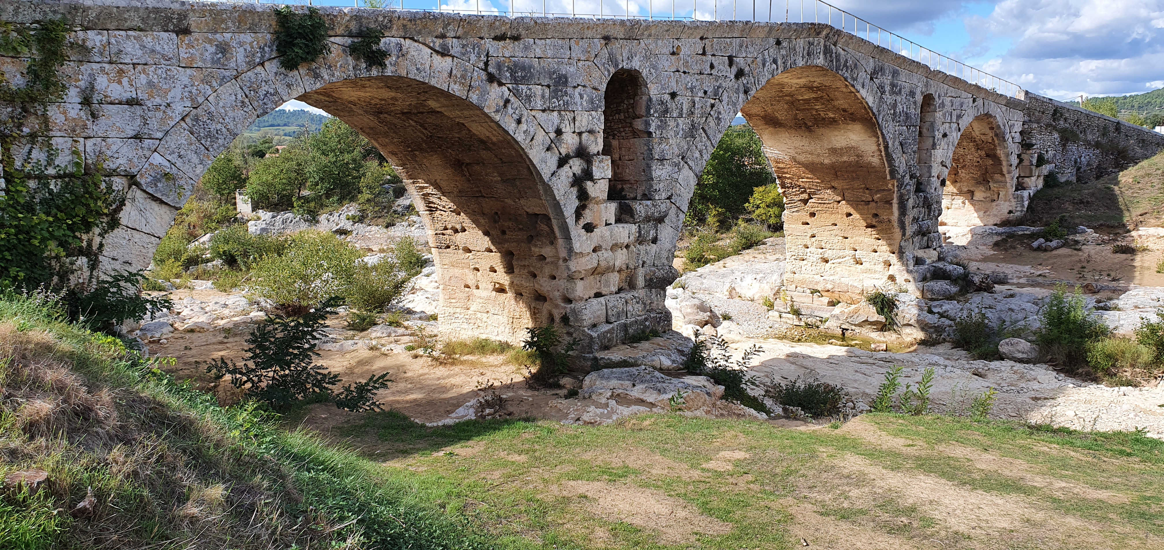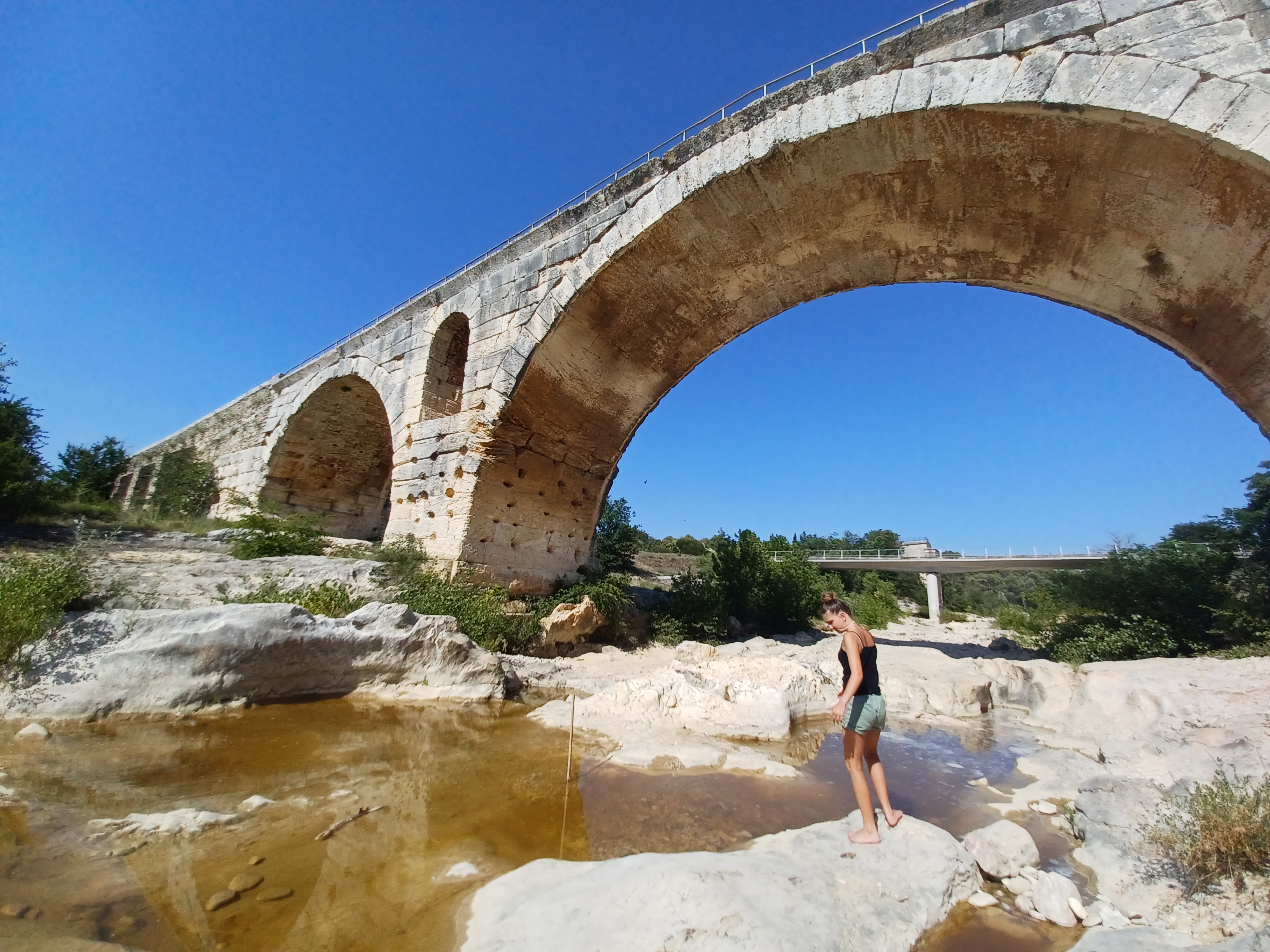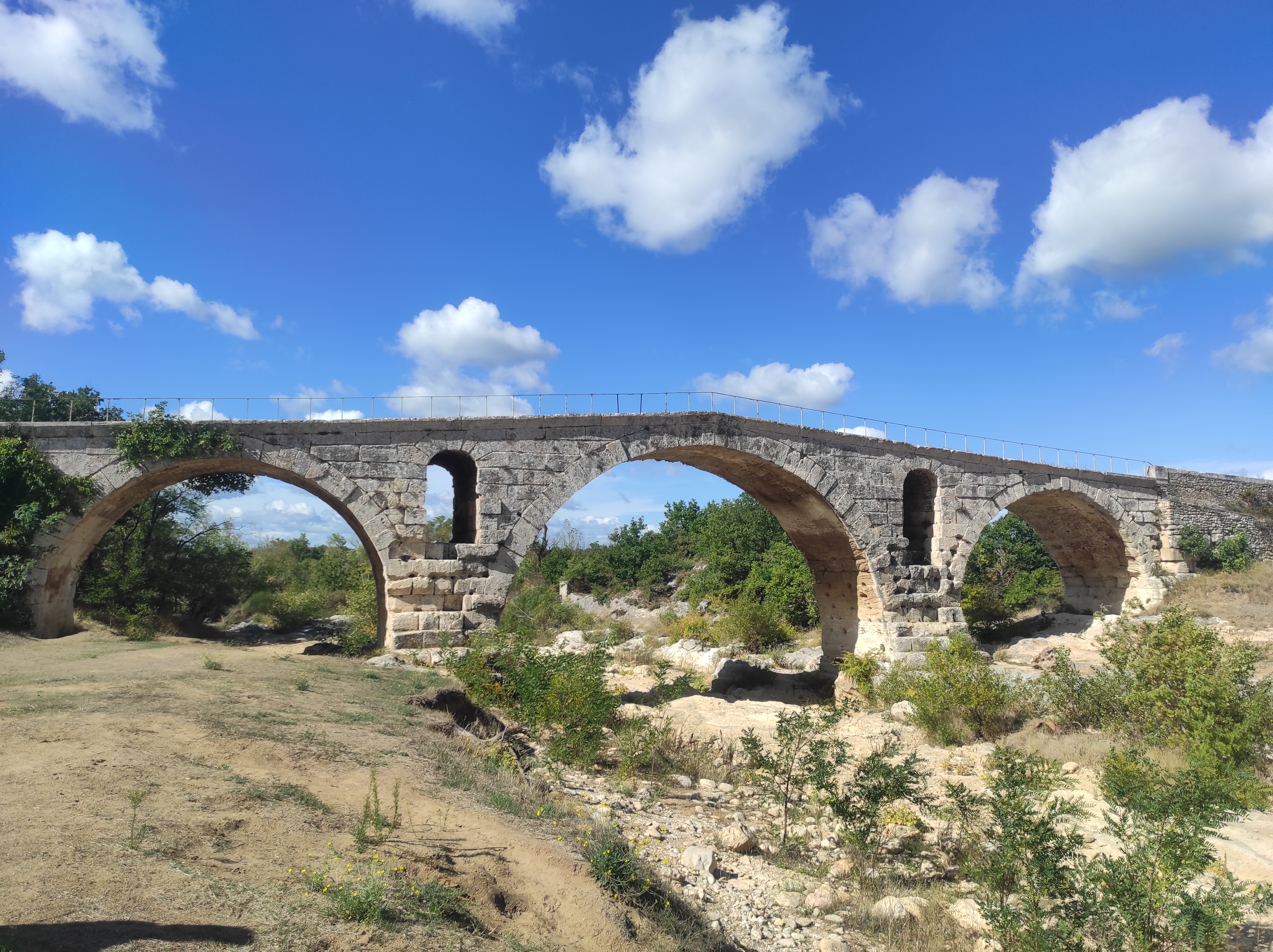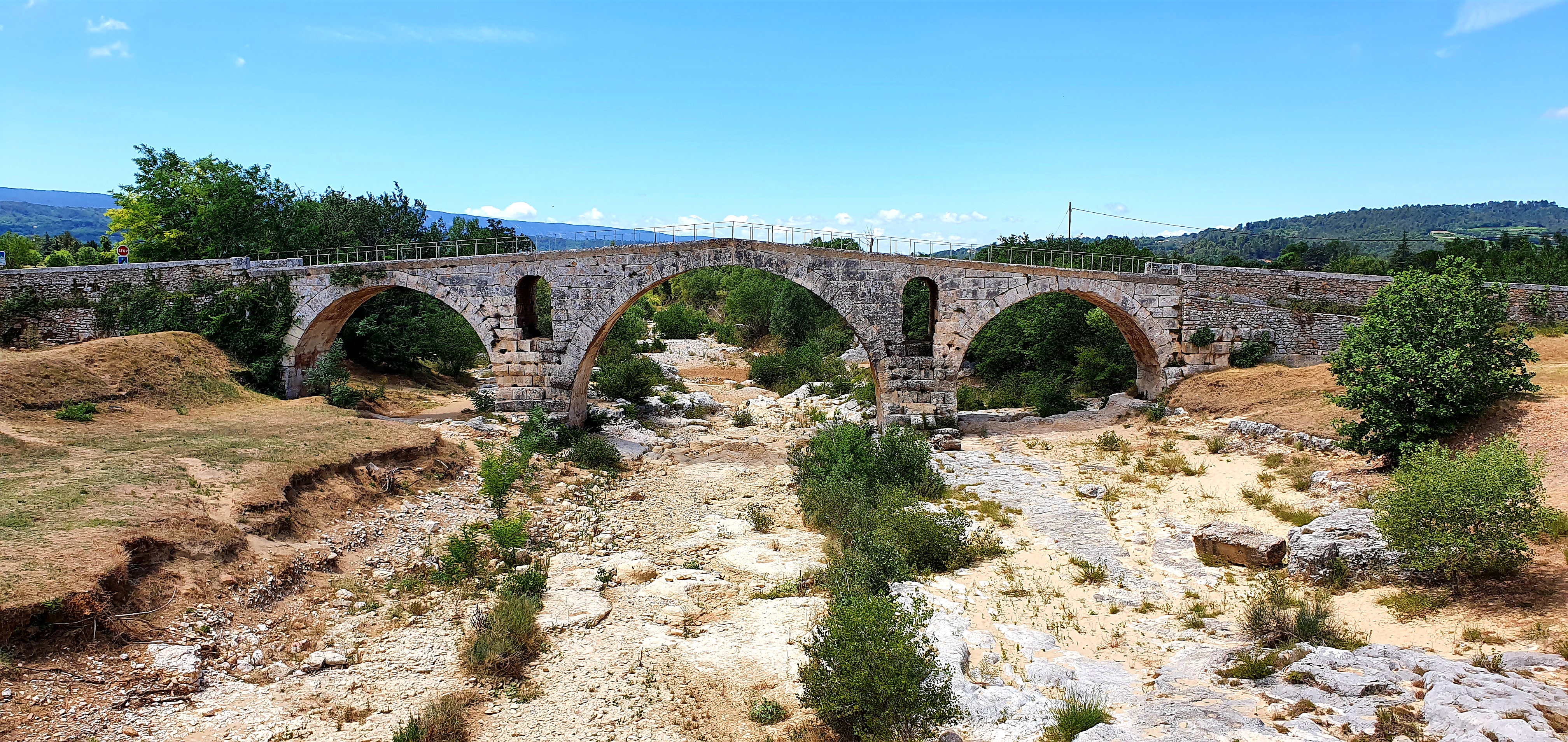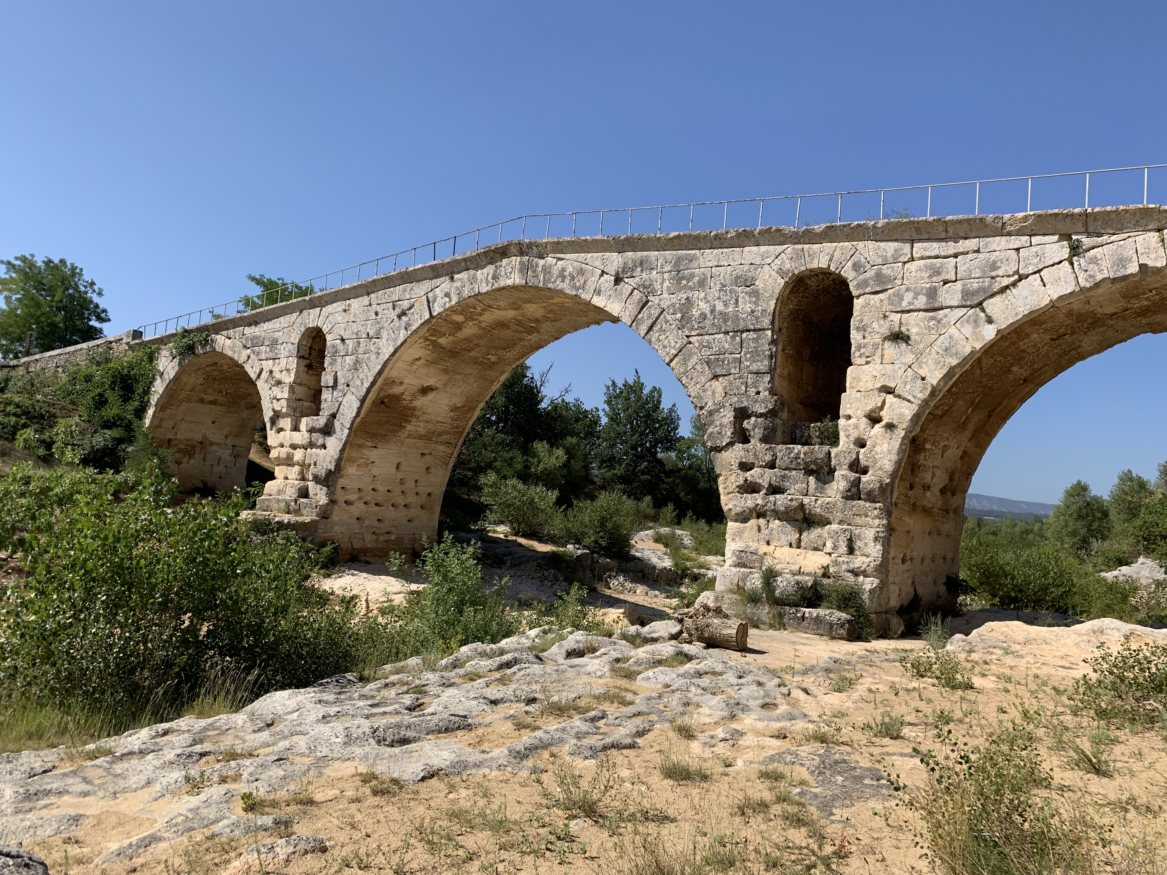 Incroyable de ce dire que ce pont a résisté aux crues... Qu'il est là depuis 3 années avant JC... Pas sous cette forme mais tout de même. Par contre on perçoit bien le manque d'eau.
