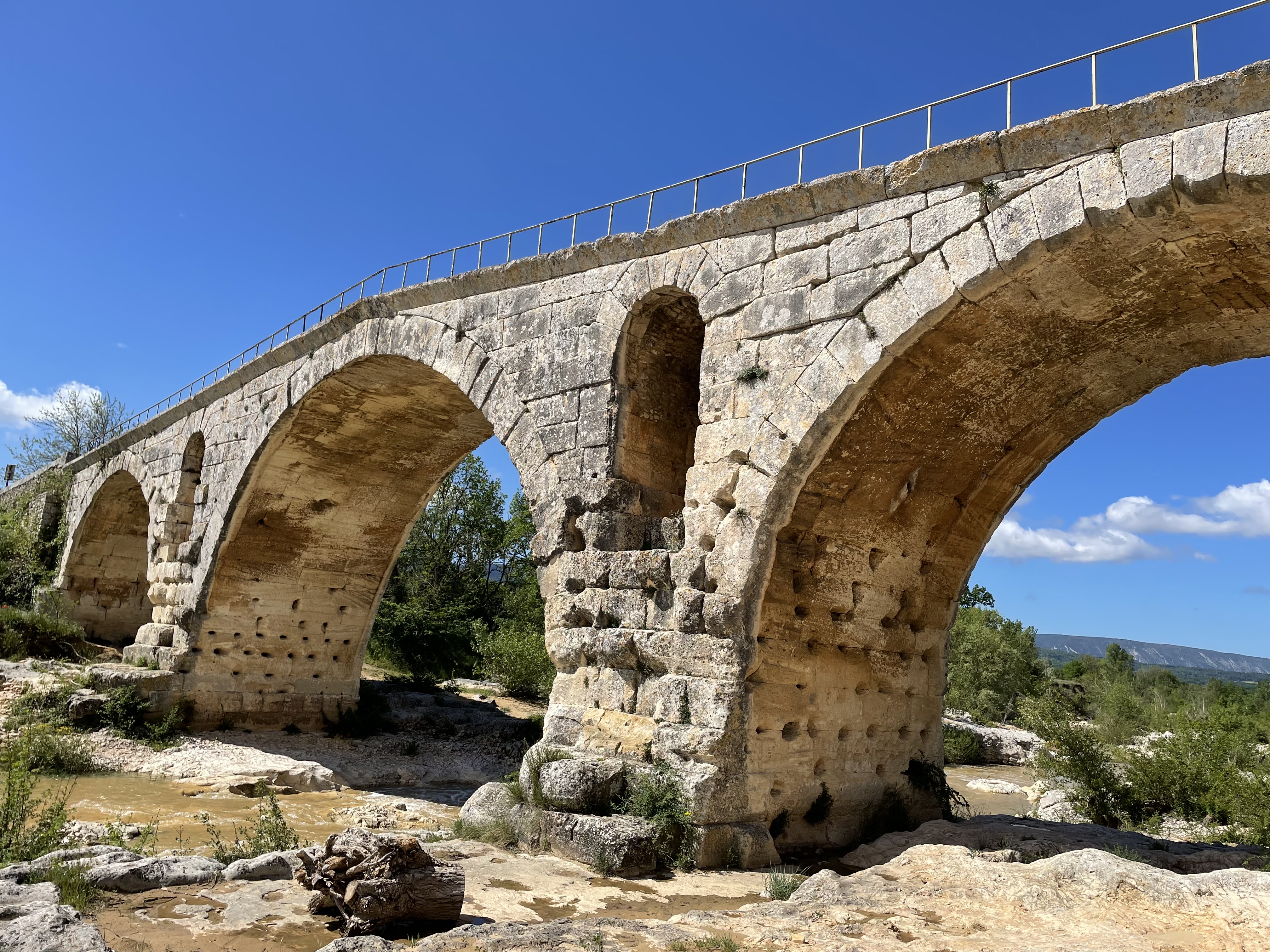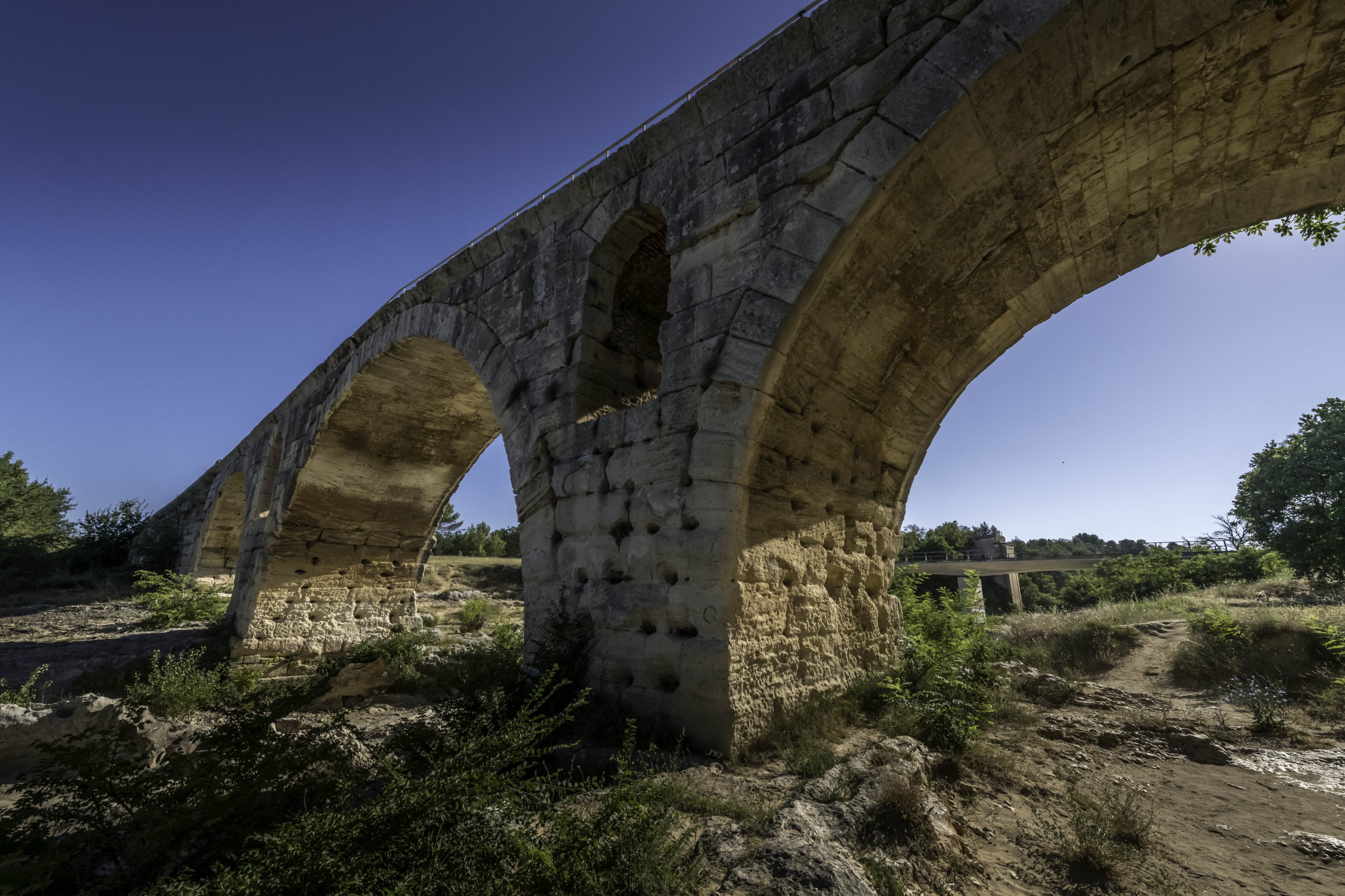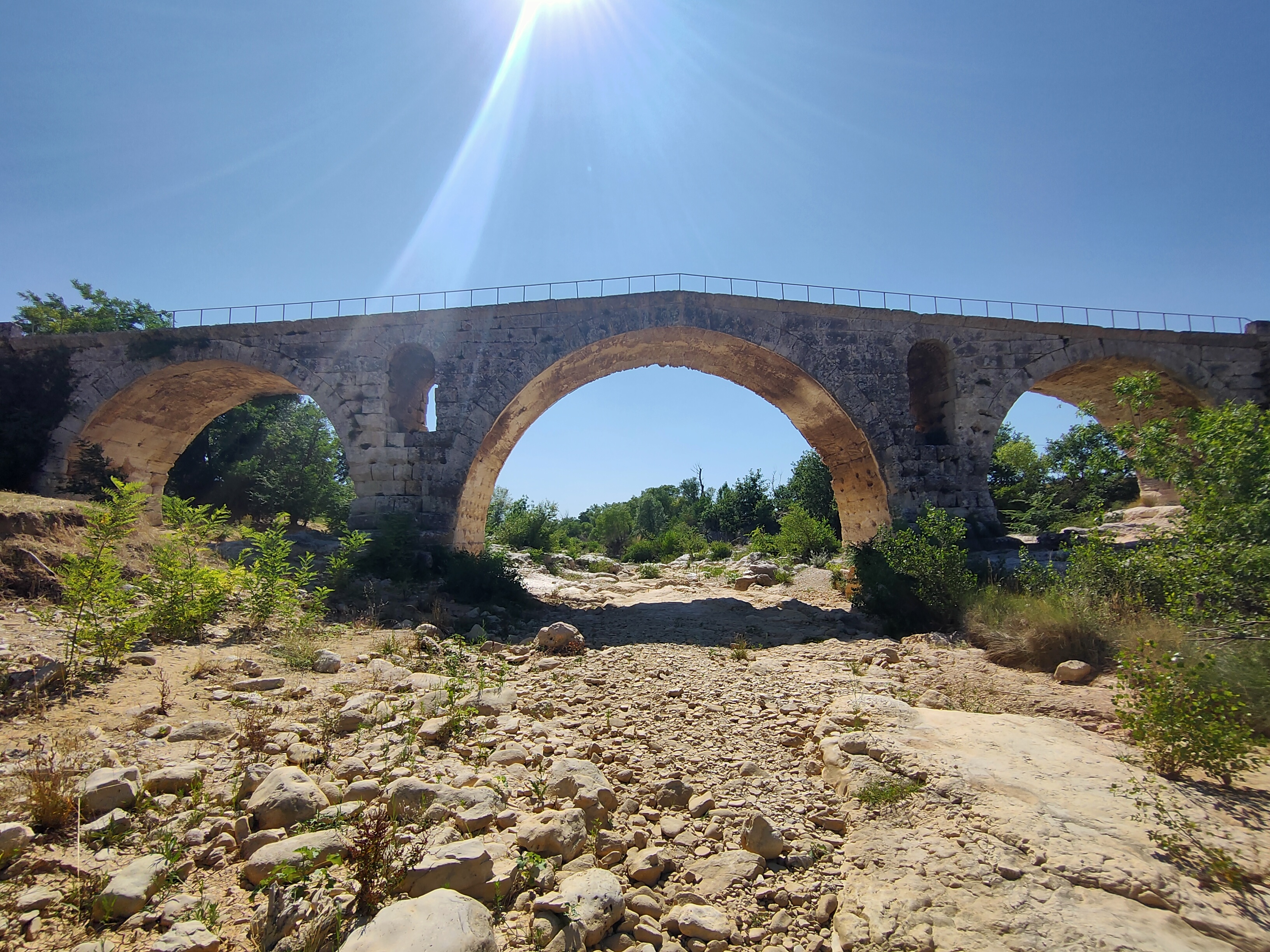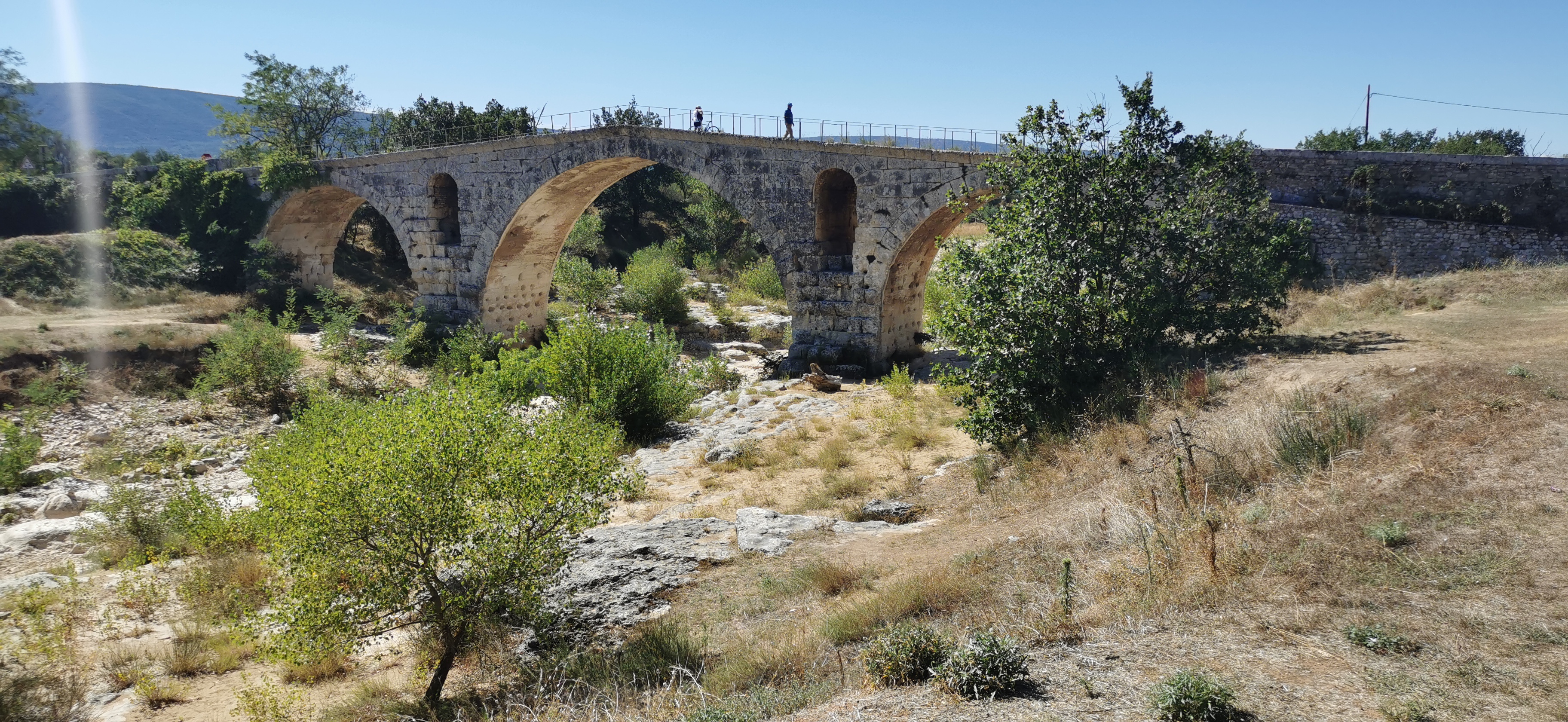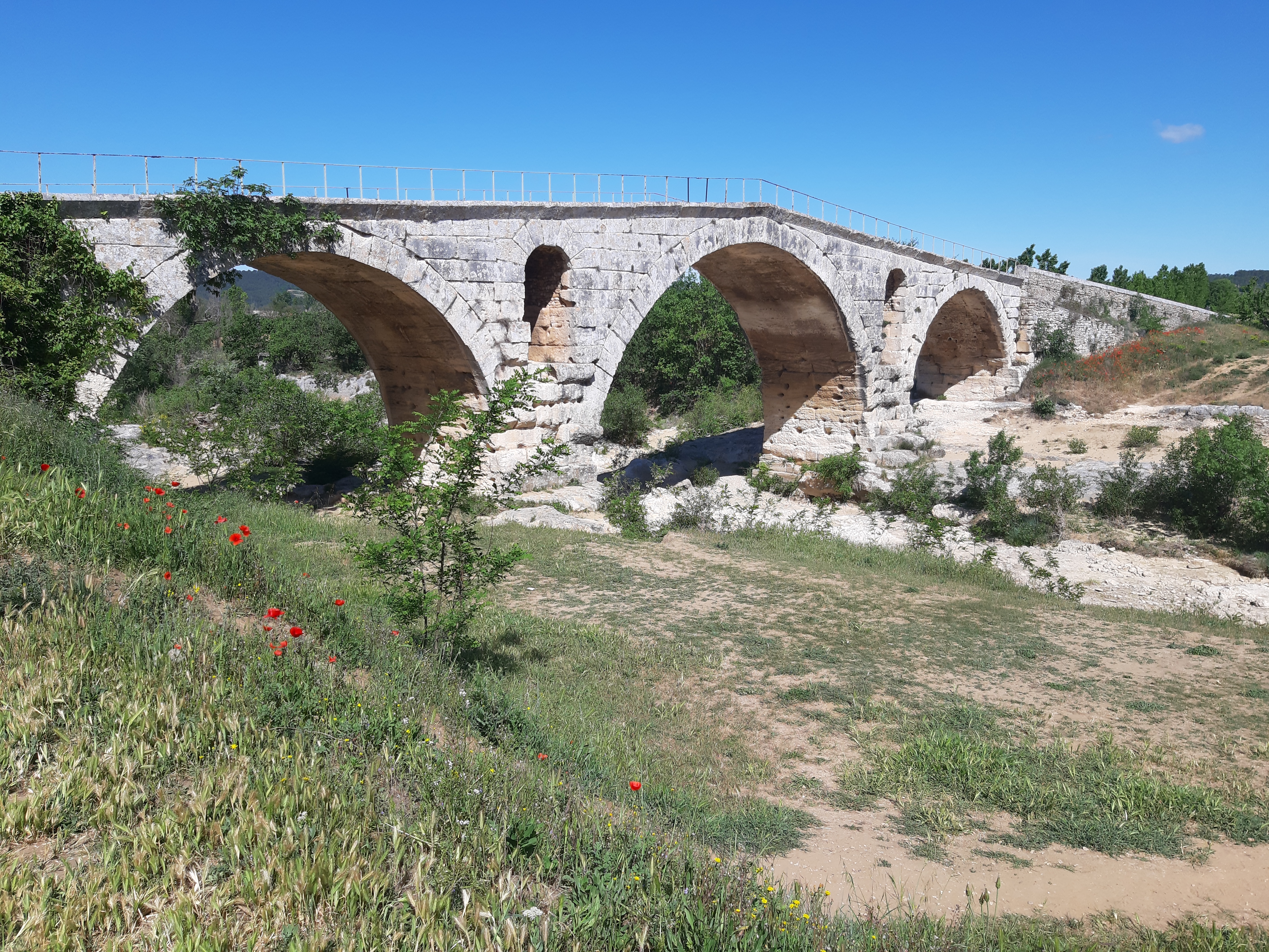 Incroyable de ce dire que ce pont a résisté aux crues... Qu'il est là depuis 3 années avant JC... Pas sous cette forme mais tout de même. Par contre on perçoit bien le manque d'eau.