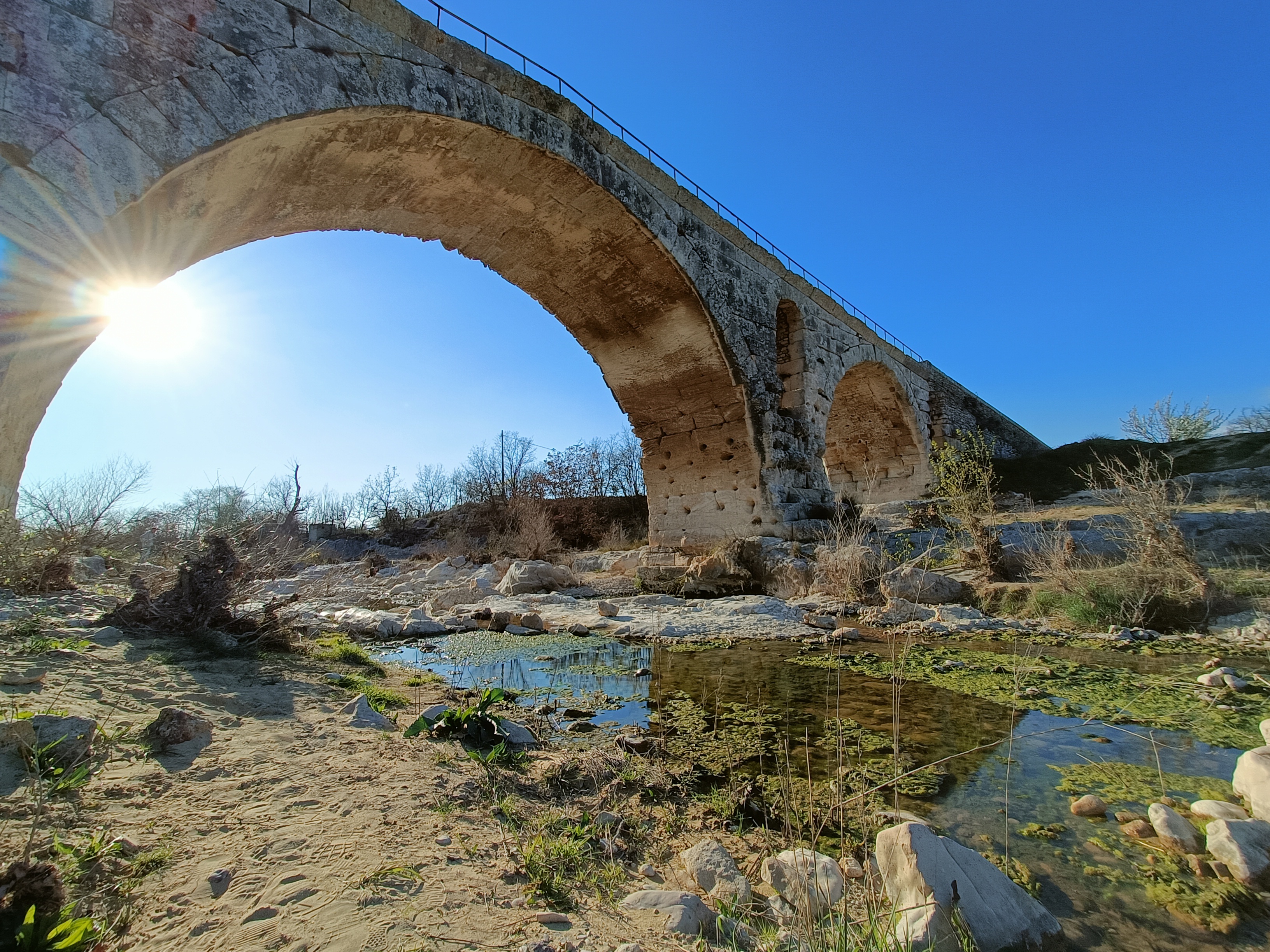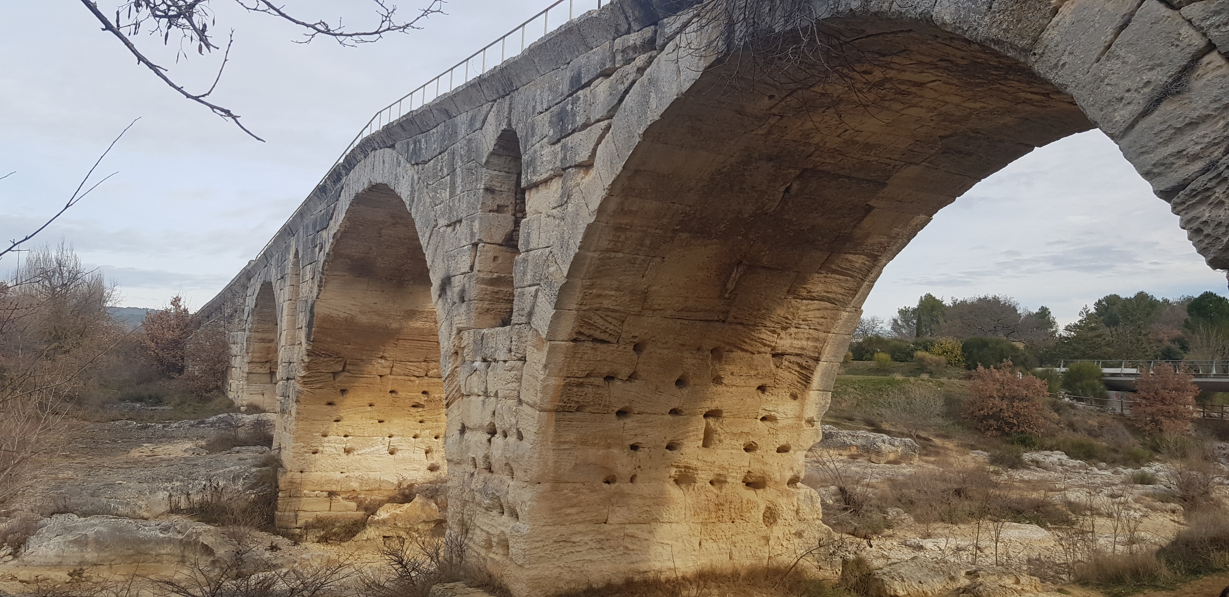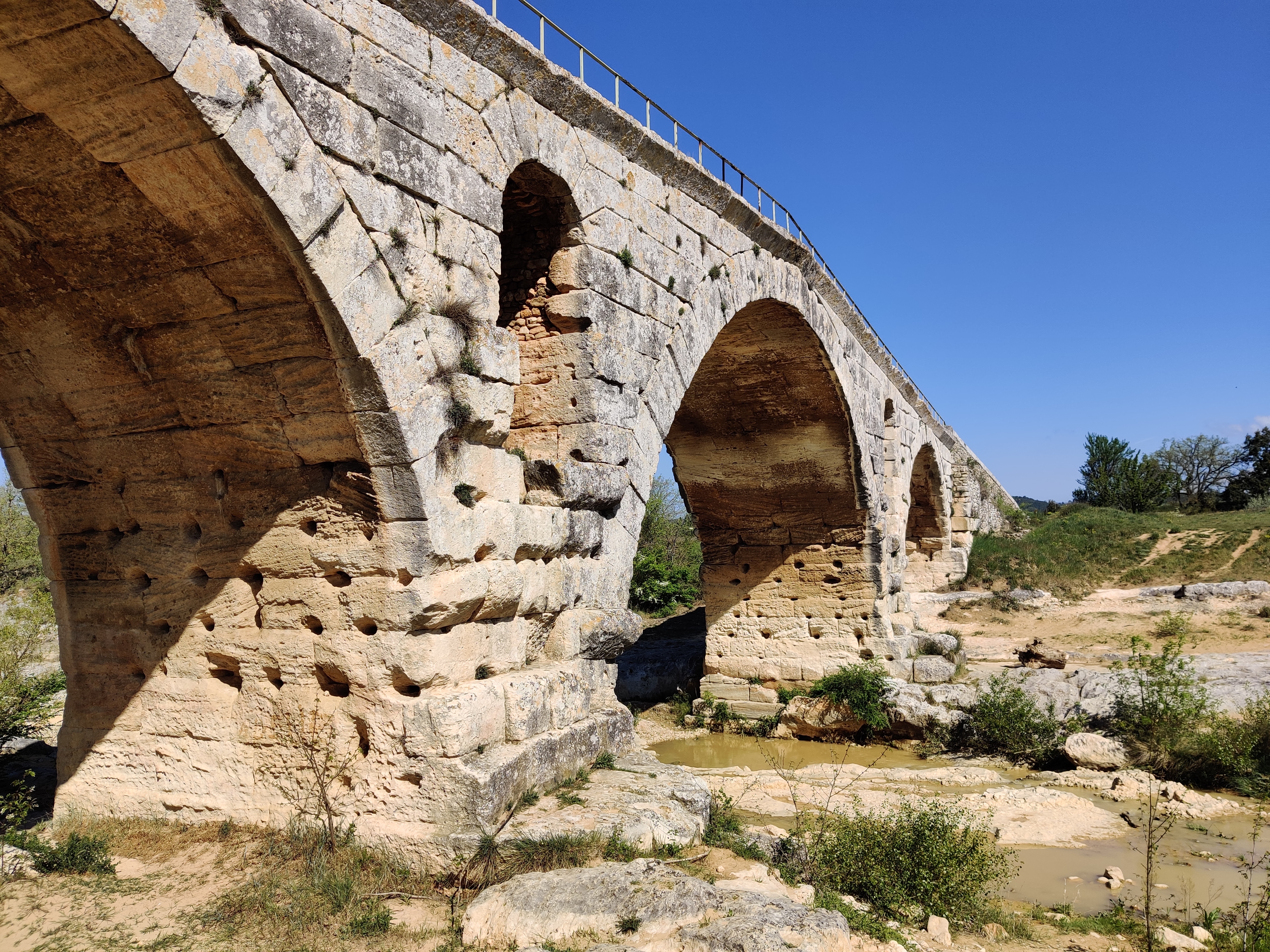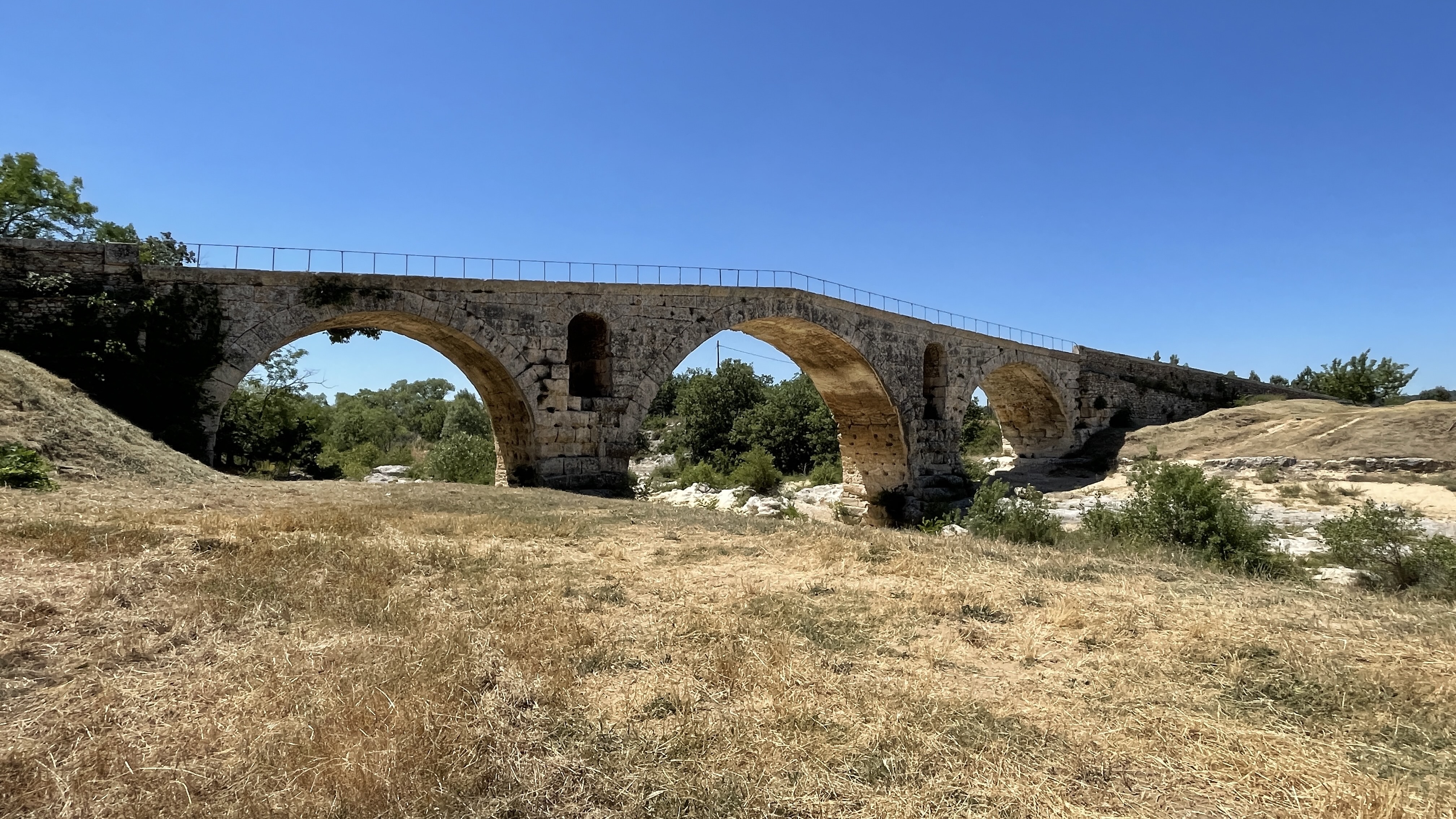 Incroyable de ce dire que ce pont a résisté aux crues... Qu'il est là depuis 3 années avant JC... Pas sous cette forme mais tout de même. Par contre on perçoit bien le manque d'eau.