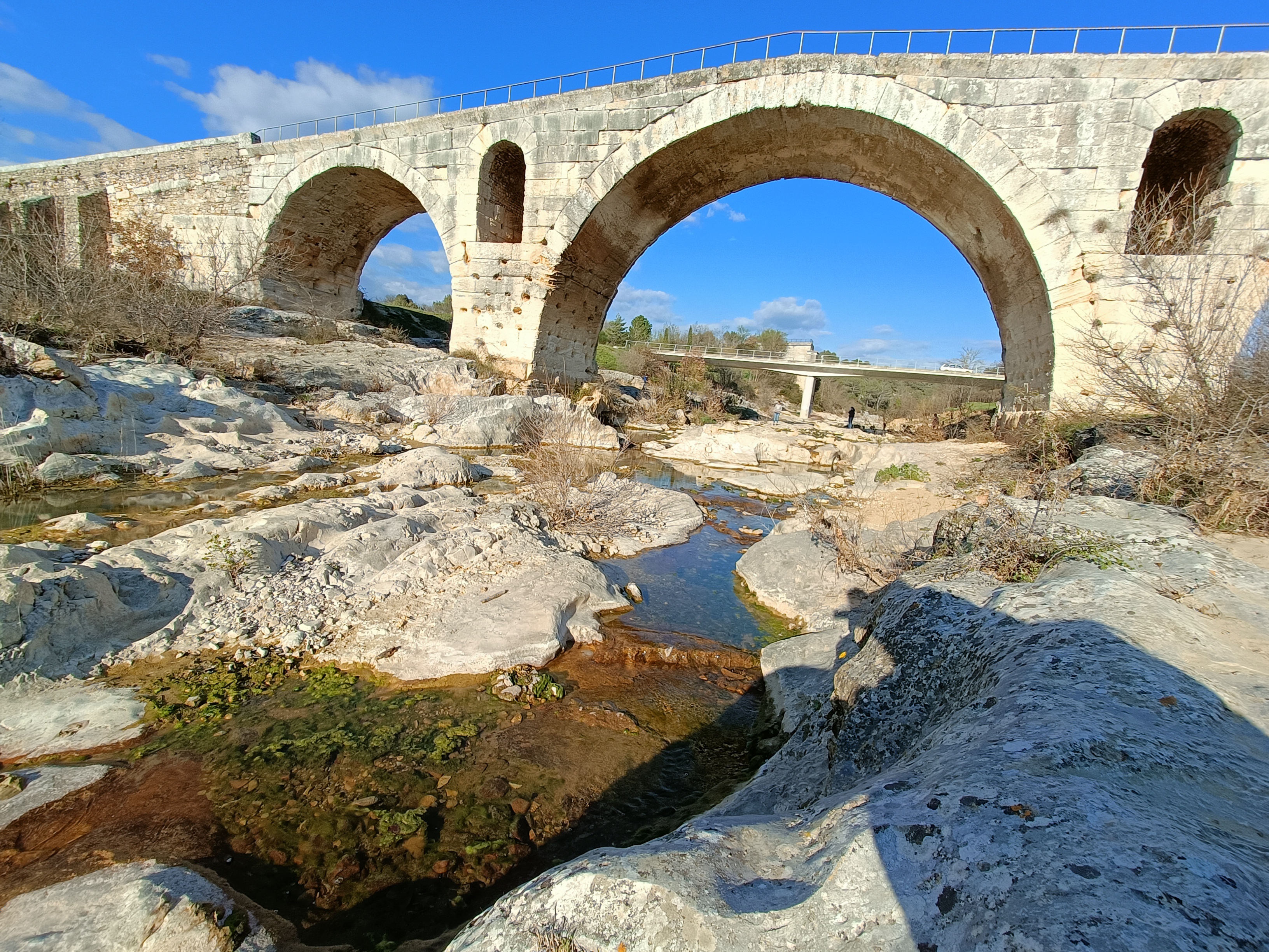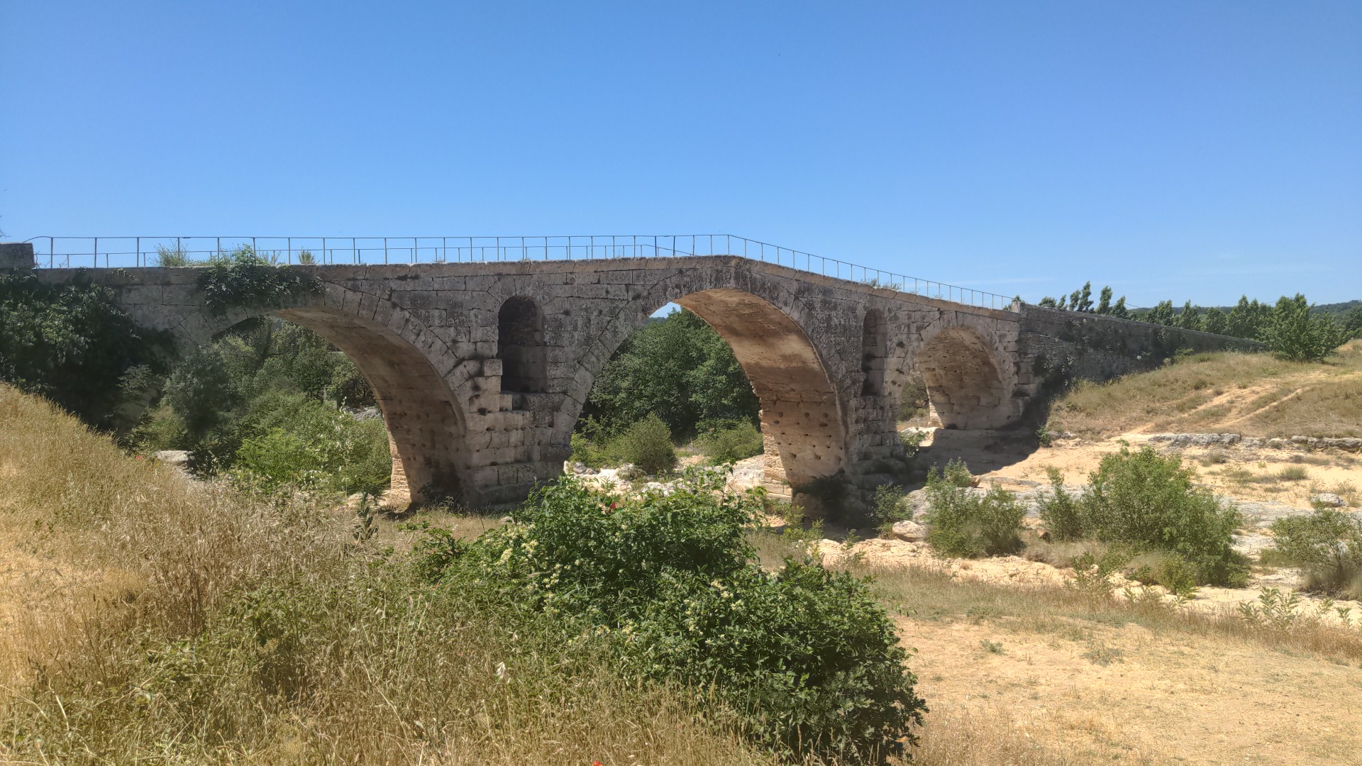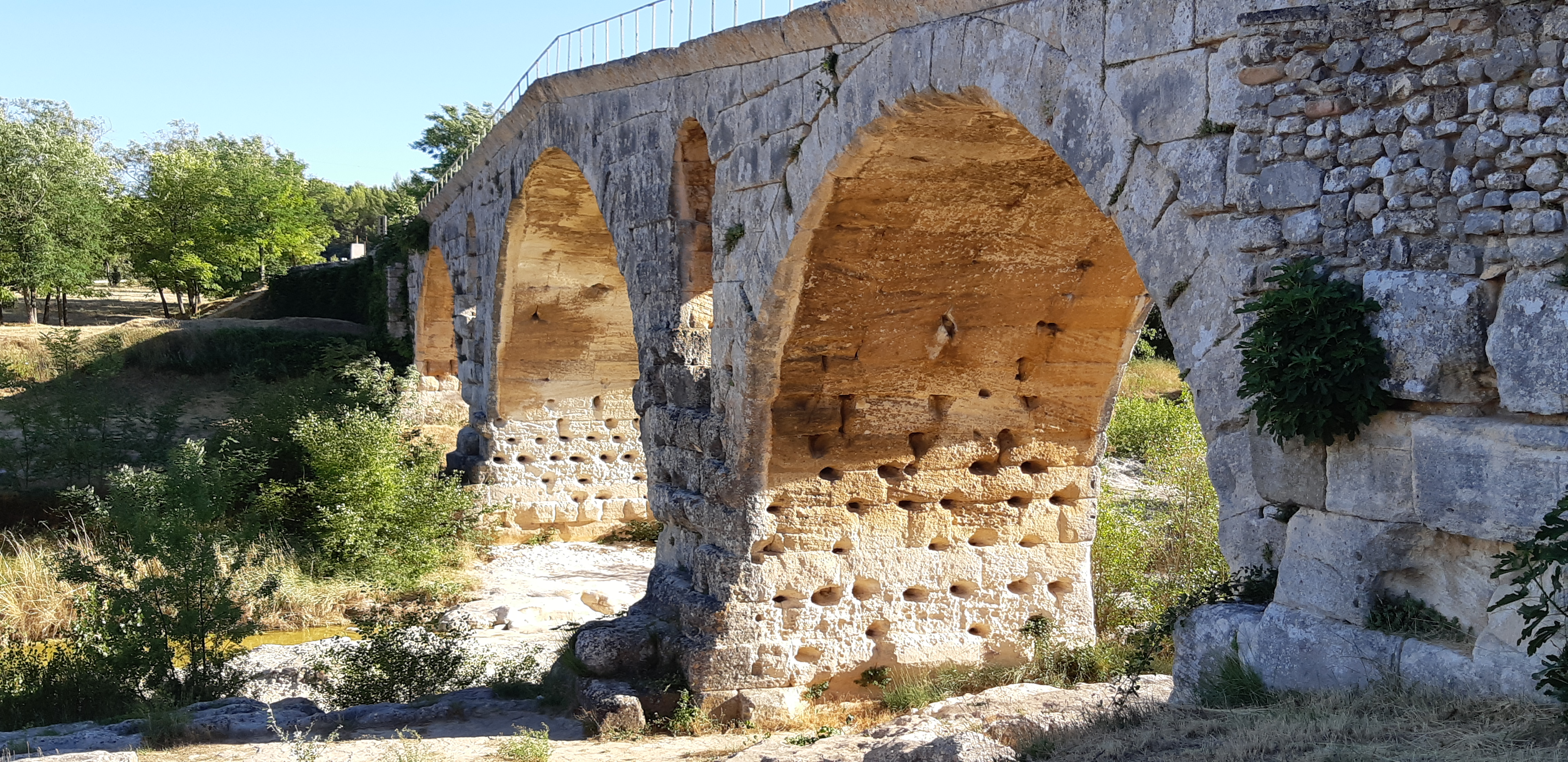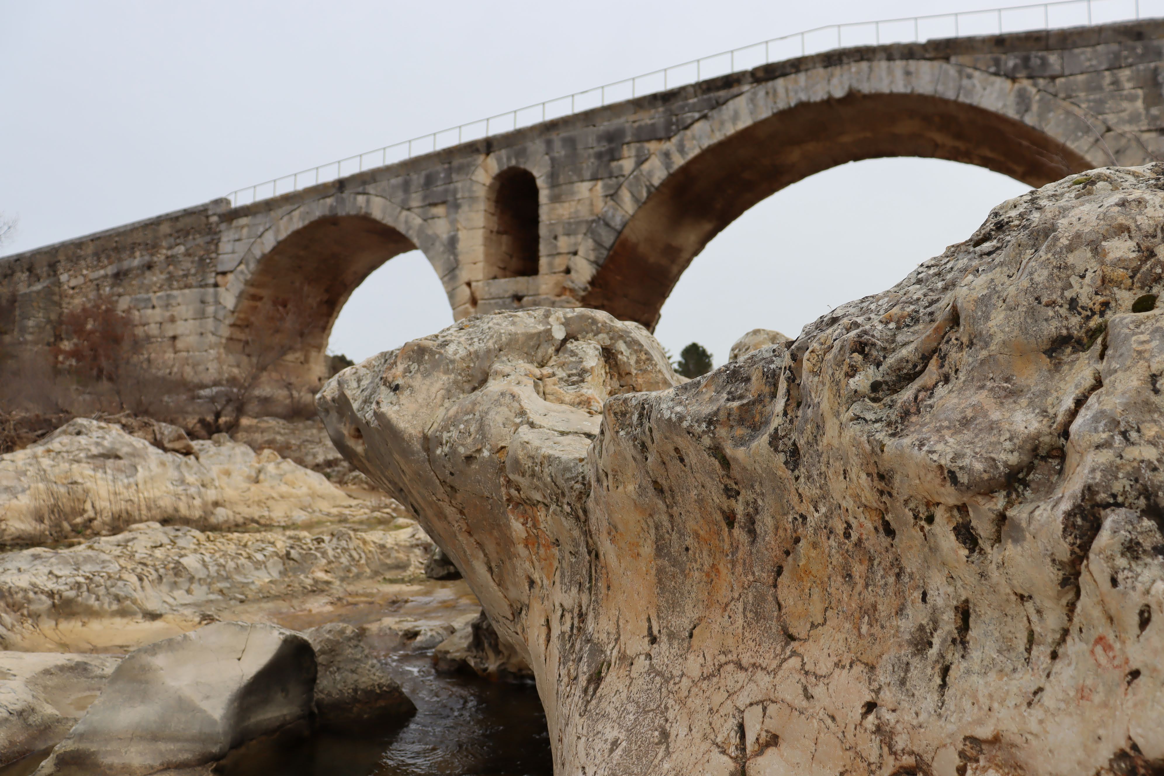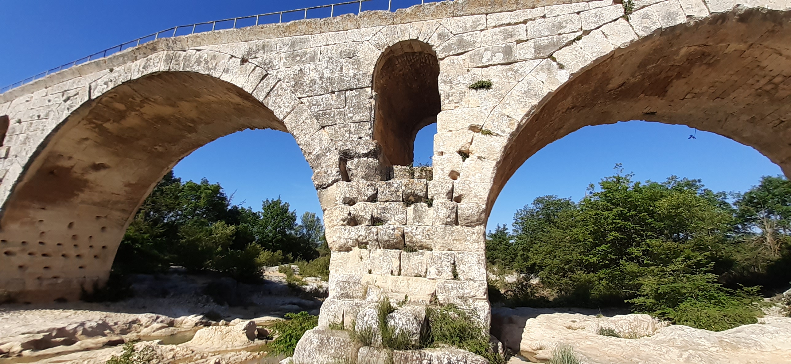 Incroyable de ce dire que ce pont a résisté aux crues... Qu'il est là depuis 3 années avant JC... Pas sous cette forme mais tout de même. Par contre on perçoit bien le manque d'eau.