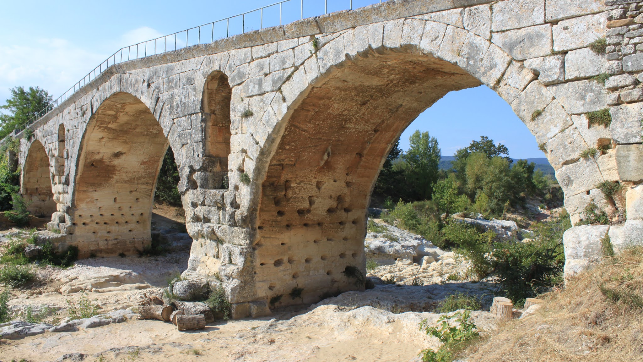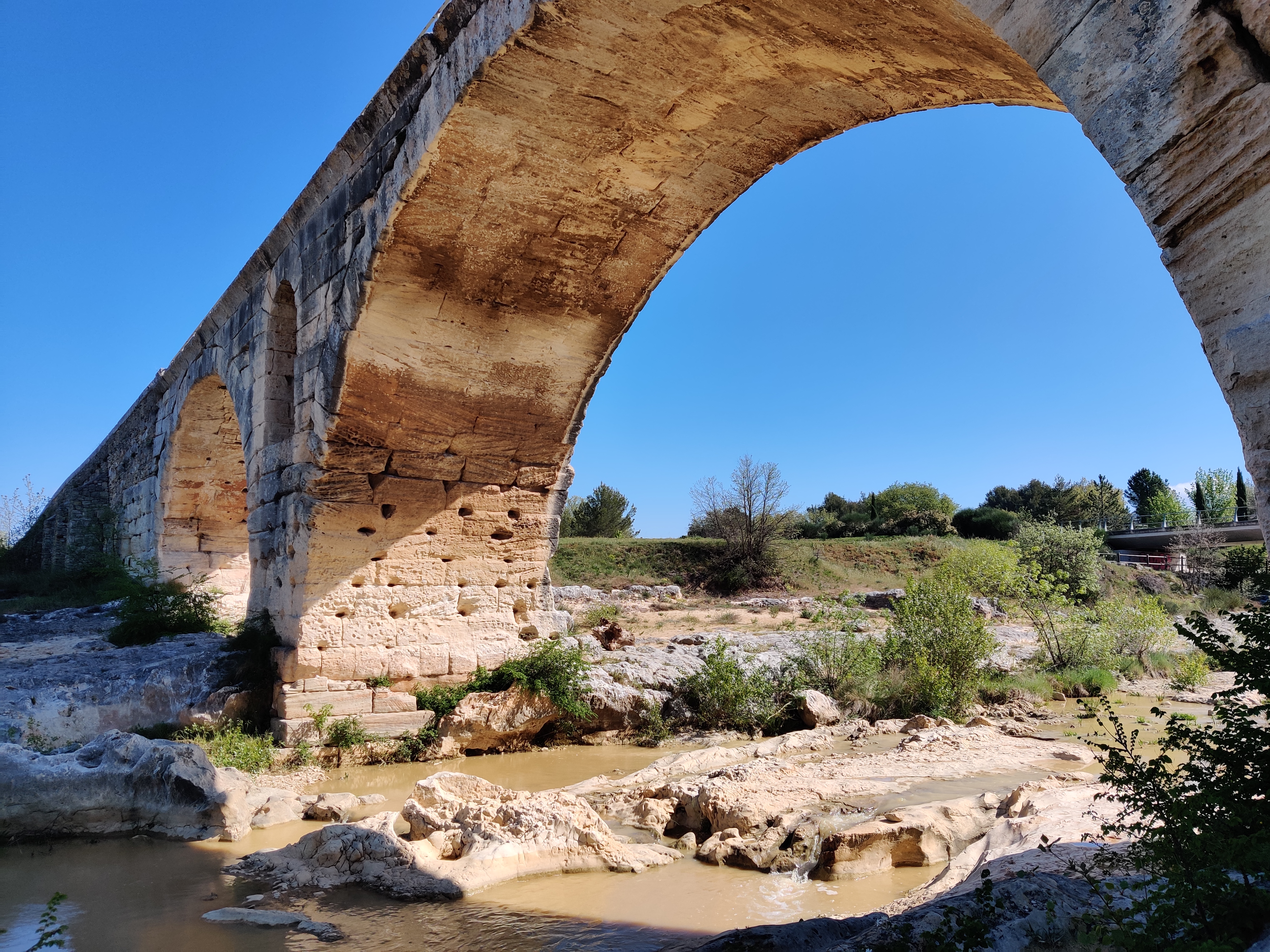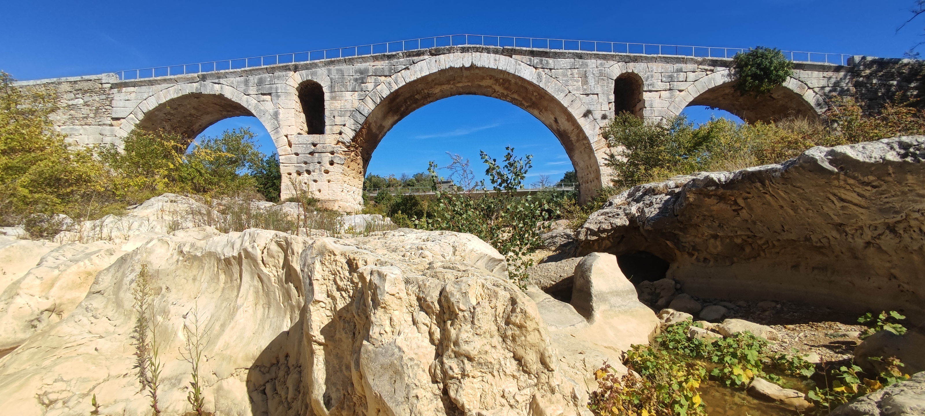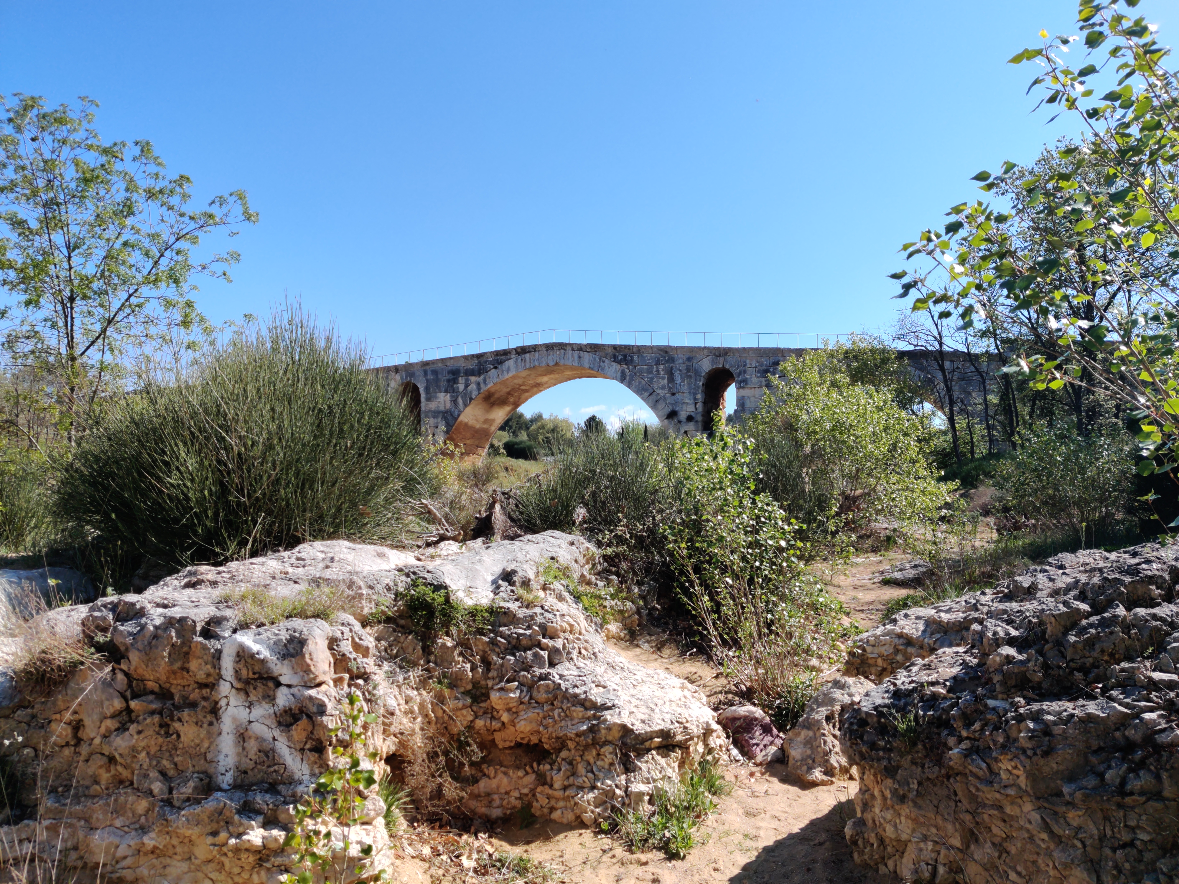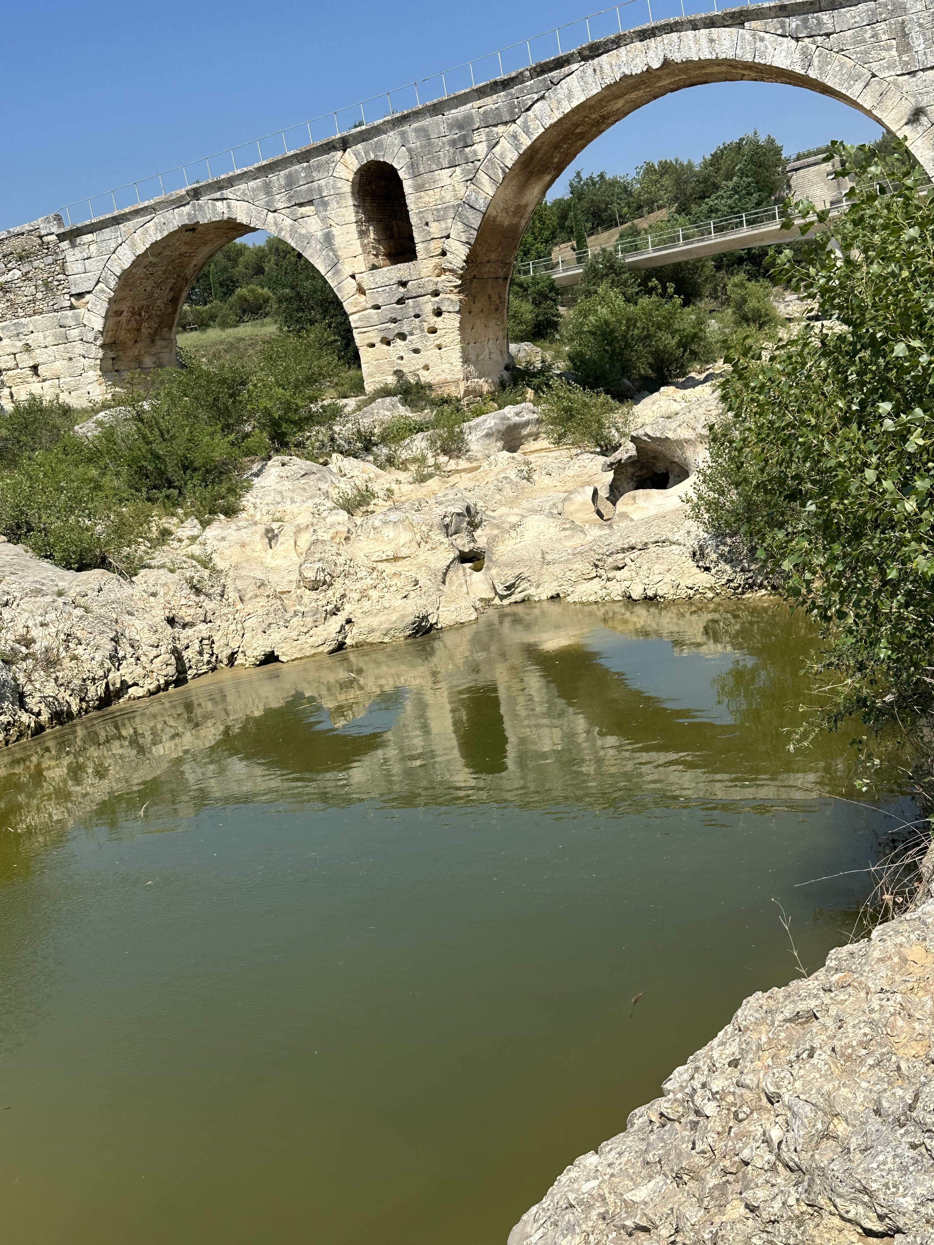 Incroyable de ce dire que ce pont a résisté aux crues... Qu'il est là depuis 3 années avant JC... Pas sous cette forme mais tout de même. Par contre on perçoit bien le manque d'eau.