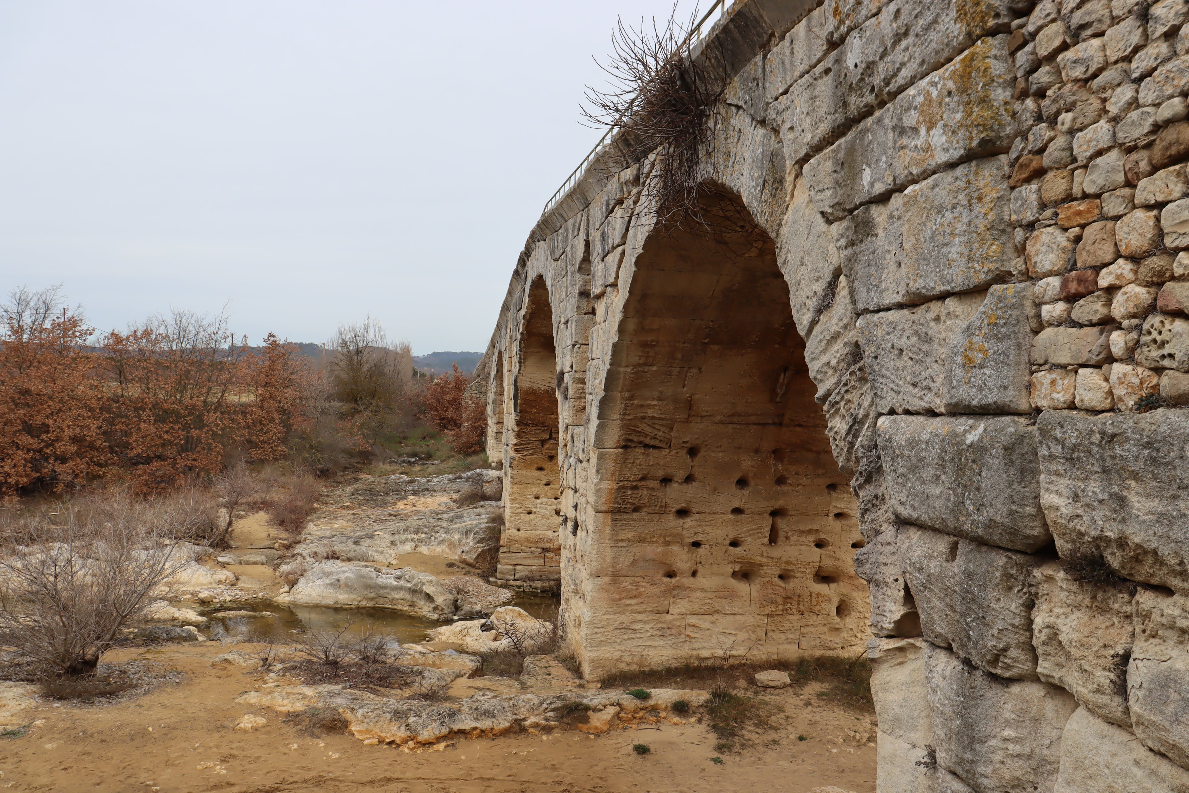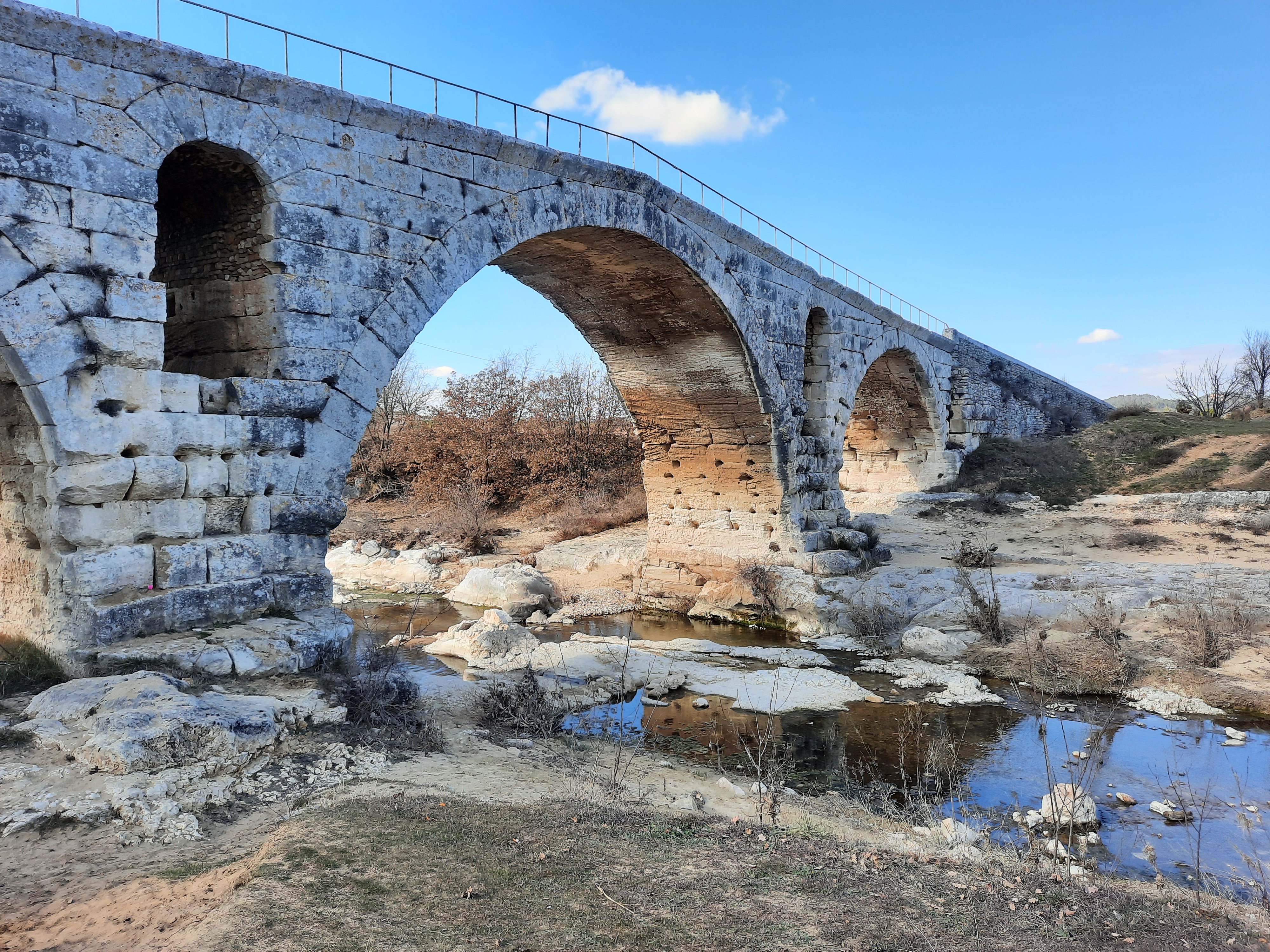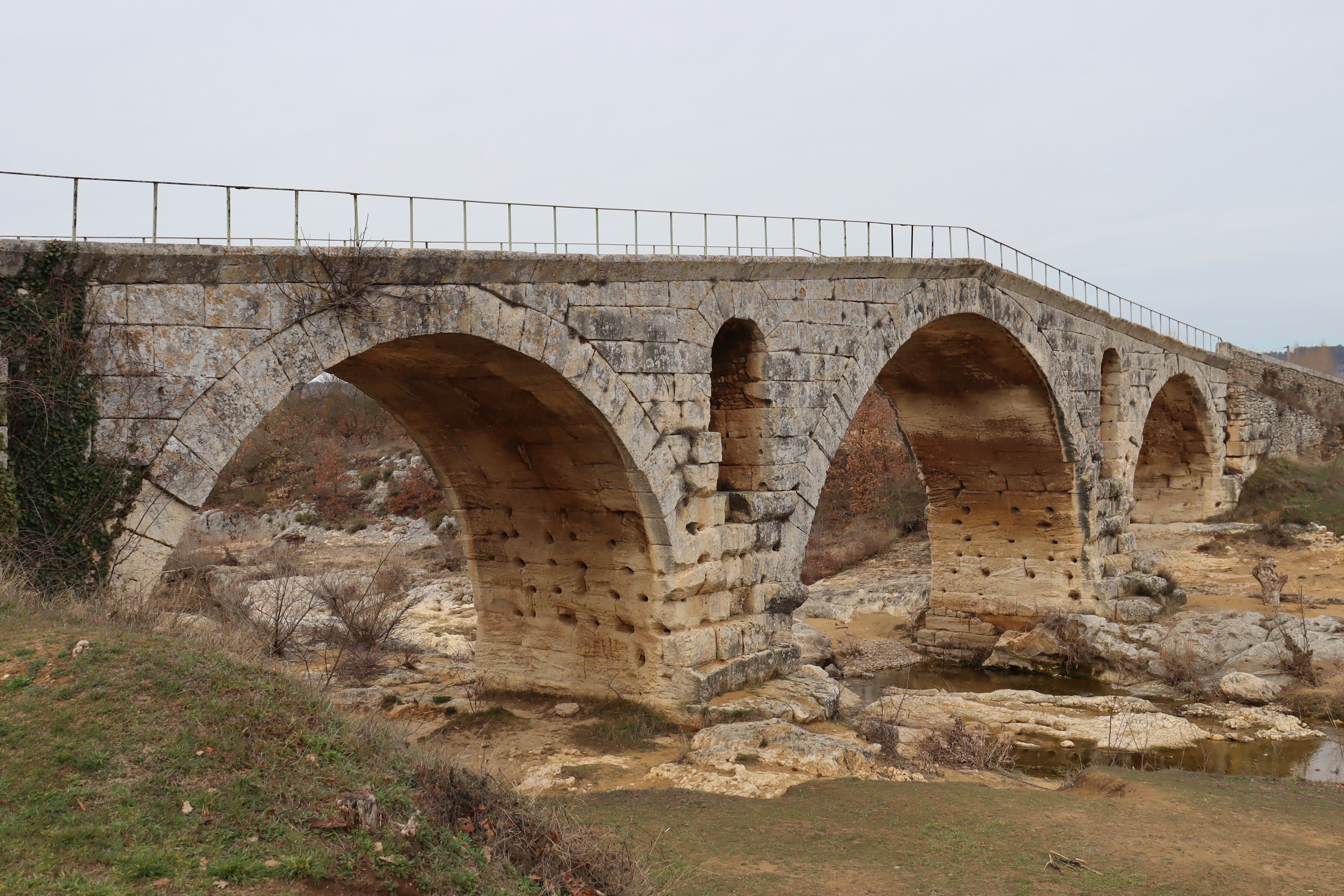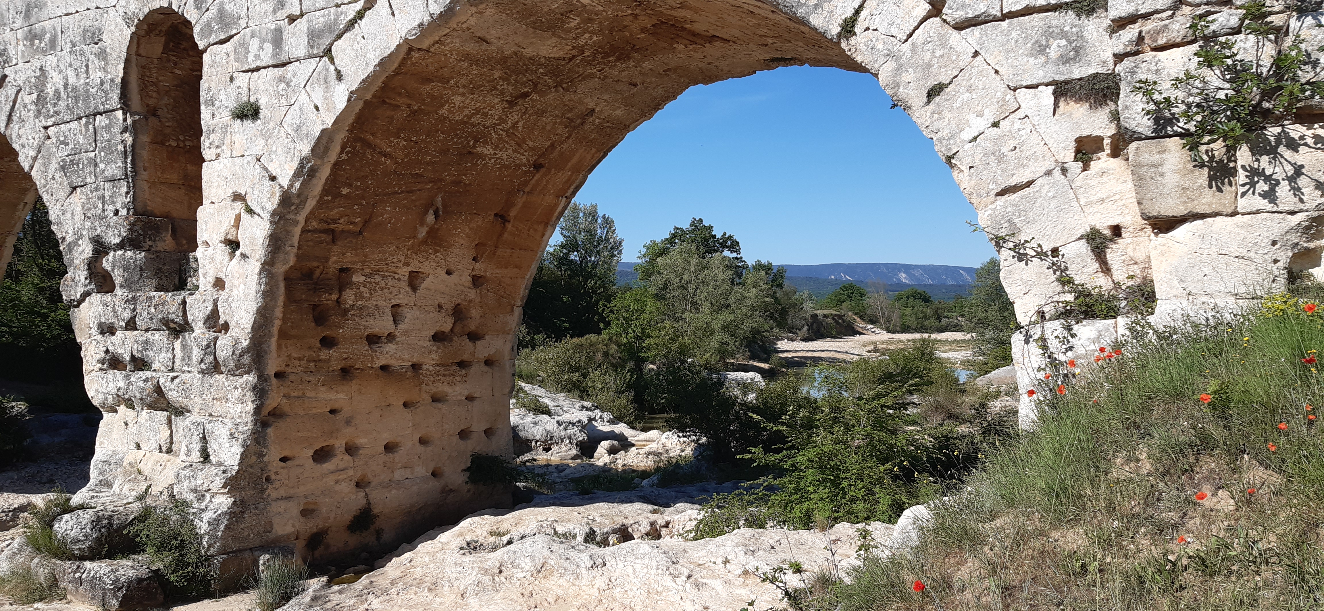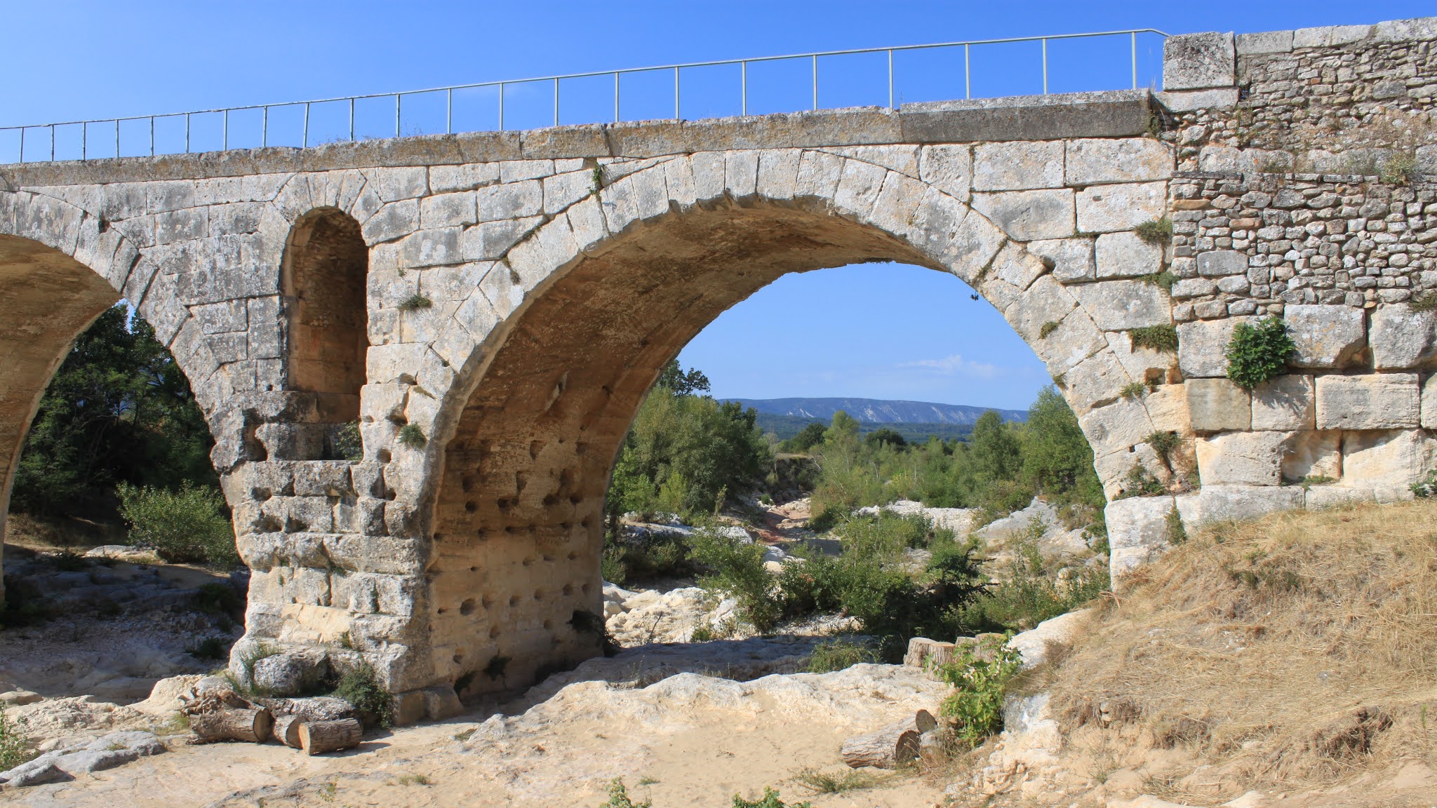 Incroyable de ce dire que ce pont a résisté aux crues... Qu'il est là depuis 3 années avant JC... Pas sous cette forme mais tout de même. Par contre on perçoit bien le manque d'eau.