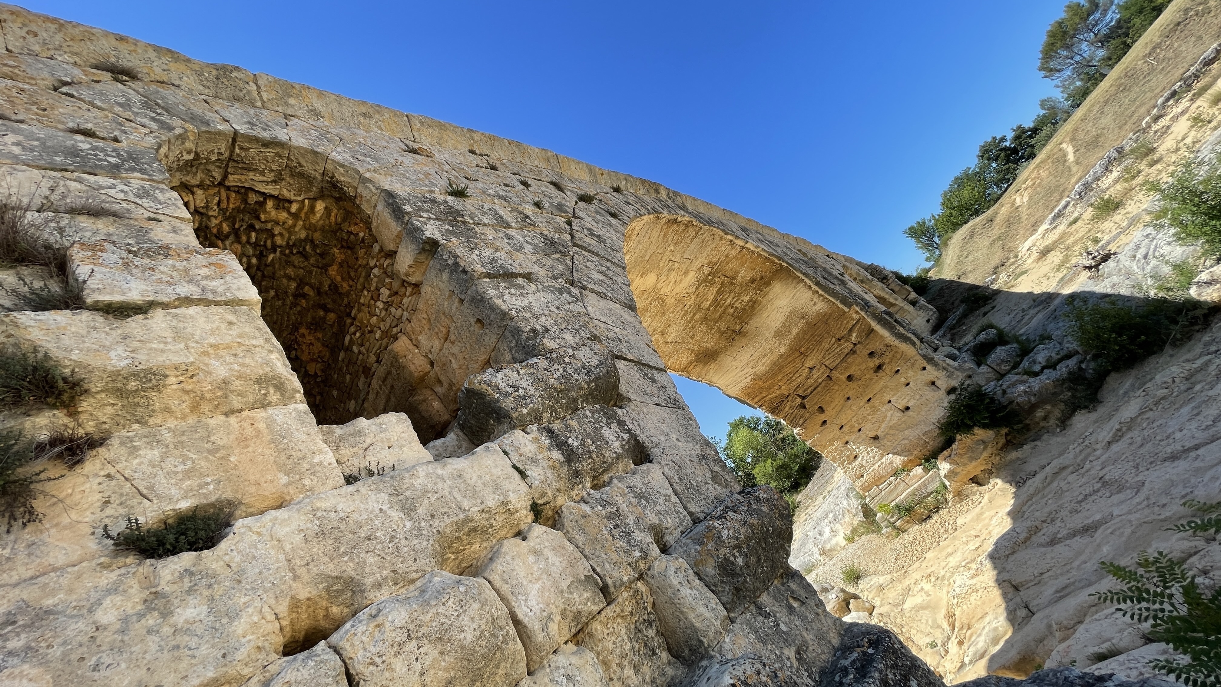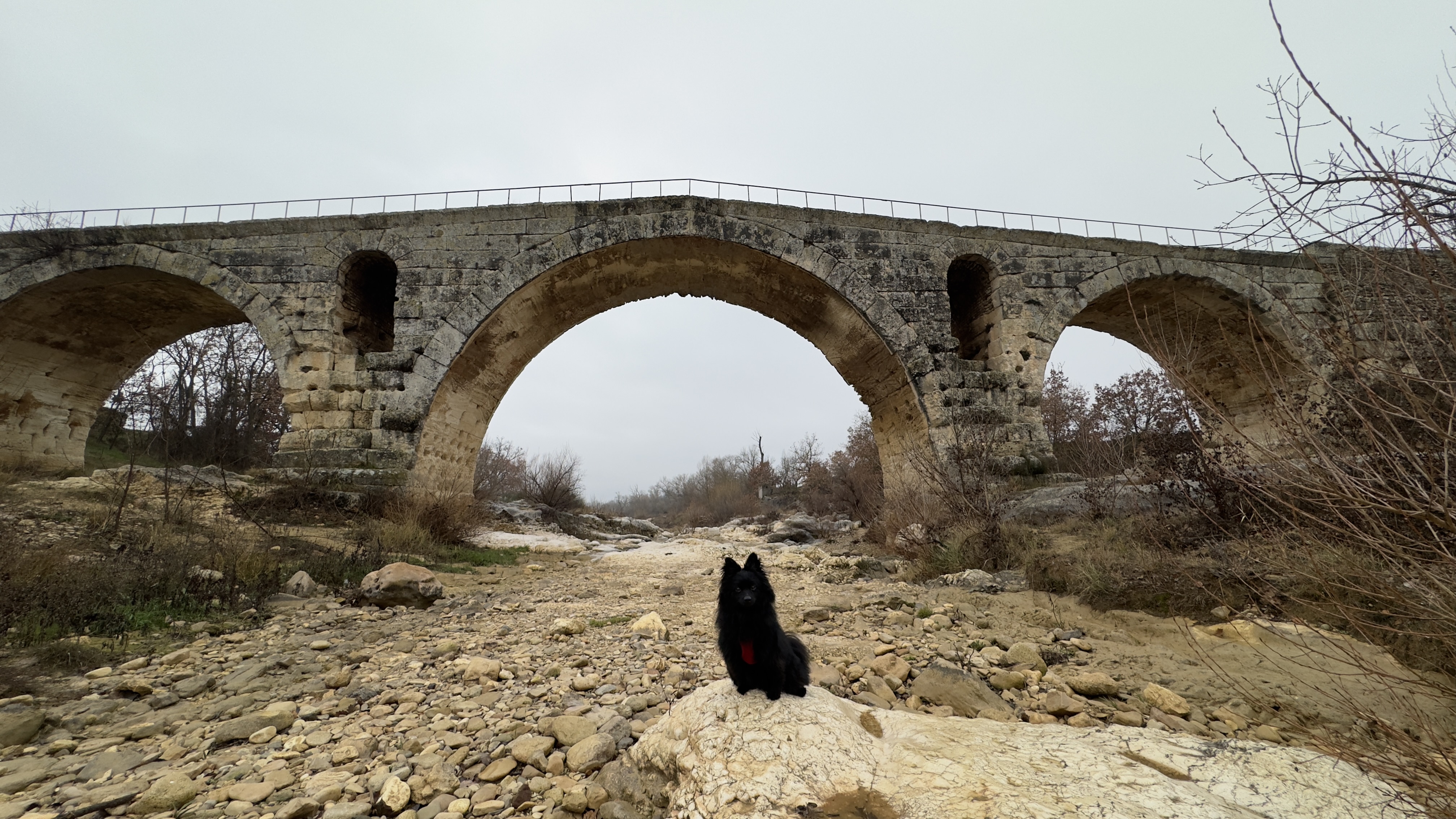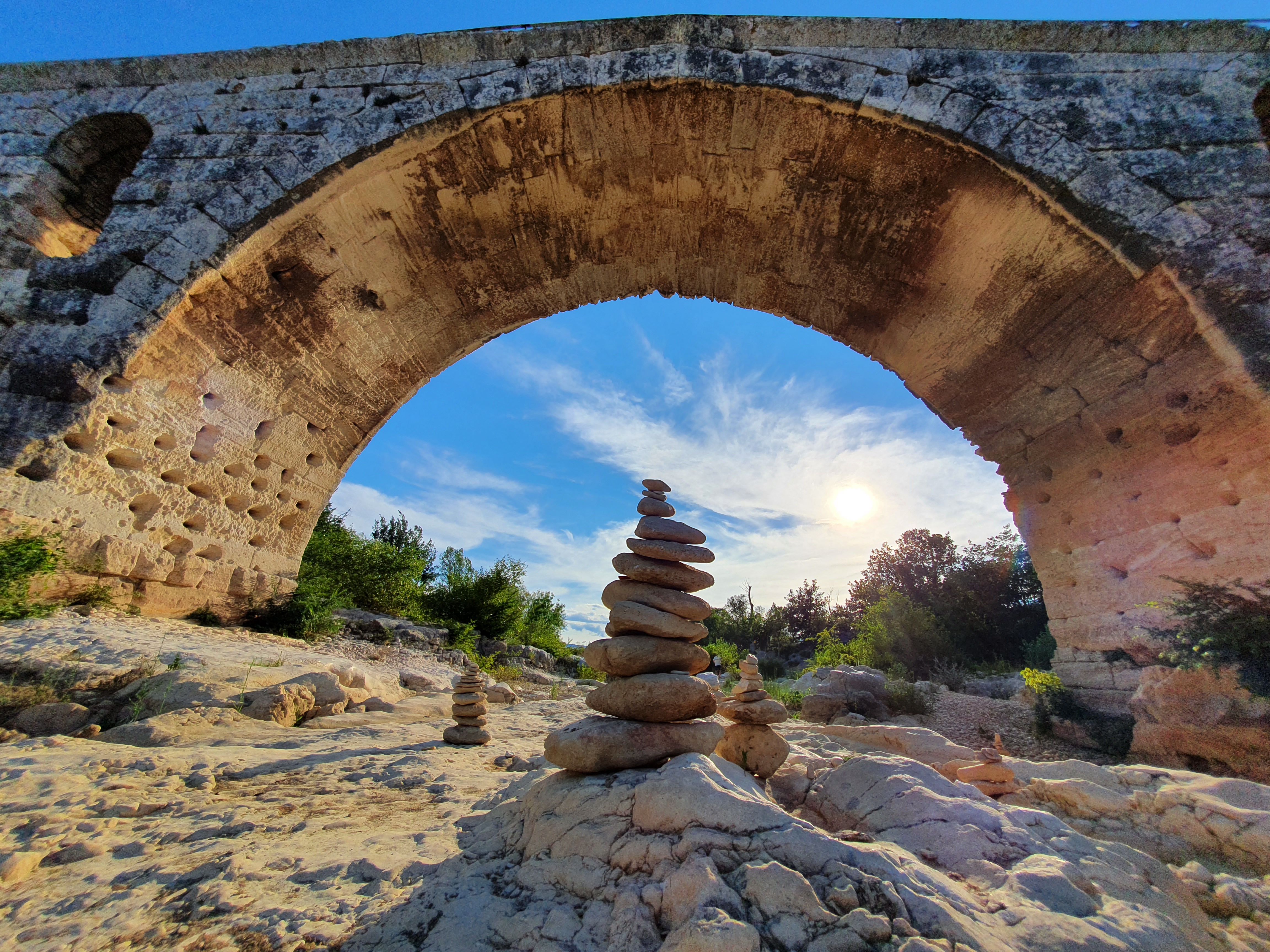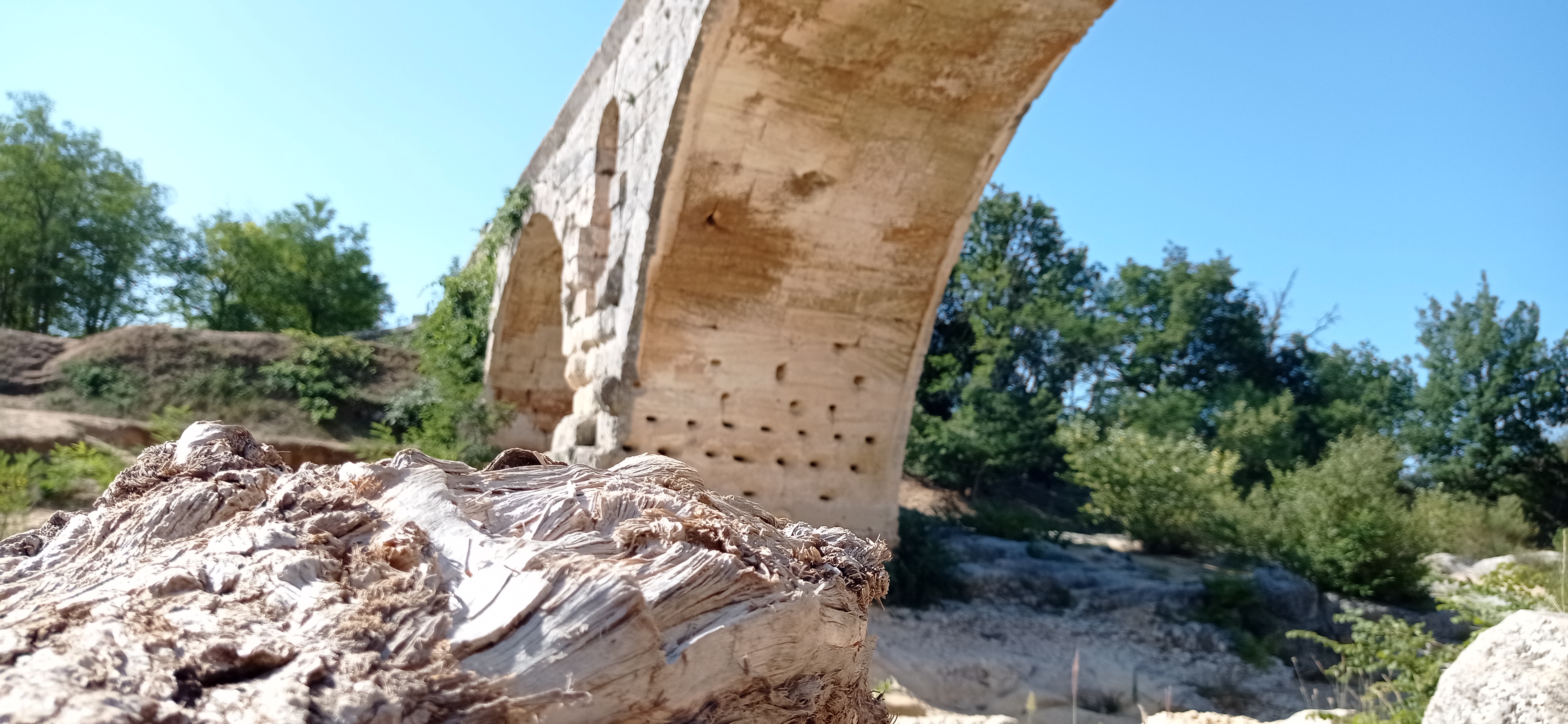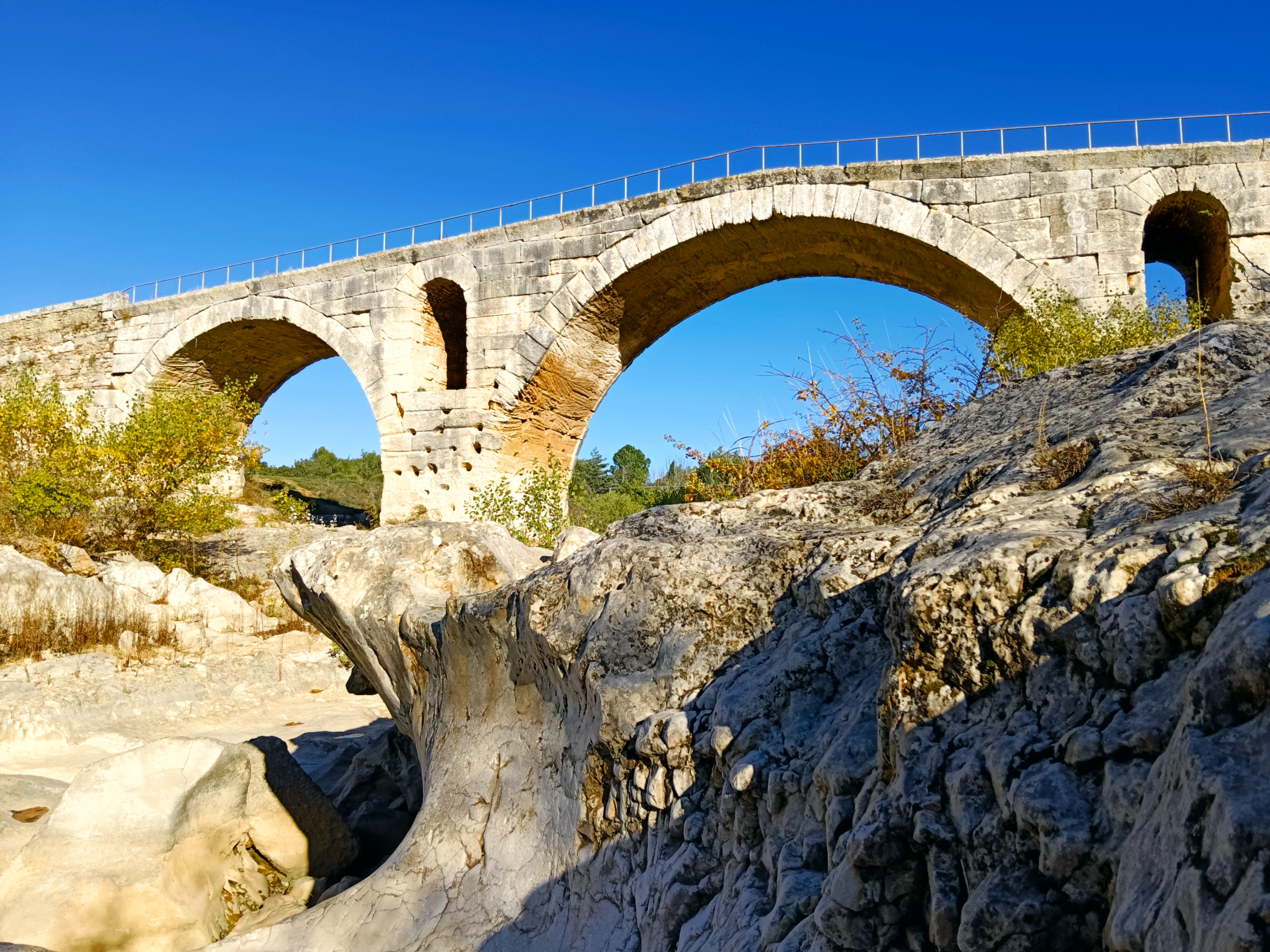 Incroyable de ce dire que ce pont a résisté aux crues... Qu'il est là depuis 3 années avant JC... Pas sous cette forme mais tout de même. Par contre on perçoit bien le manque d'eau.