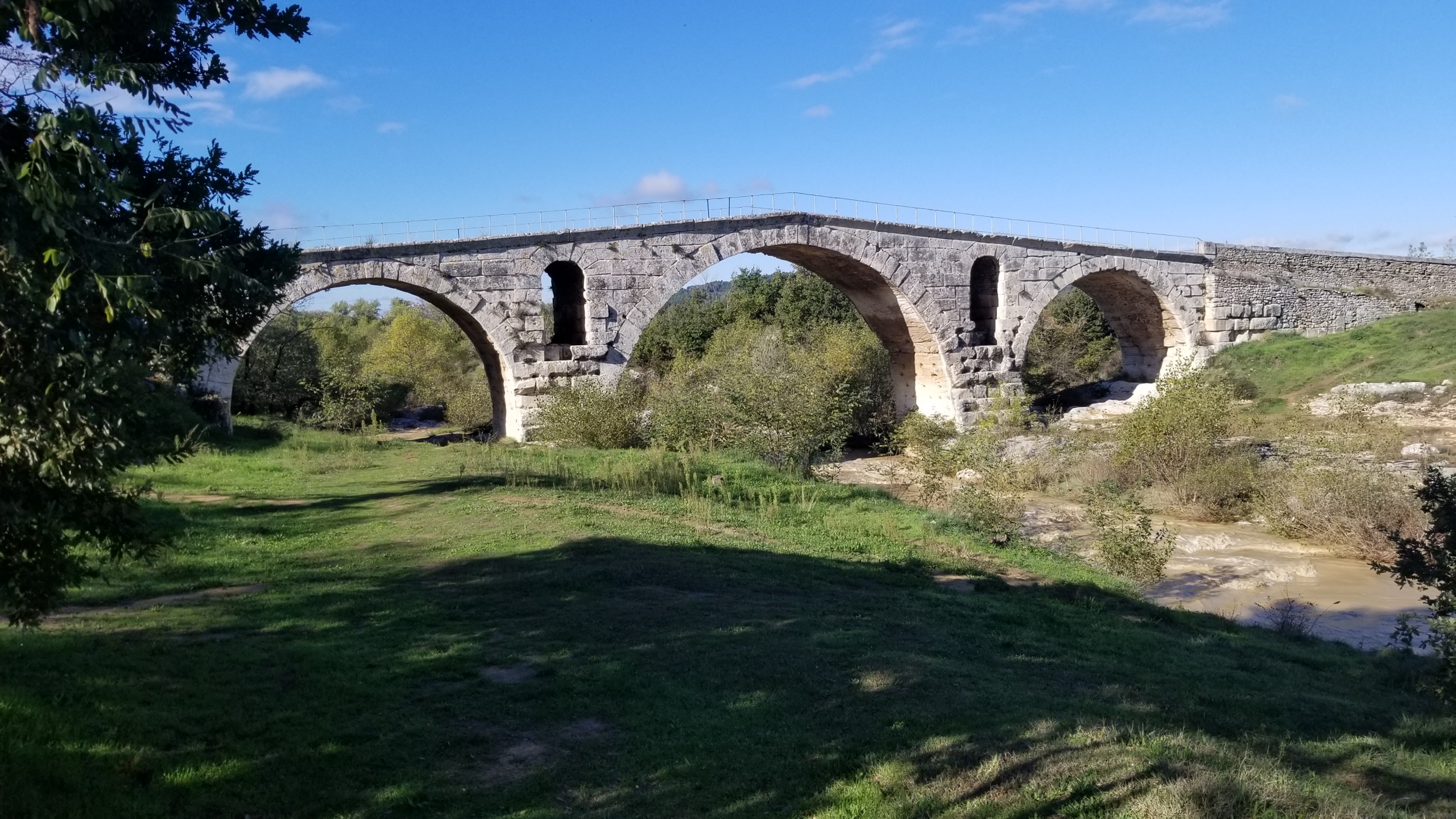 Beau pont Romain bien conservé. Cadre reposant, herbe et verdure, idéal pour un pique nique ou un goûter avec des enfants. Voie verte pour les vélos.