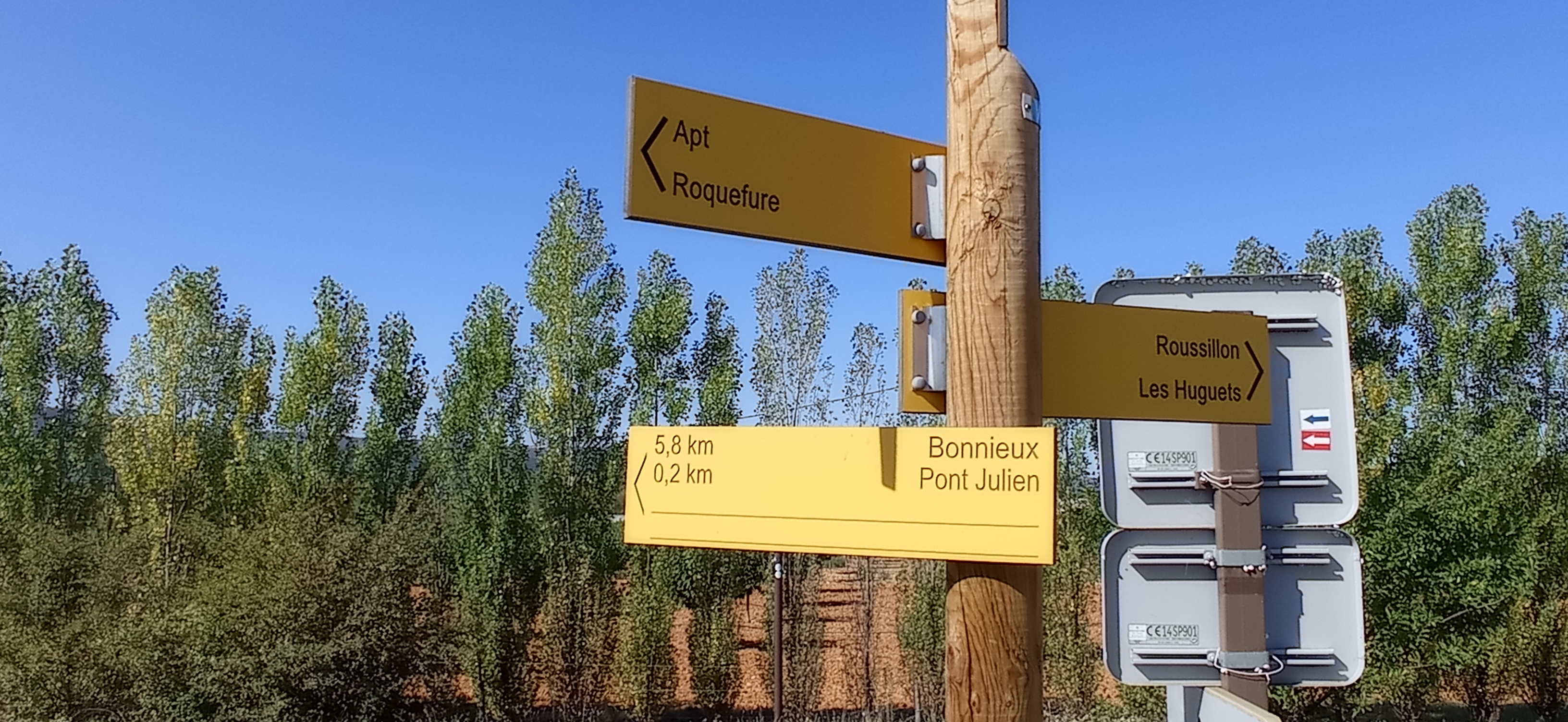 Bel endroit ou les cyclistes passent Circuit vélo de Robion à Manosque ou l'inverse.. Beaux paysages à traverser.Voie verte en grande partie.
