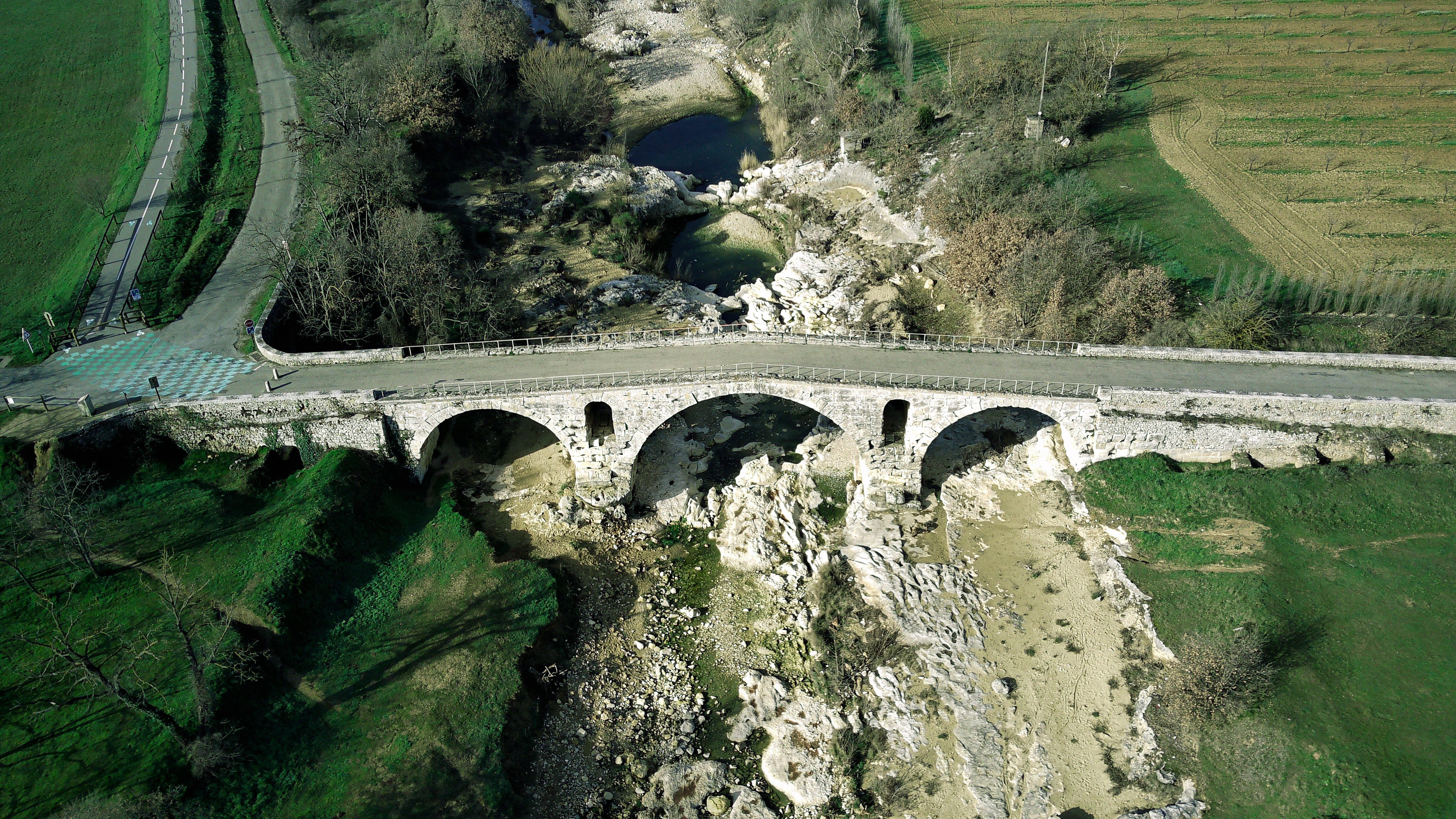 Très jolie pont construit avant JC . Mais malheureusement plus d’eau qui passe en dessous très triste de voir cela de nos jours …