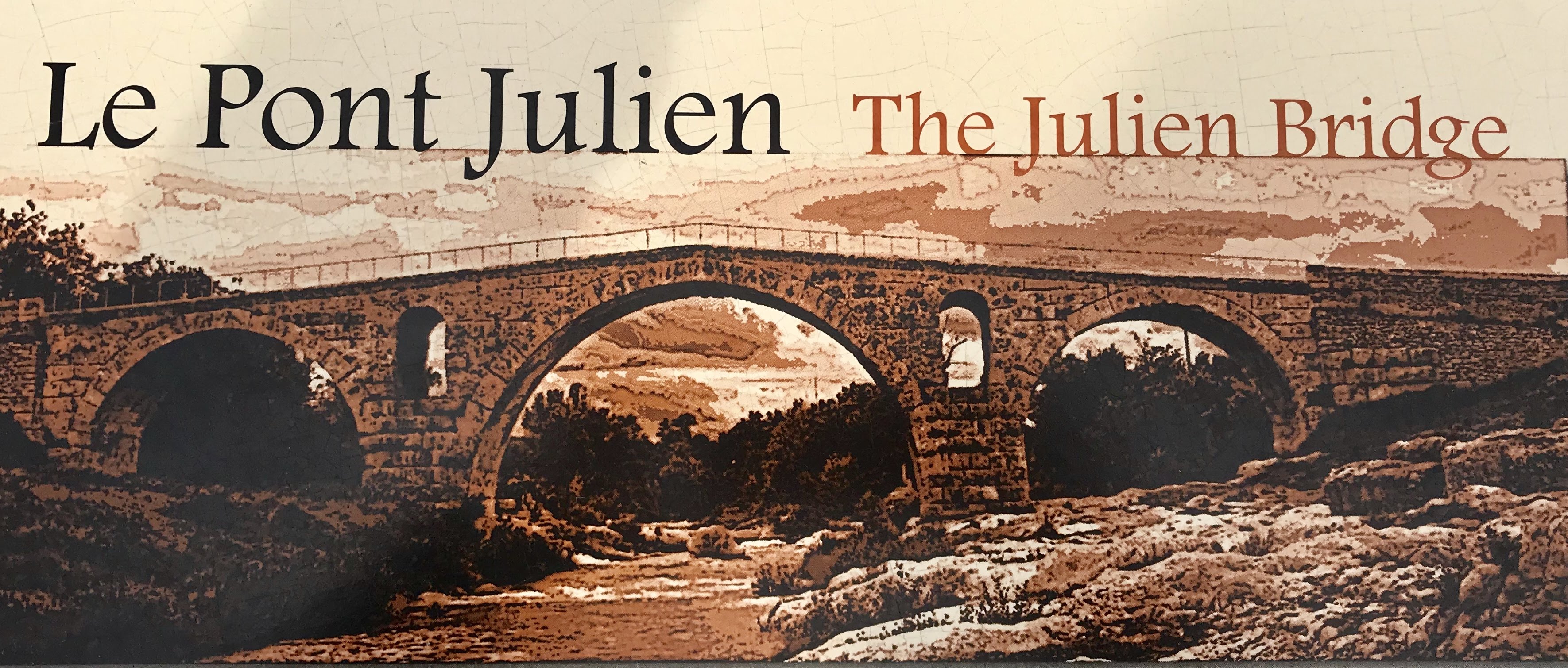 Le Pont Julien est probablement en partie Romain. Les piles et la forme générale du Pont semblent bien attribuables aux gallo-romains. L'endroit est assez fréquenté. Des routes et des pistes cyclables passent par là. Les cyclistes peuvent passer sur le Pont. C'est superbe.