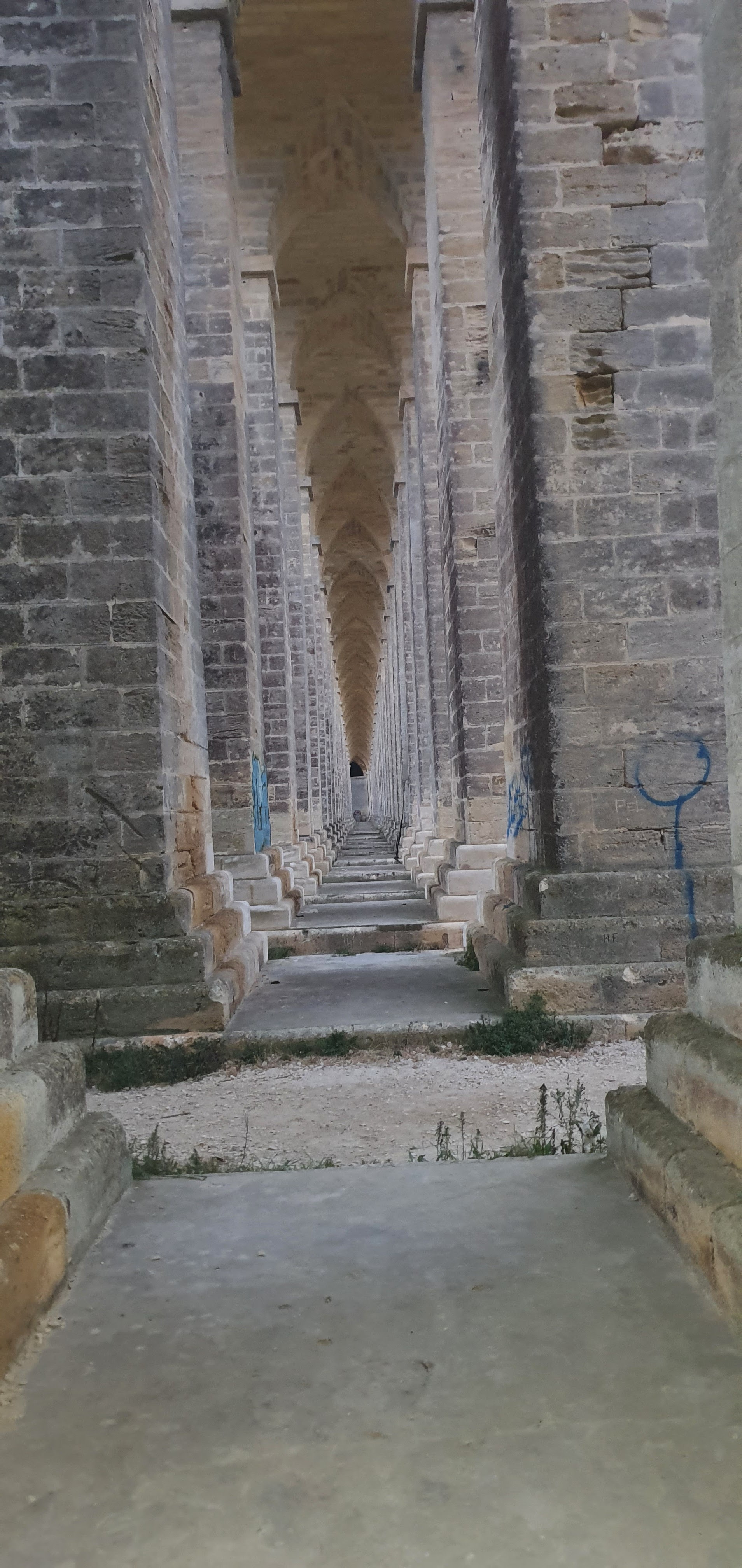 D'un côté le pont de l'autre l'enfidale des pilaces ressemble a une Cathédrale sans fin vue de dessous