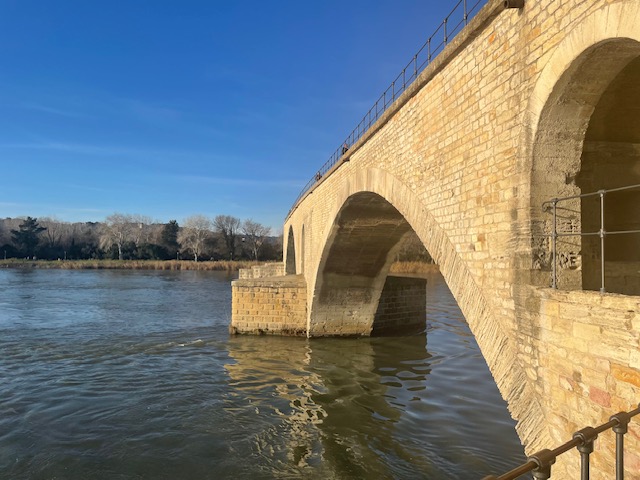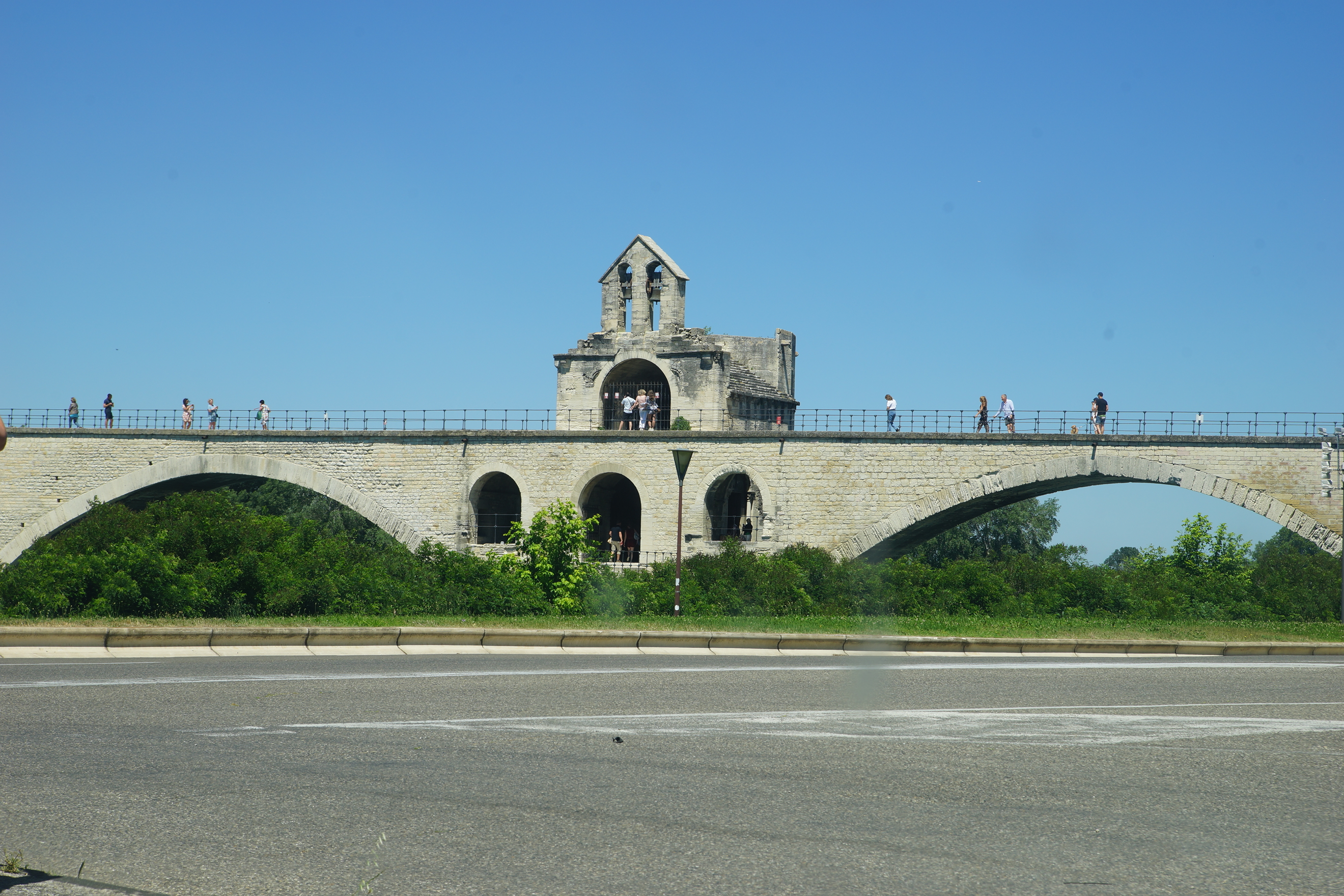 Ah le pont d’Avignon connu par sa chanson que tout le monde connaît. Il n’enjambe pas complètement le Rhône, à moitié seulement. A voir