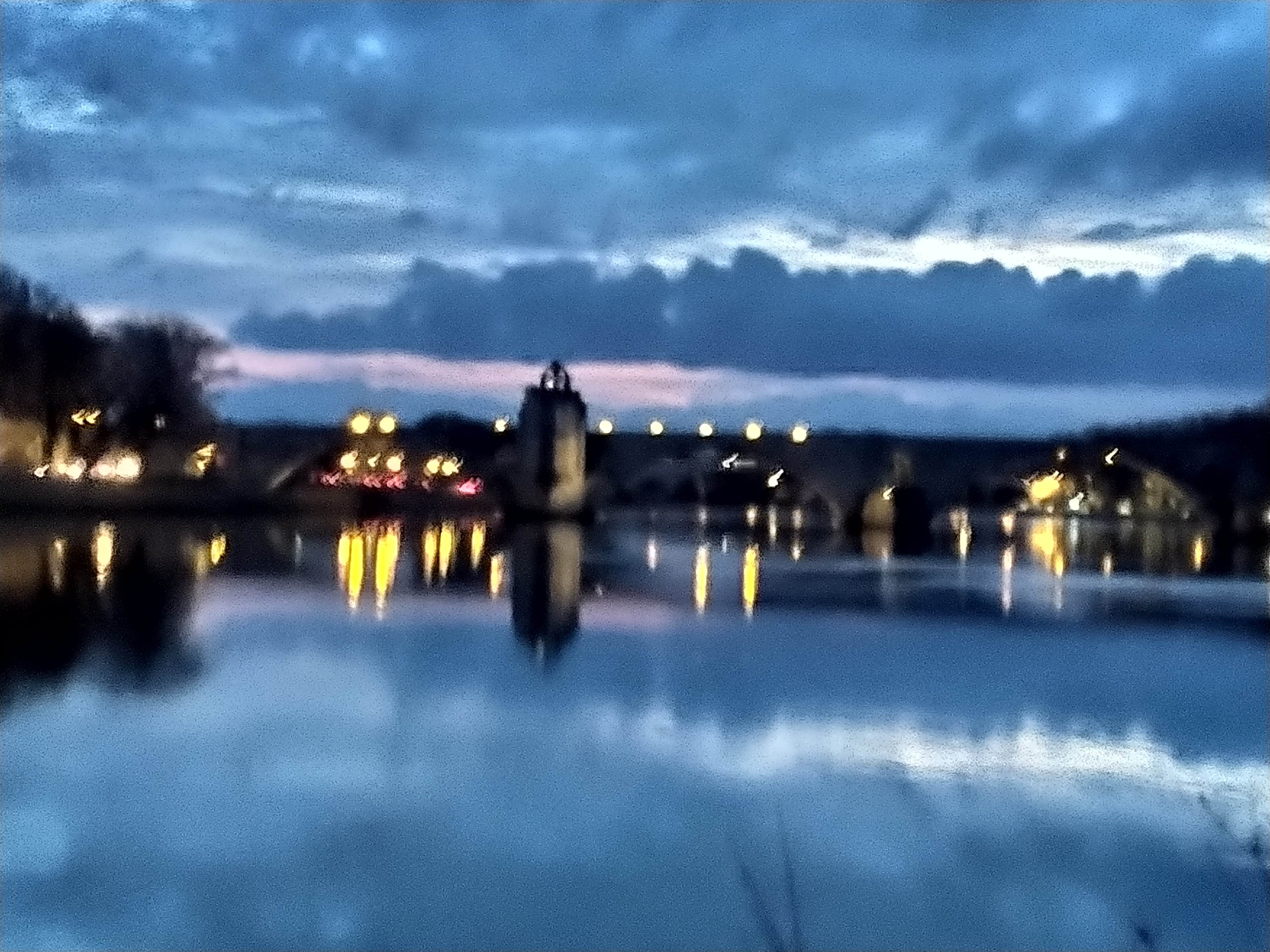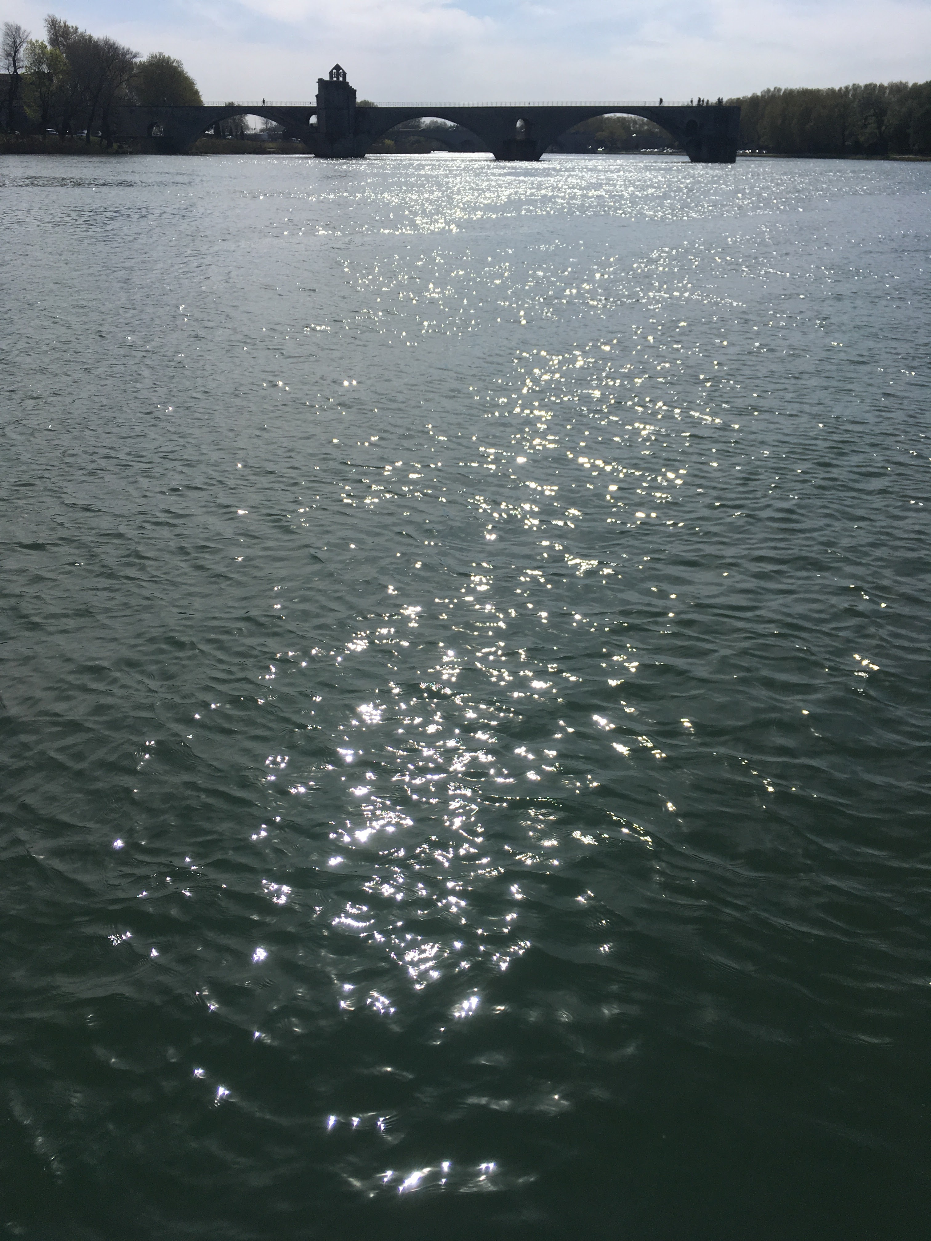 Sur le ponton... Les passants,flottent sur l’eau, Tel sur un petit bout de radeau. Accostent le clapotis des flots, La lumière scintille en joyaux. Un pont vers le royaume, Des rois et des psaumes. Heaumes surhommes, Il ne reste que fantômes. Au pied des pierres sèches. Le pire fût. Galère en calèche. Aujourd’hui,l’eau est fraîche. Le Rhône éteignait les mèches. Un balade comme pour ouïr, Le lointain prix des martyrs. La république a eu ses tirs, Effaça l’accent de nos souvenirs...