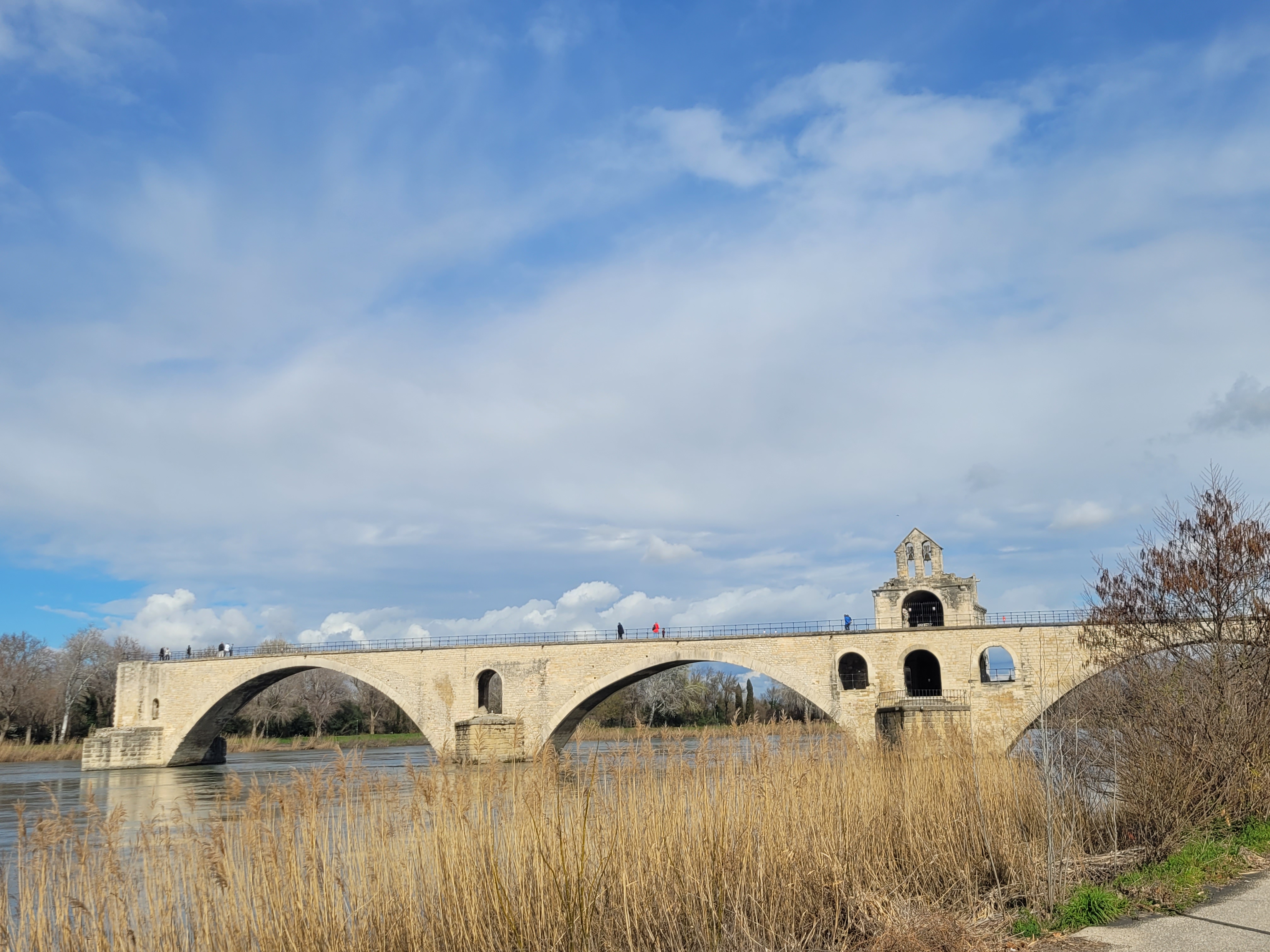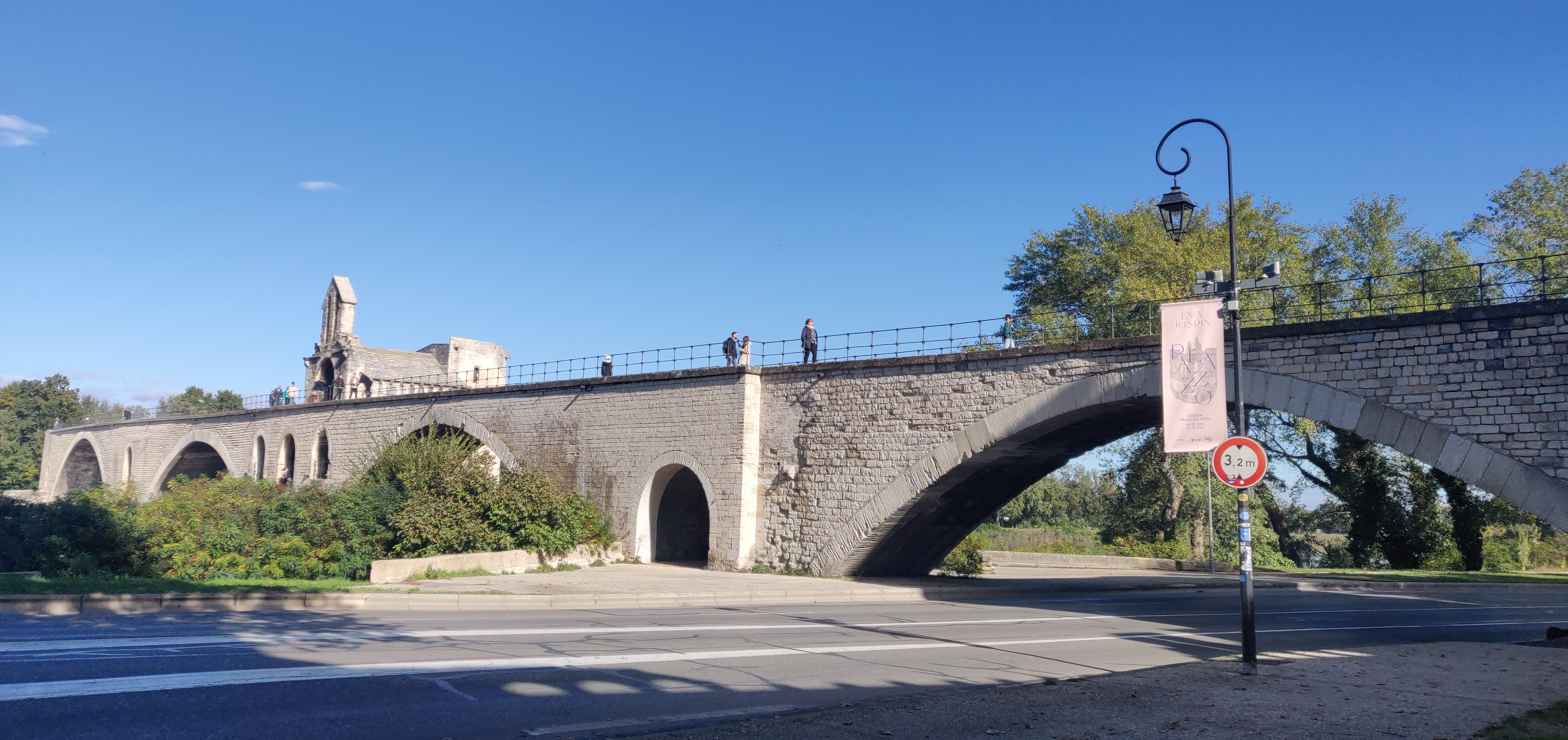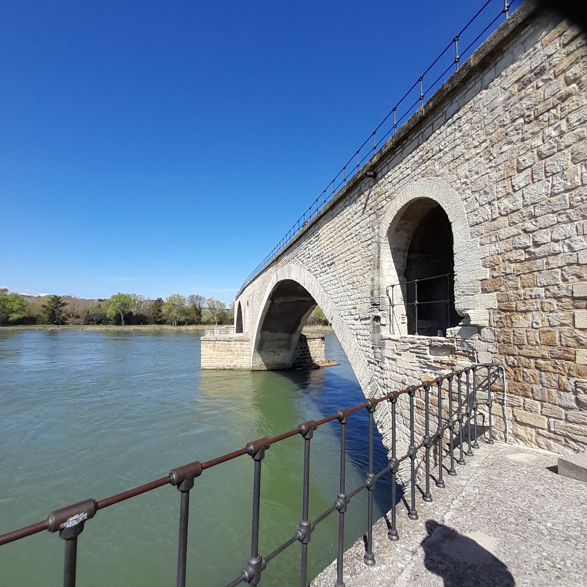 Monument phare de la ville d'Avignon, connu dans le monde entier. Édifice qui était jadis relié à la ville de Villeneuve les Avignon et qui a été emporté par les multiples crues du Rhône. Nous pouvons voir quelques vestiges sur d'anciennes peintures. La mairie devait créer une structure en verre pour continuer le pont jusqu'à l'île de la barthelasse mais le projet ne vit jamais le jour hélas. Il y a aussi un très gros souci, la route qui passe dessous, plusieurs gros véhicules ont percuté la partie basse du pont et récemment un morceau s'est carrément détaché après qu'un camion l'ait percuté....il faudrait creuser la route plus profondément pour augmenter la hauteur et en finir avec ces impacts sous le pont...il est en travaux actuellement et ça crée des bouchons monstres...