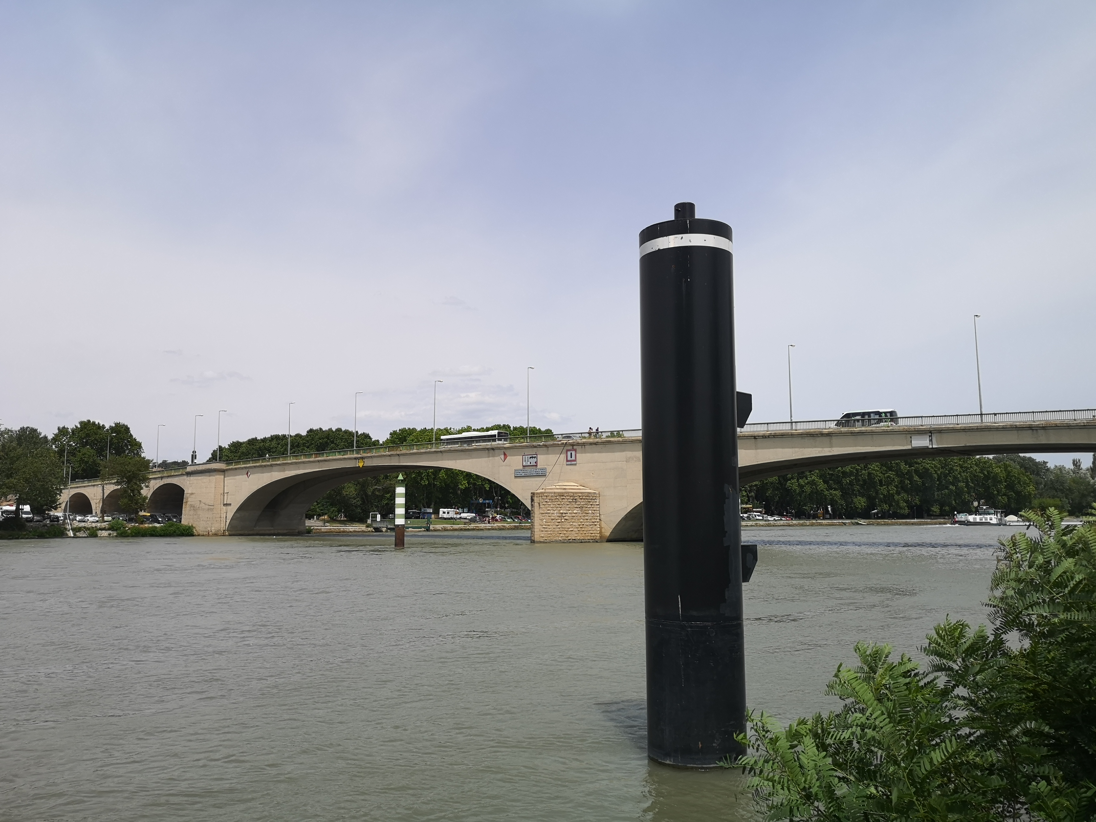 Un magnifique pont qui va jusqu'au milieu du Rhône