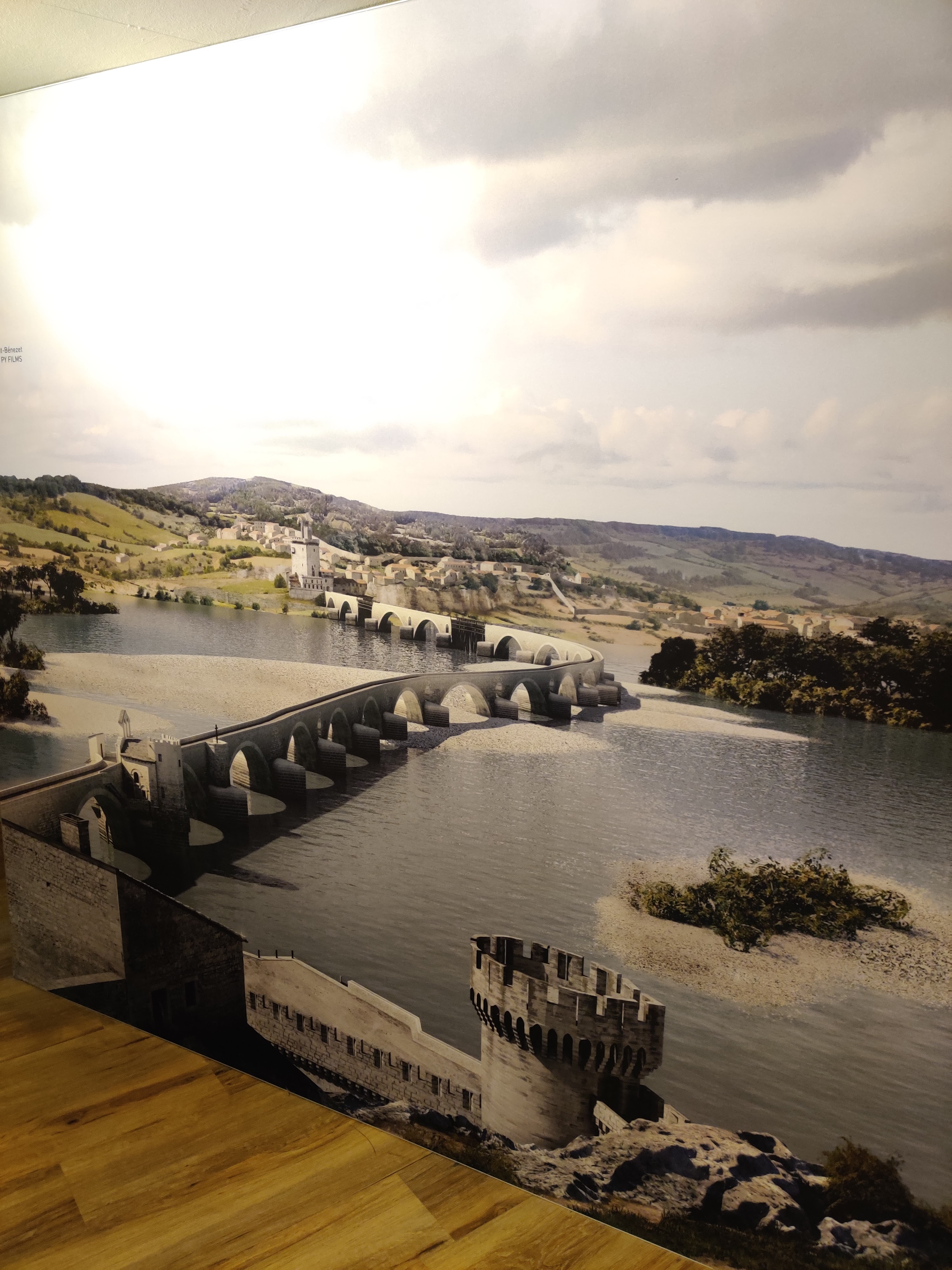 Marcher sur le Pont Benezet est un incontournable d une visite Avignonnaise. La vue y est splendide sur le Rhône et l émotion historique au rdv. Je vous partage des photos reconstituant le pont à son origine que l on retrouve dans la Tour Philippe Le Bel de Villeneuve-lès-Avignon.