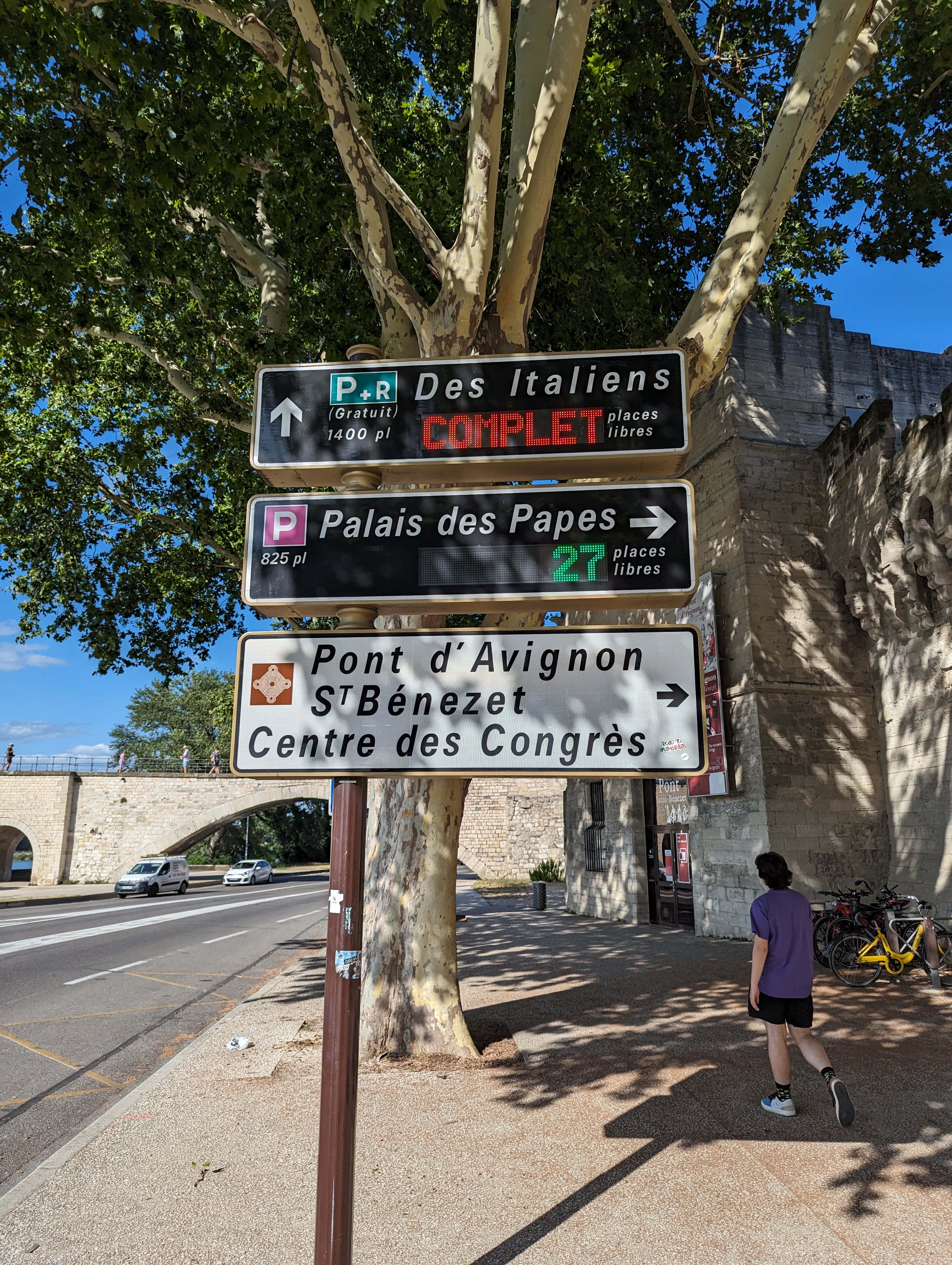 Bien sûr, le pont d'Avignon. Bel endroit, idéal pour faire du tourisme mais le stationnement est un cauchemar en haute saison ou pendant le festival. Je recommanderais d'essayer le parking du Palais de Pape ou juste à l'extérieur près de la grande roue si celle-ci n'est pas disponible.