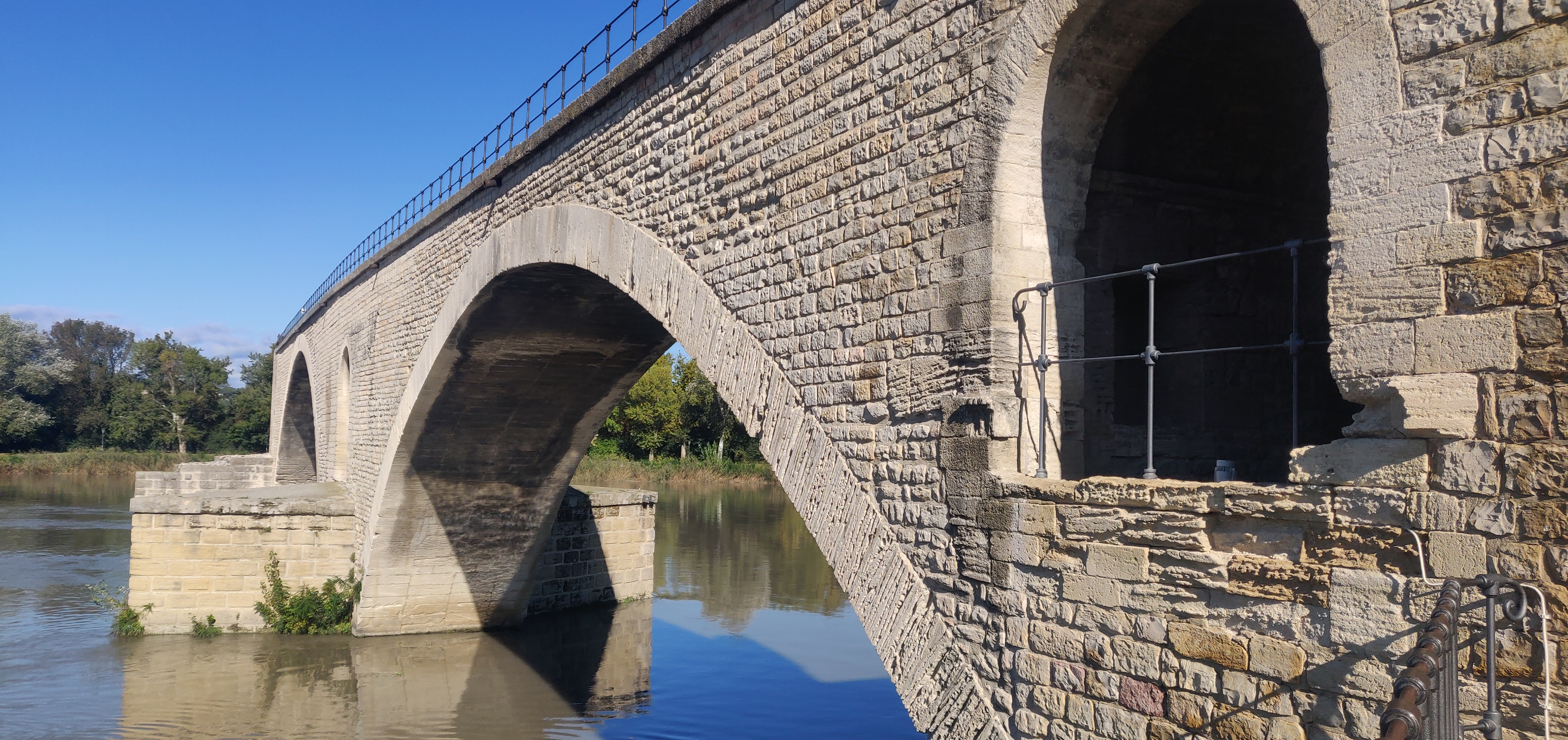 Le pont n’a pas grand chose à voir aujourd’hui, mais son histoire est intéressante. Il a été construit pour la première fois en 1177, en partie en bois. Au cours d'une bataille, elle fut détruite et en 1234 elle fut entièrement reconstruite en pierre. Au fil des époques, elle fut détruite et reconstruite à plusieurs reprises, car le Rhône était trop brutal, avec crues et changements de cours. Après les dégâts de 1644, le pont n'a jamais été réparé.