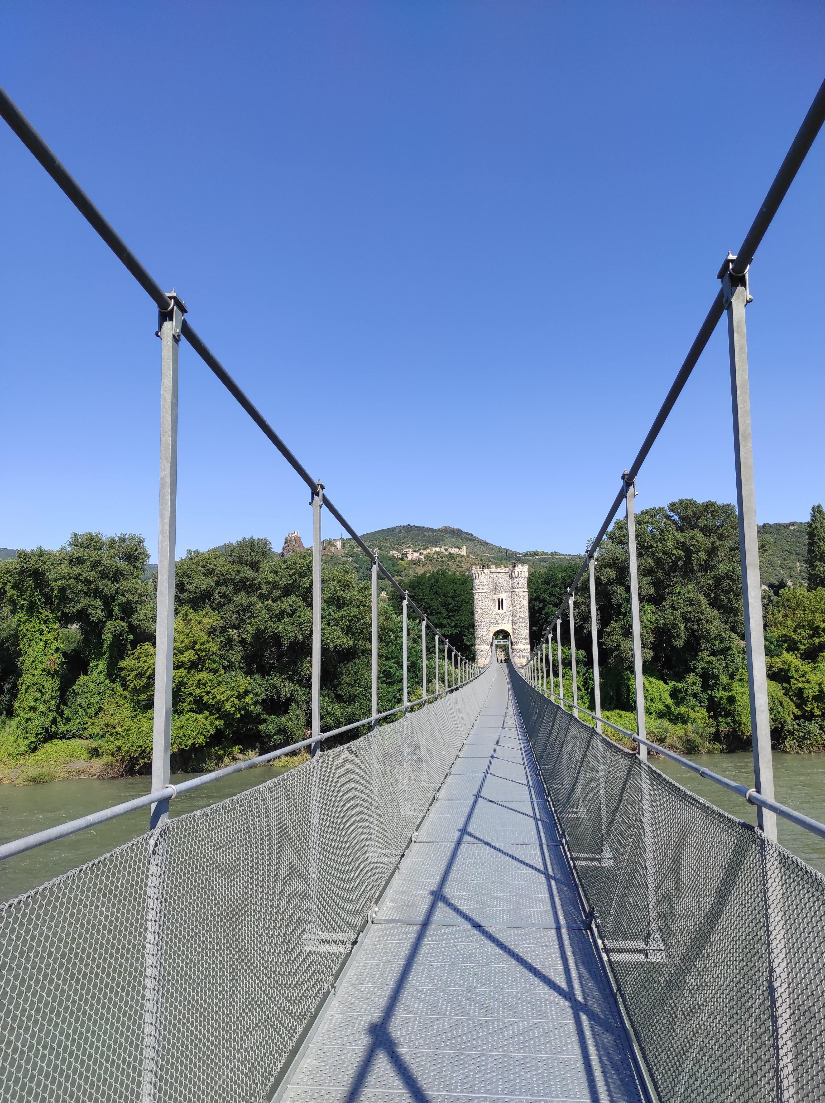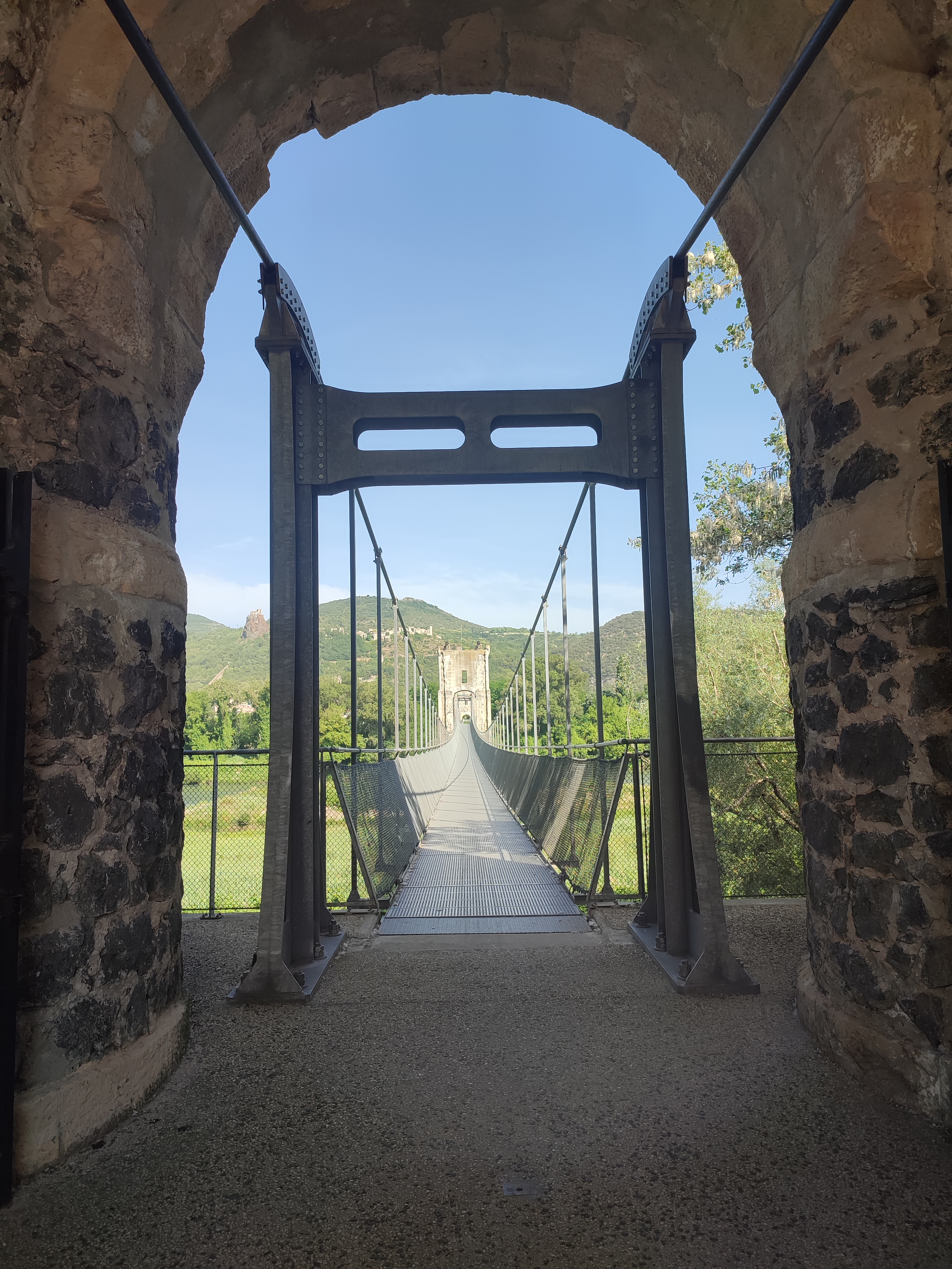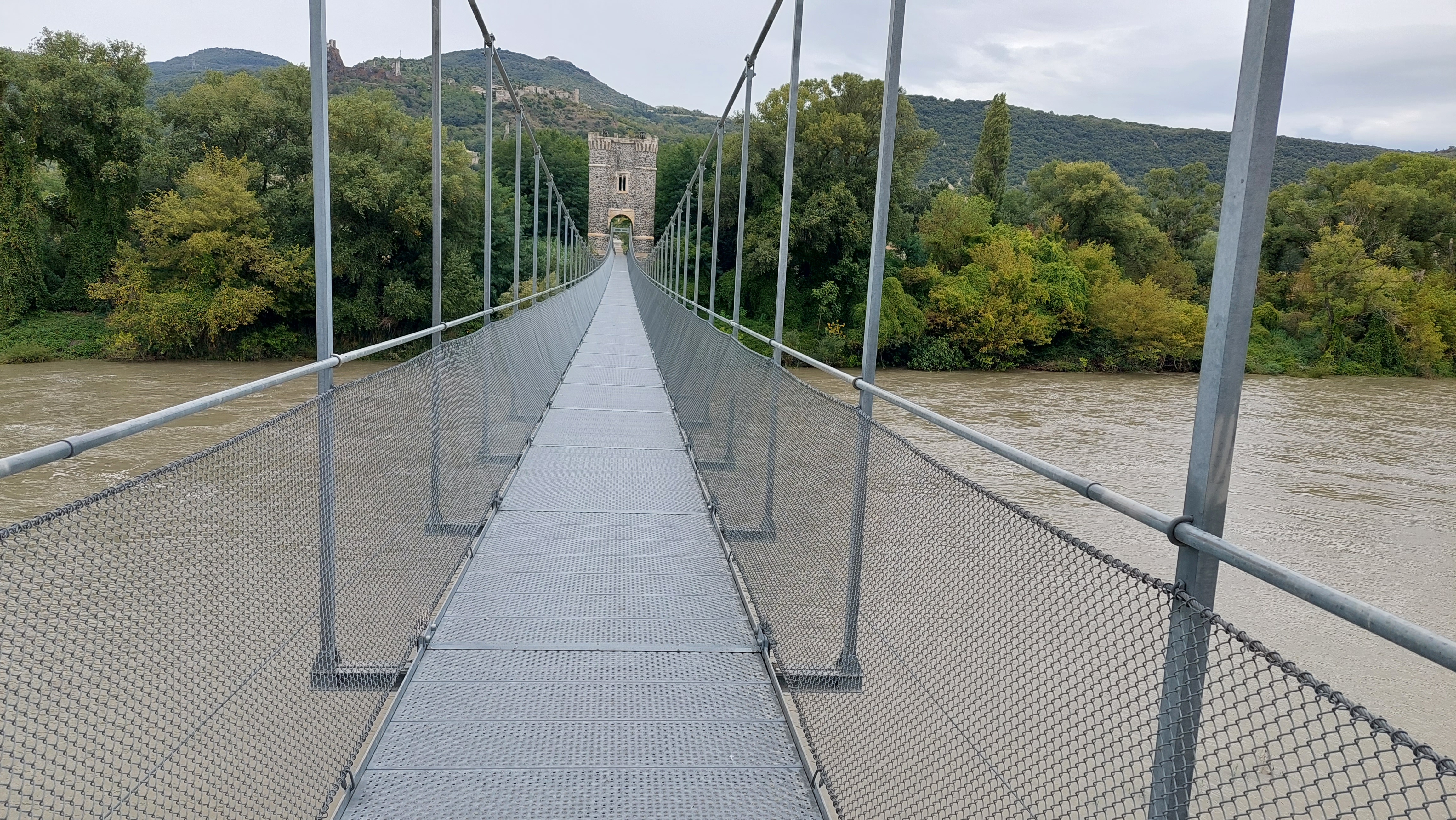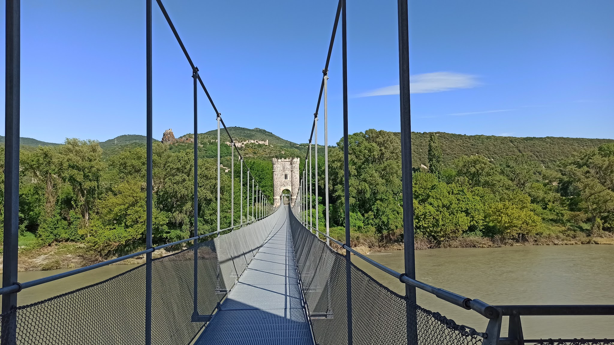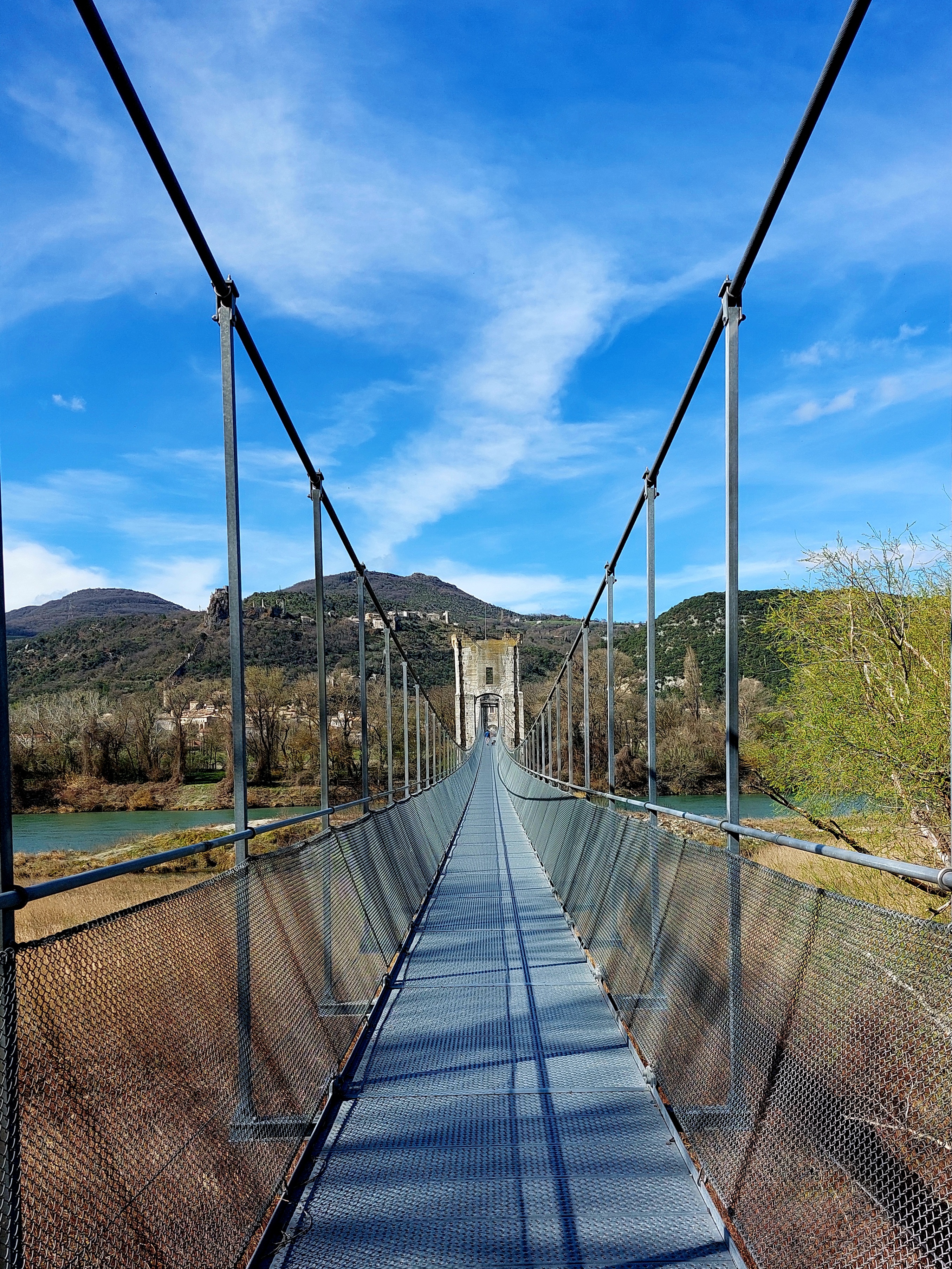 Super pont passerelle à faire absolument, le pont bouge un peu mais ces ce qui fait le charme. On passe au dessus du Rhône avec une vue magnifique sur un village médiéval. On peut le passer à pied ou en vélo.