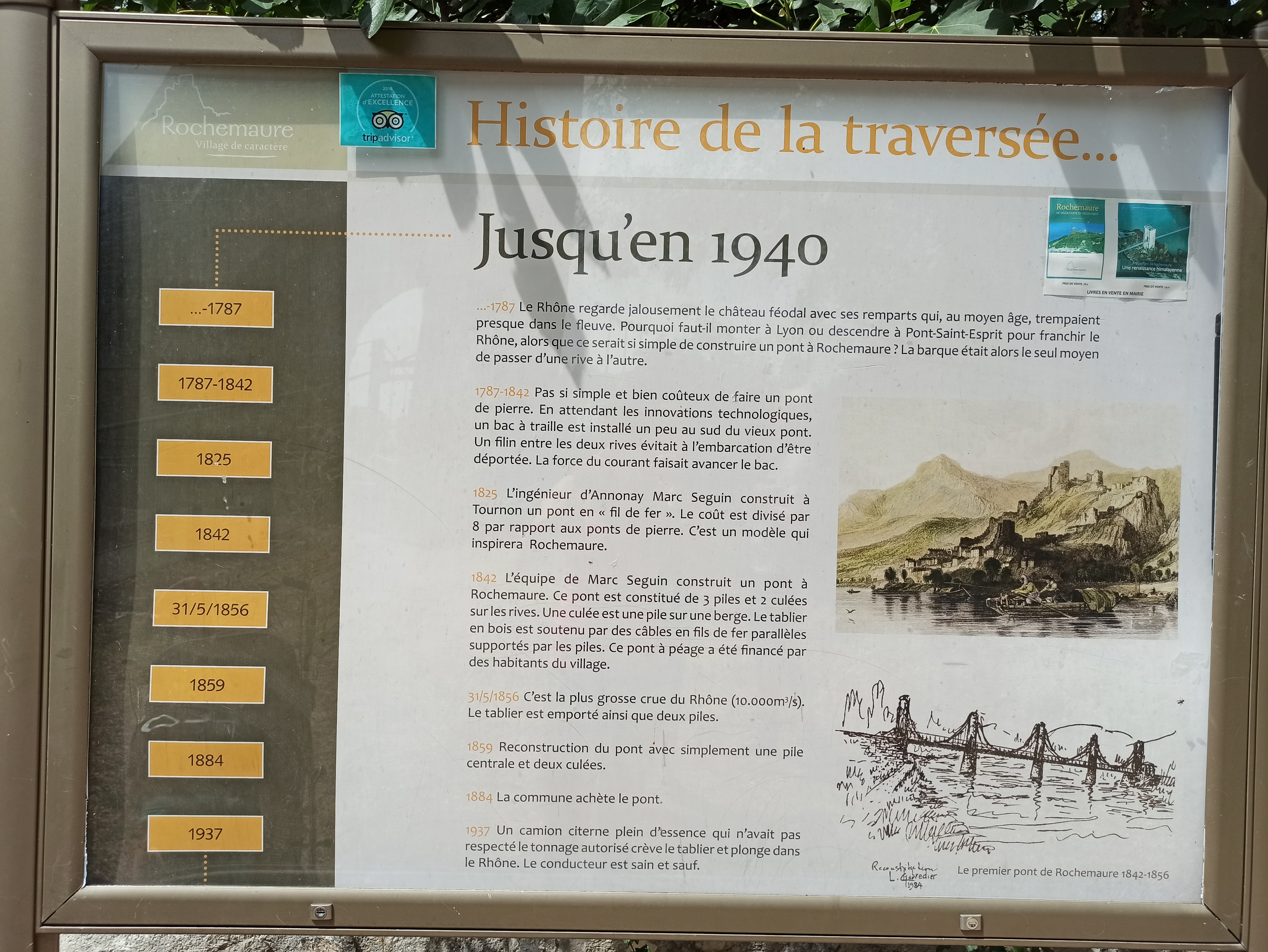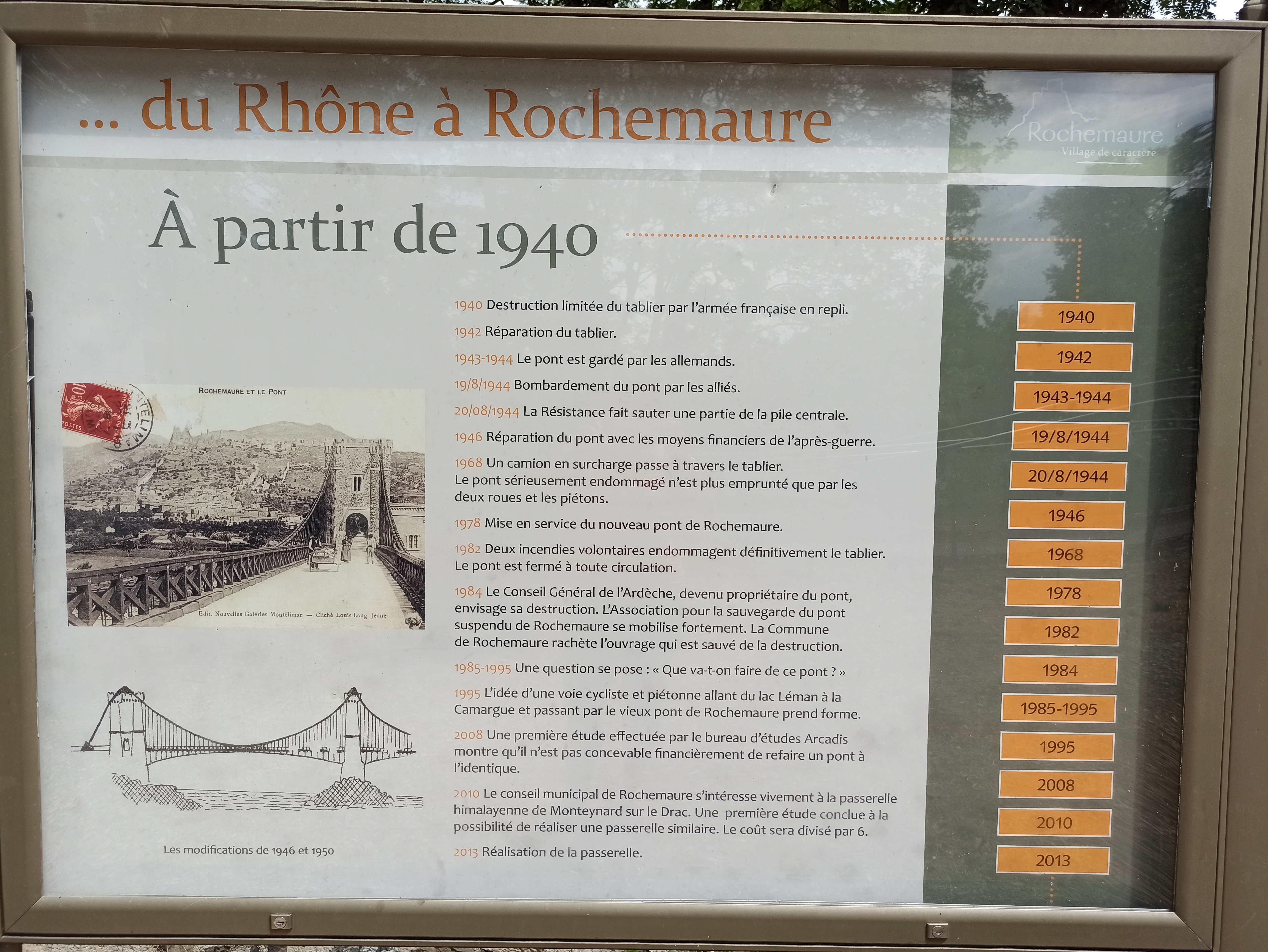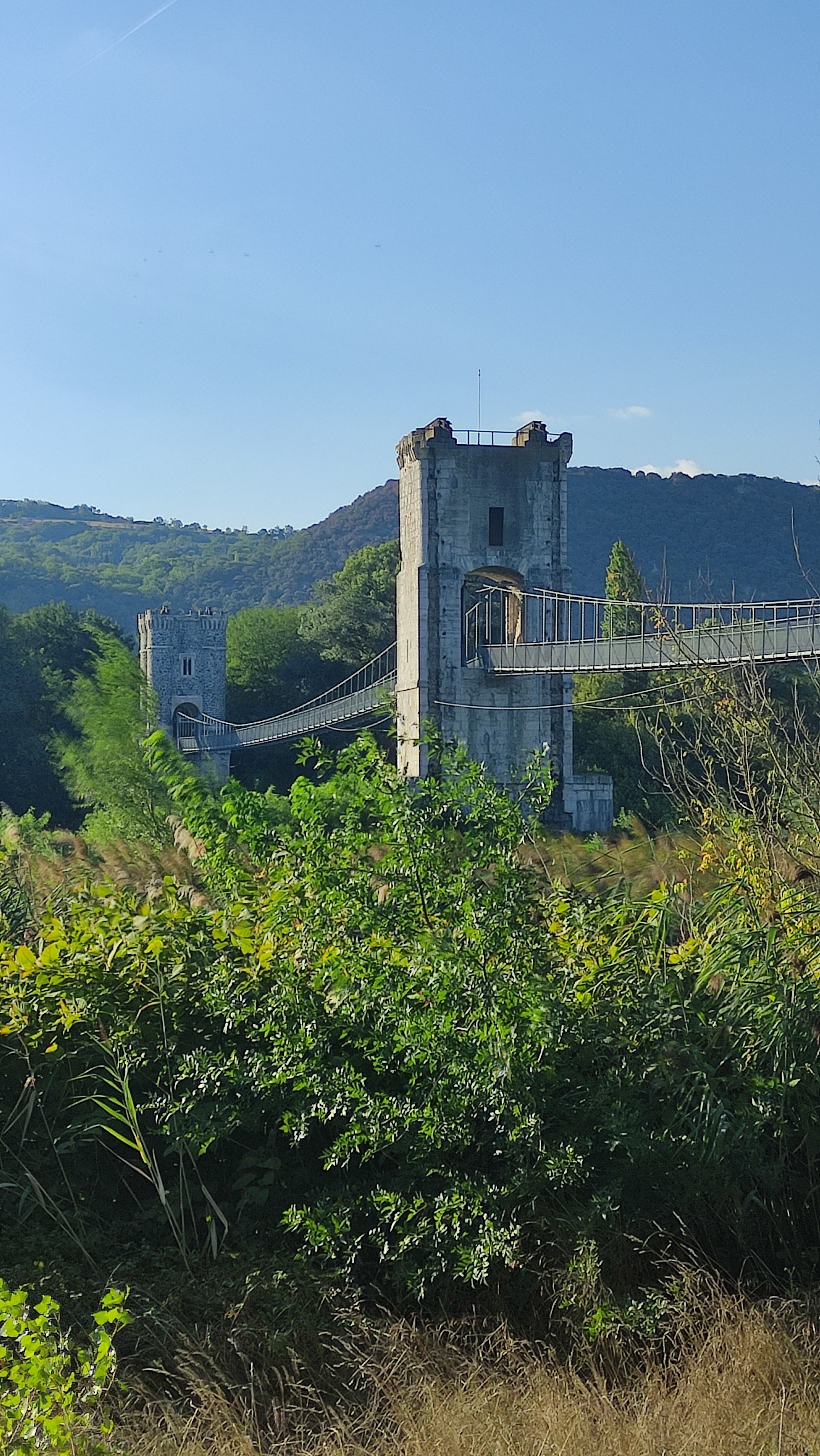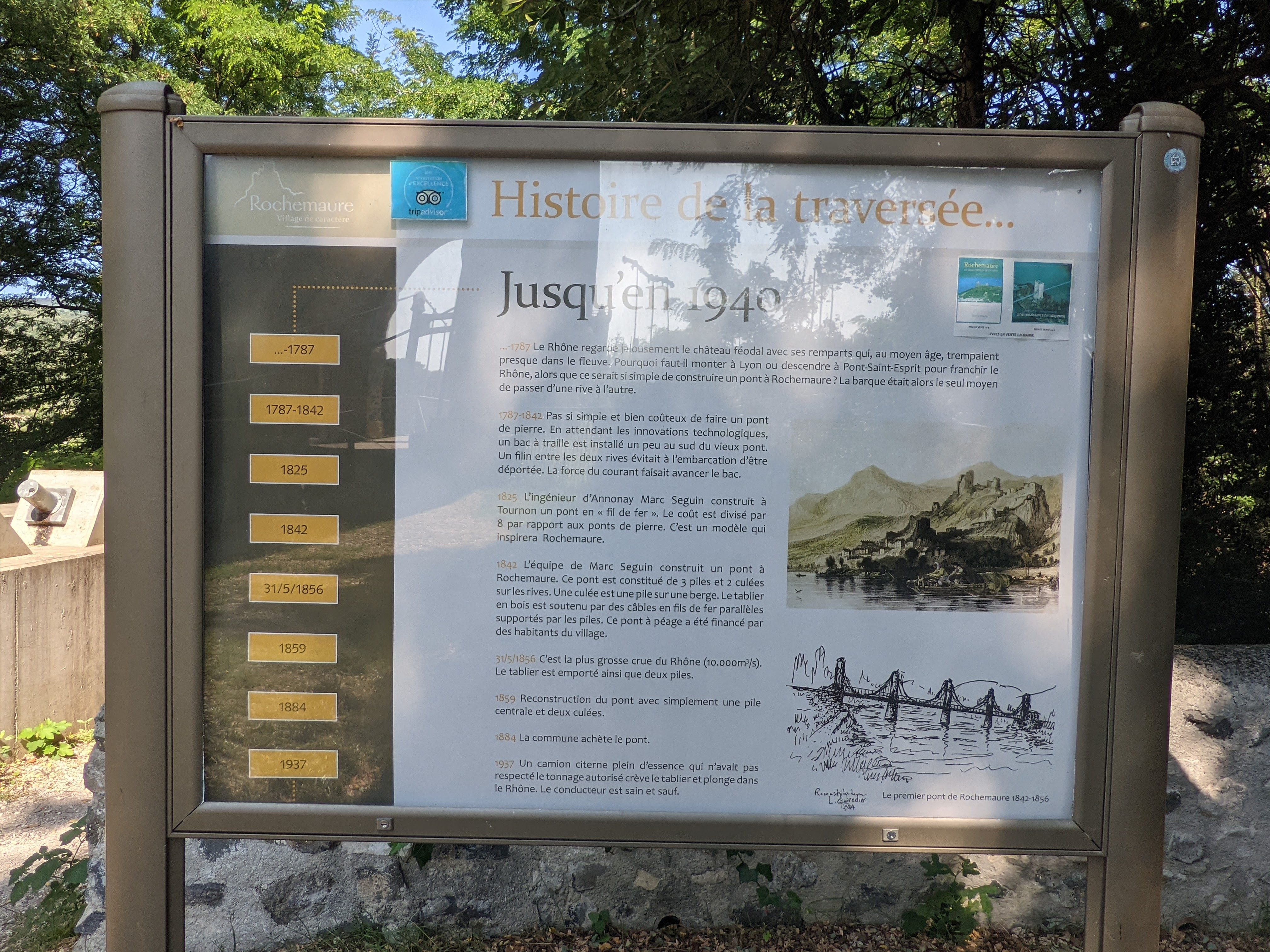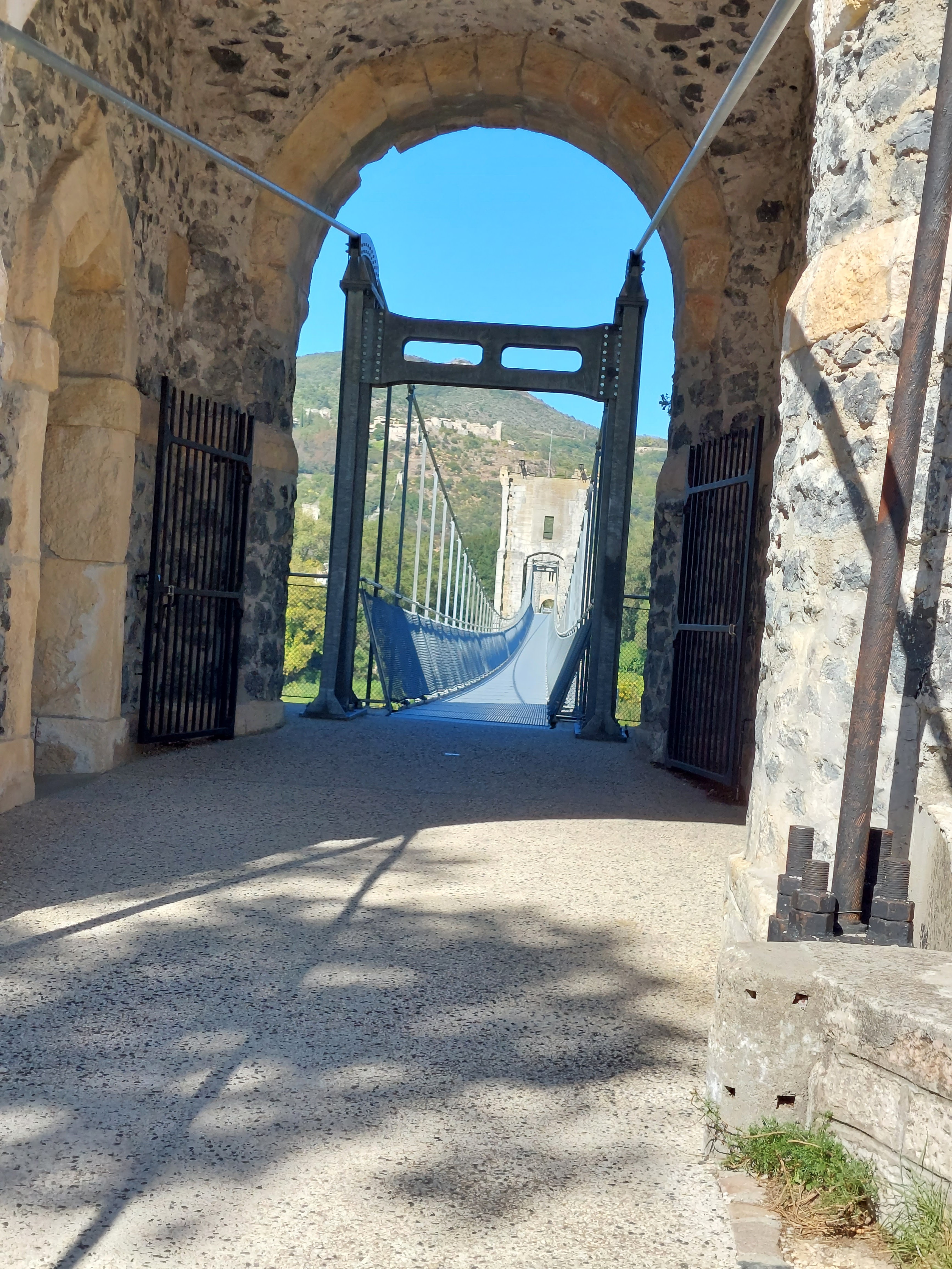 Super pont passerelle à faire absolument, le pont bouge un peu mais ces ce qui fait le charme. On passe au dessus du Rhône avec une vue magnifique sur un village médiéval. On peut le passer à pied ou en vélo.