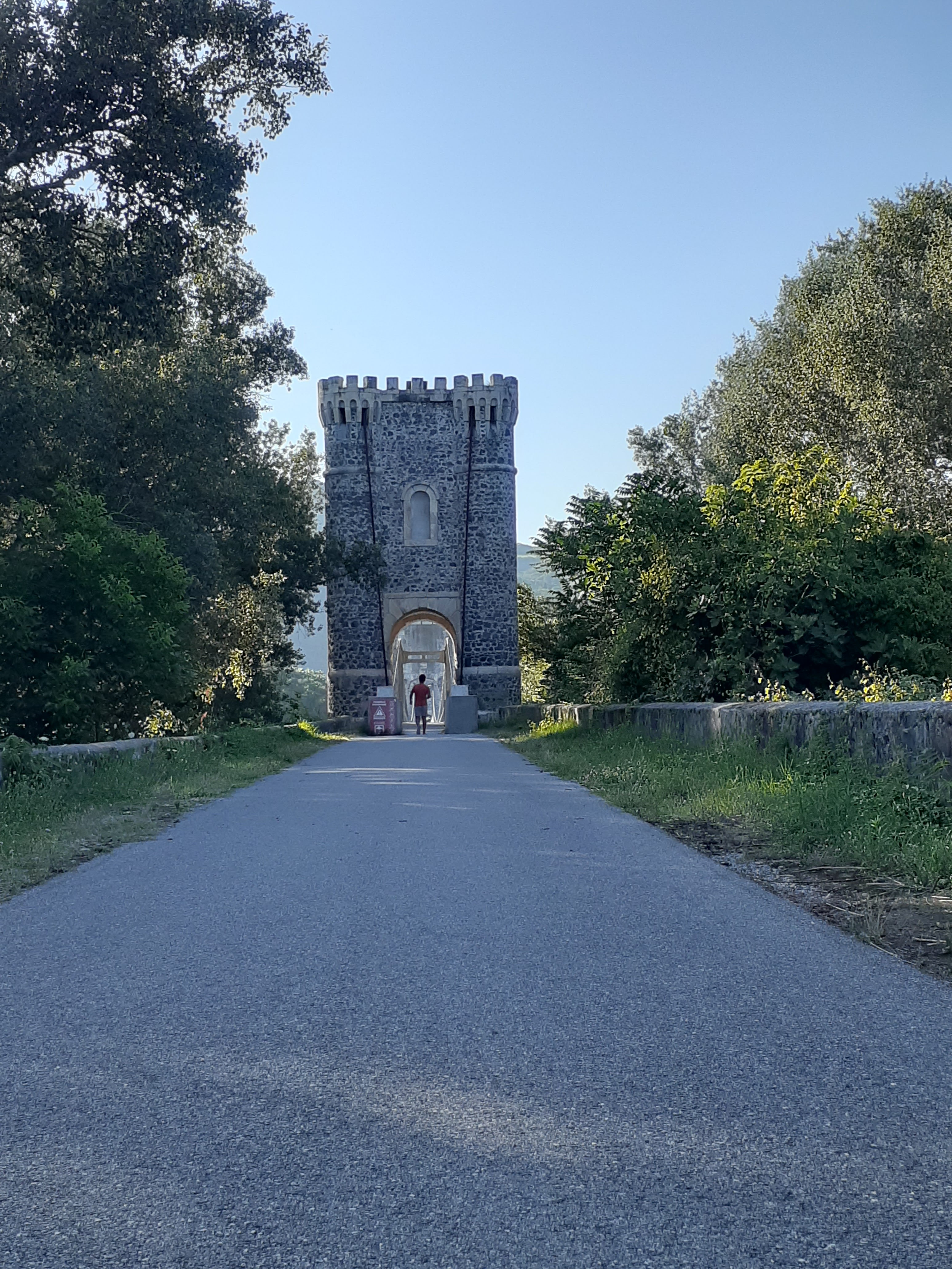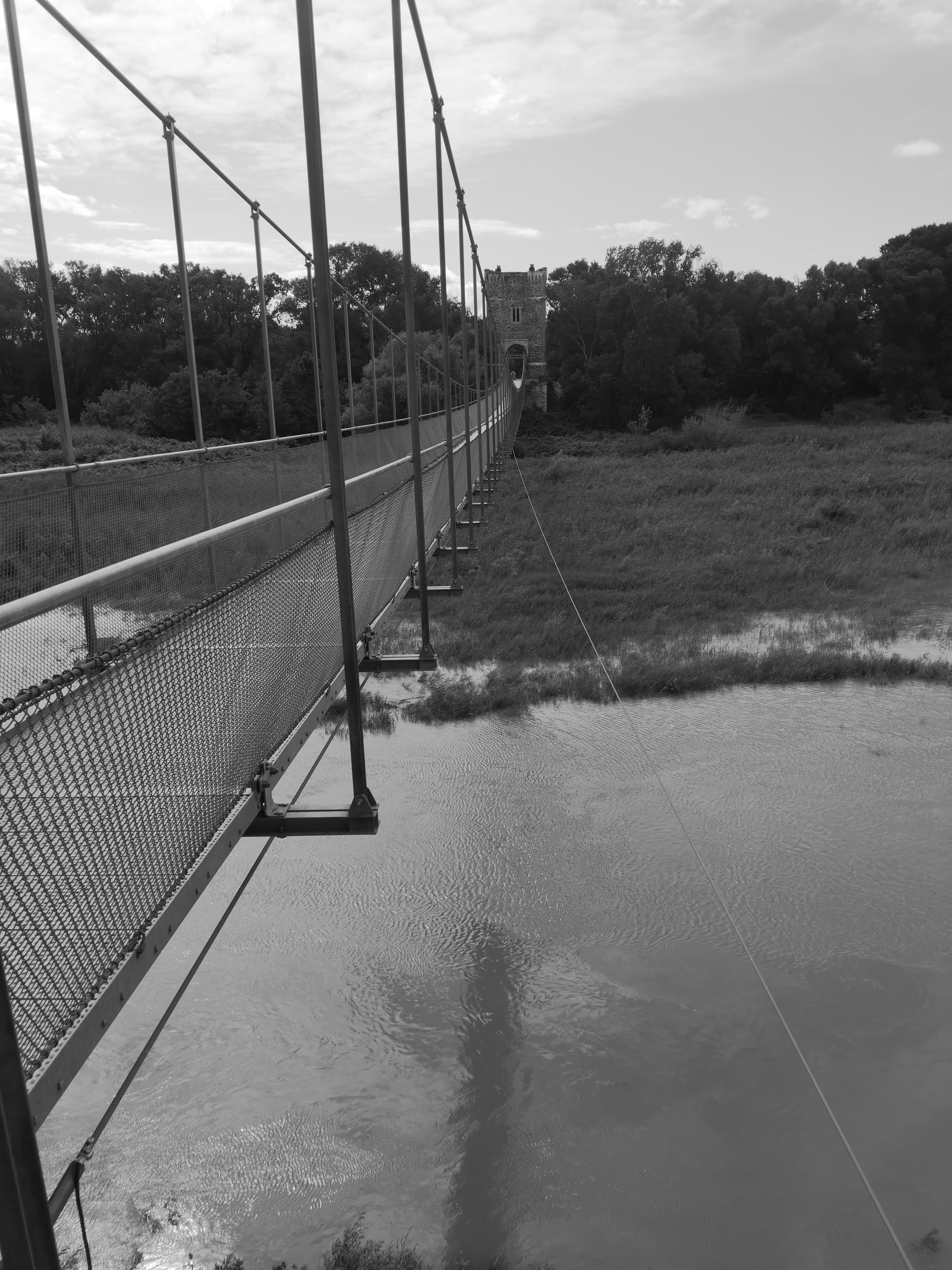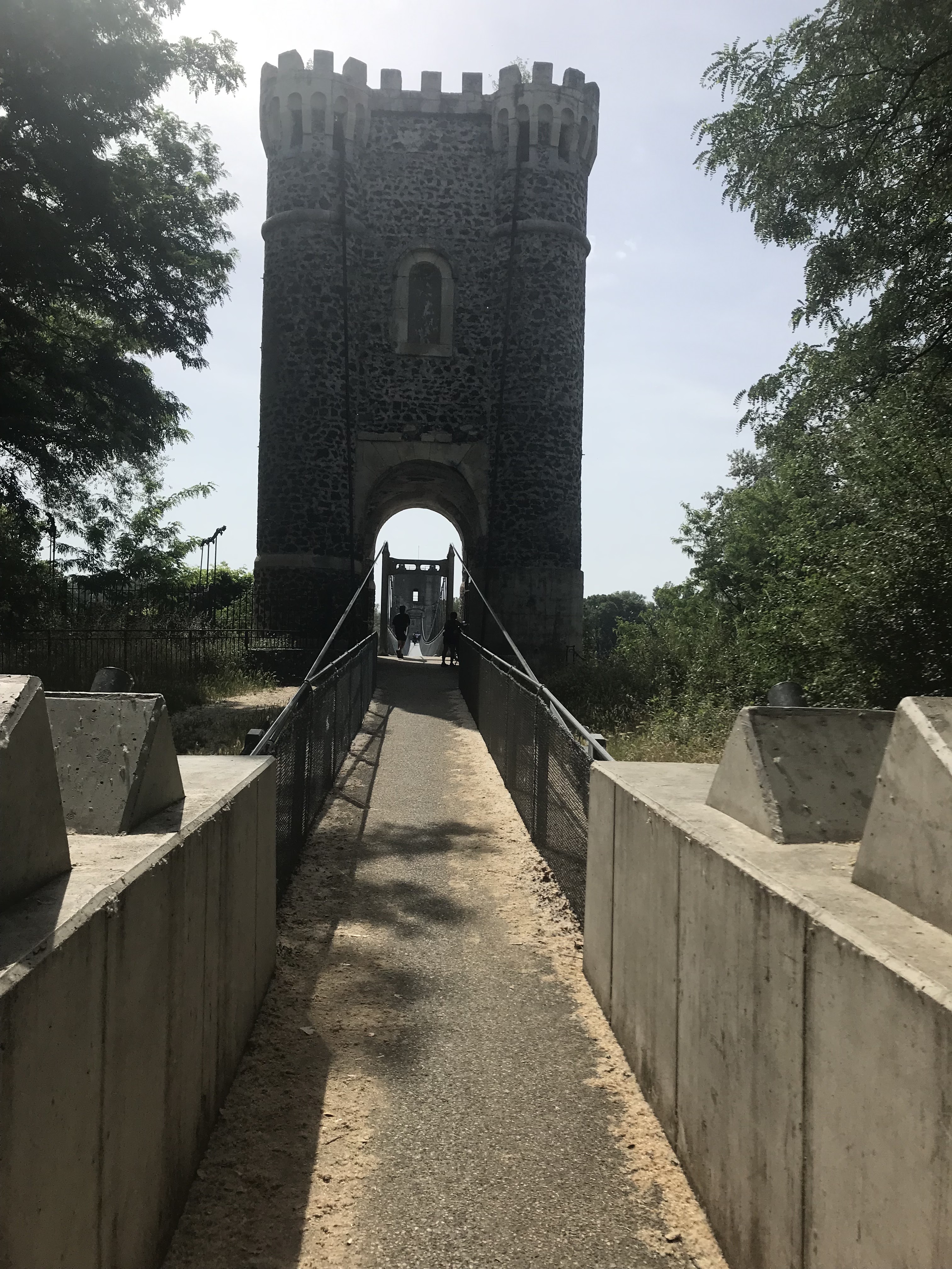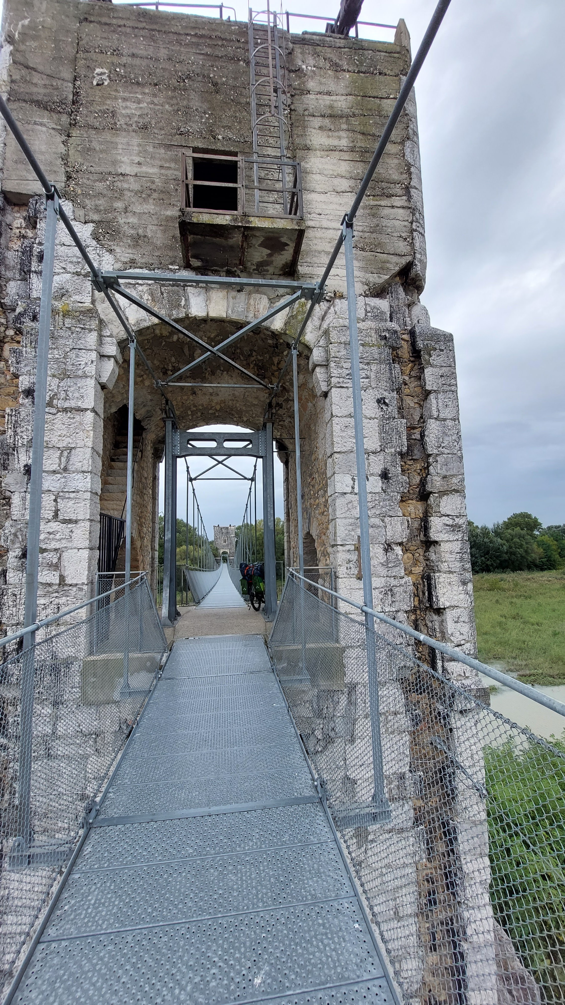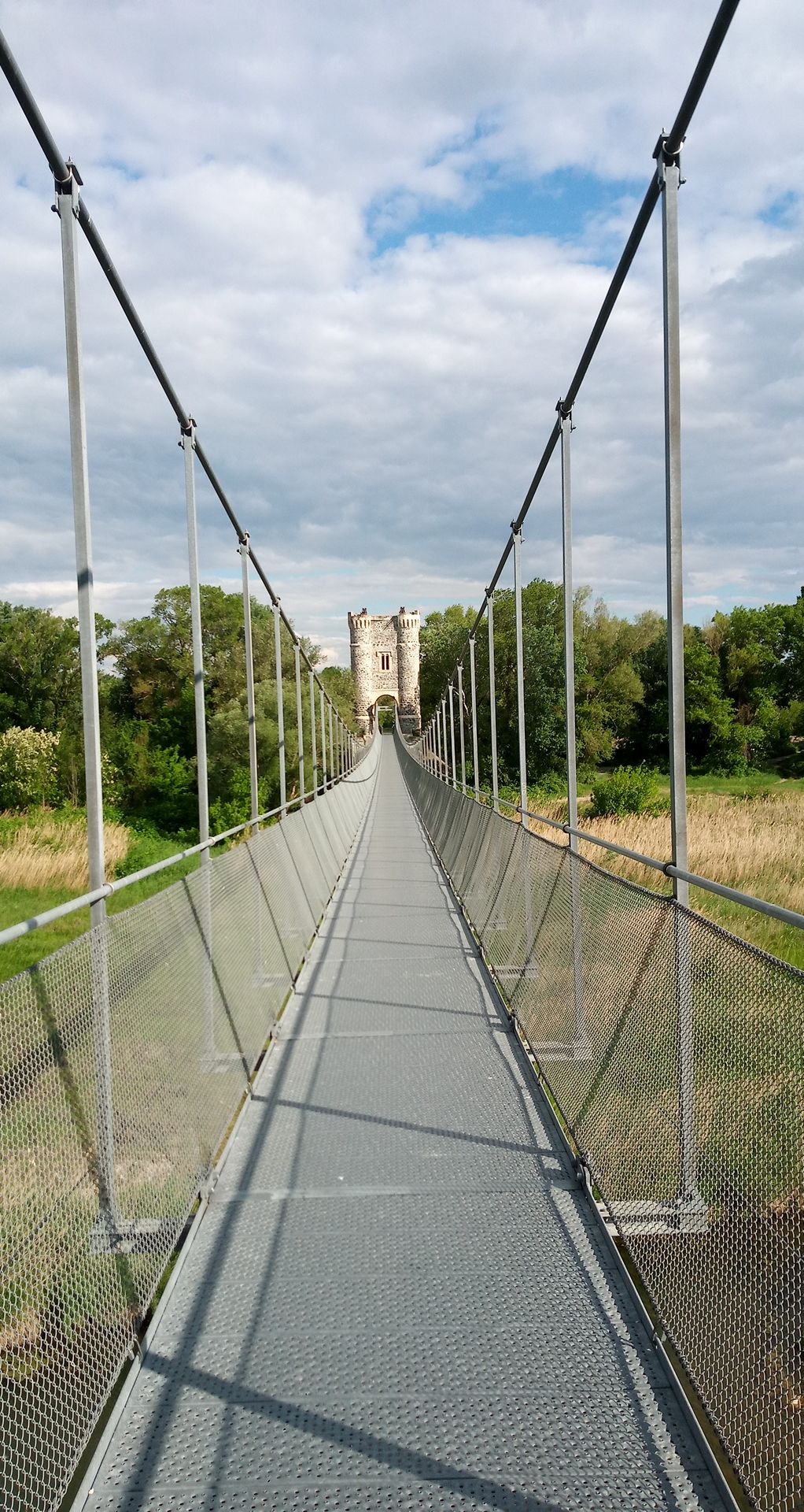 Passerelle très agréable dans sa conception avec le côté suspendue entre 3 tours en pierre. Gros bémol : peu de cyclistes respectent l obligation de passer à pied en tenant son vélo. On a failli se faire bousculer 3 fois le temps de l aller-retour.