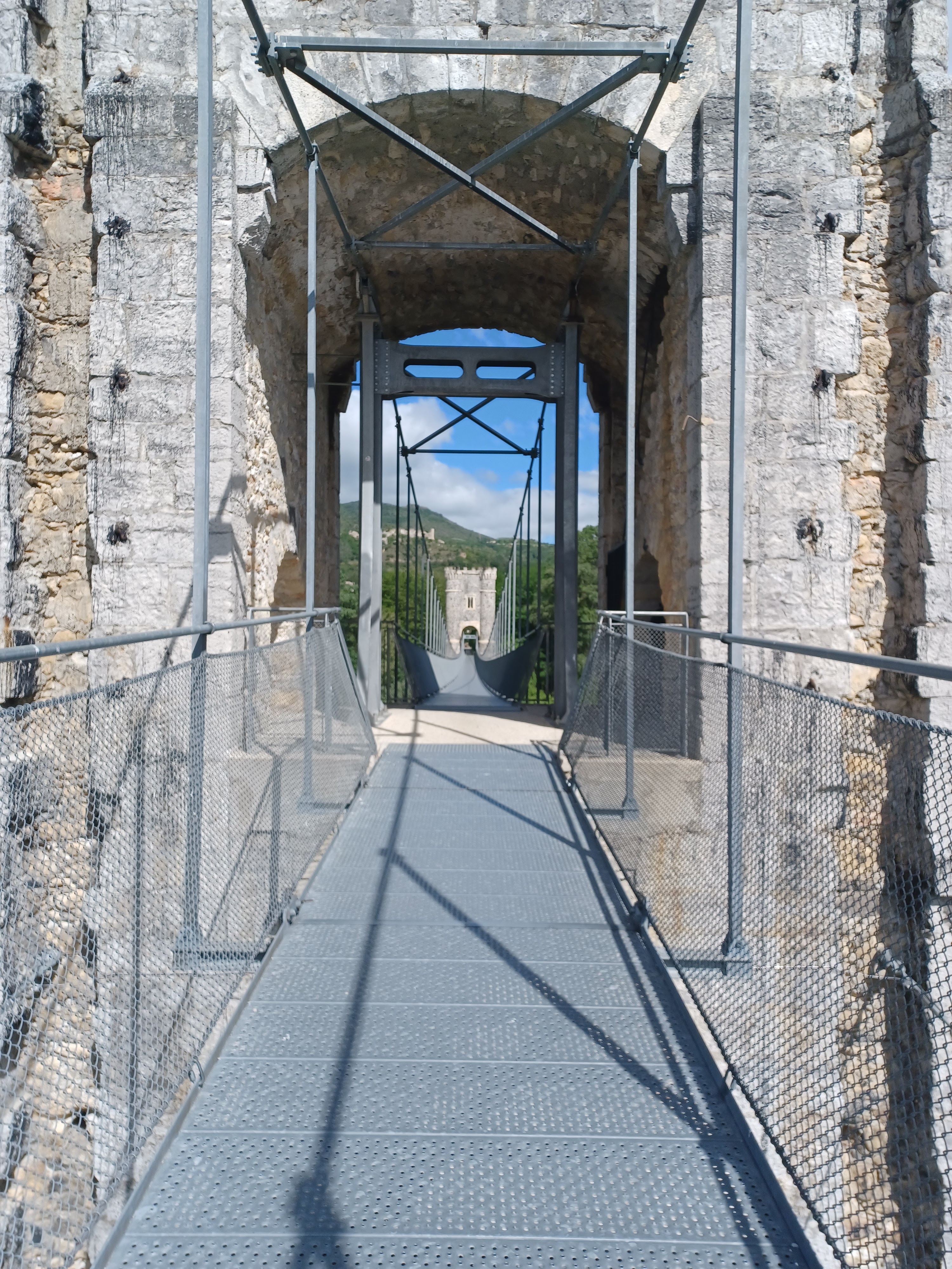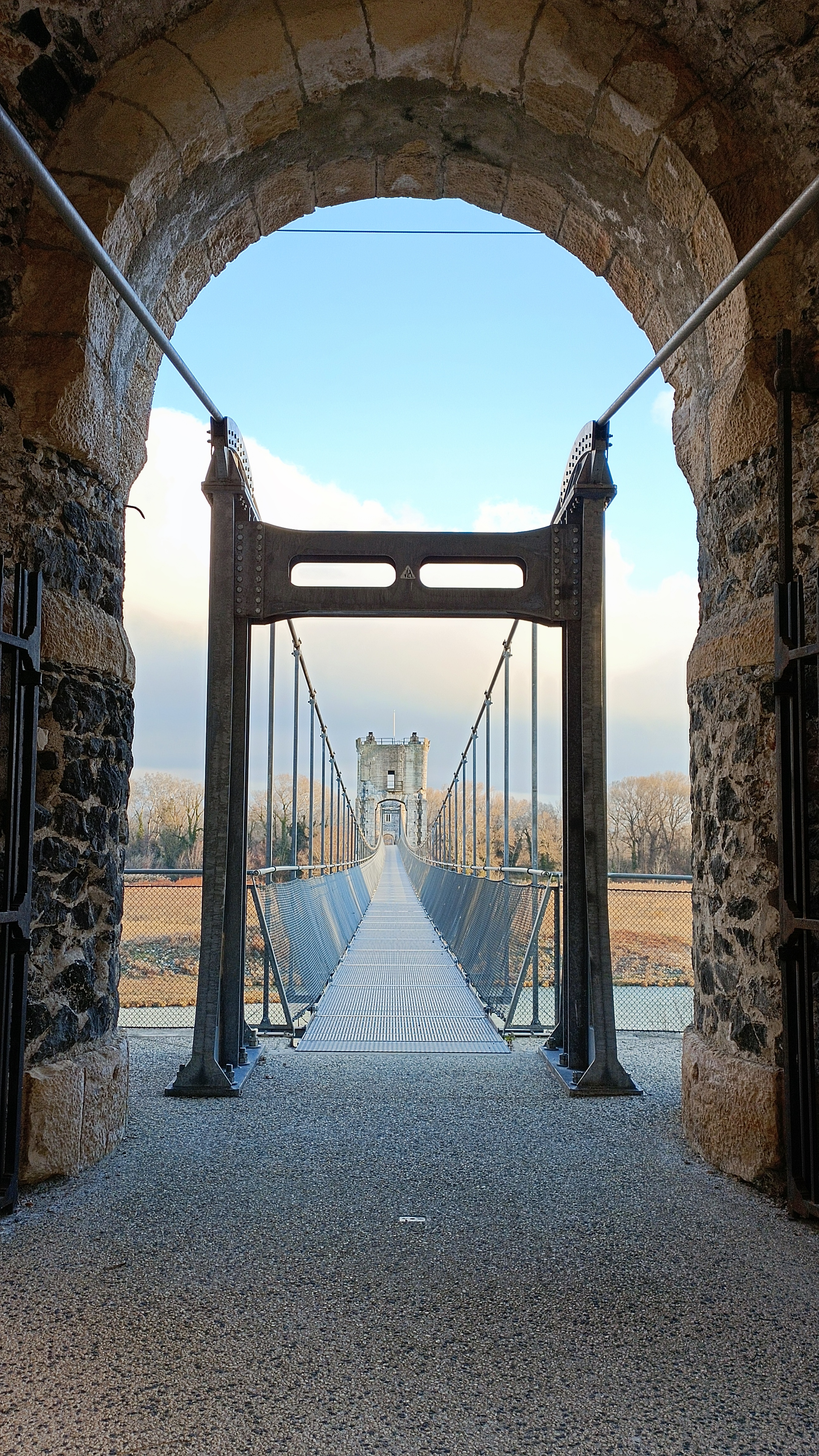 Très bel endroit. La pont suspendu moderne vontaste avec le bâtiment en pierre mais le mélange est très réussi.