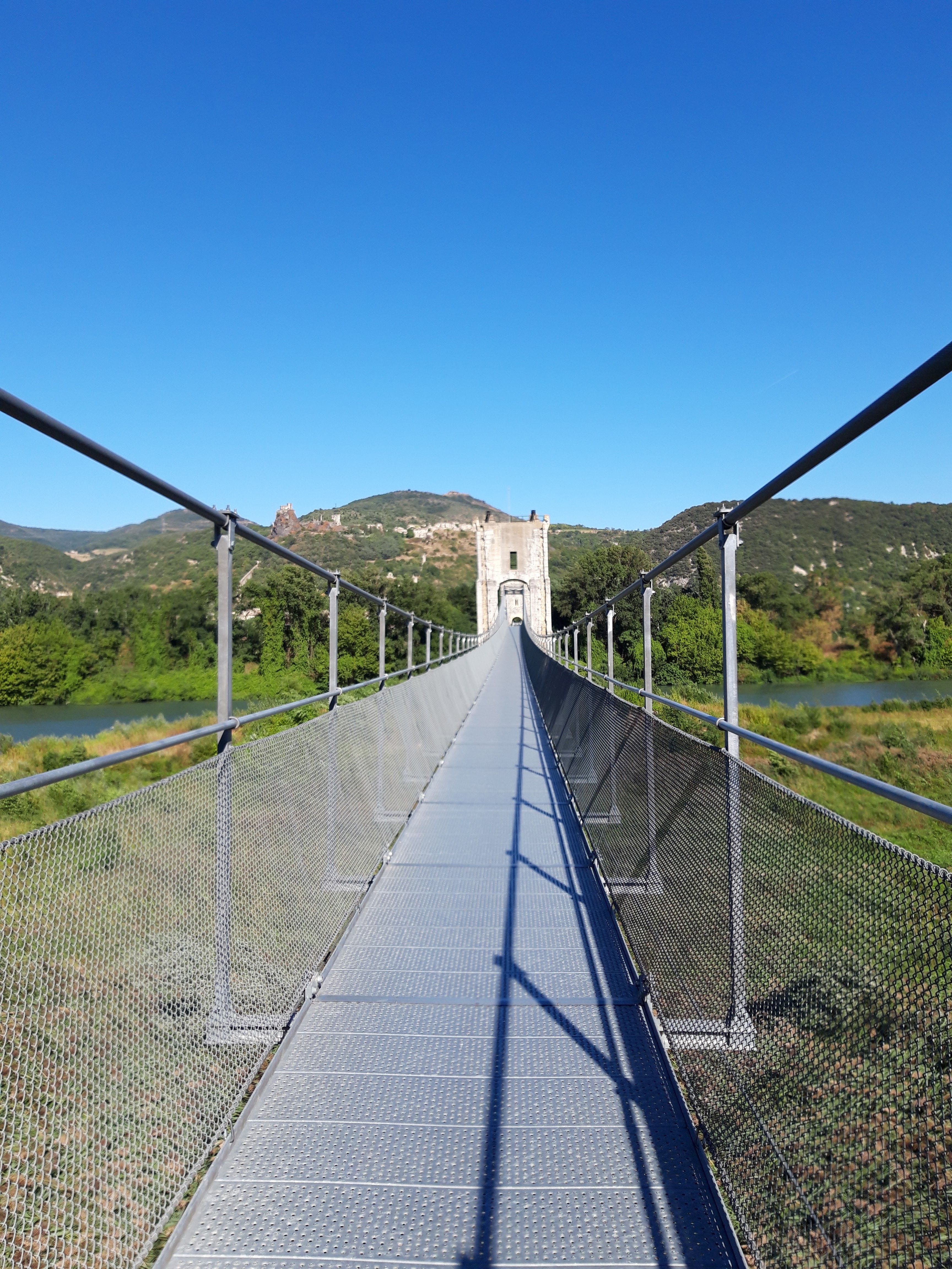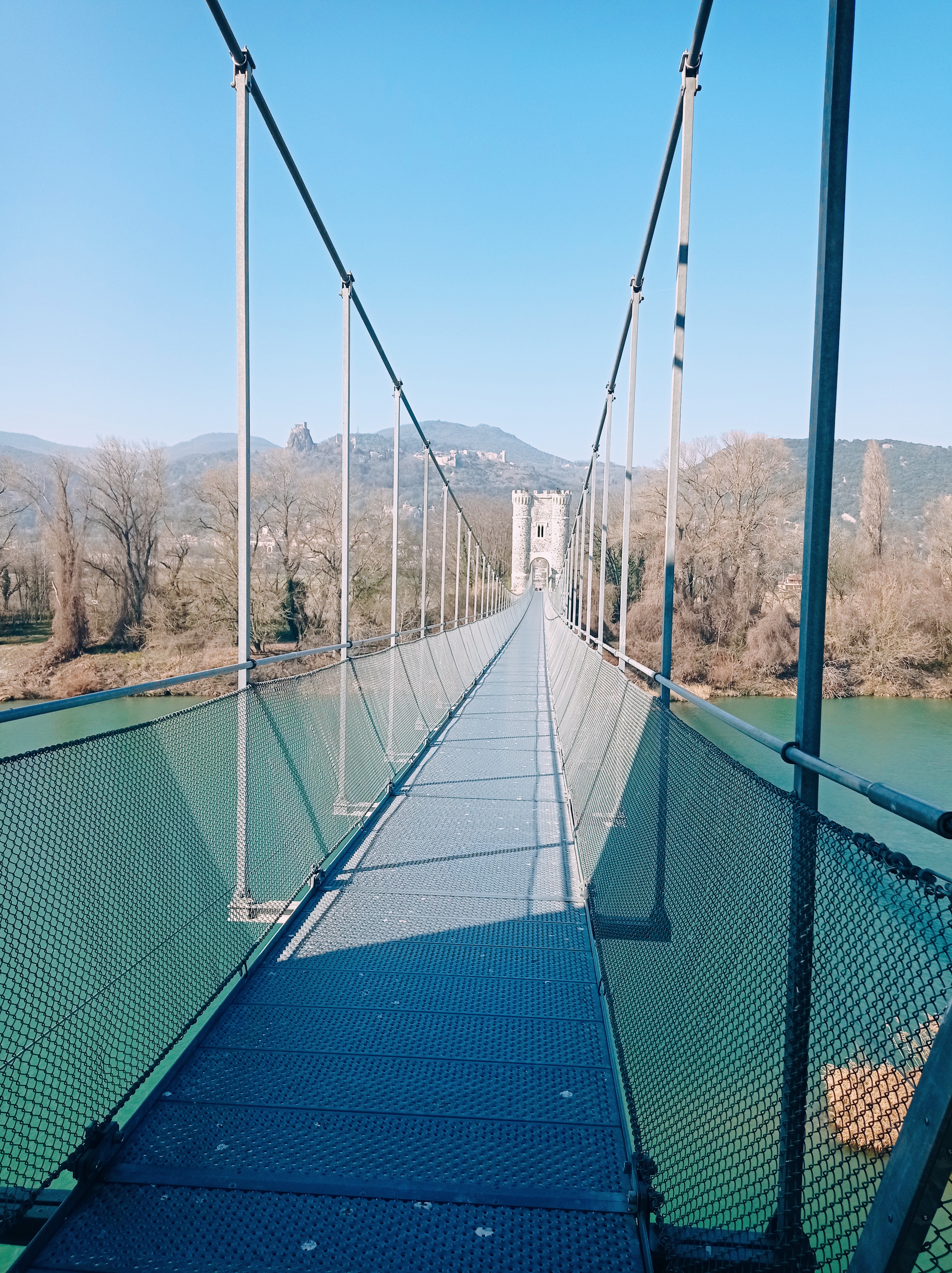 Très sympathiques ces passerelles au-dessus du Rhône, on apprécie cette balade et la montée au château médiéval ensuite, en passant par le beau village de Rochemaure 🙂
