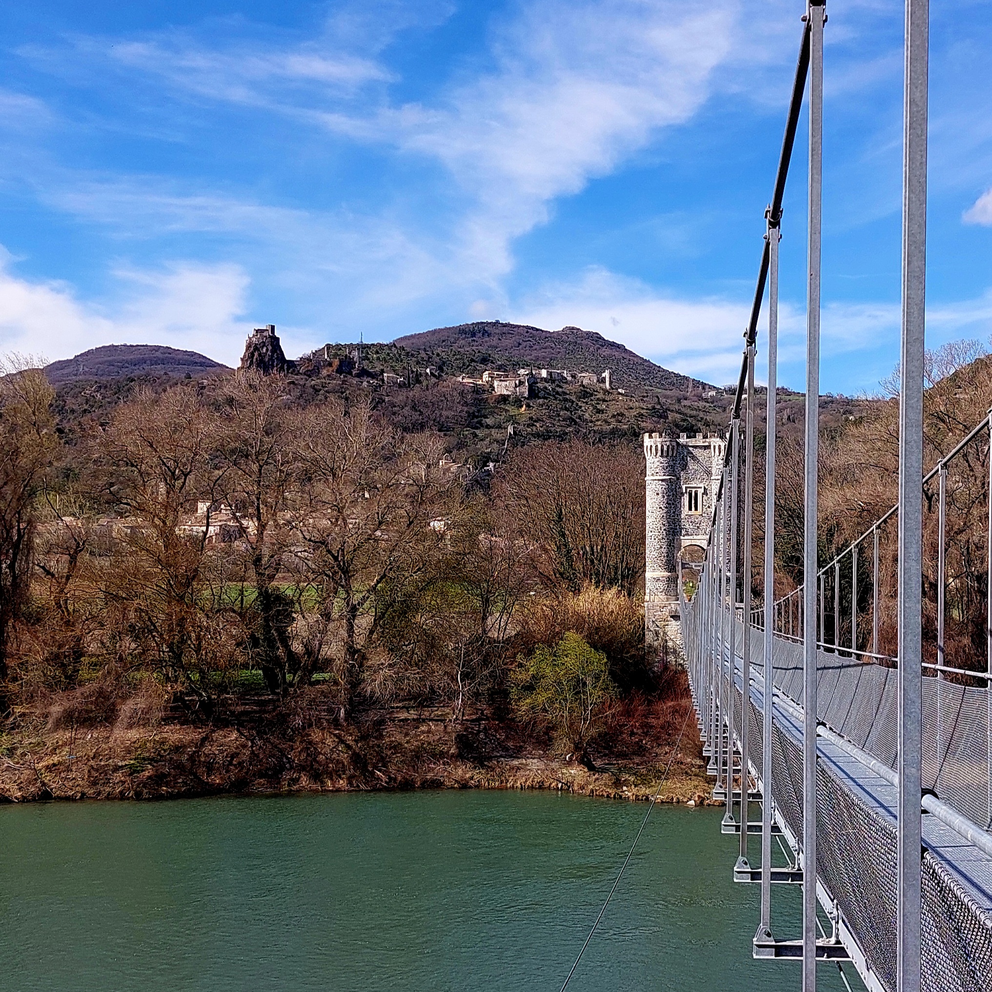 Magnifique passerelle qui va de concert avec le plus beau village d'Ardèche.