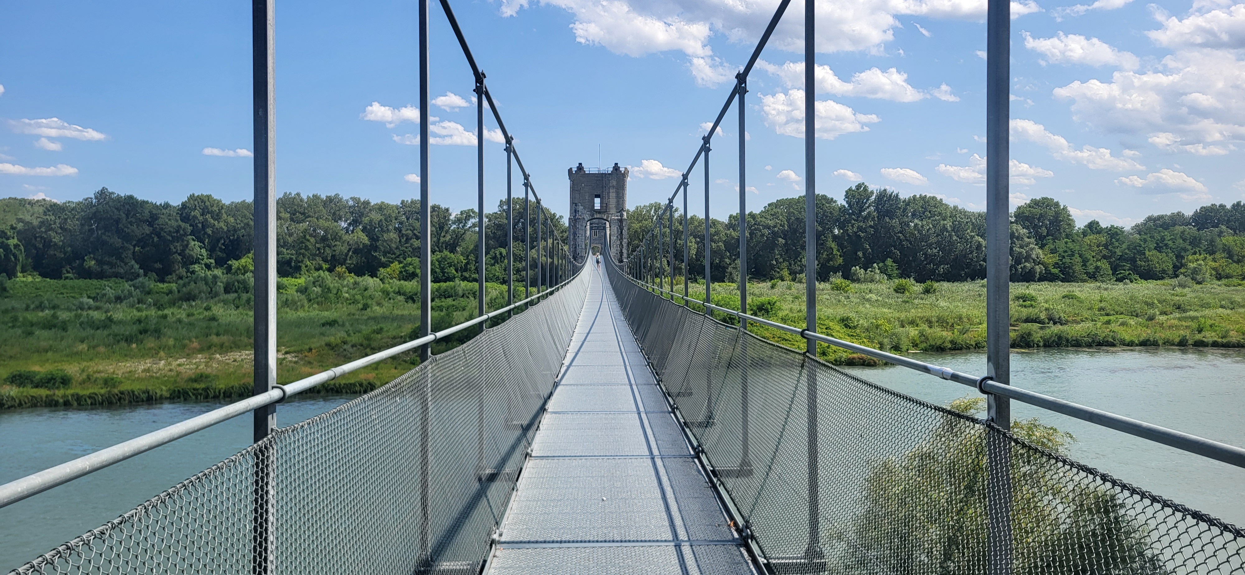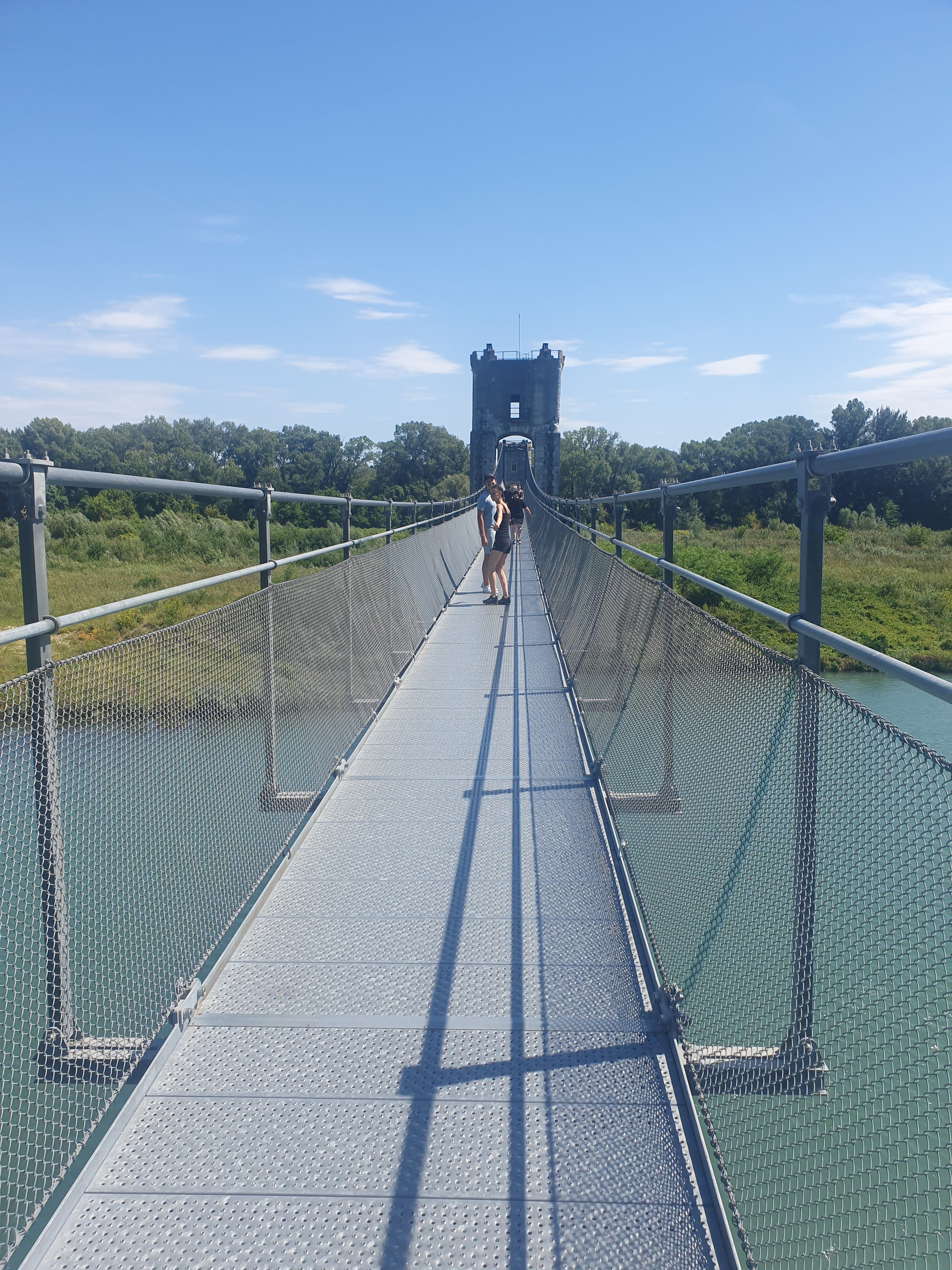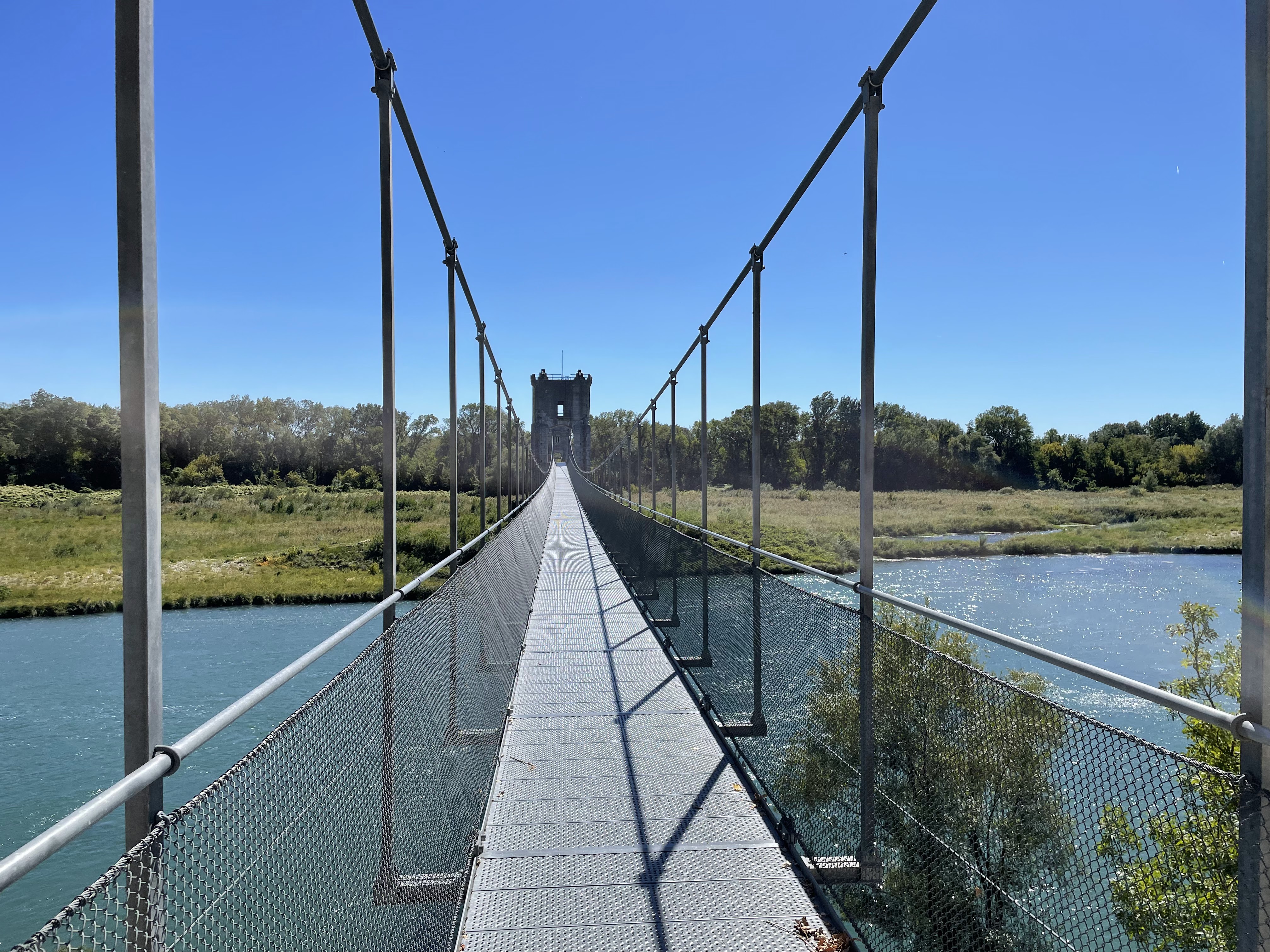 Un pont suspendu au-dessus du Rhône, petite traversée sympathique.
