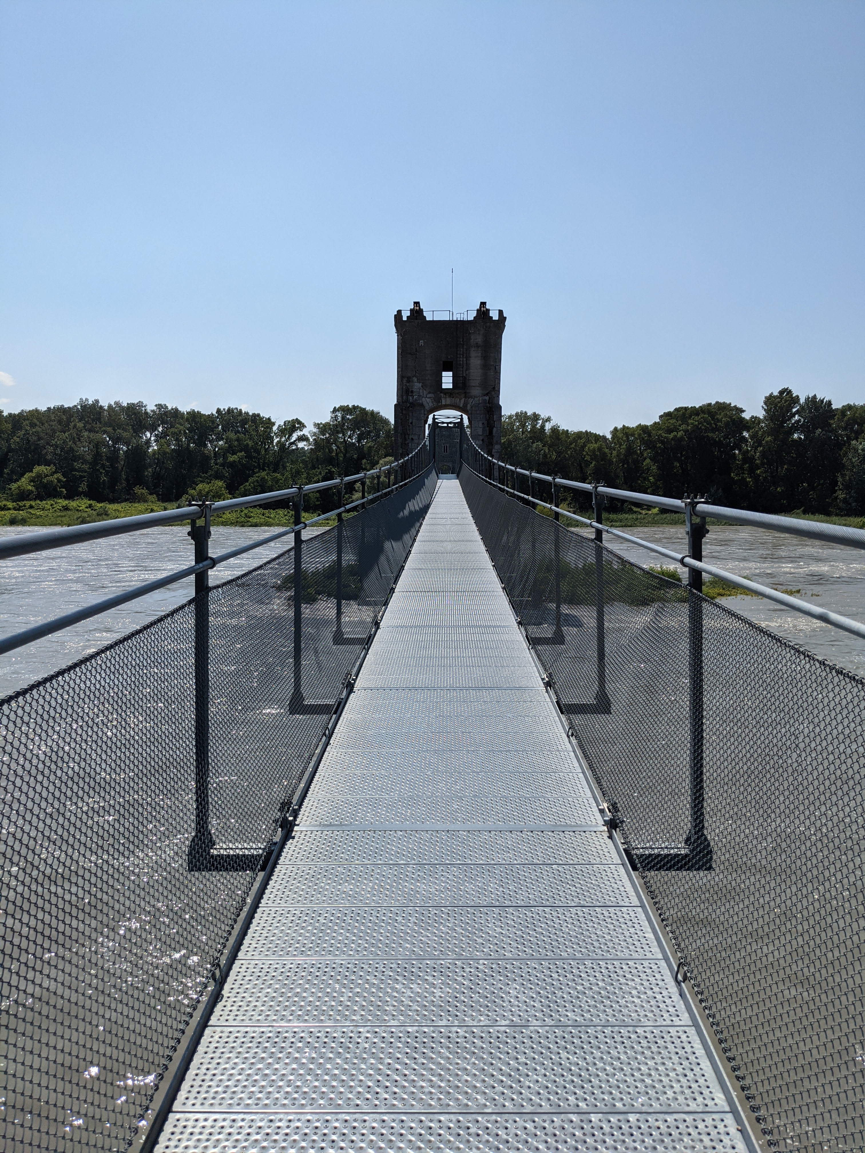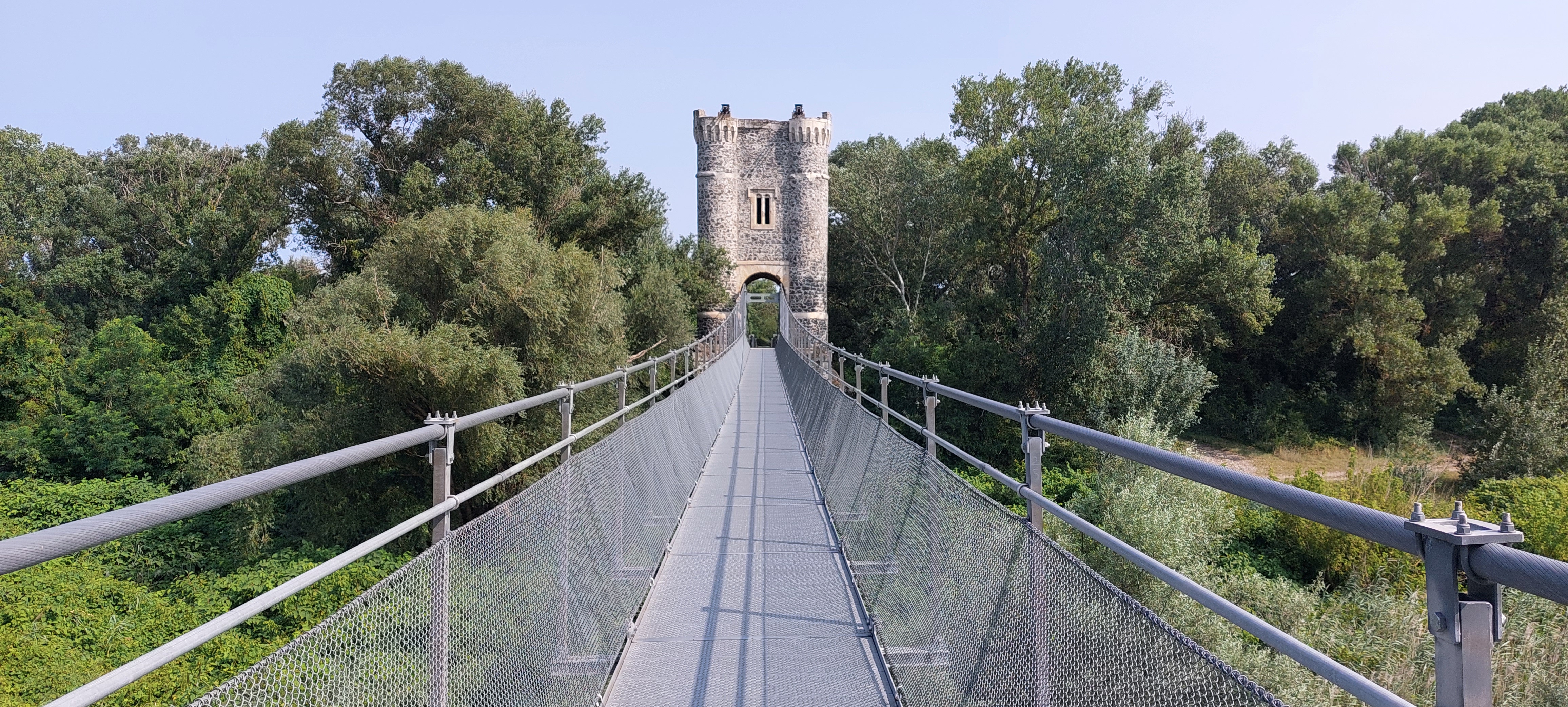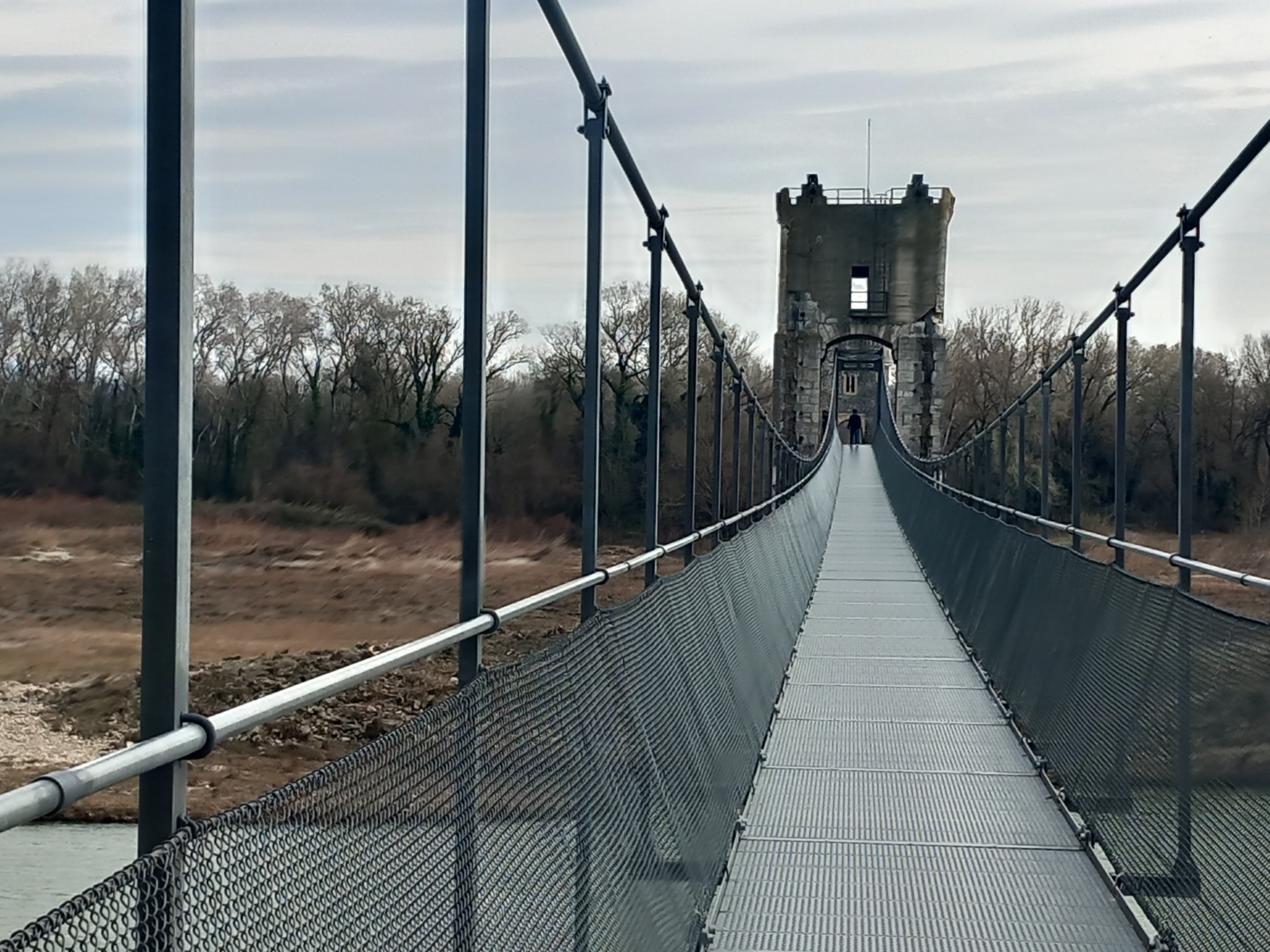Un pont suspendu au-dessus du Rhône, petite traversée sympathique.