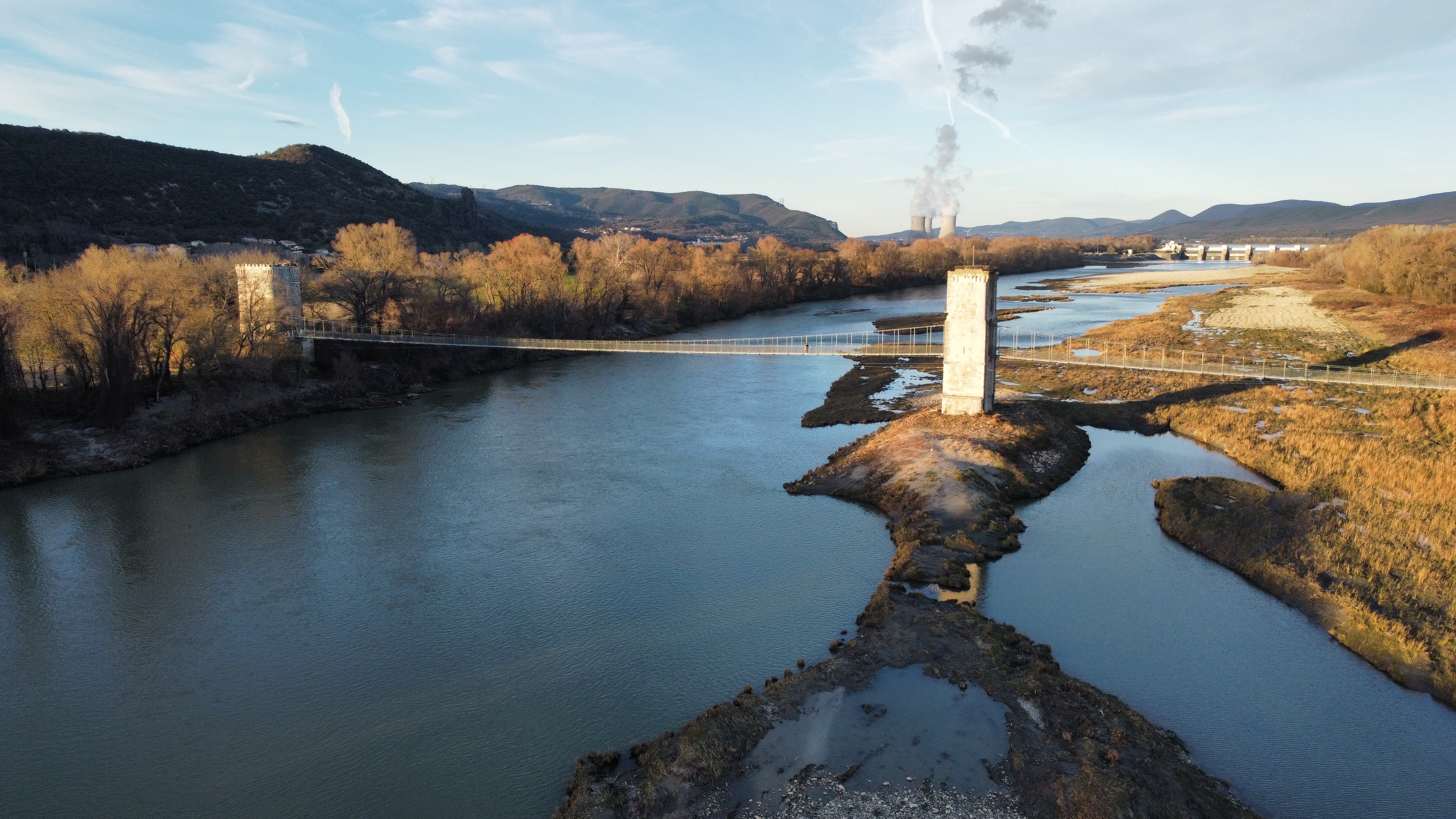 Ancien pont au dessus du Rhône sauvage, la passerelle de Rochemaure est un des rares ponts de la vallée dédié aux piétons et aux cyclistes. Elle enjambe le fleuve là où un bac à traille traversé le fleuve au 19e siècle Aujourd'hui c'est un pont avec un système de passerelle himalayenne avec une vue spectaculaire sur le Rhône, le château de Rochemaure et le barrage en amont.