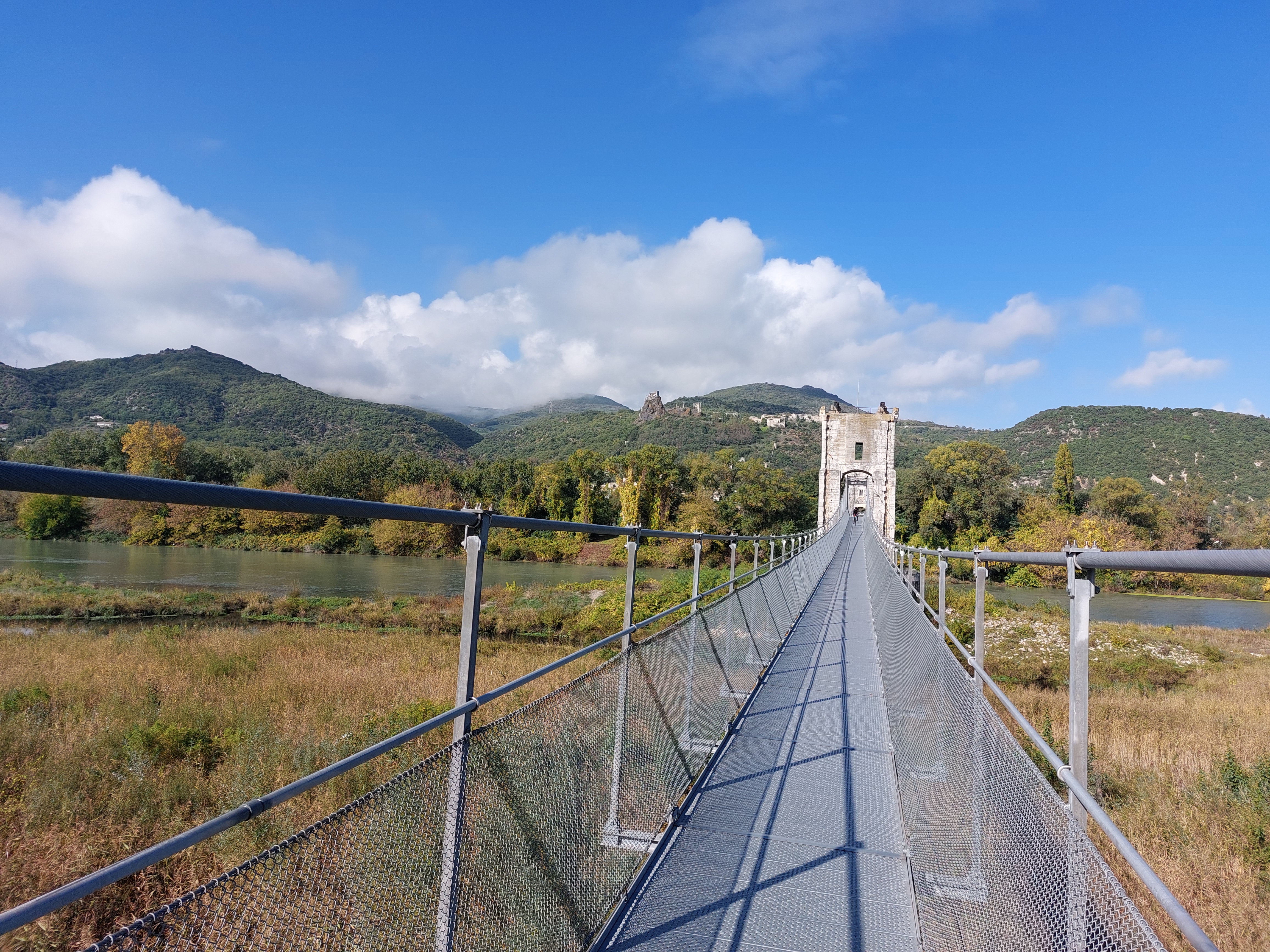 Vraiment magnifique, superbe traversé a pied sur ce pont suspendu avec de belles rafales de vents 40/60km/h). Le village de Rochemaure juste a côté est très beau a visiter aussi.