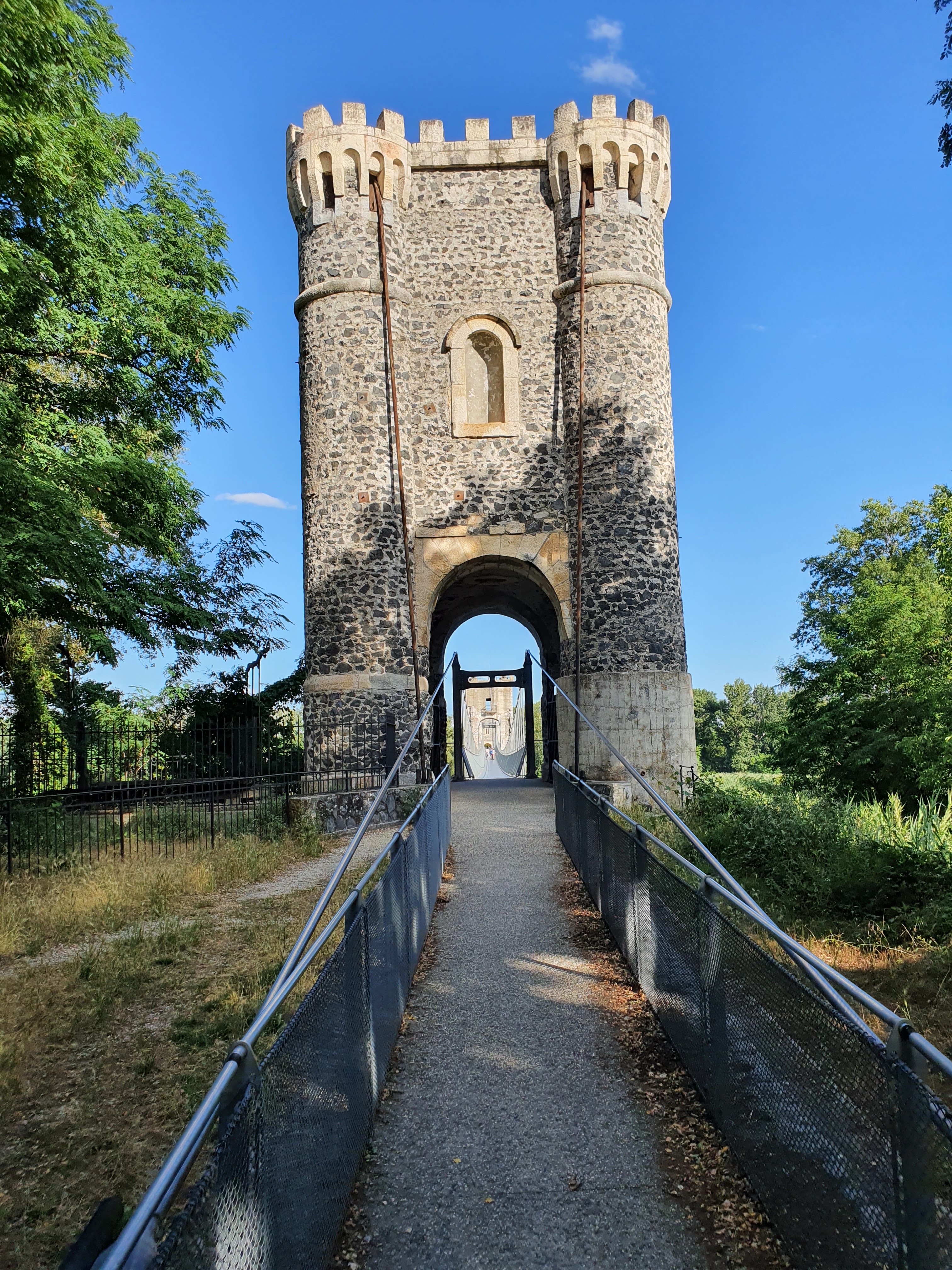 Superbe!! Je me suis arrêtée au plan d'eau juste à côté et je suis tombée dessus par hasard. Elle est vraiment très jolie avec ses 3 tours et bouge lorsqu'on l'emprunte. La vue sur le Rhône est à voir.