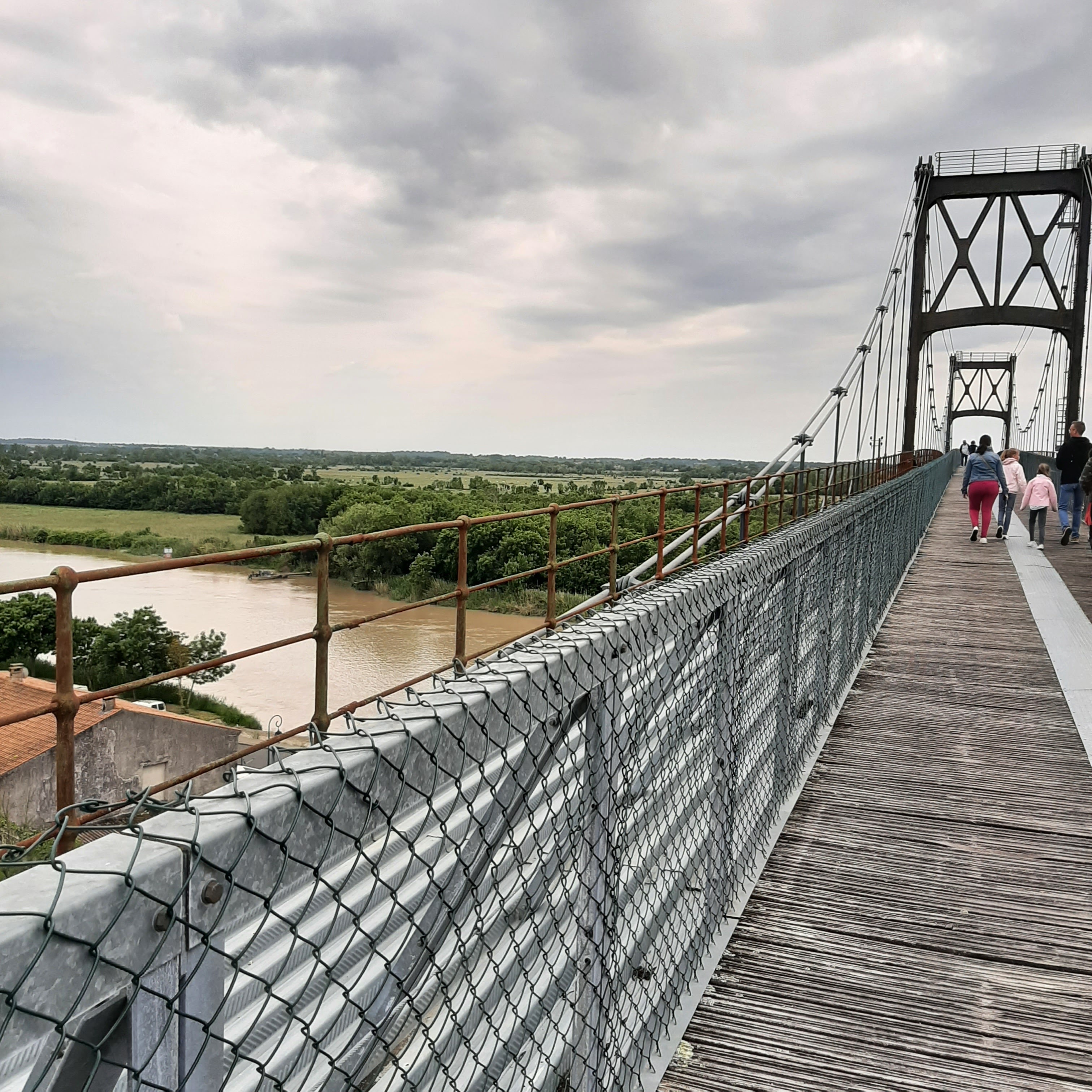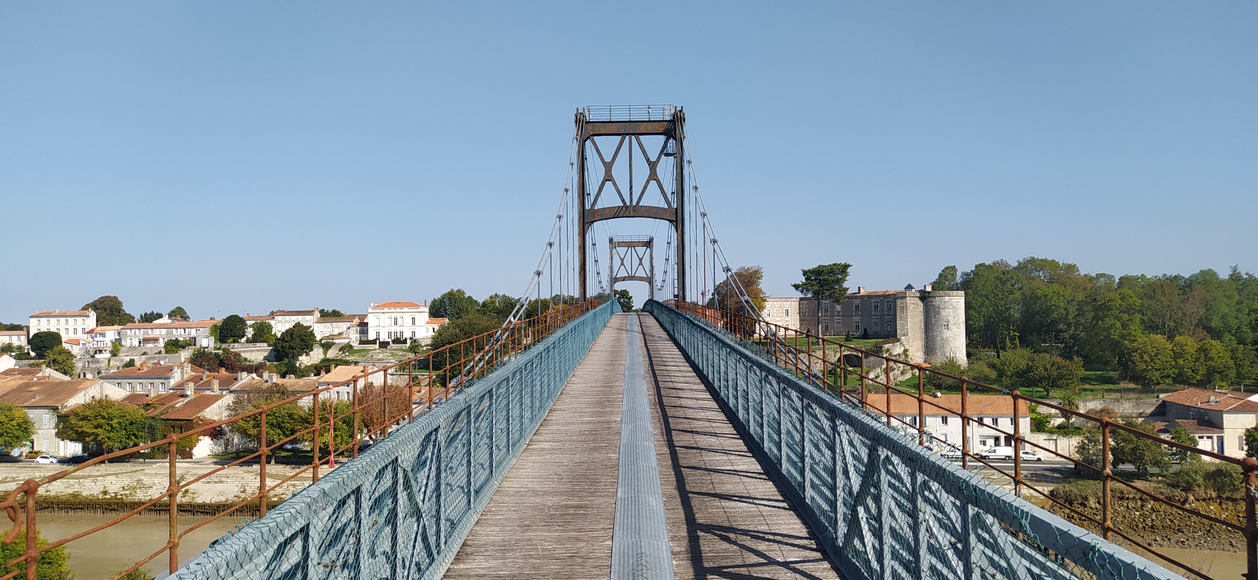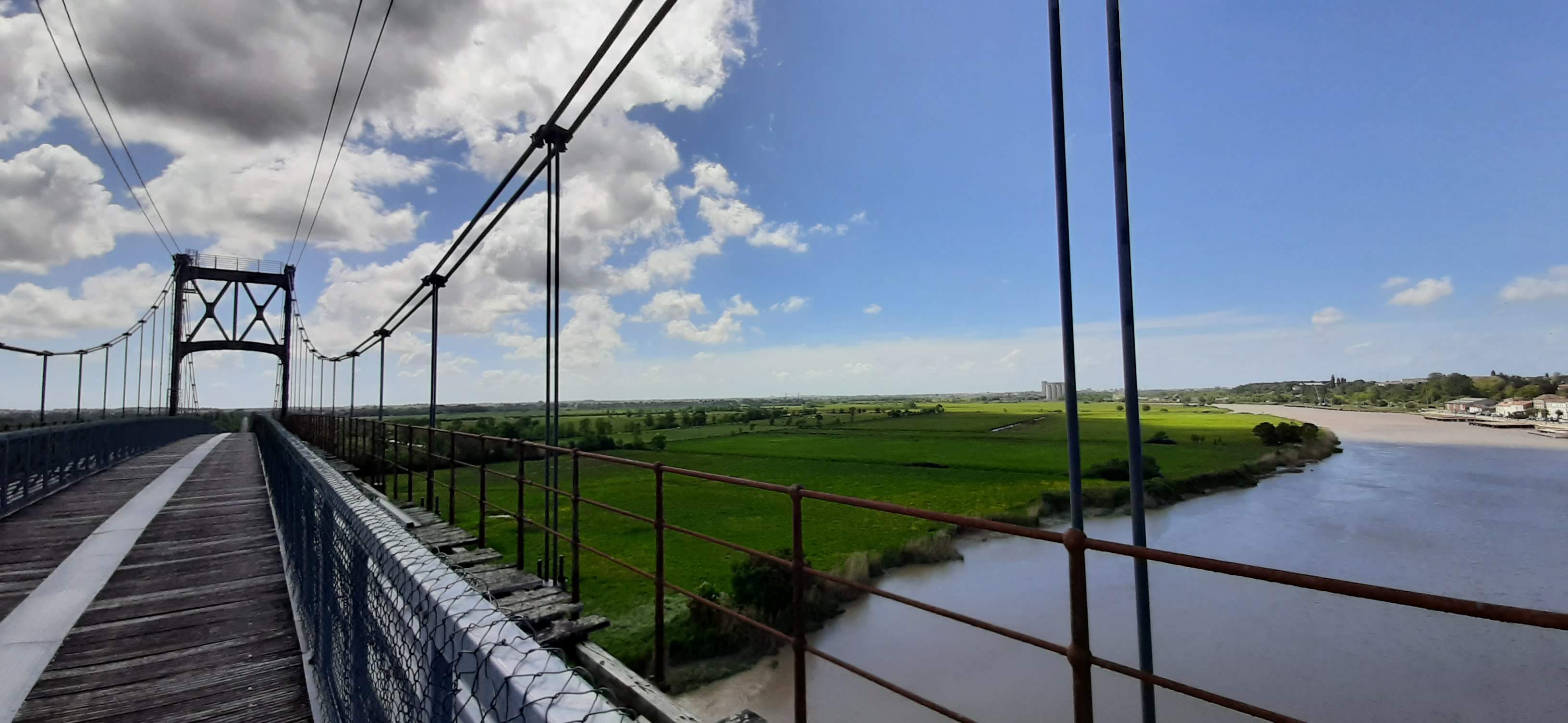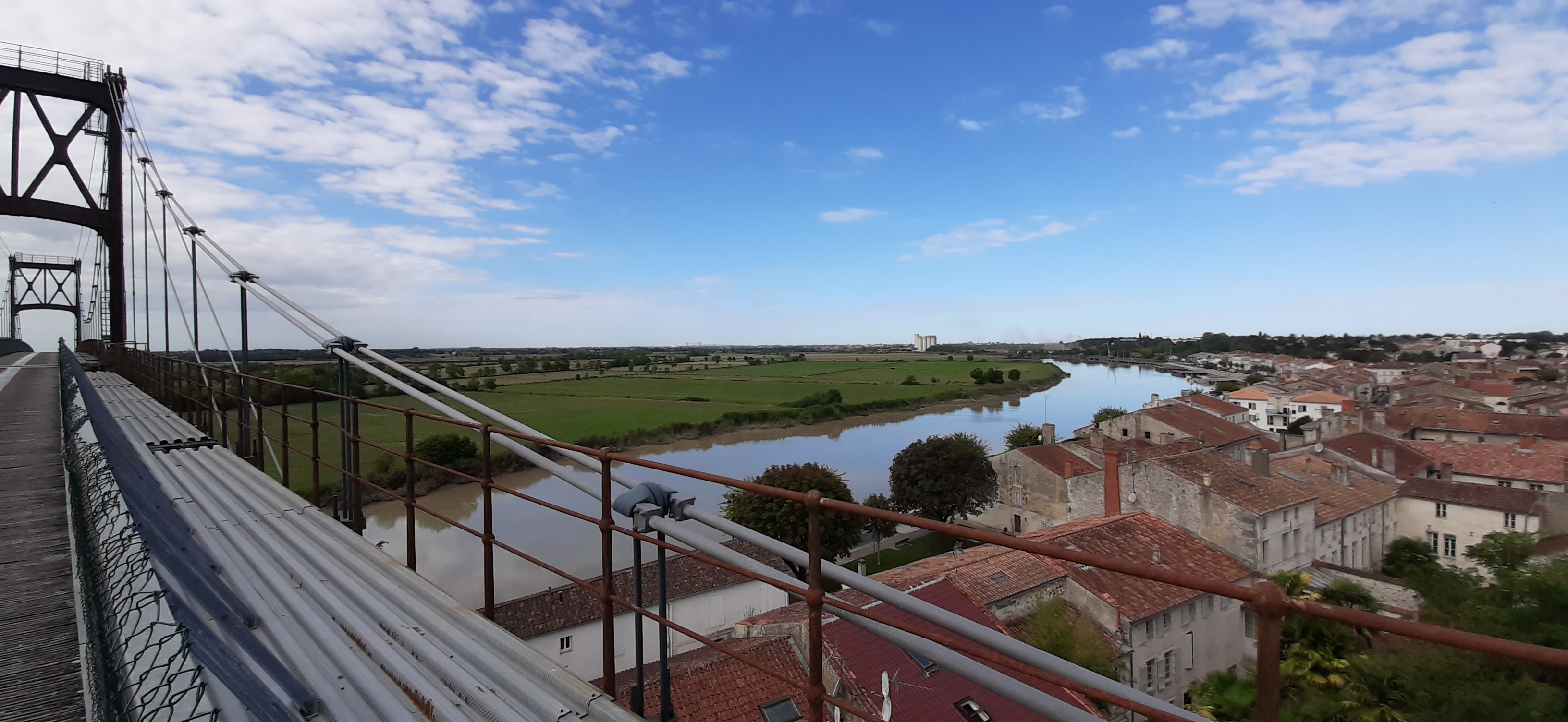 Ancien pont suspendu rendu piétonnier au dessus de la charente avec une très belle vue sur tonnay charente et les marais de rochefort
