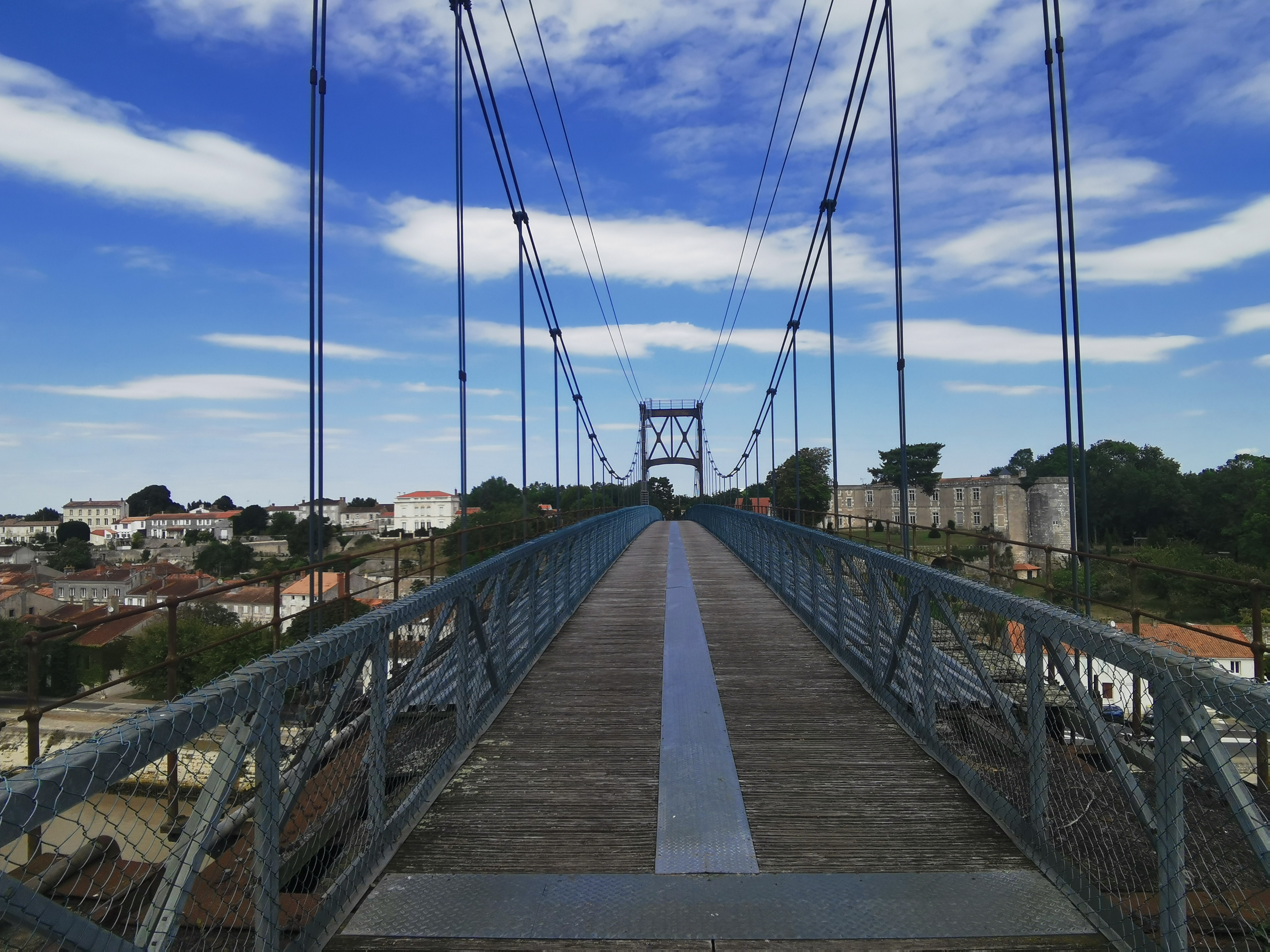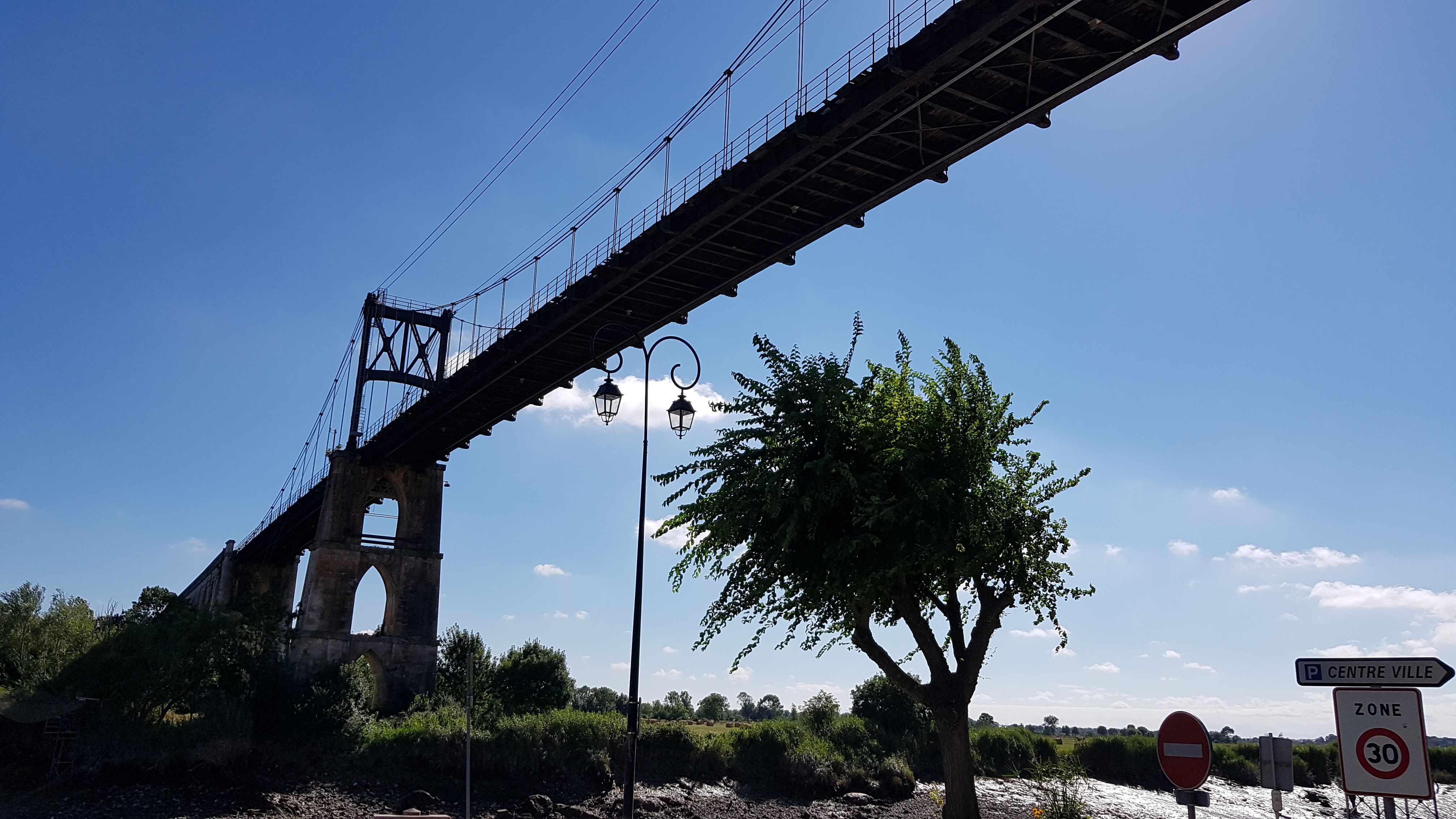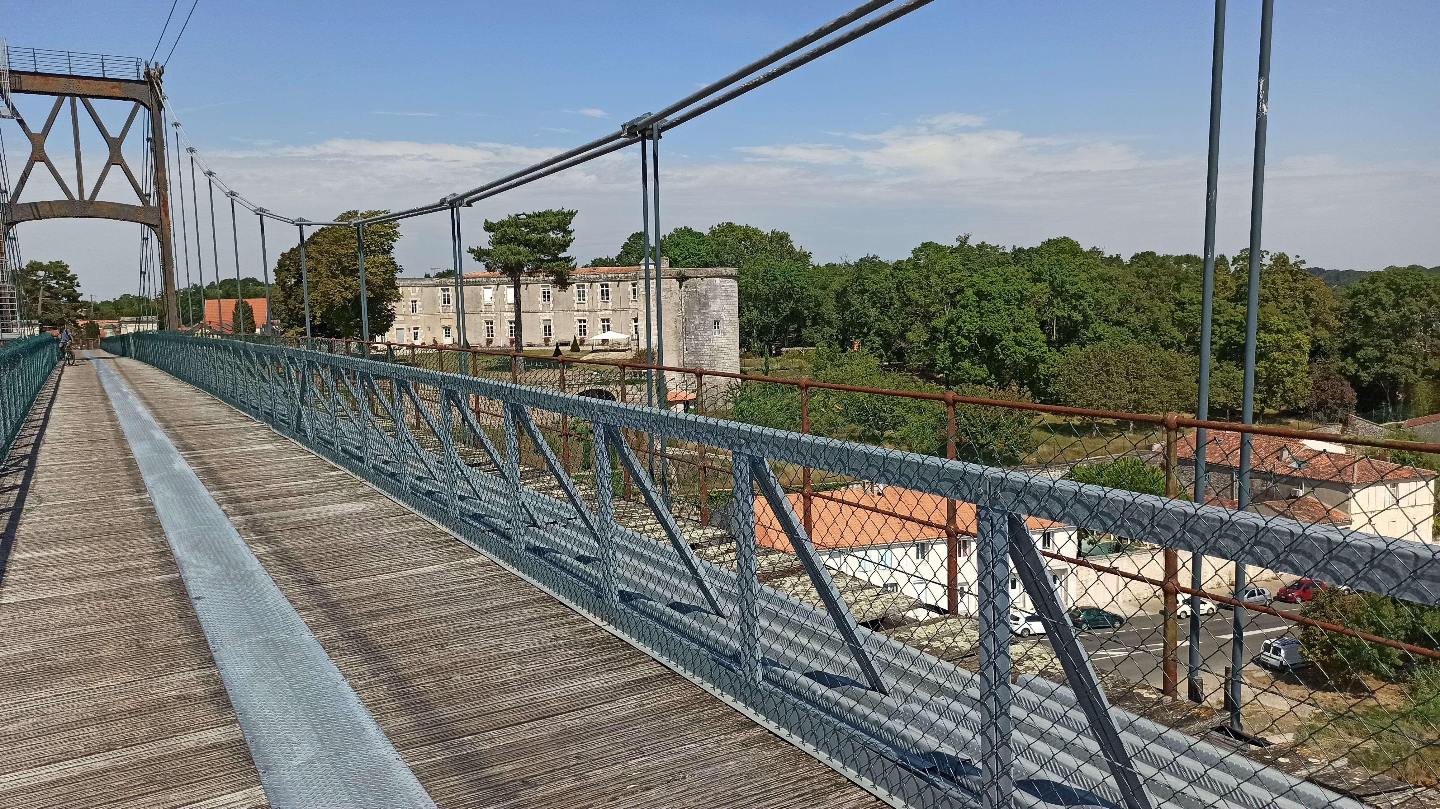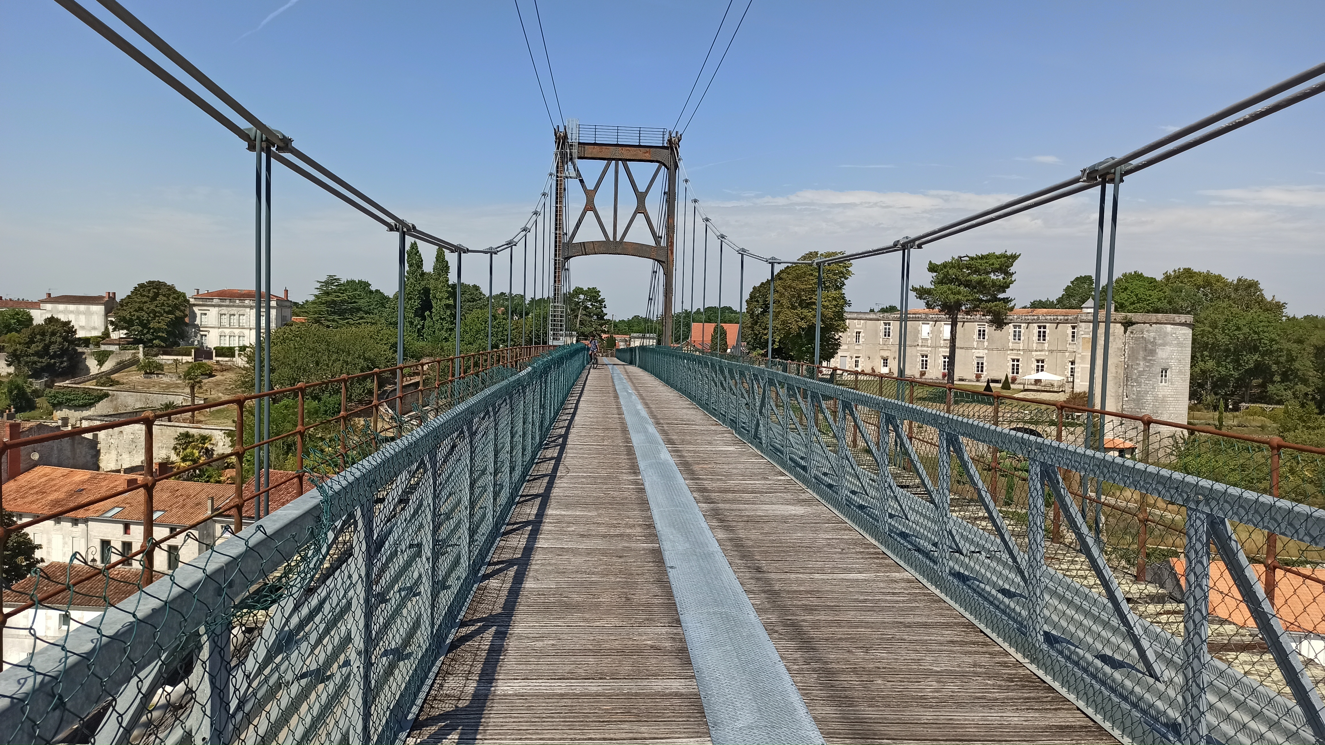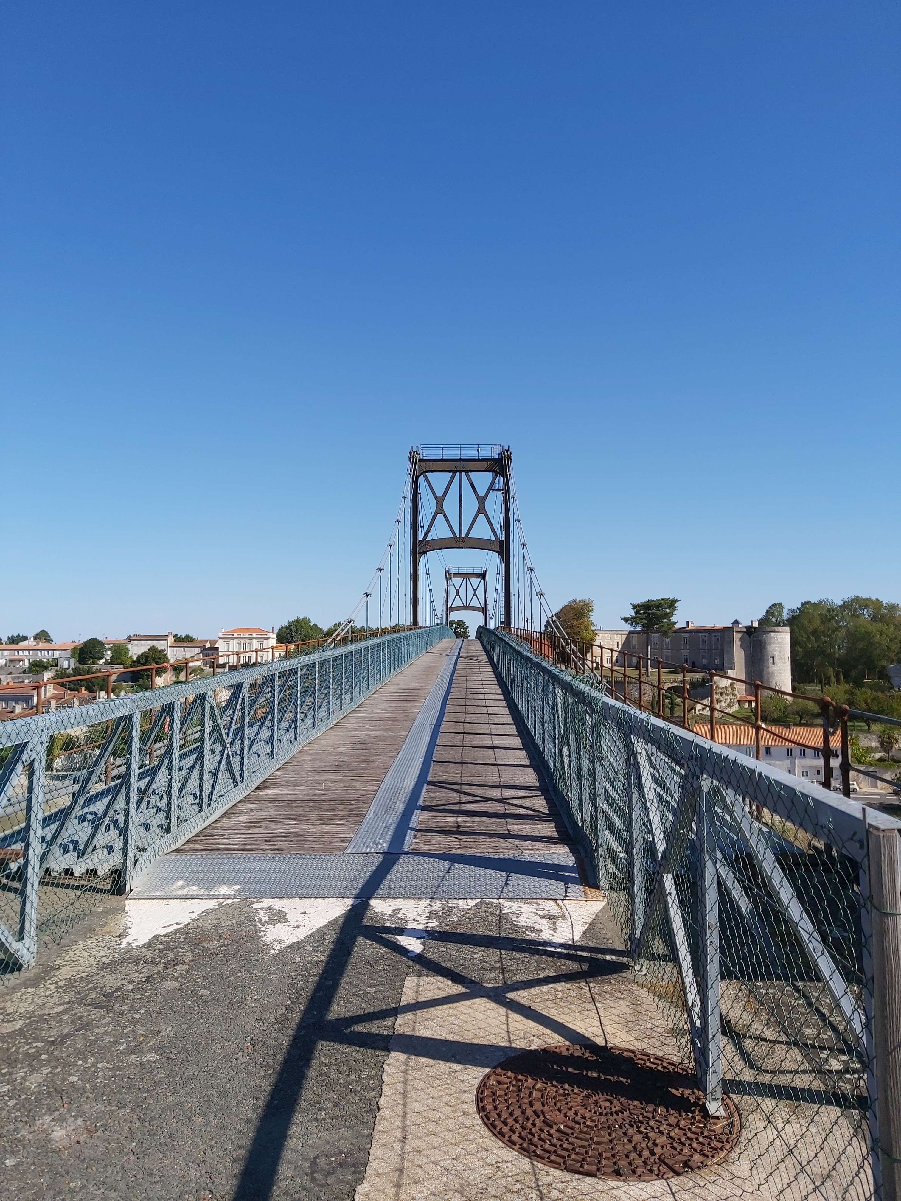 Ancien pont suspendu rendu piétonnier au dessus de la charente avec une très belle vue sur tonnay charente et les marais de rochefort