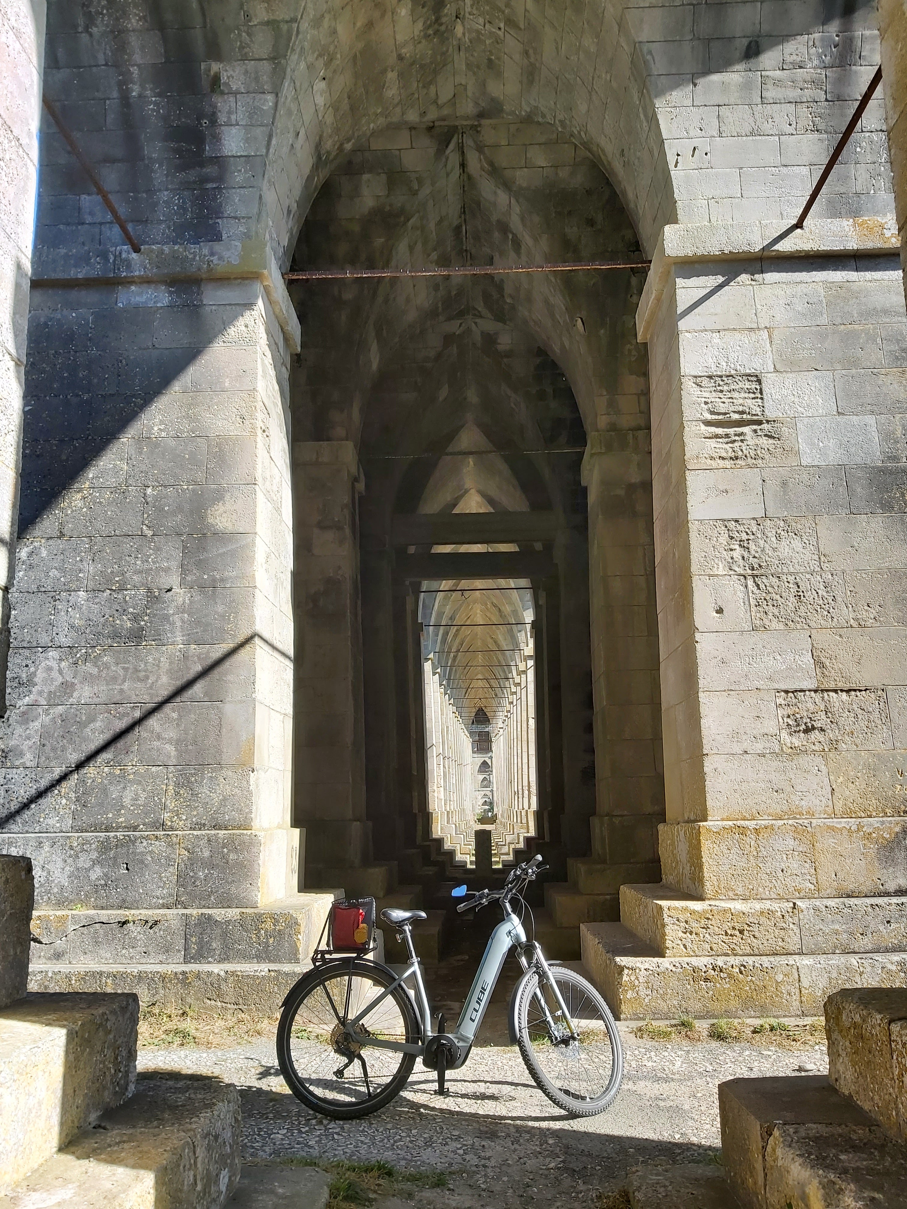 Pont original offrant un beau point de vue sur Tonnay. La perspective avec les arches est très impressionnante.